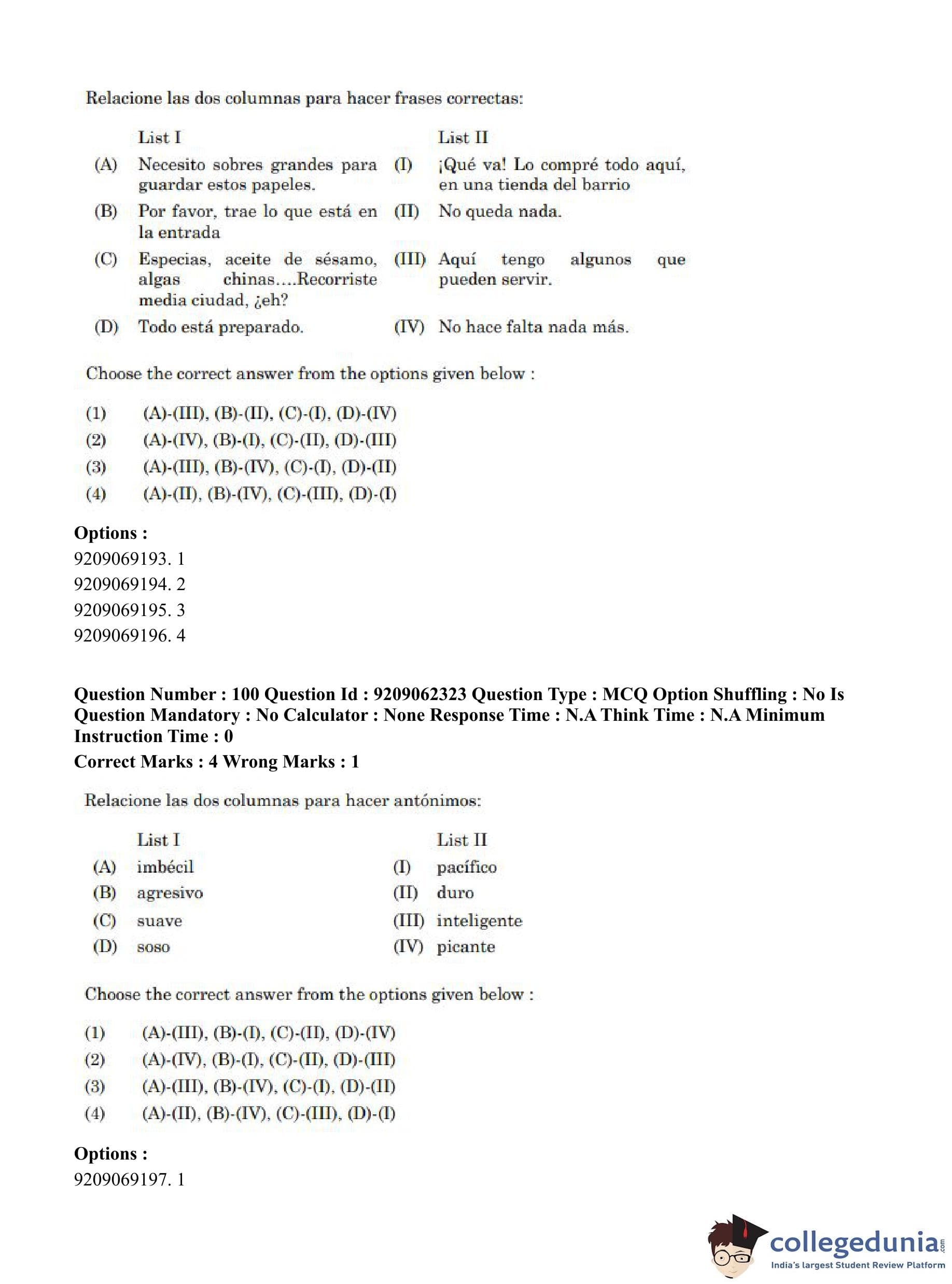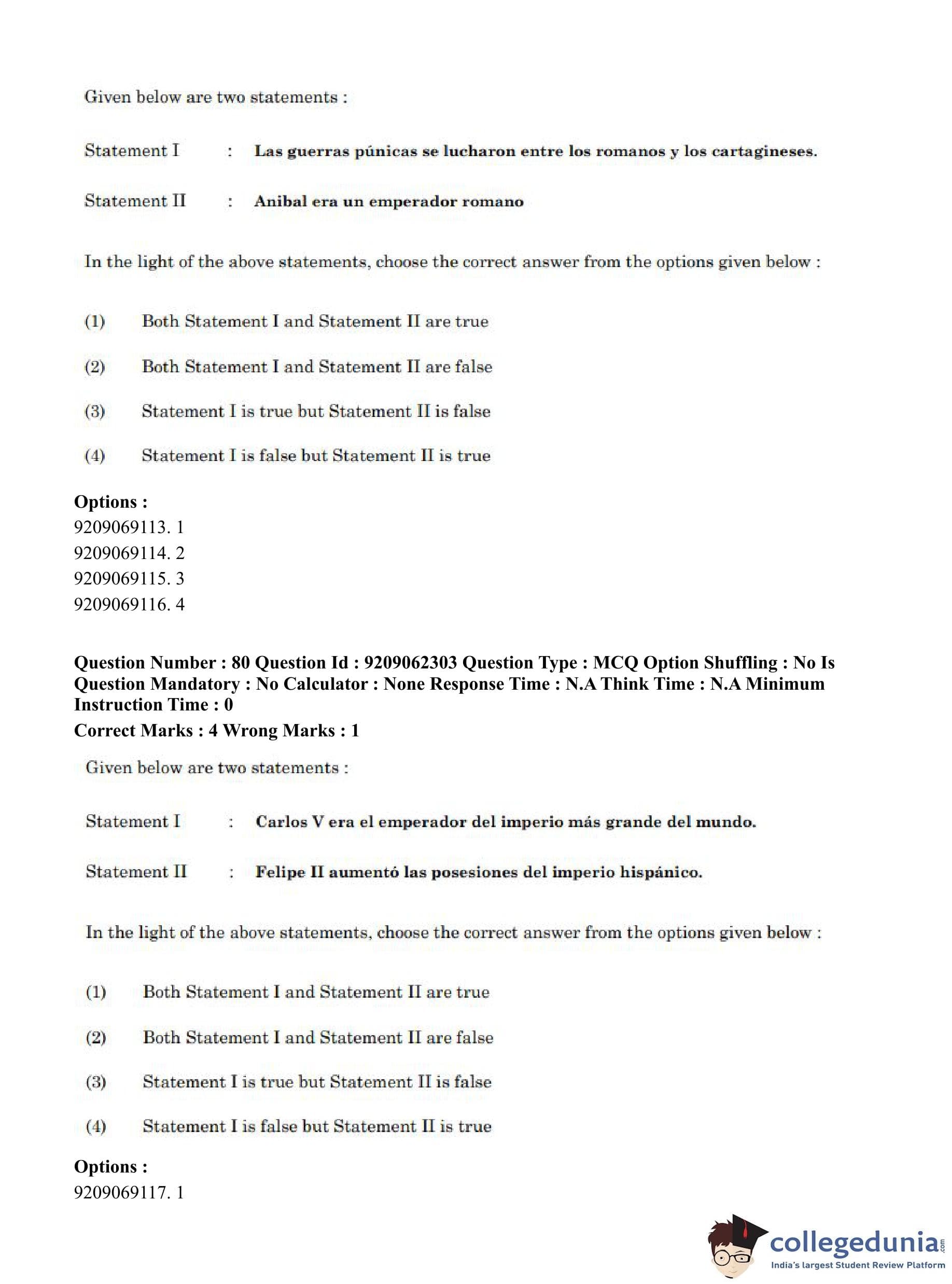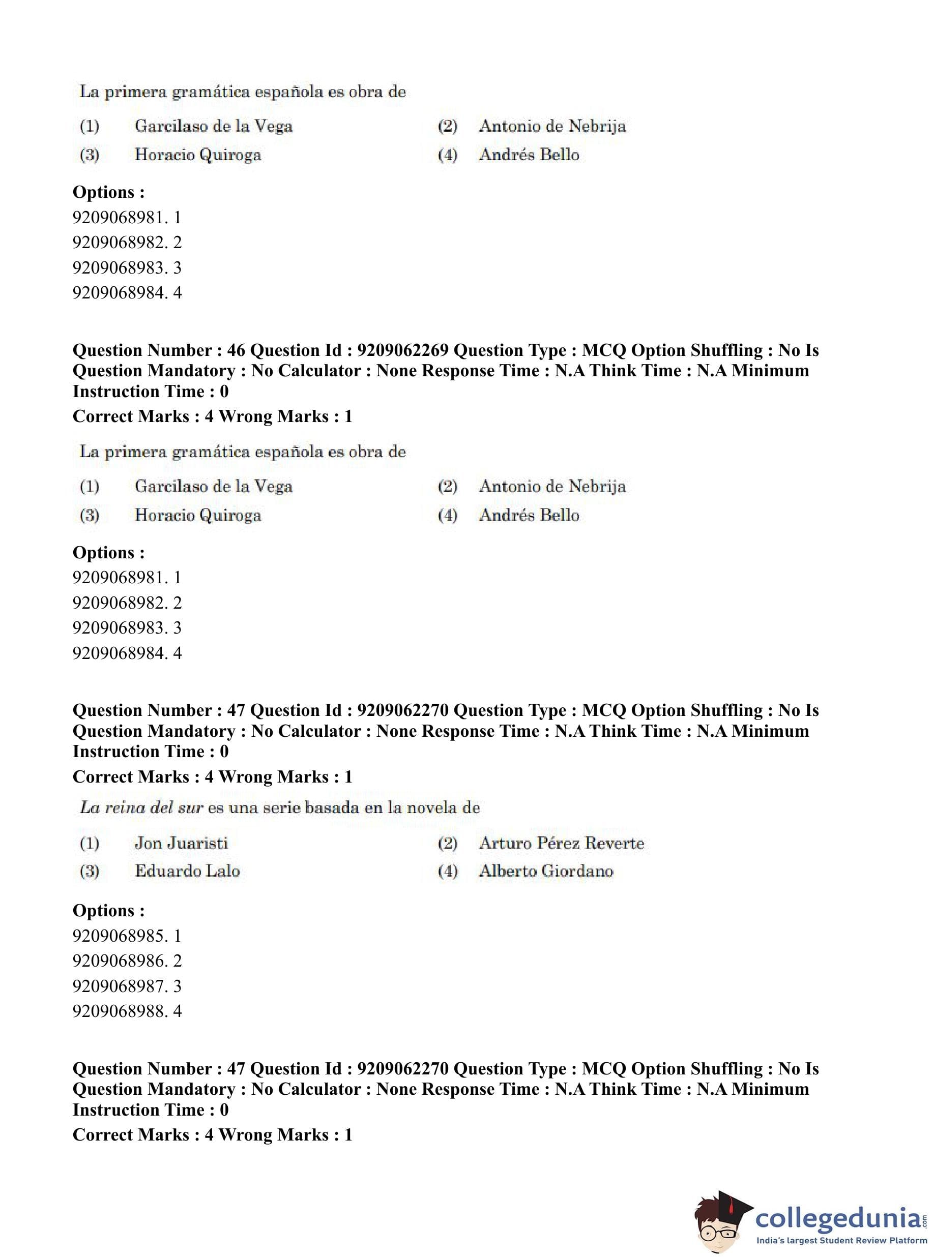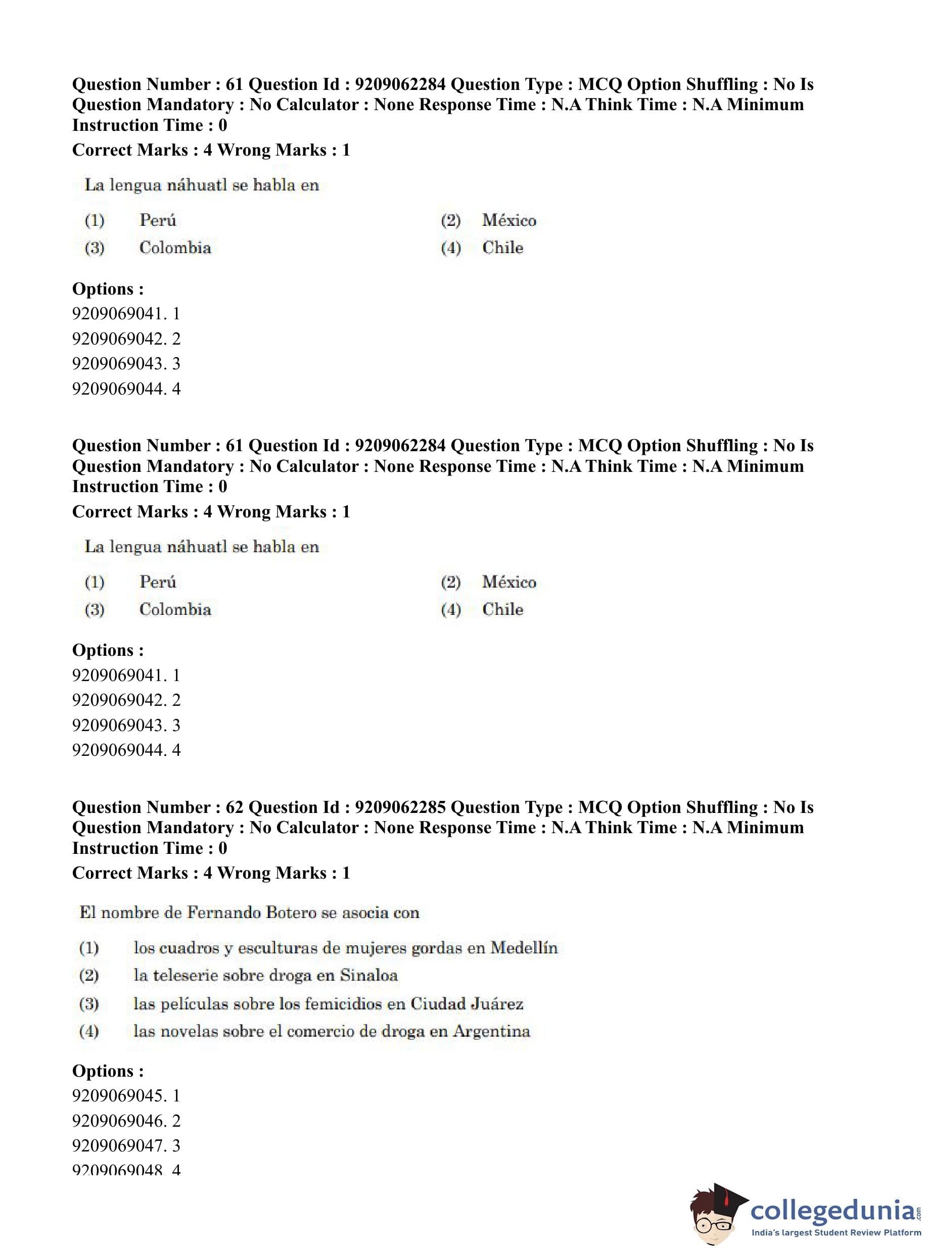 CUET PG 2023 Hispanic Question Paper in English (June 6 - Shift 2)