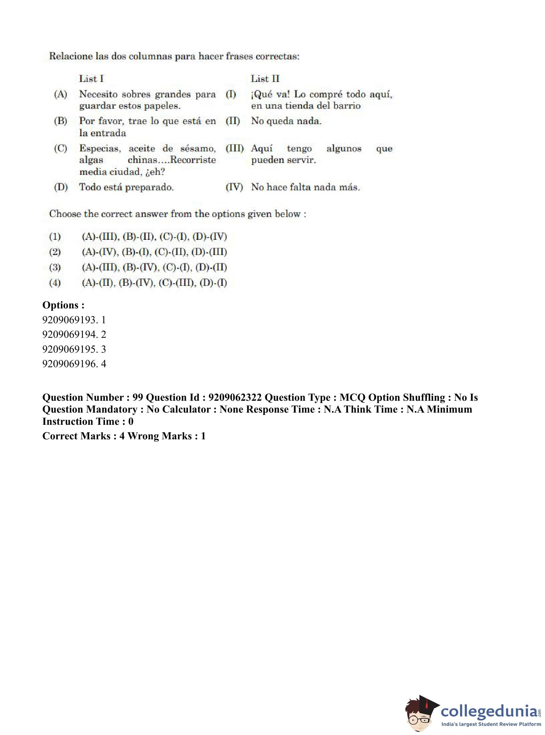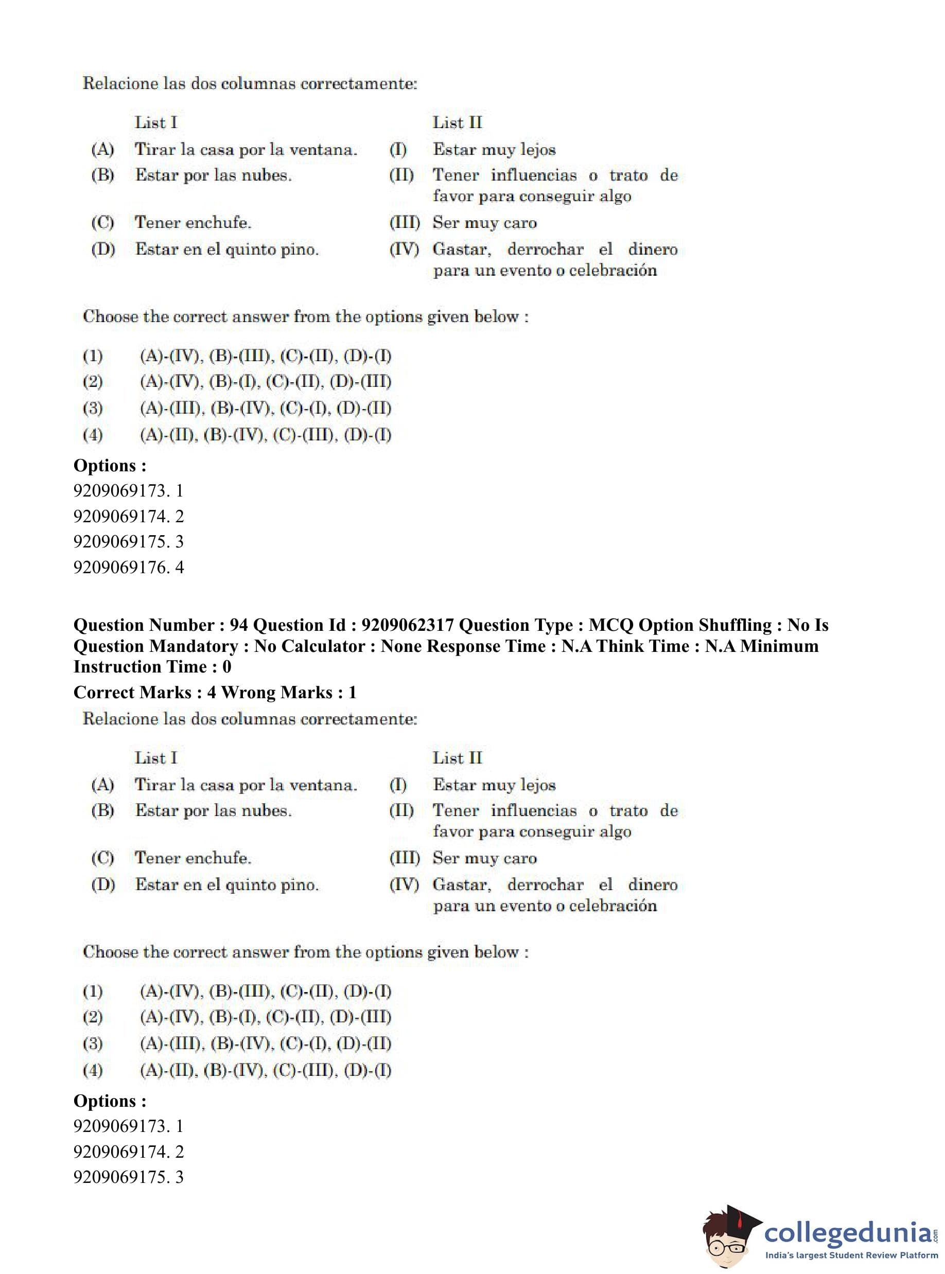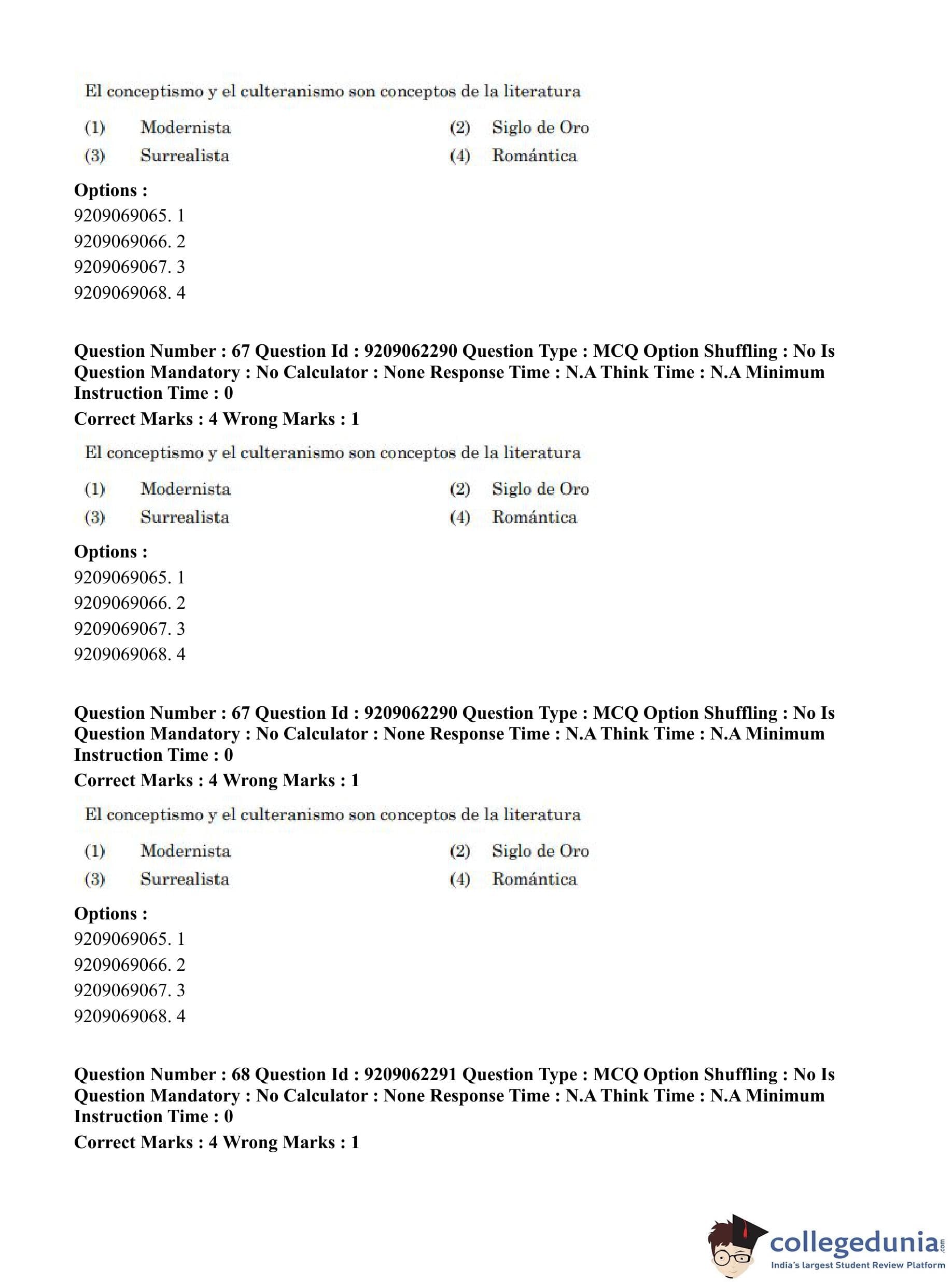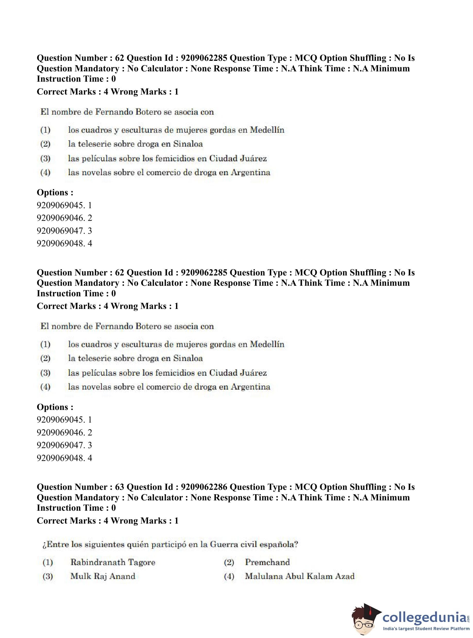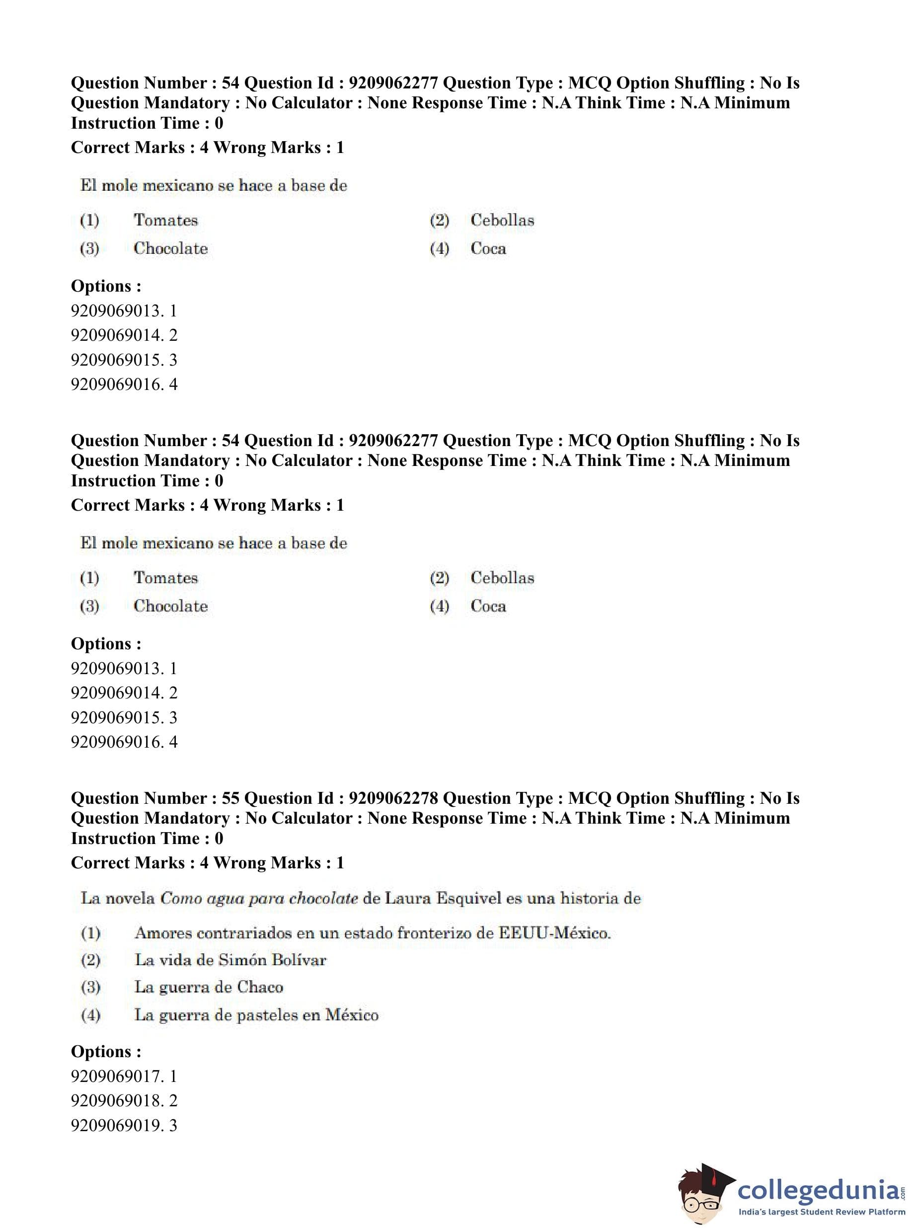 CUET PG 2023 Hispanic Question Paper in English (June 6 - Shift 2)
