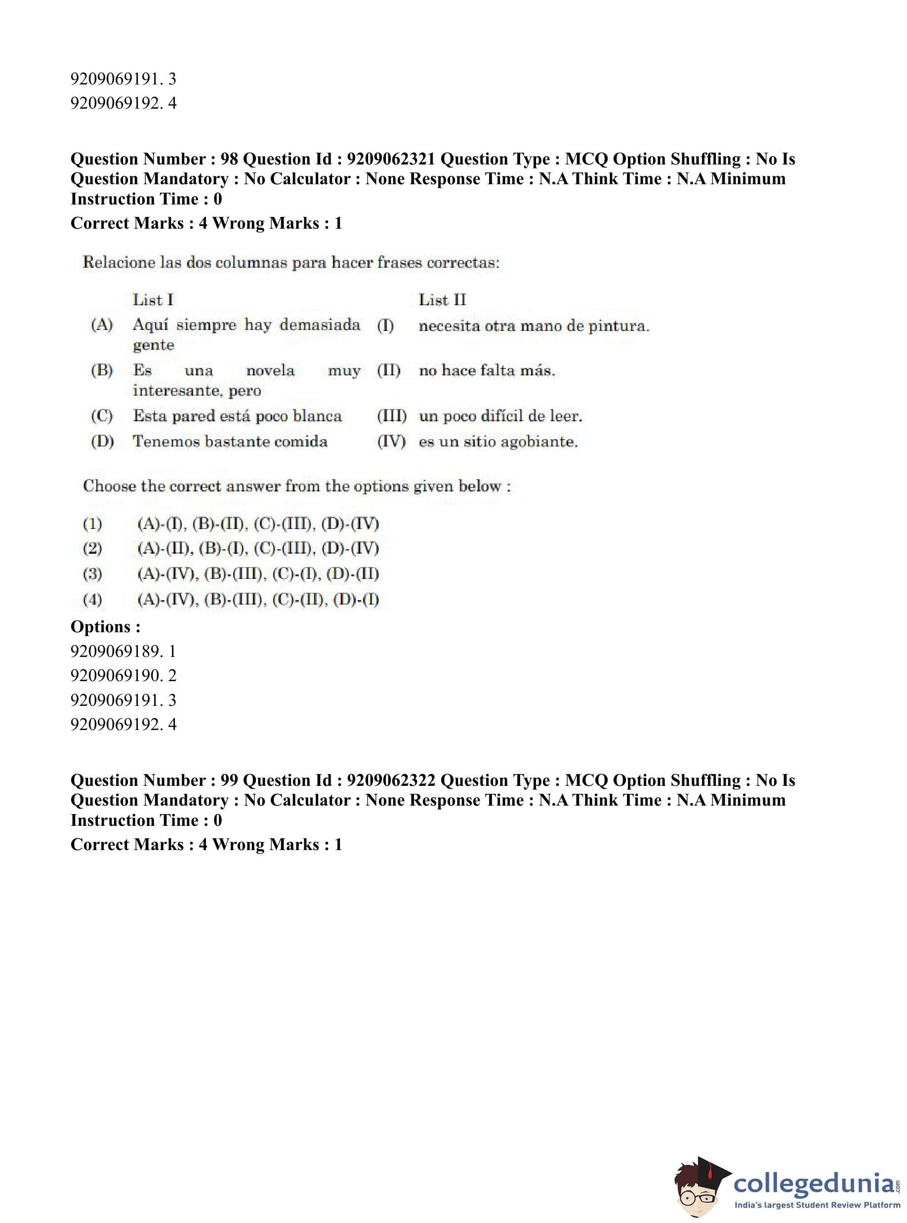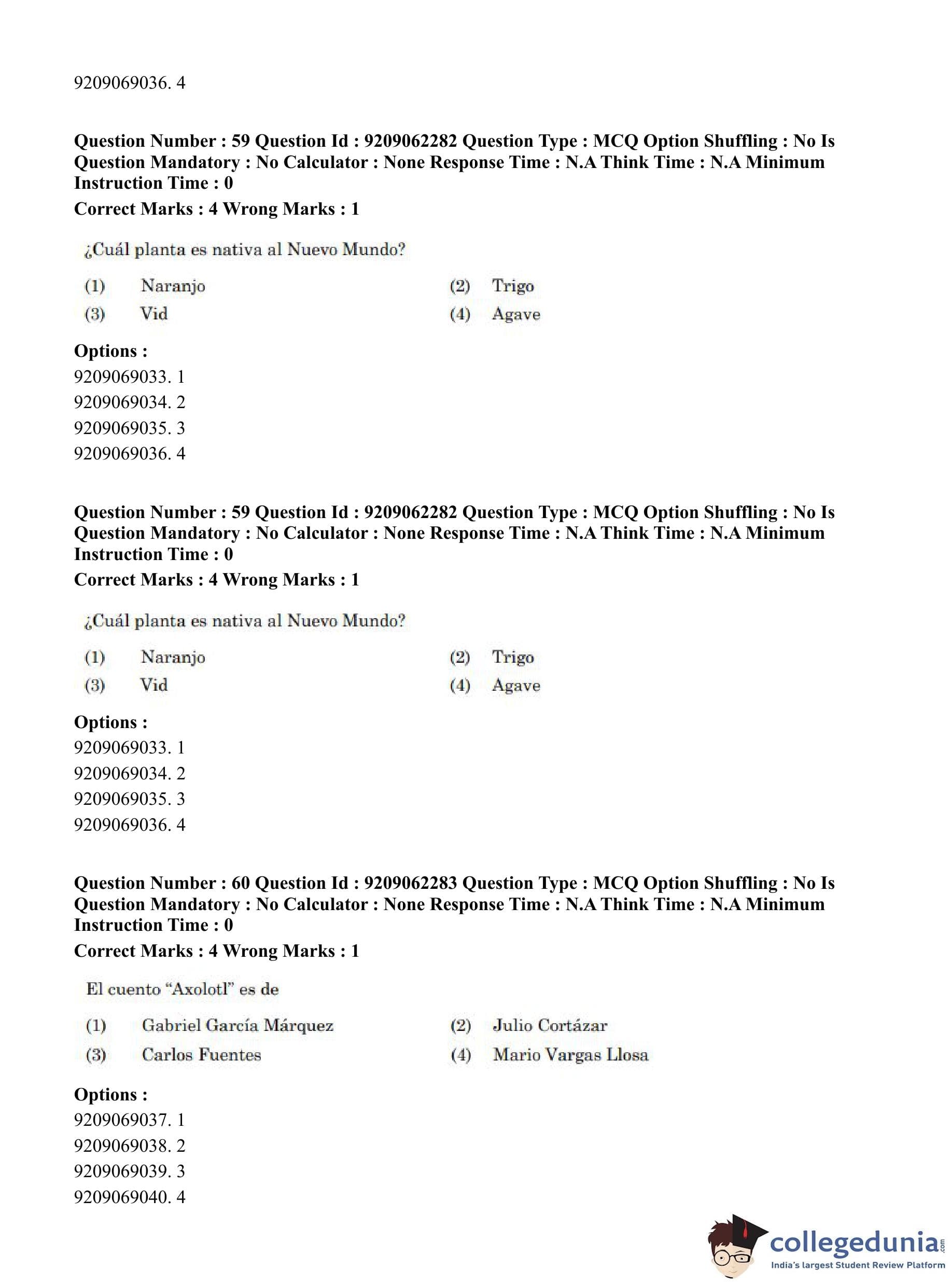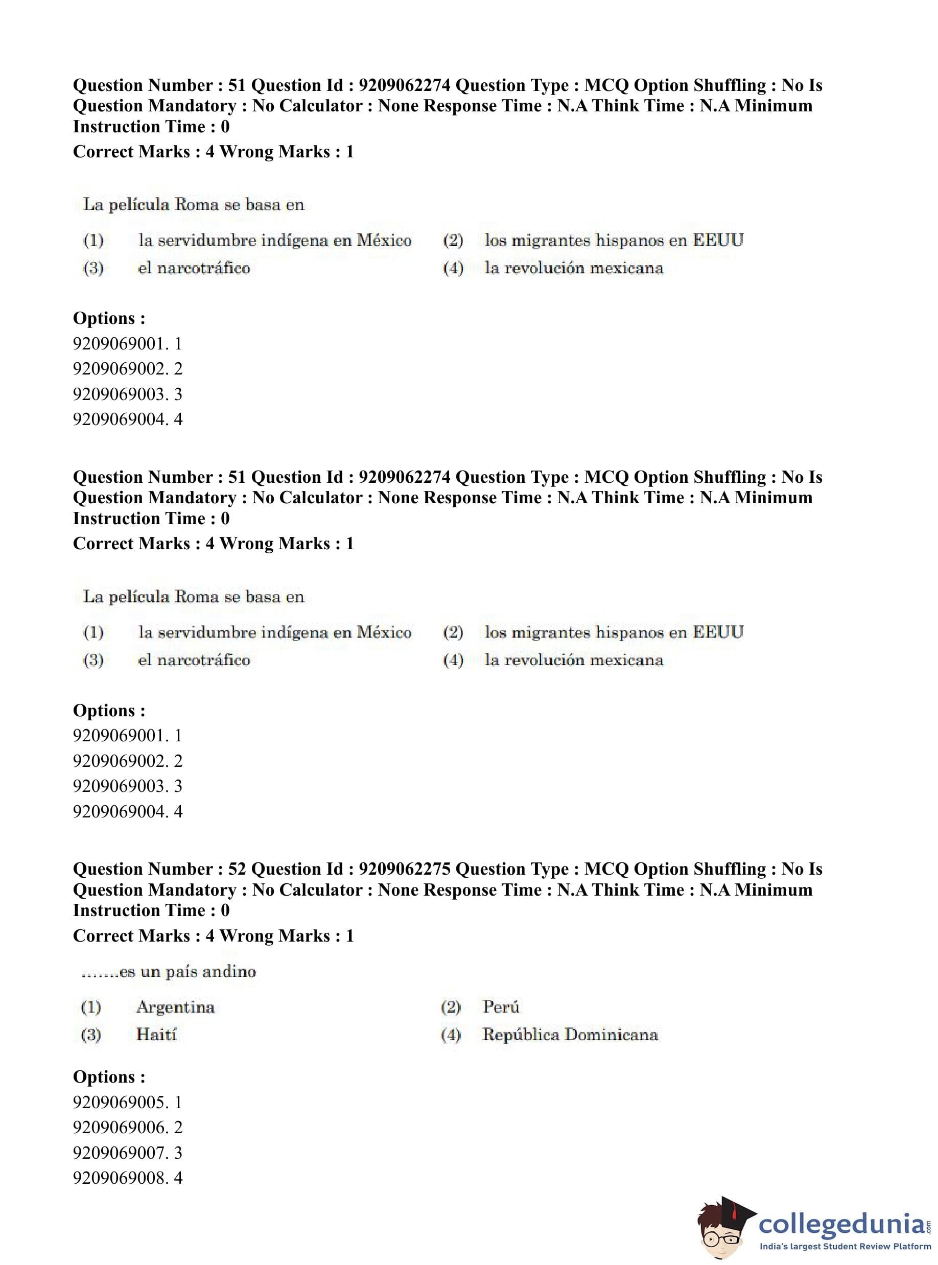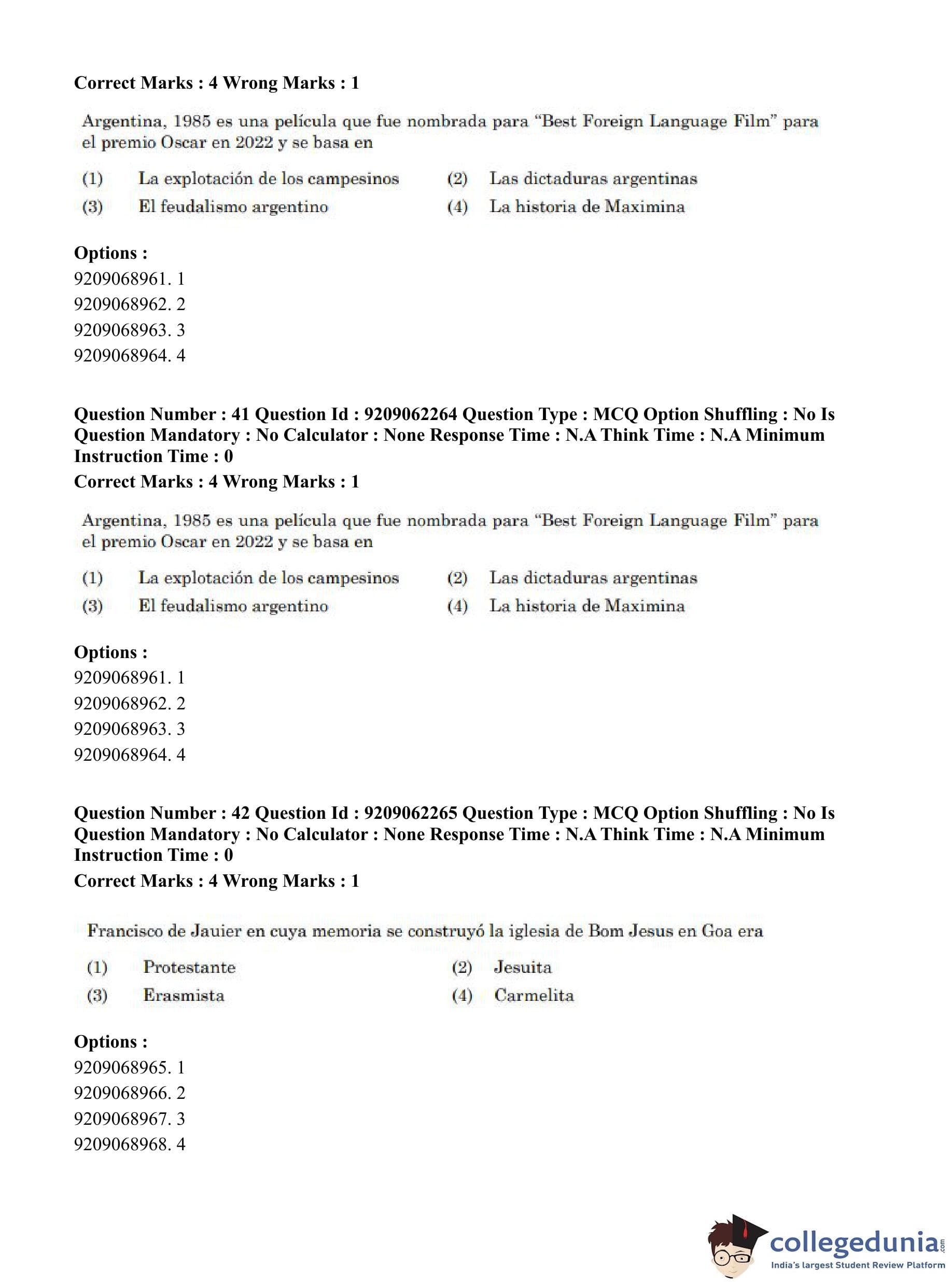 CUET PG 2023 Hispanic Question Paper in English (June 6 - Shift 2)