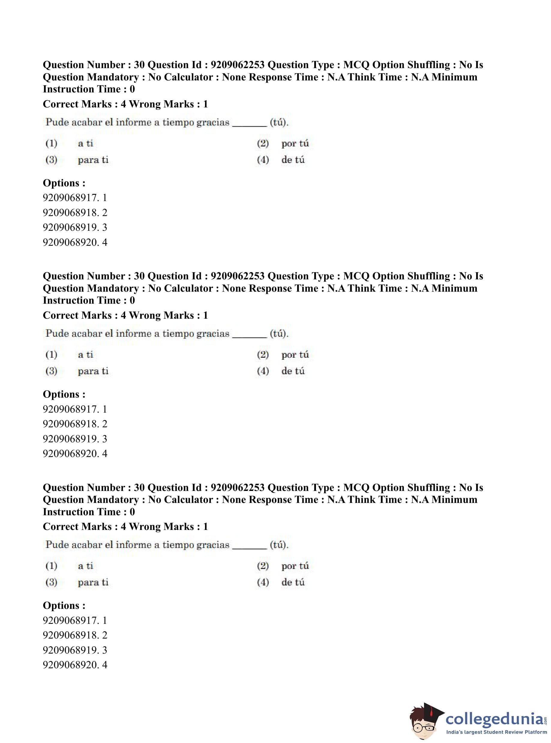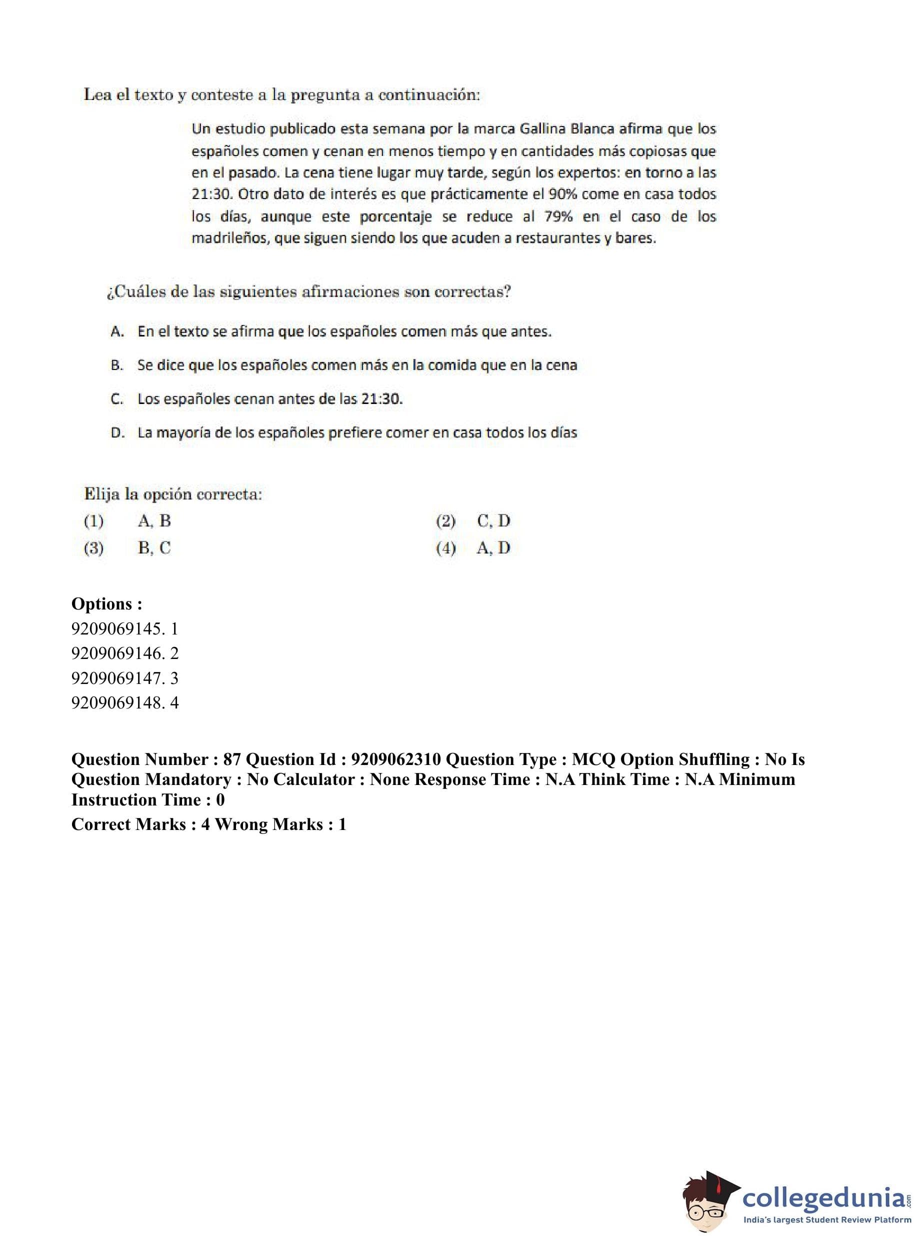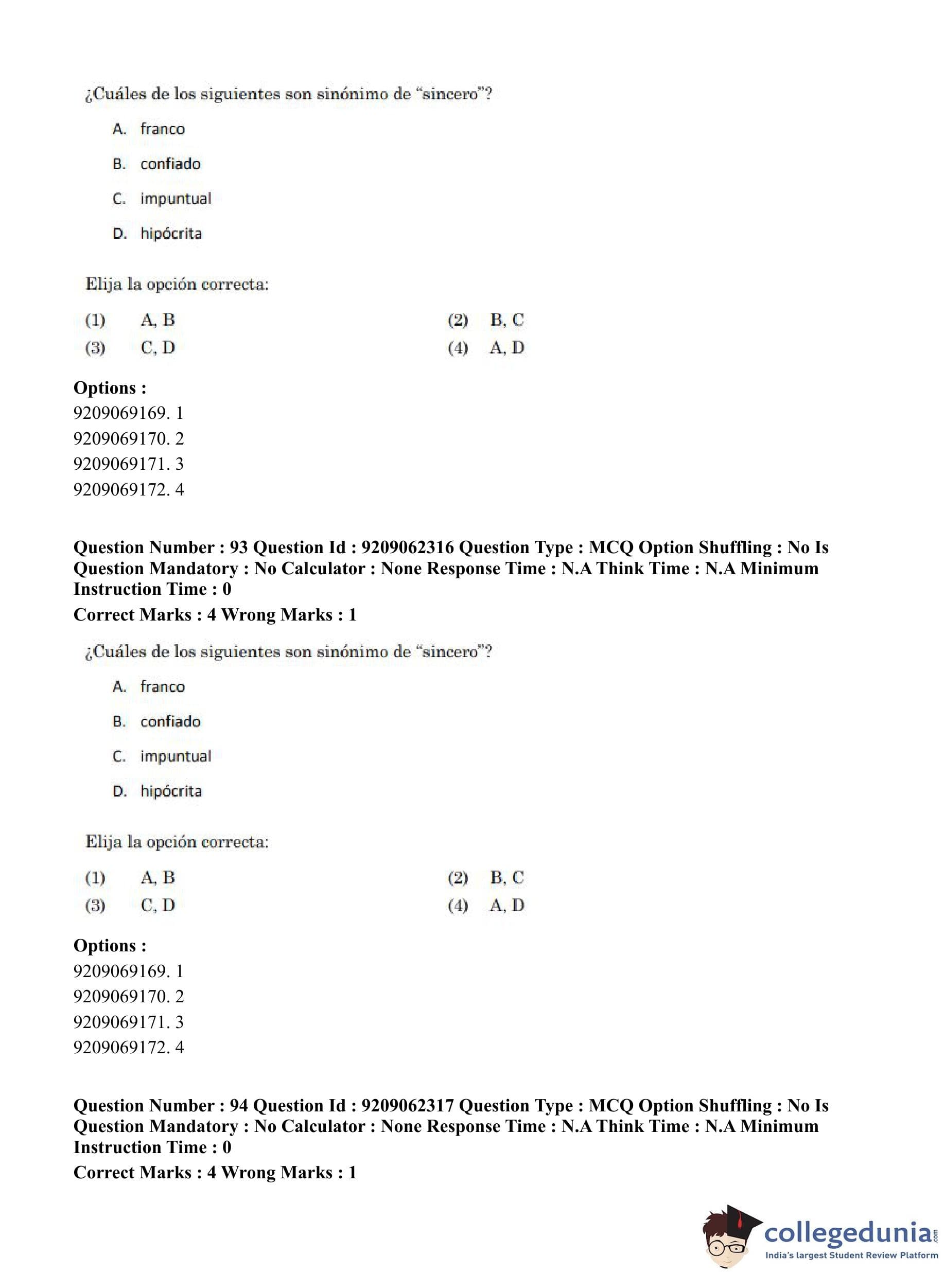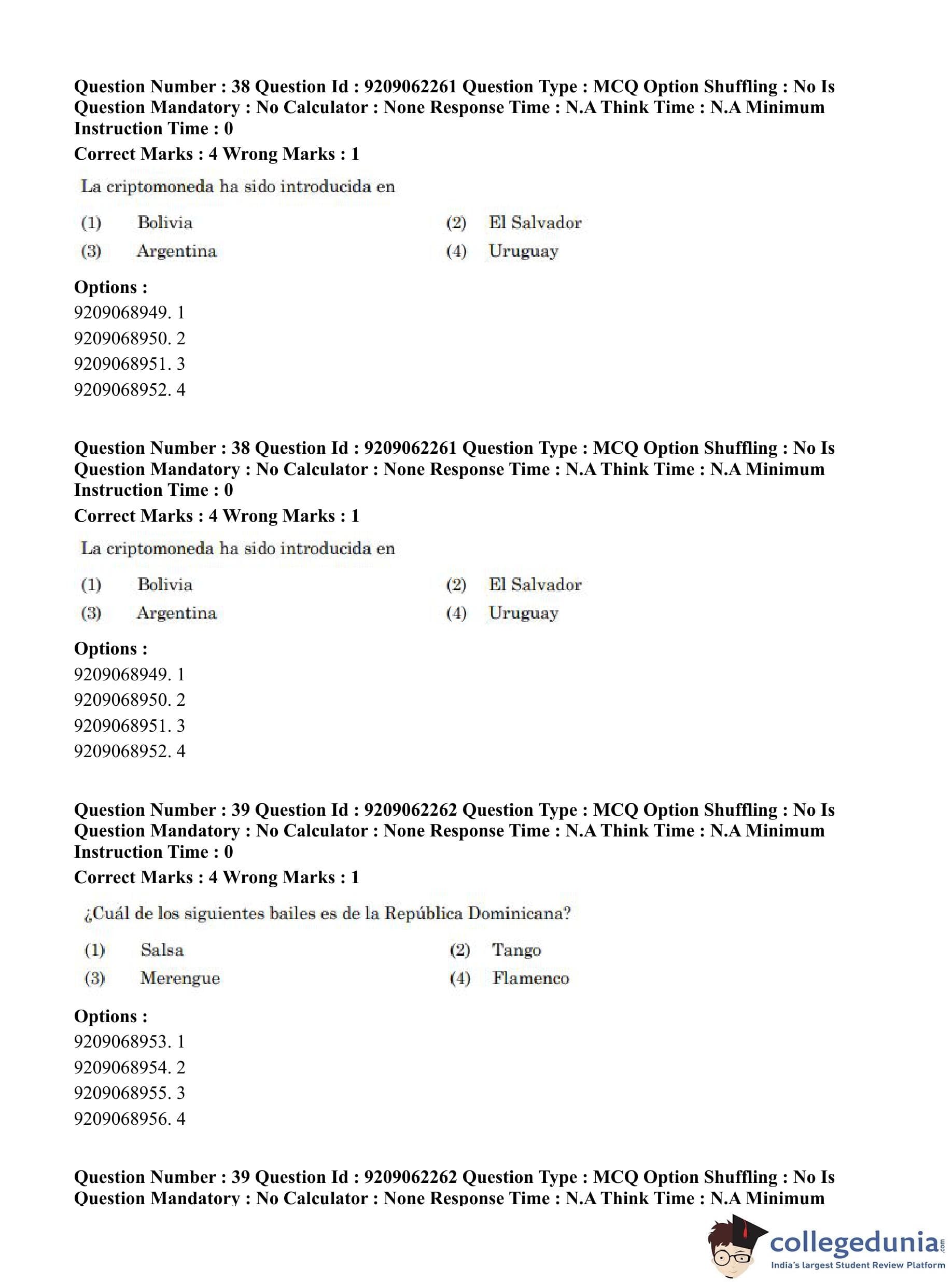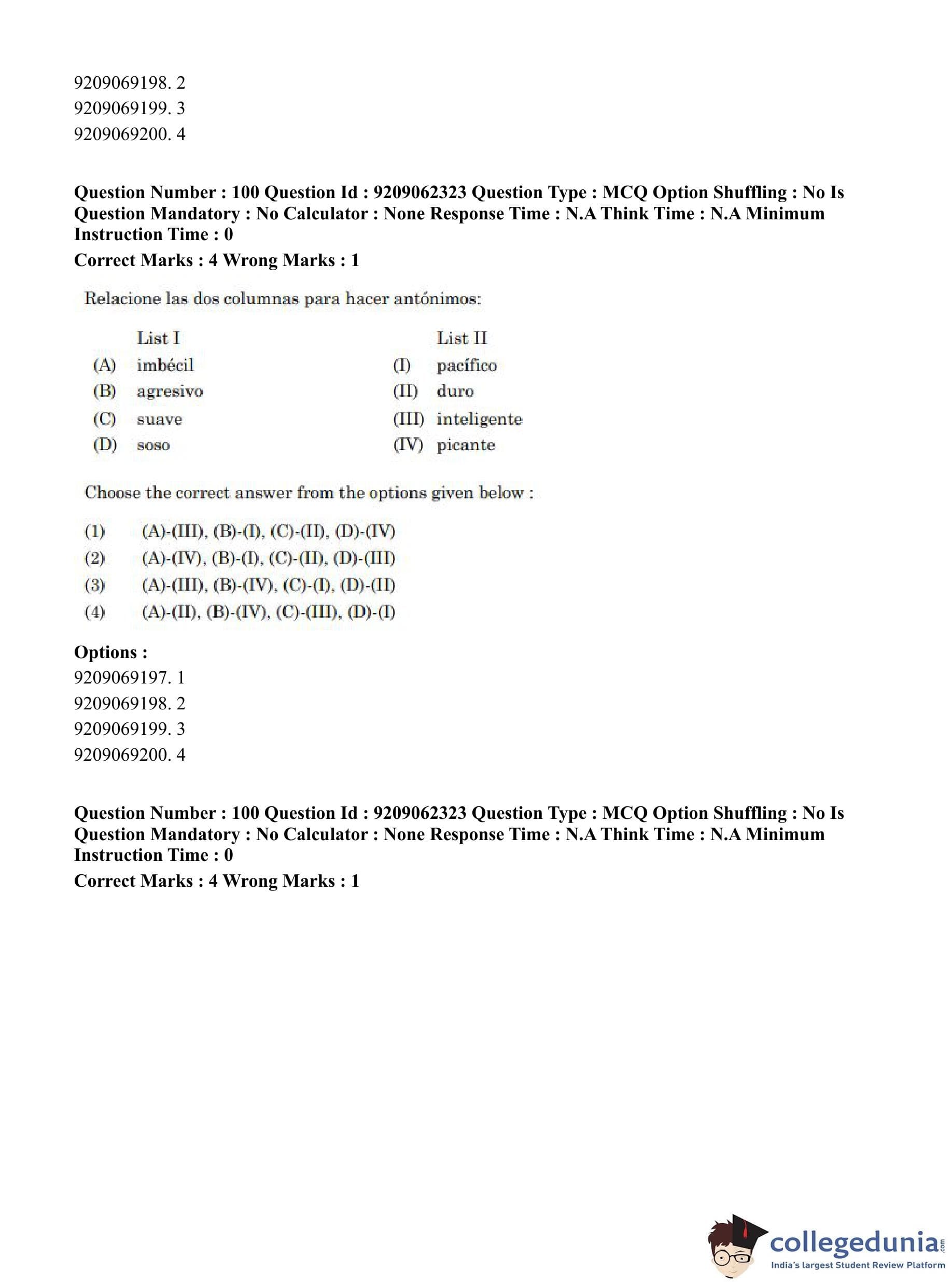 CUET PG 2023 Hispanic Question Paper in English (June 6 - Shift 2)