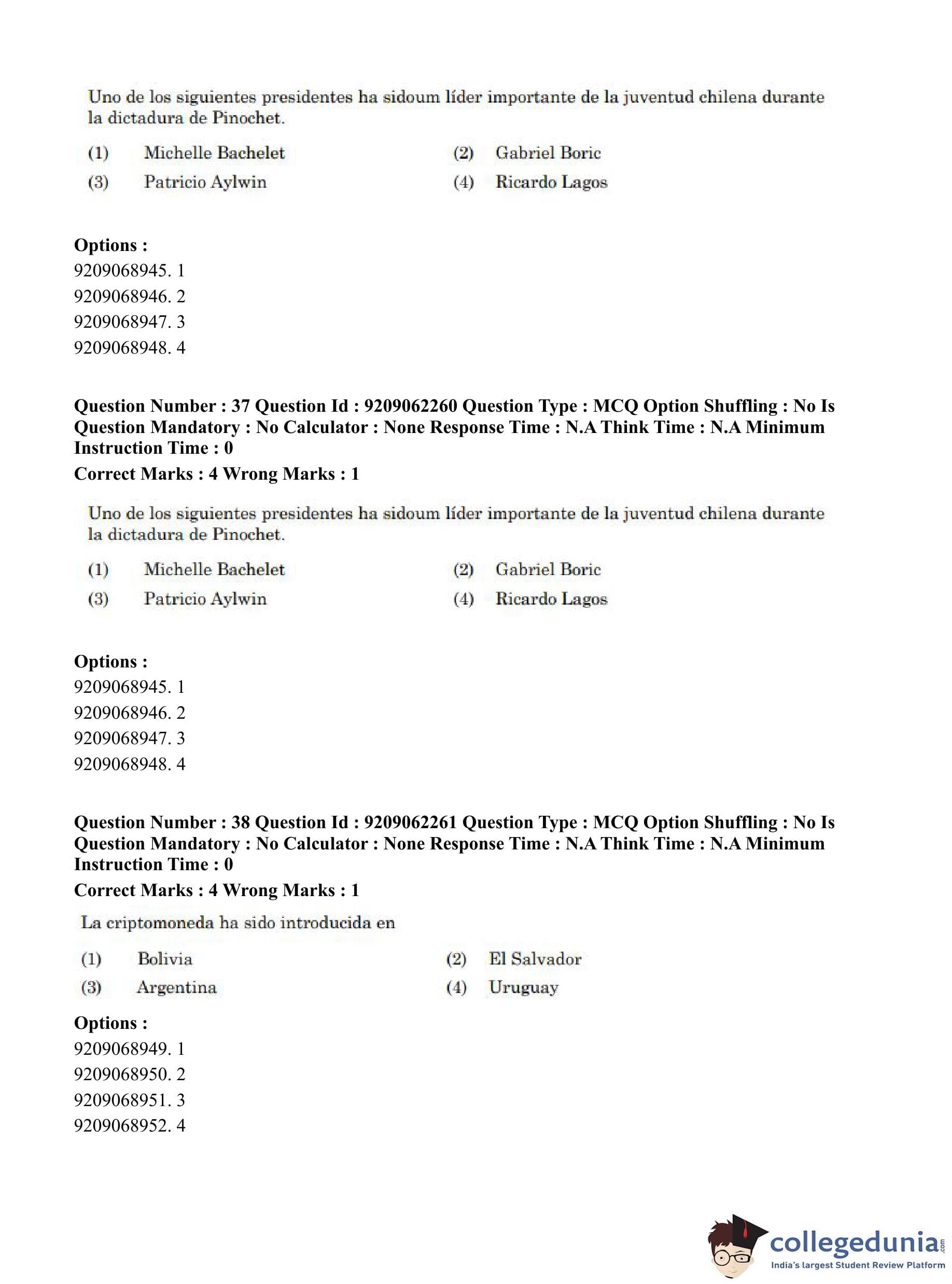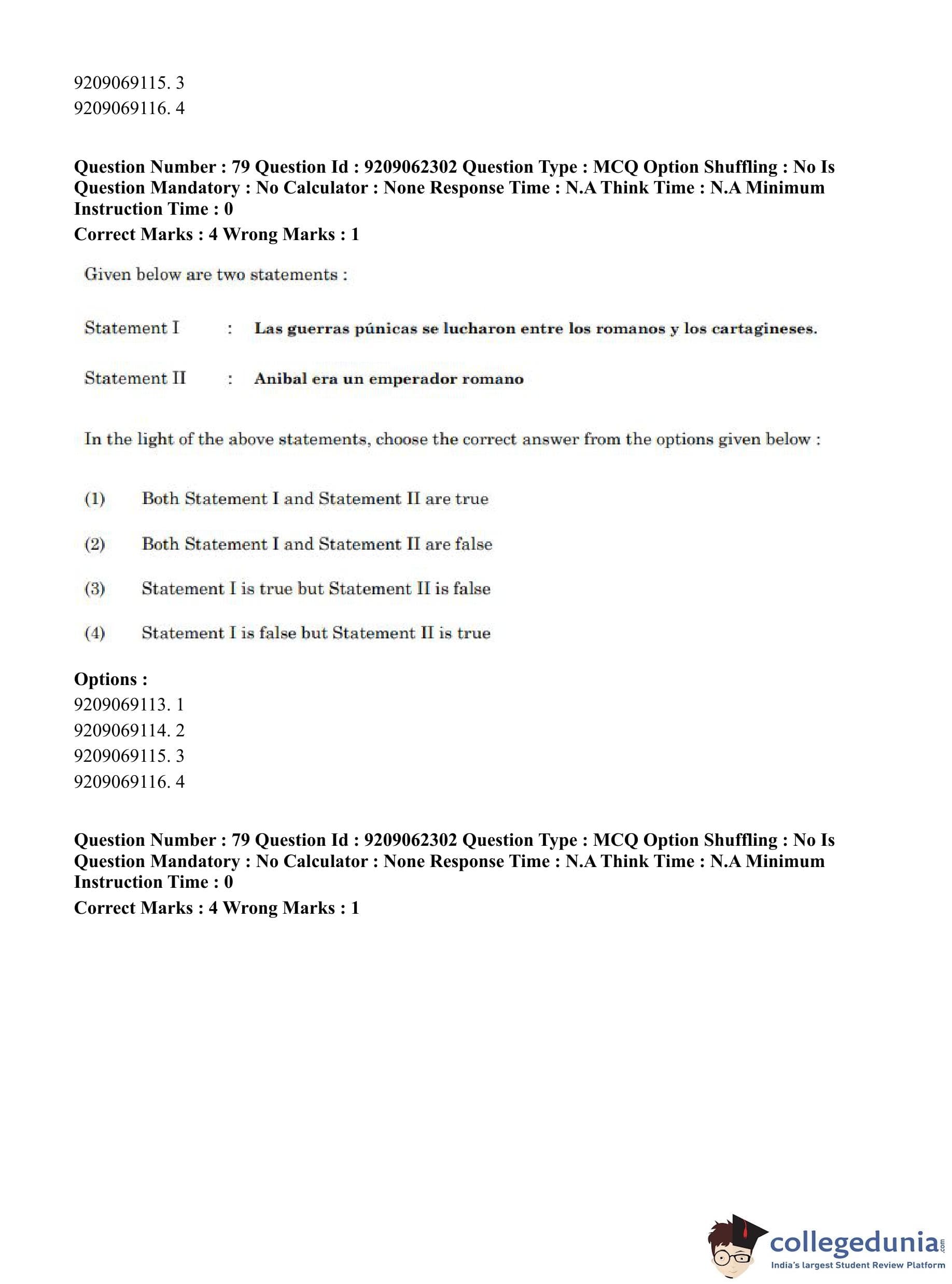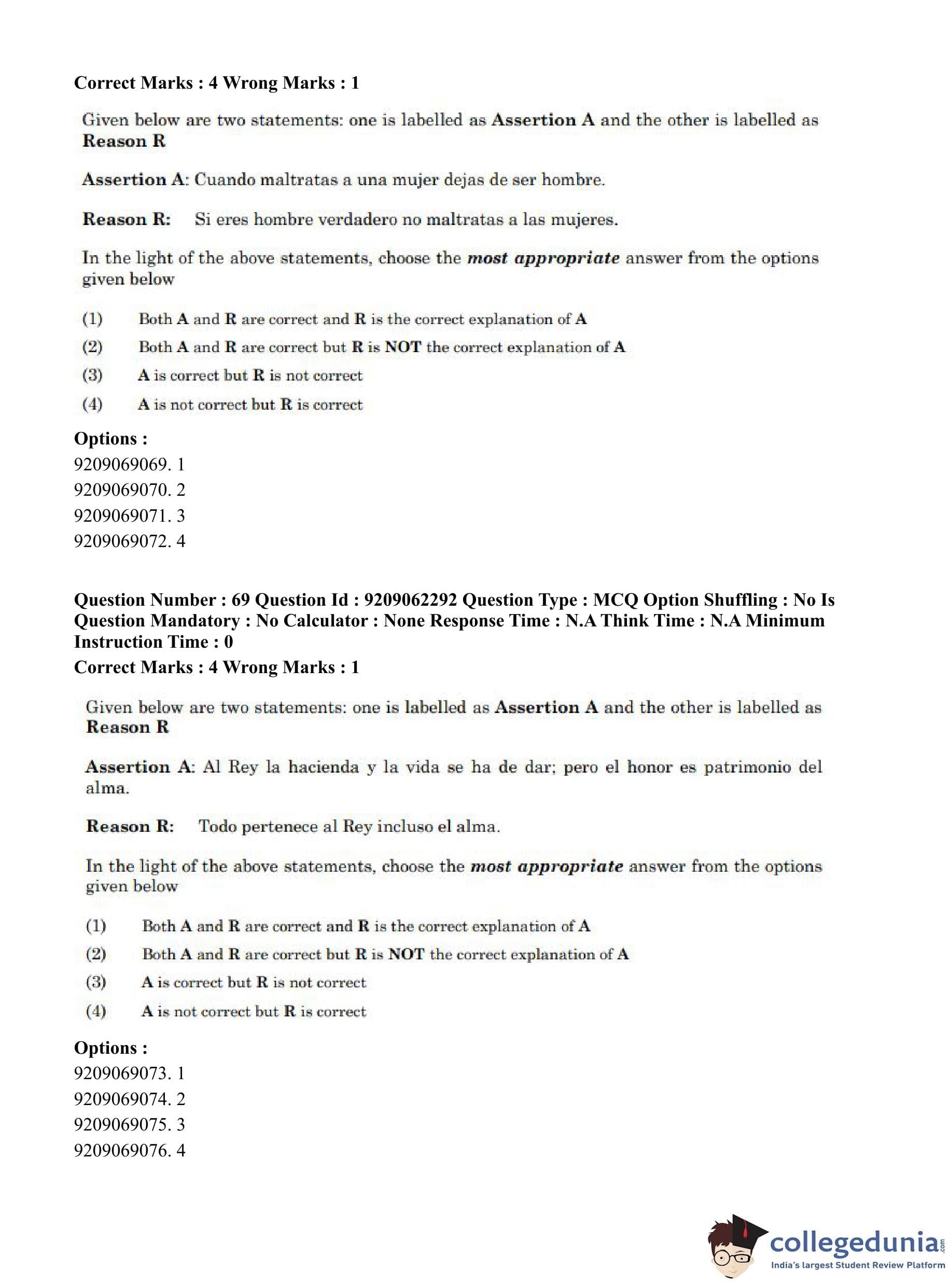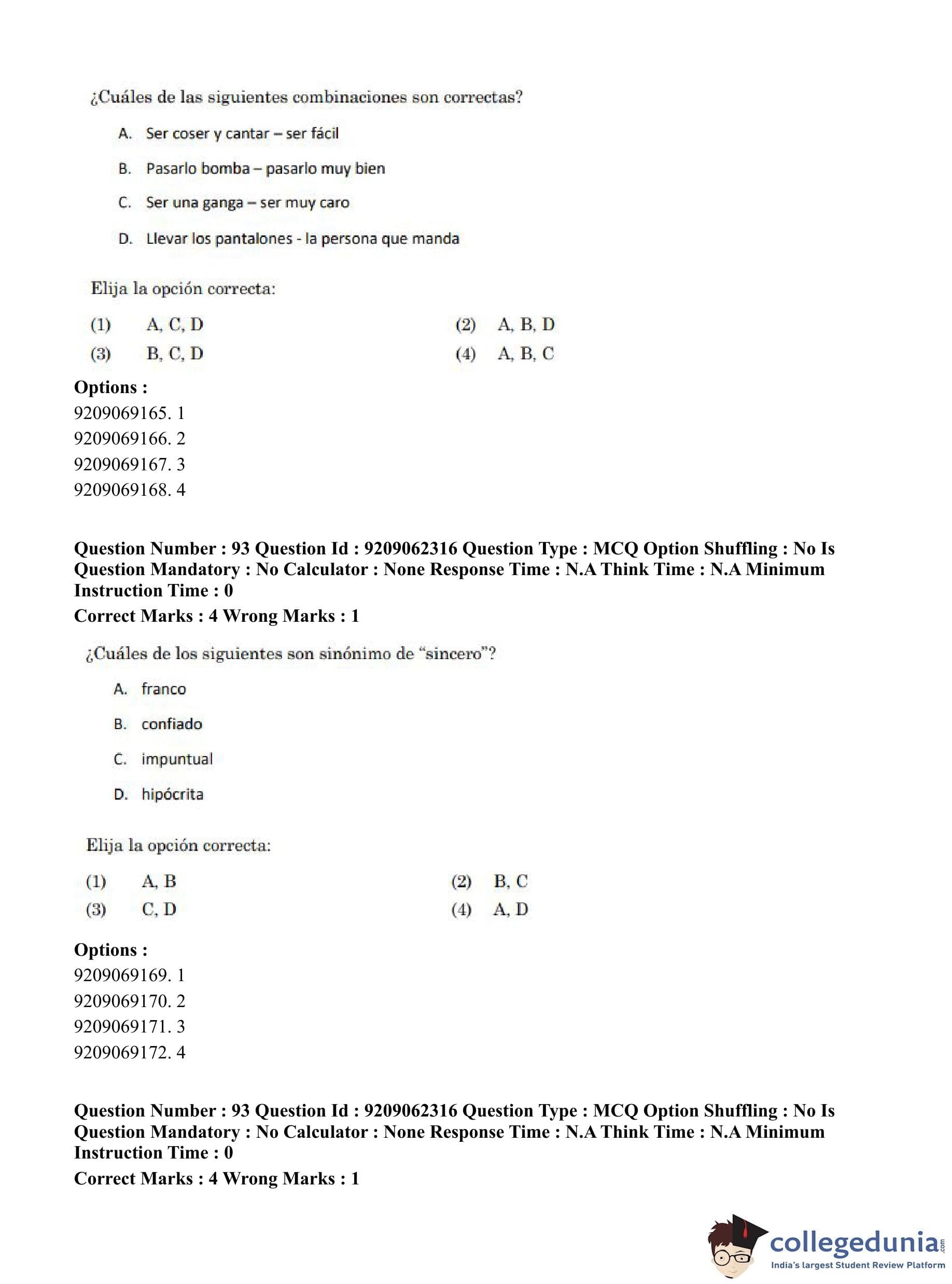 CUET PG 2023 Hispanic Question Paper in English (June 6 - Shift 2)