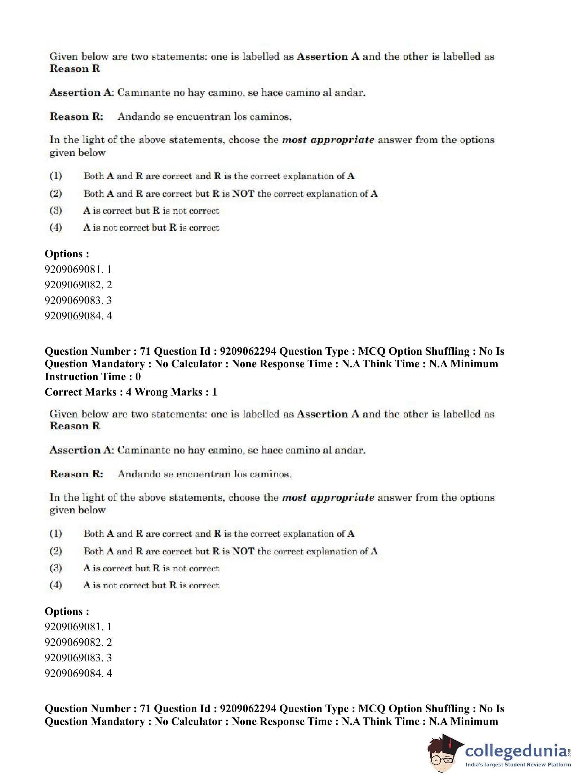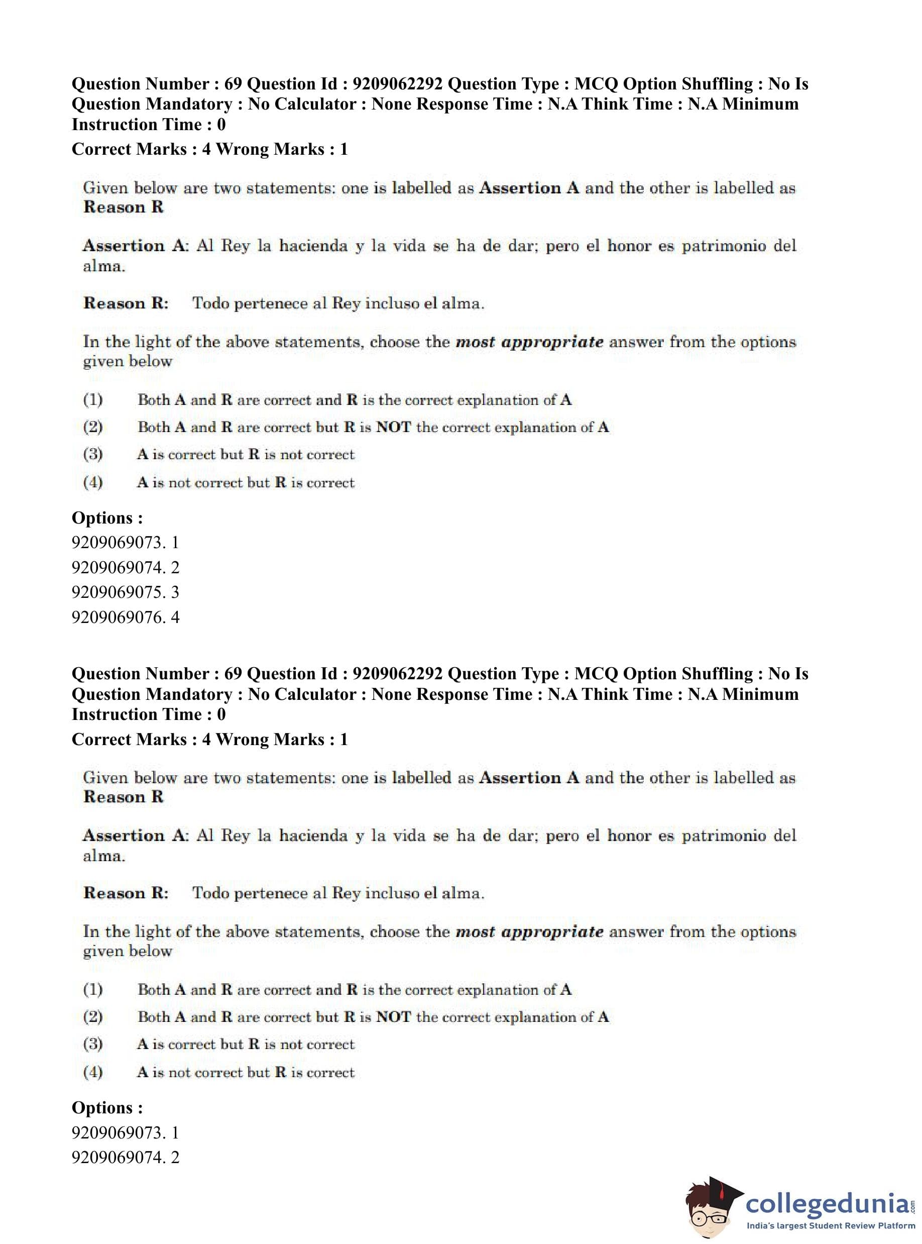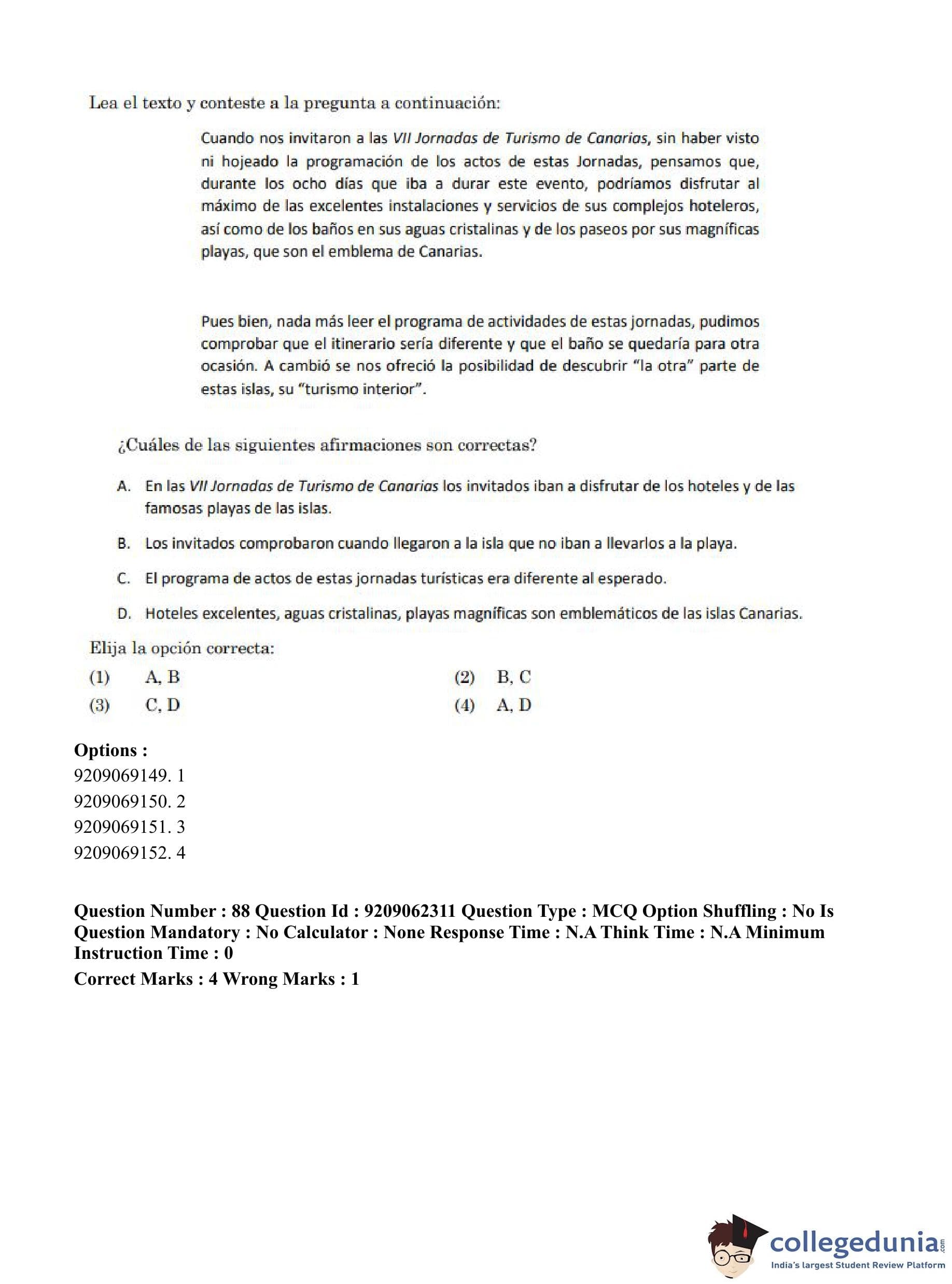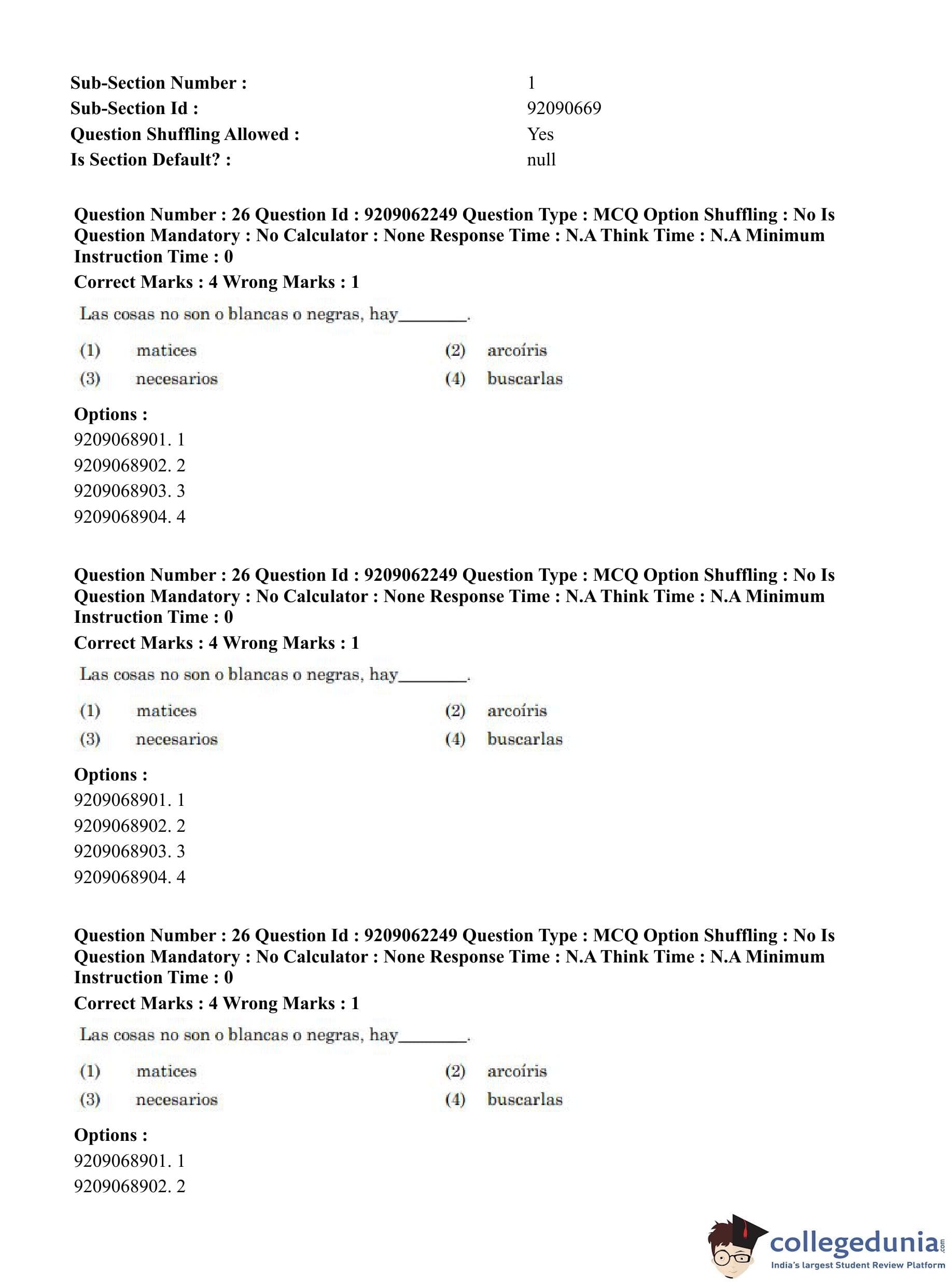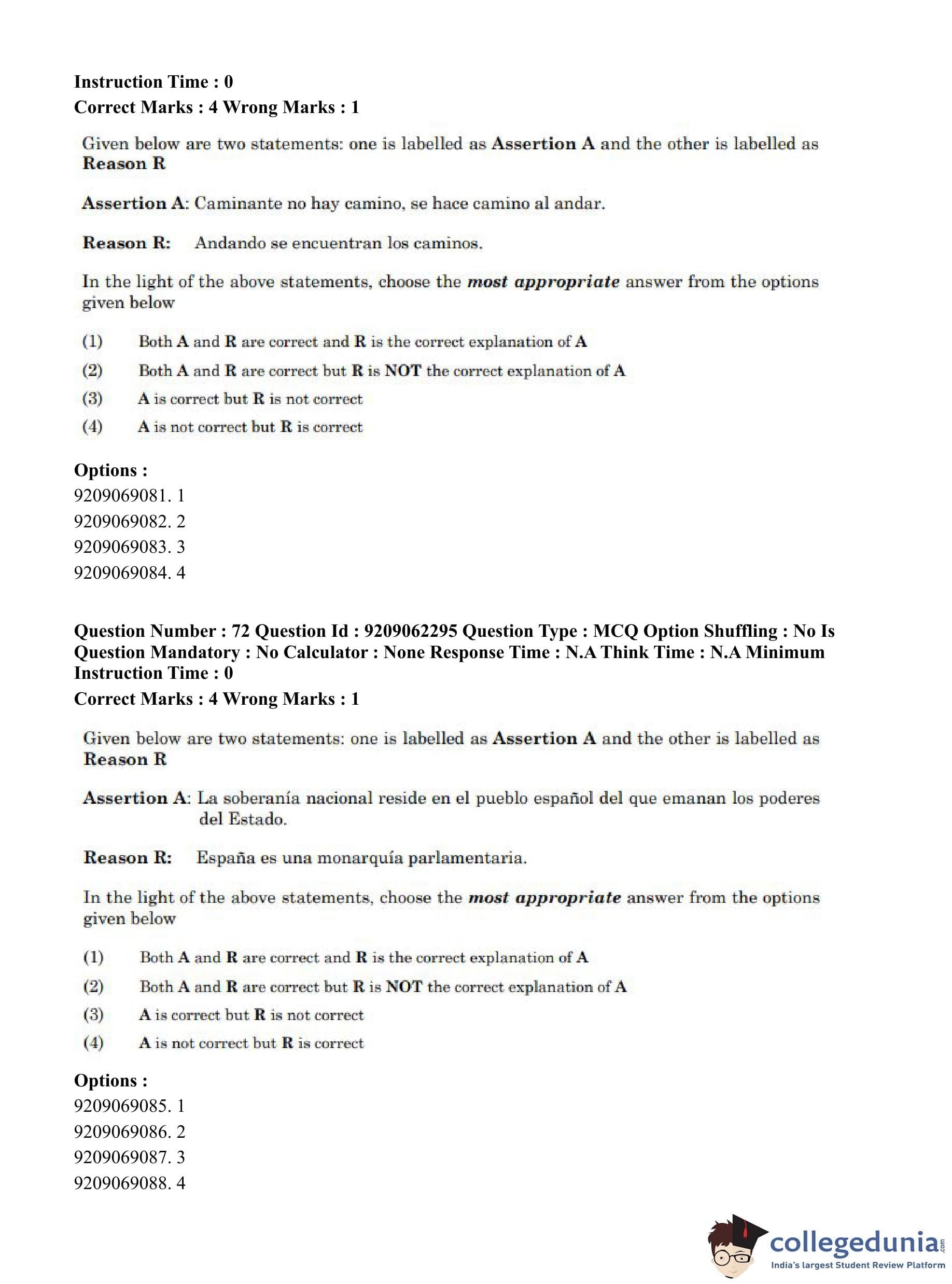 CUET PG 2023 Hispanic Question Paper in English (June 6 - Shift 2)
