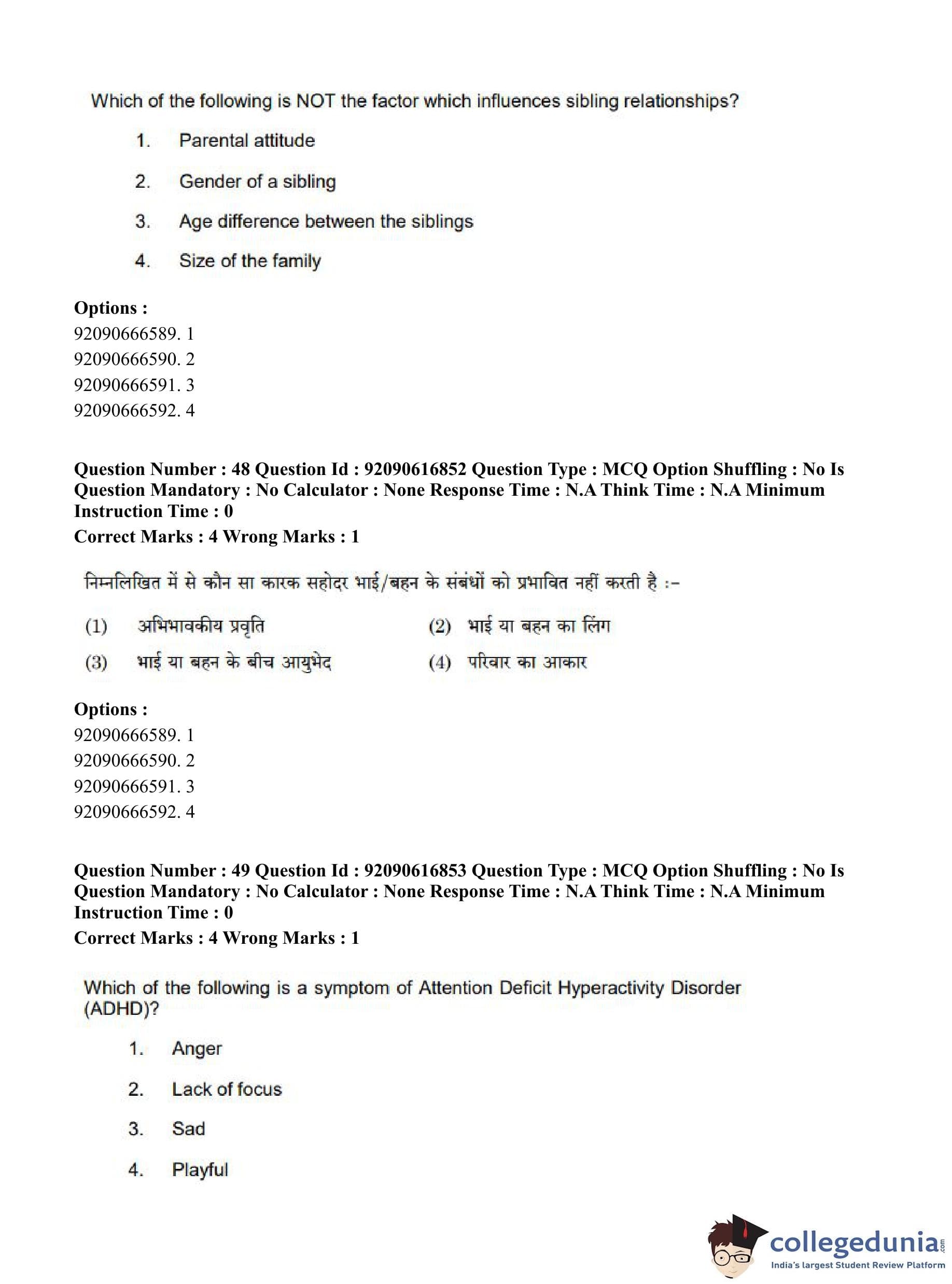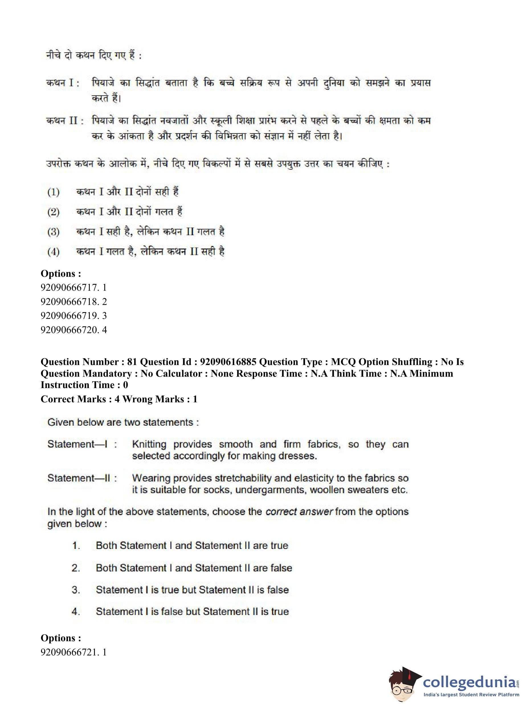 CUET PG 2023 Home Science Question Paper in English (June 14 - Shift 1)
