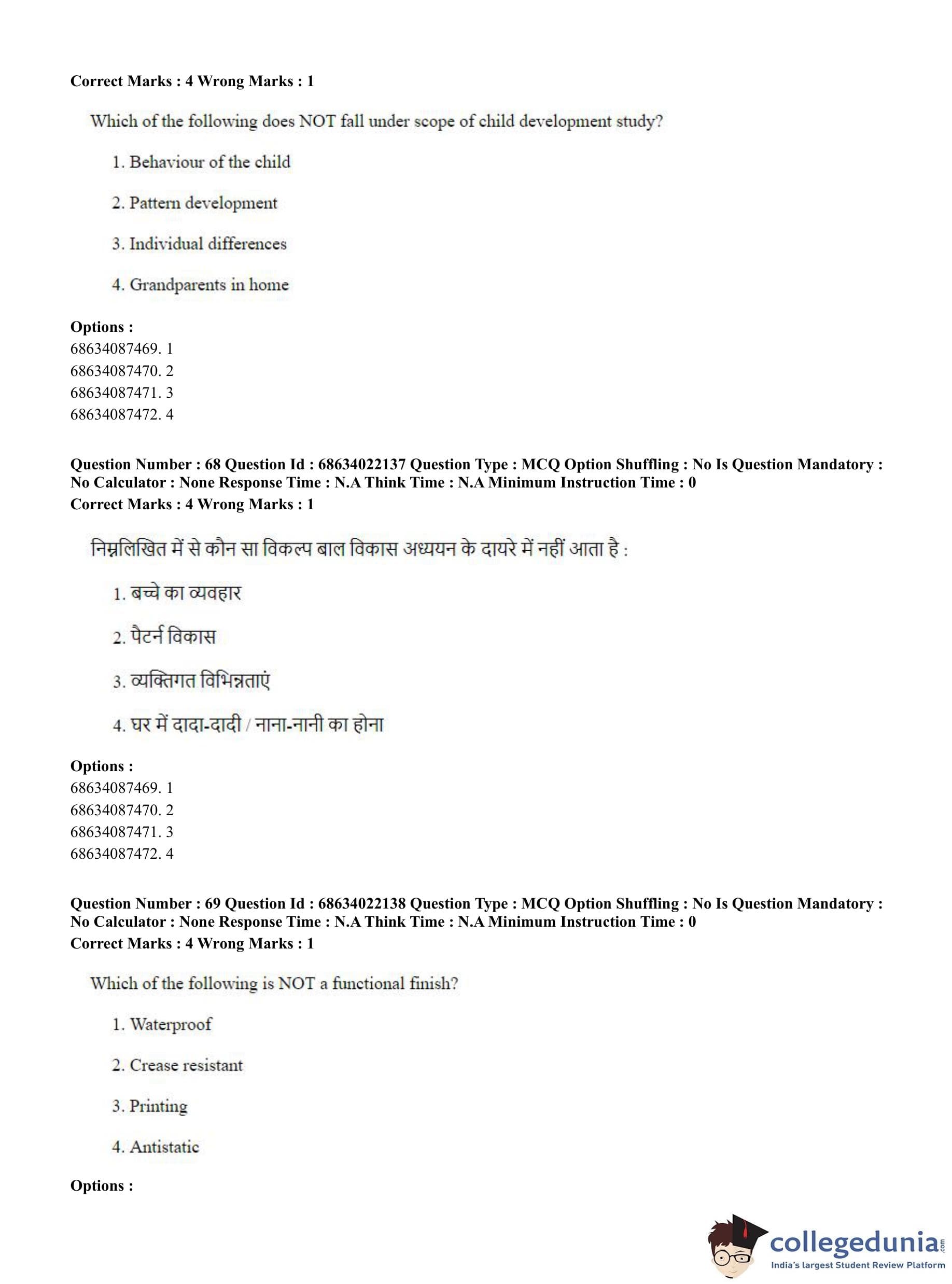 CUET PG 2023 Home Science Question Paper in English (June 15 - Shift 3)