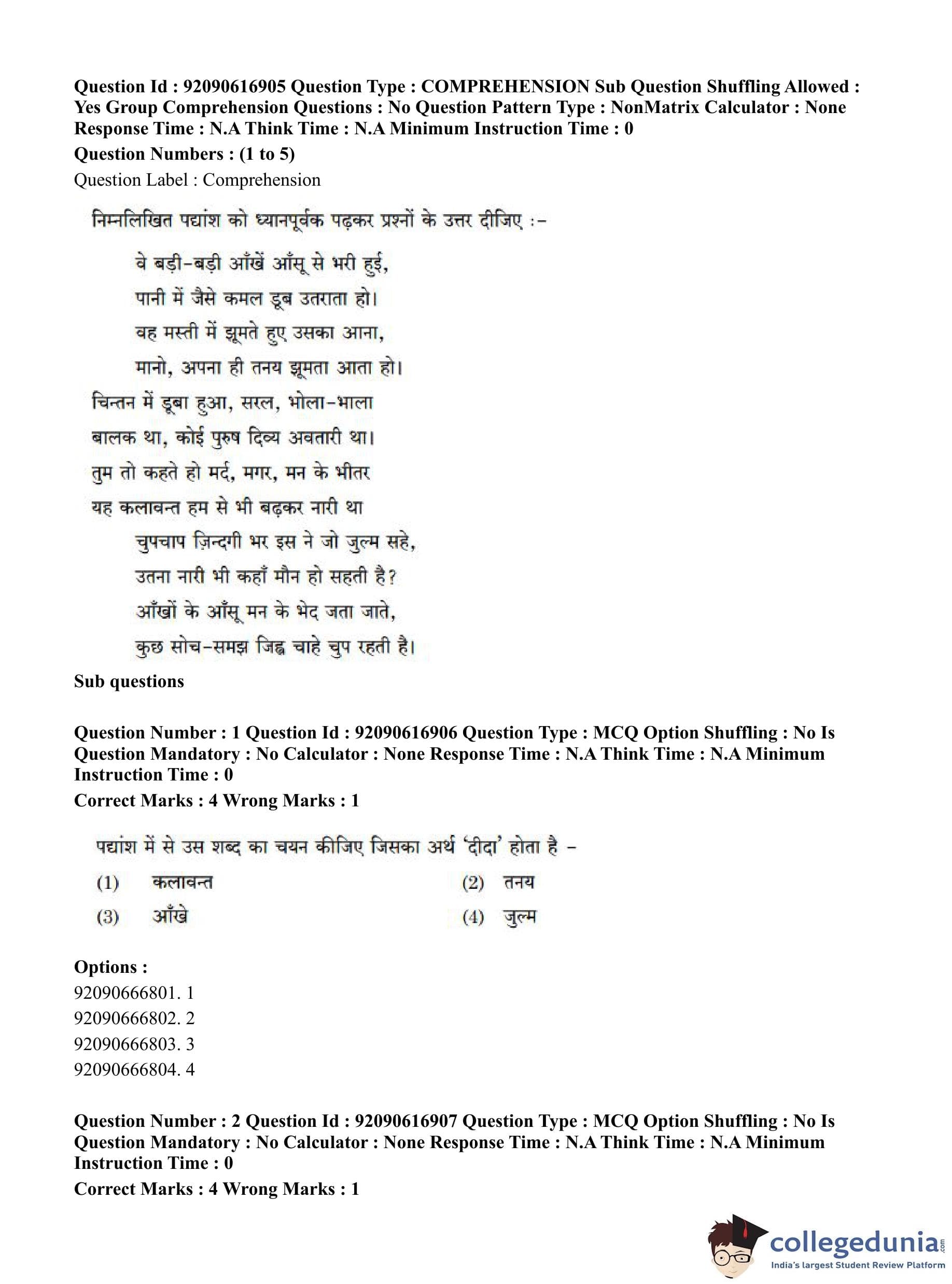 CUET PG 2023 Home Science Question Paper with Answer Key PDF in Hindi is available for download here. The exam was conducted by National Testing Agency (NTA) on June 14, 2023 in Shift 1. The question paper comprised a total of 100 questions divided into 2 sections.