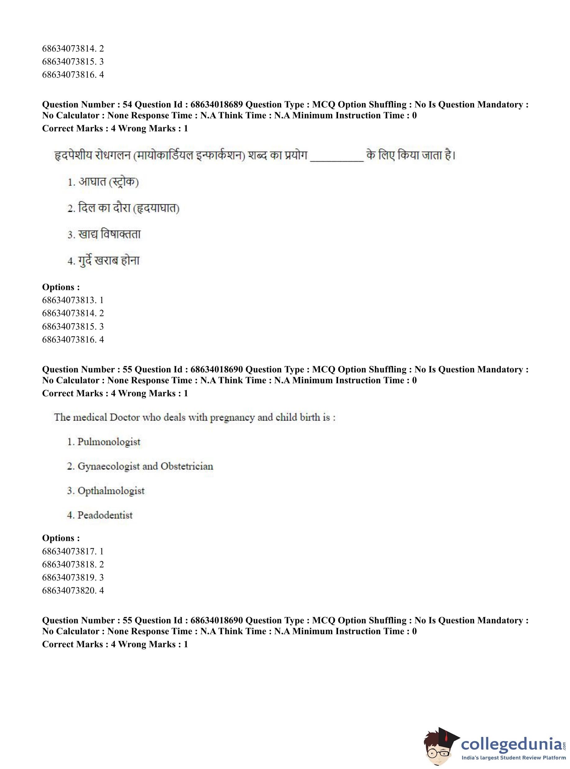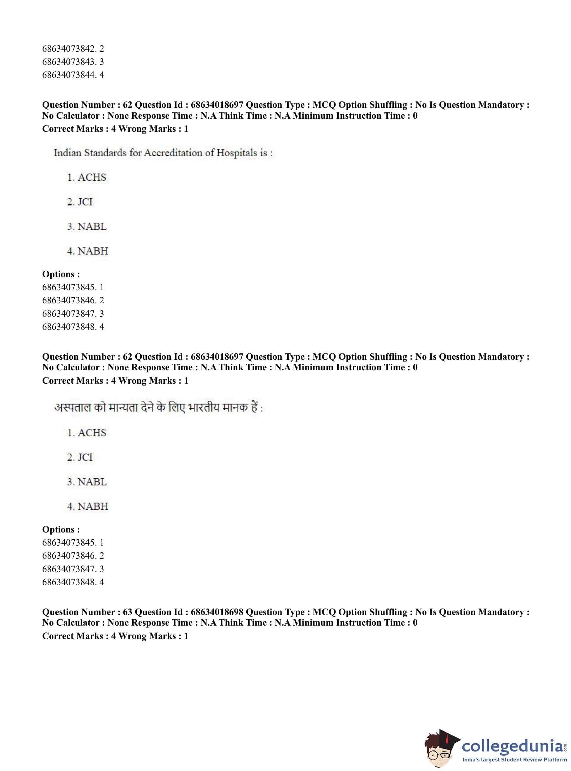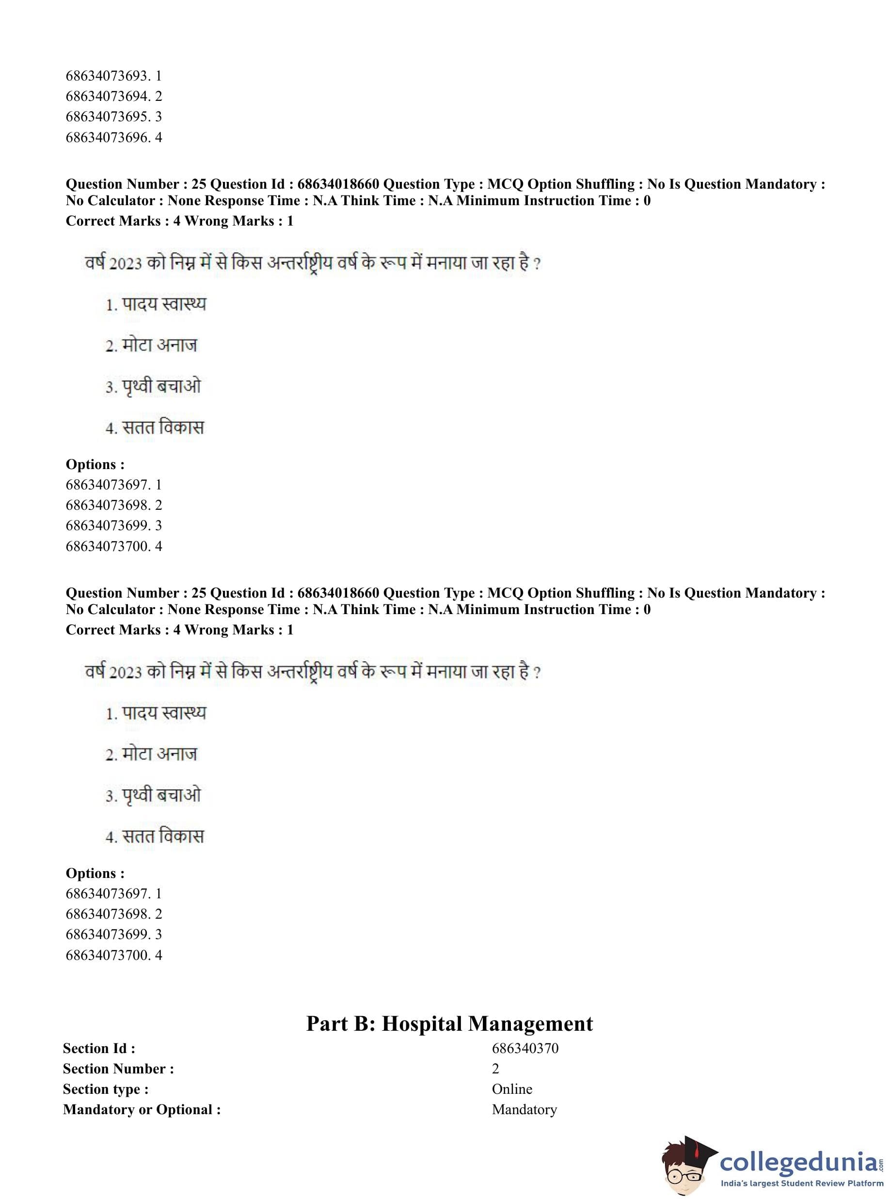 CUET PG 2023 Hospital Management Question Paper in Hindi (June 13 - Shift 3)