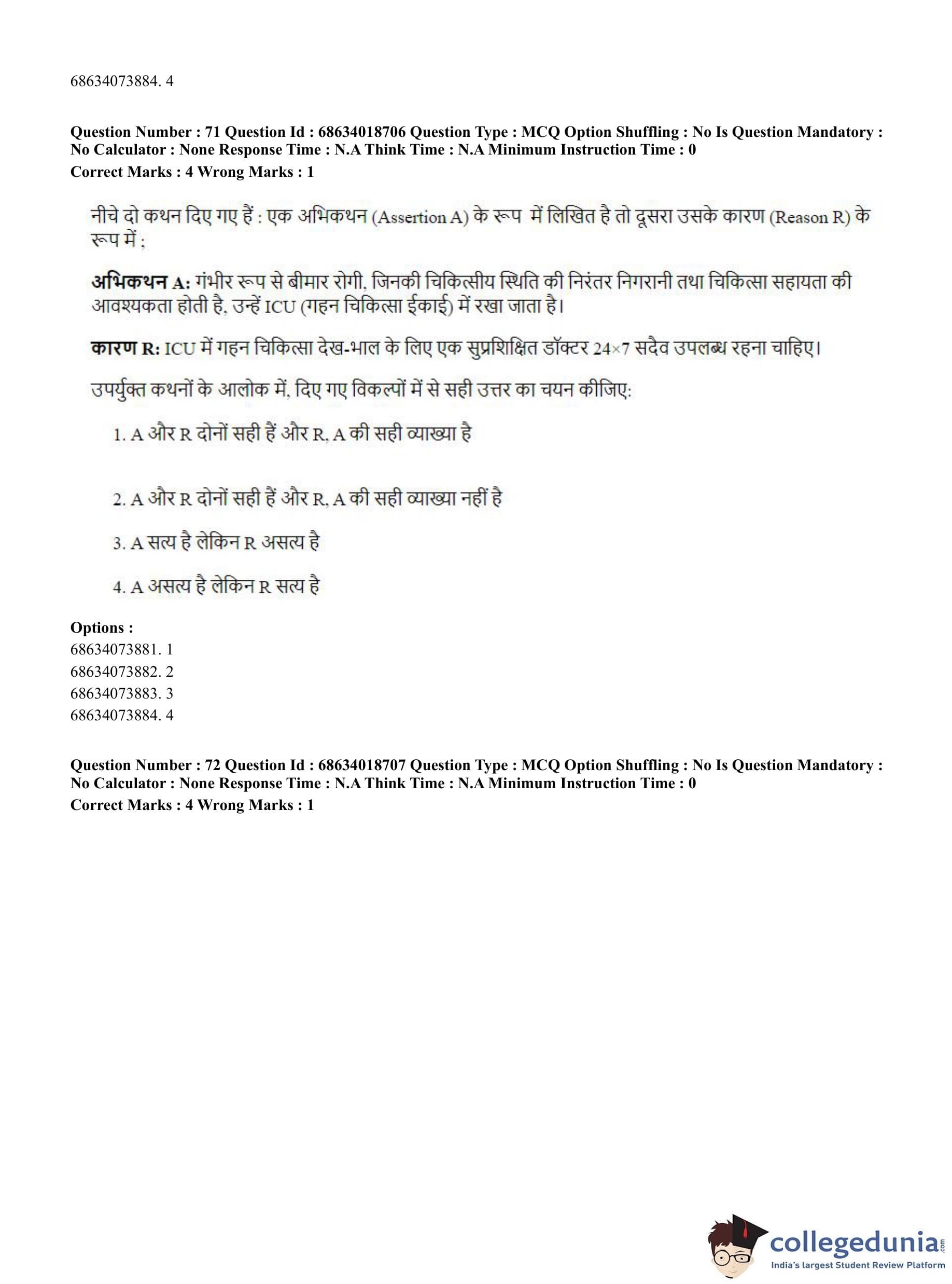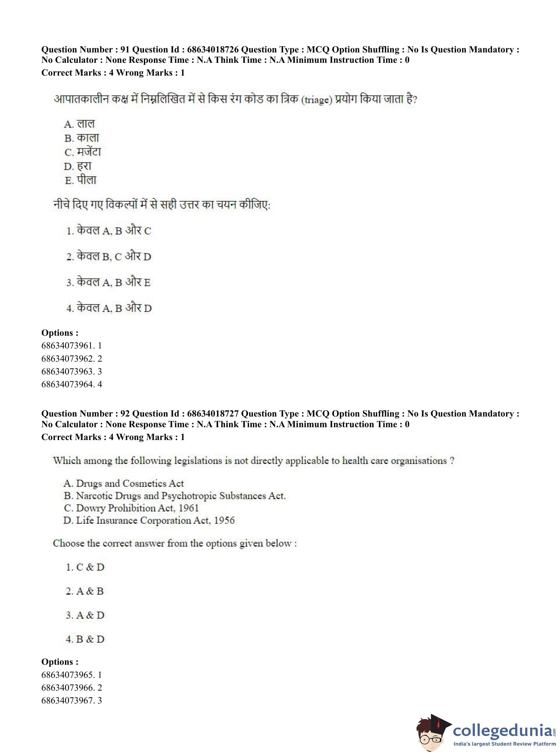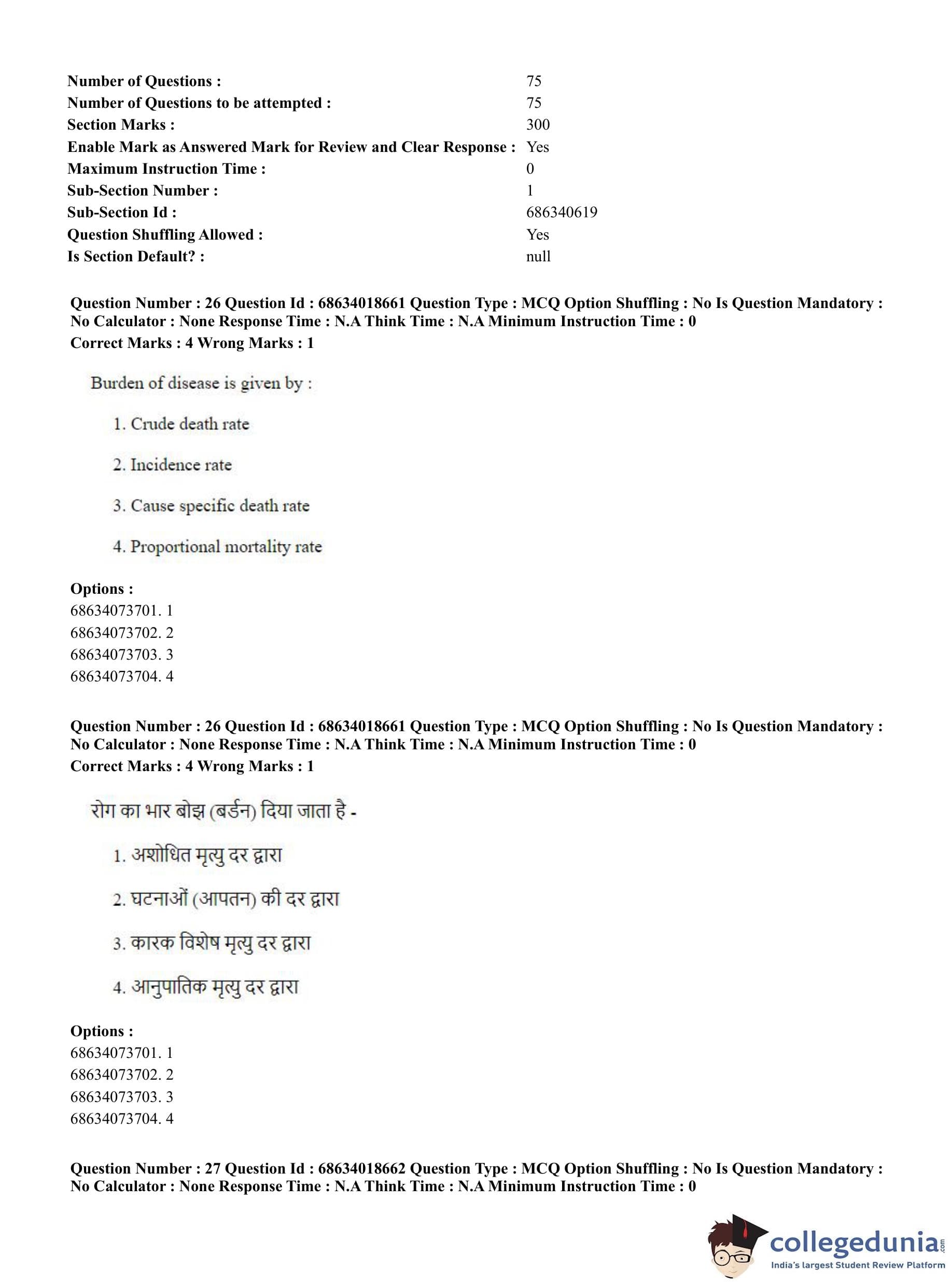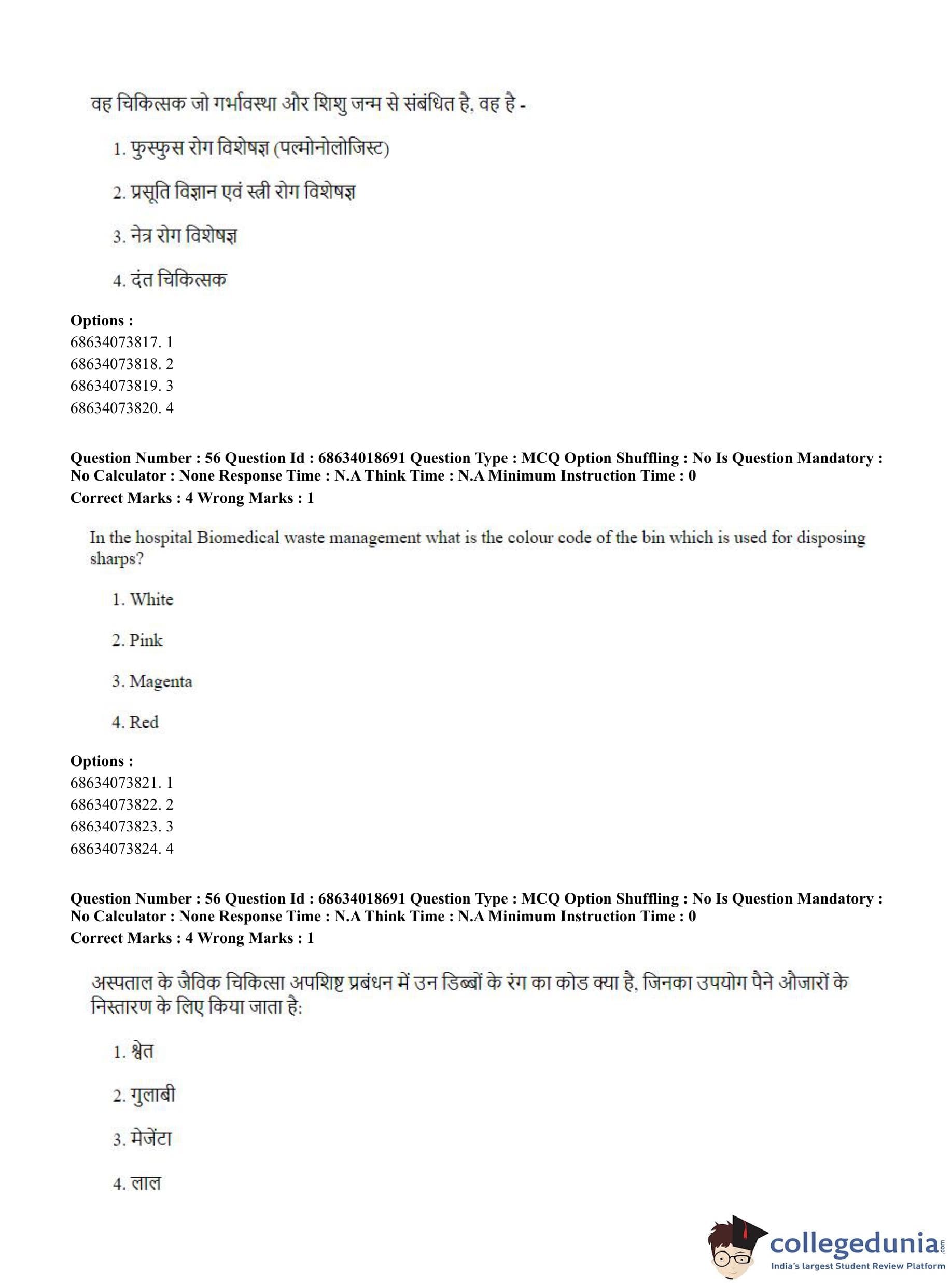 CUET PG 2023 Hospital Management Question Paper in Hindi (June 13 - Shift 3)
