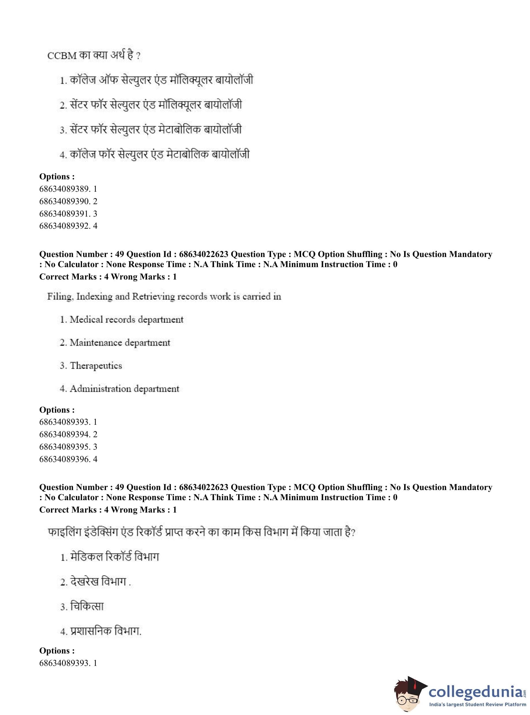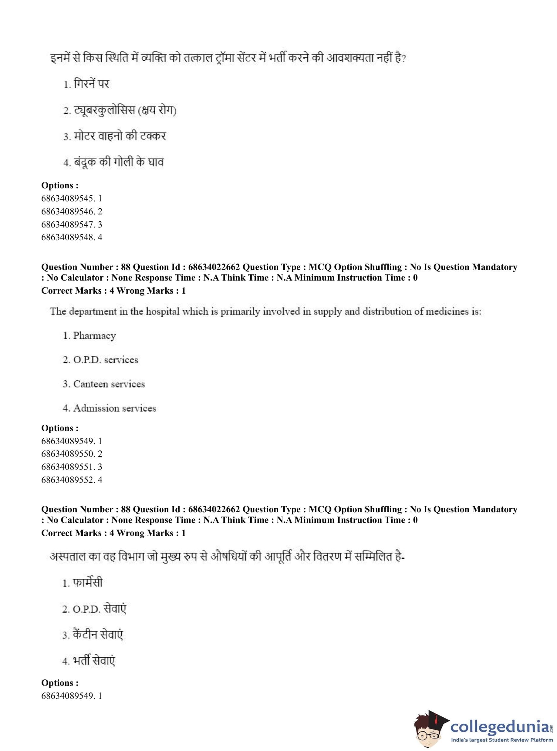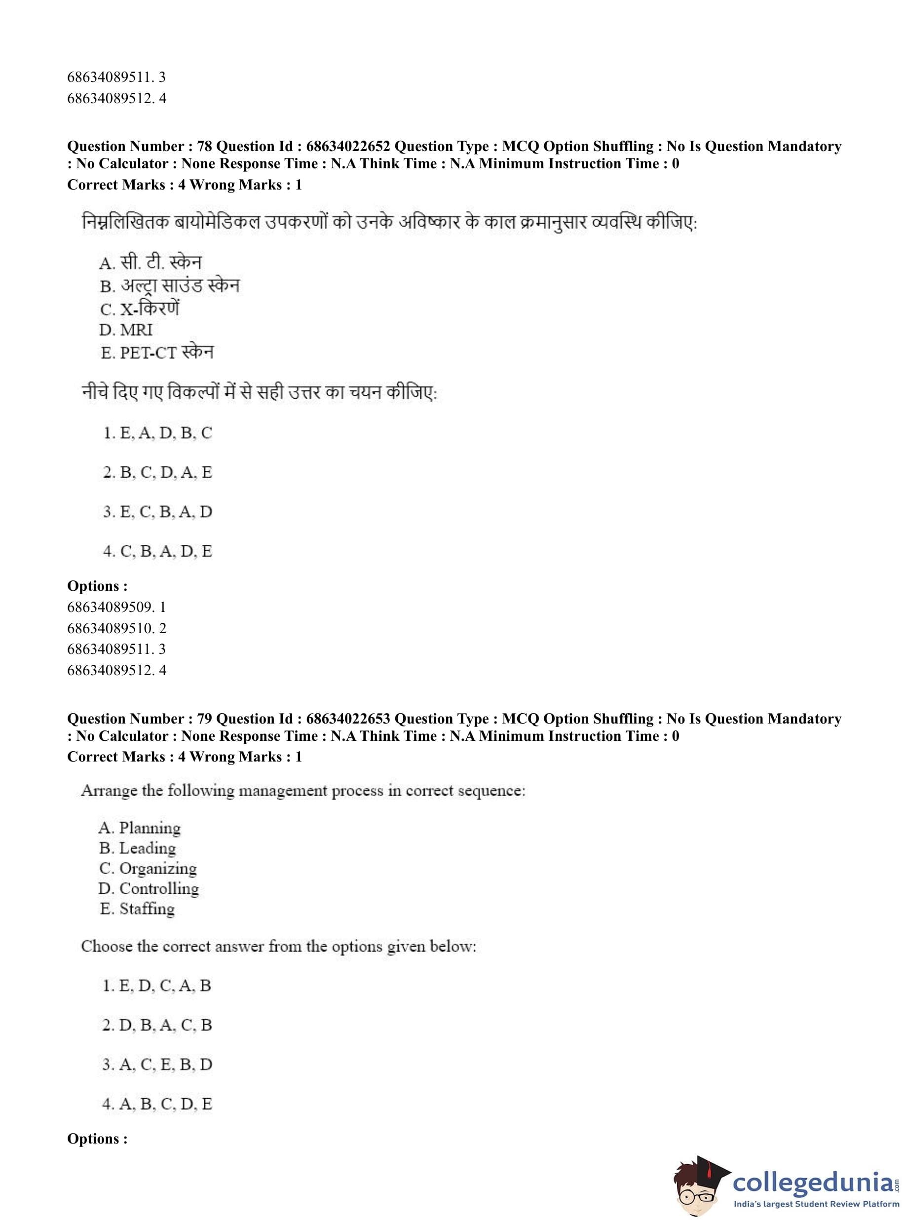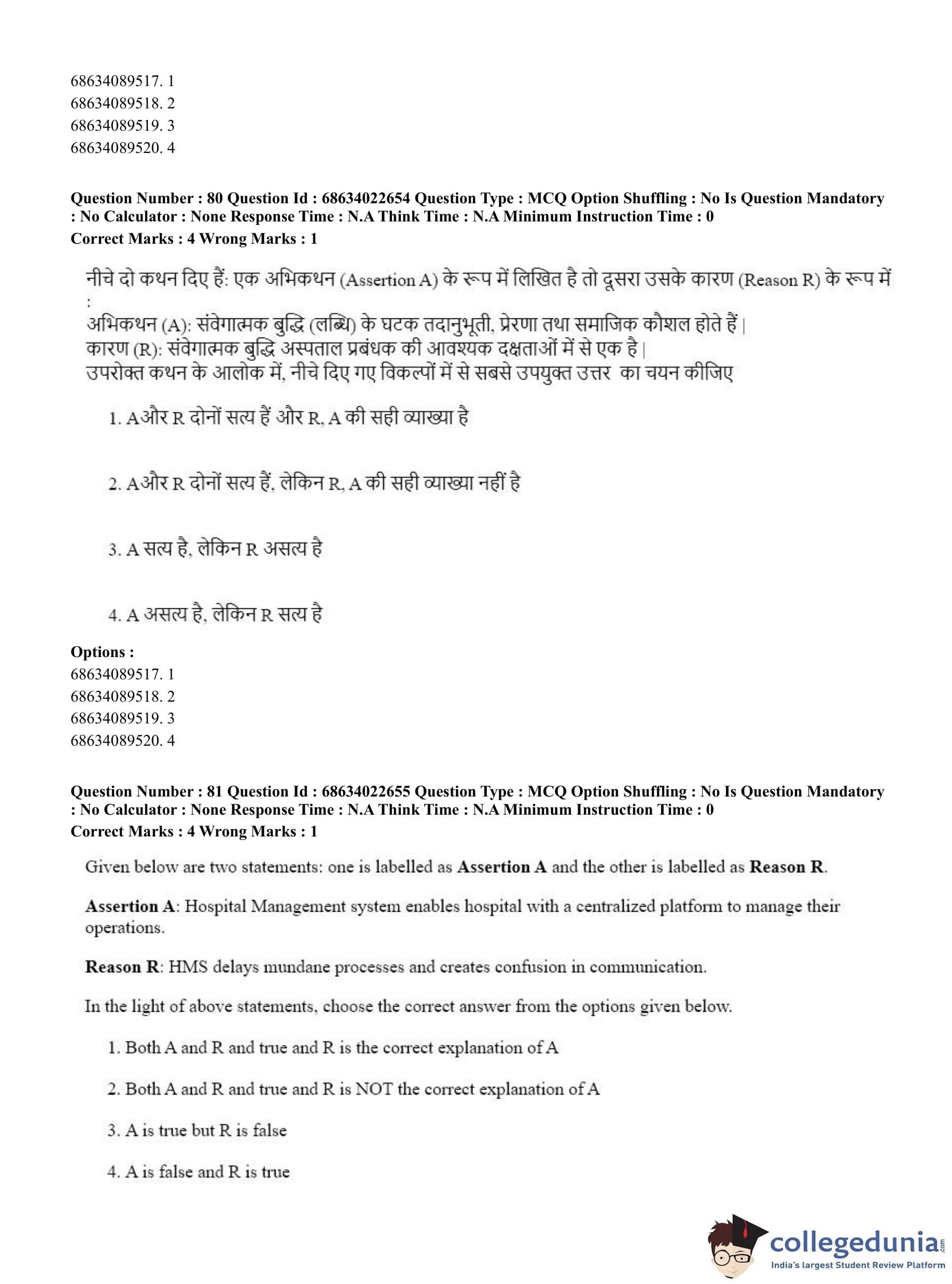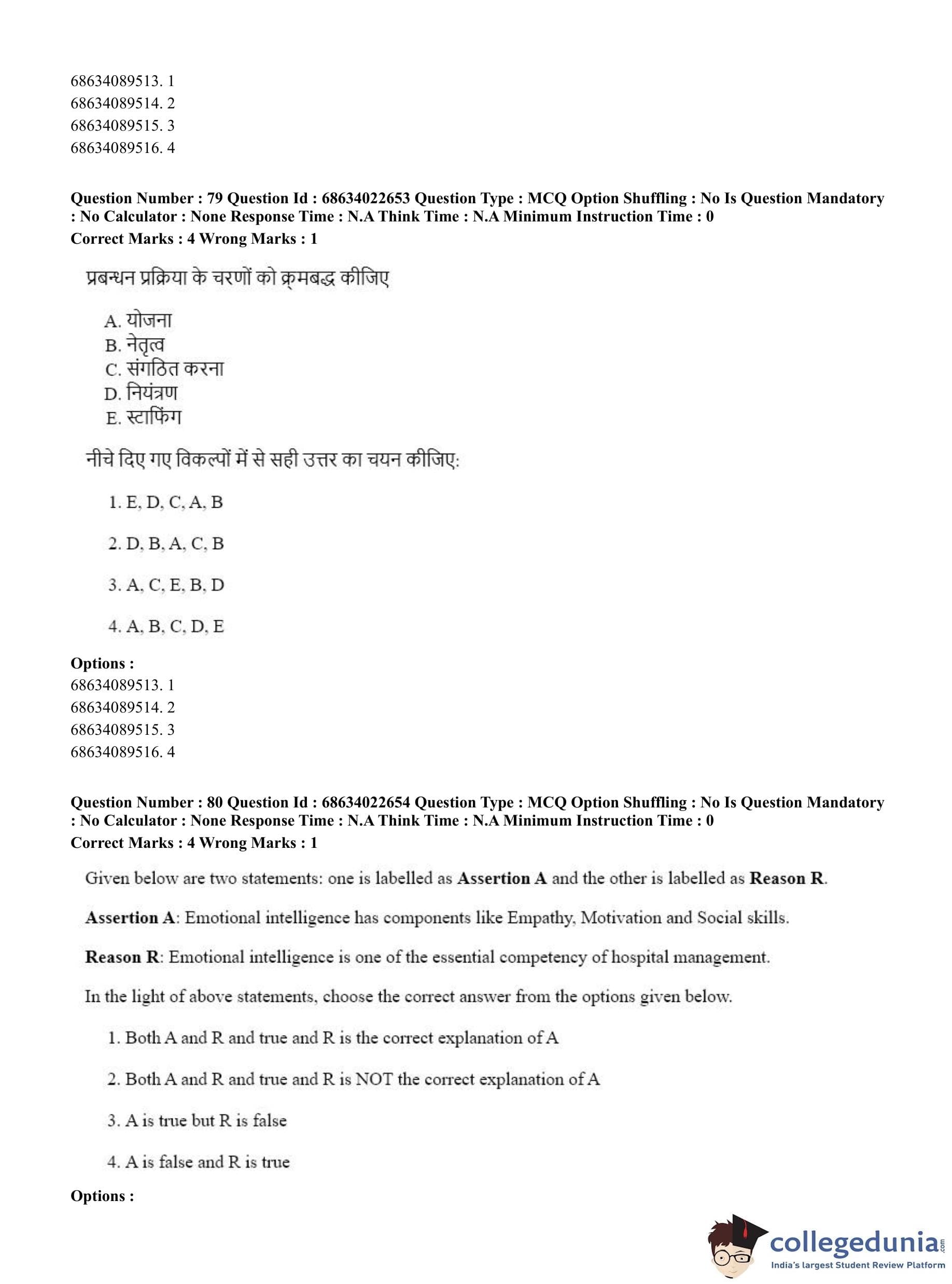 CUET PG 2023 Hospital Management Question Paper in Hindi (June 15 - Shift 3)
