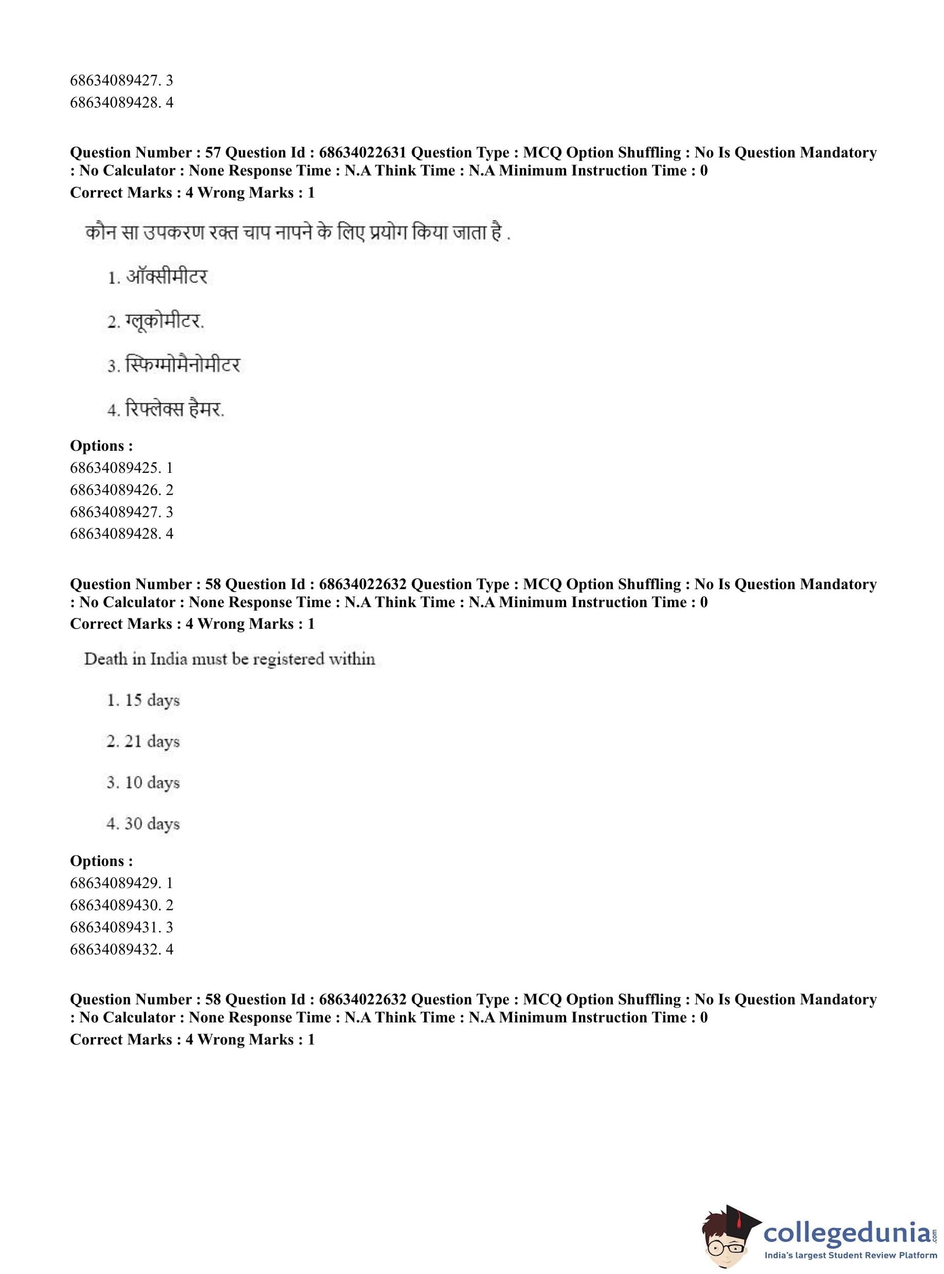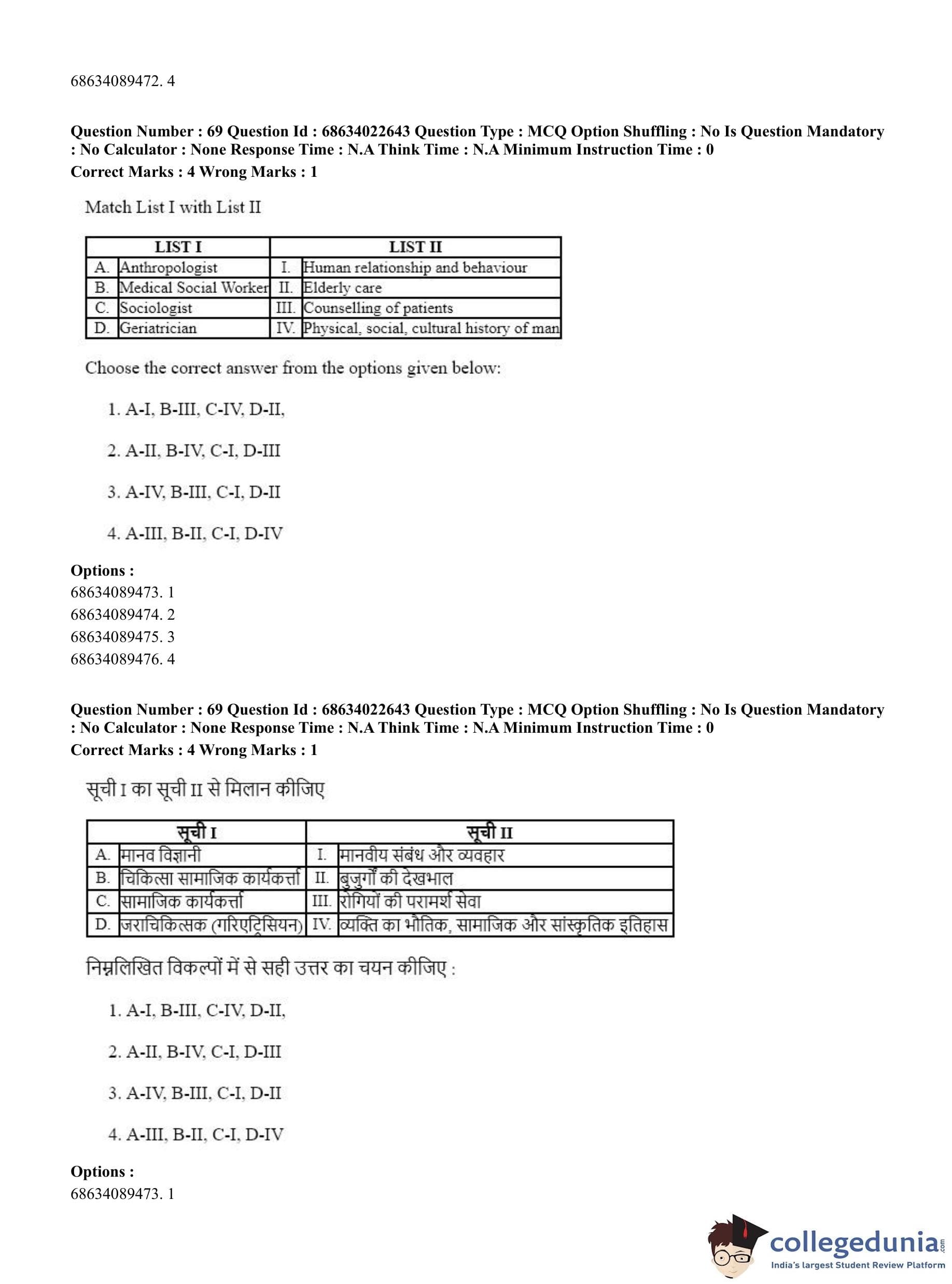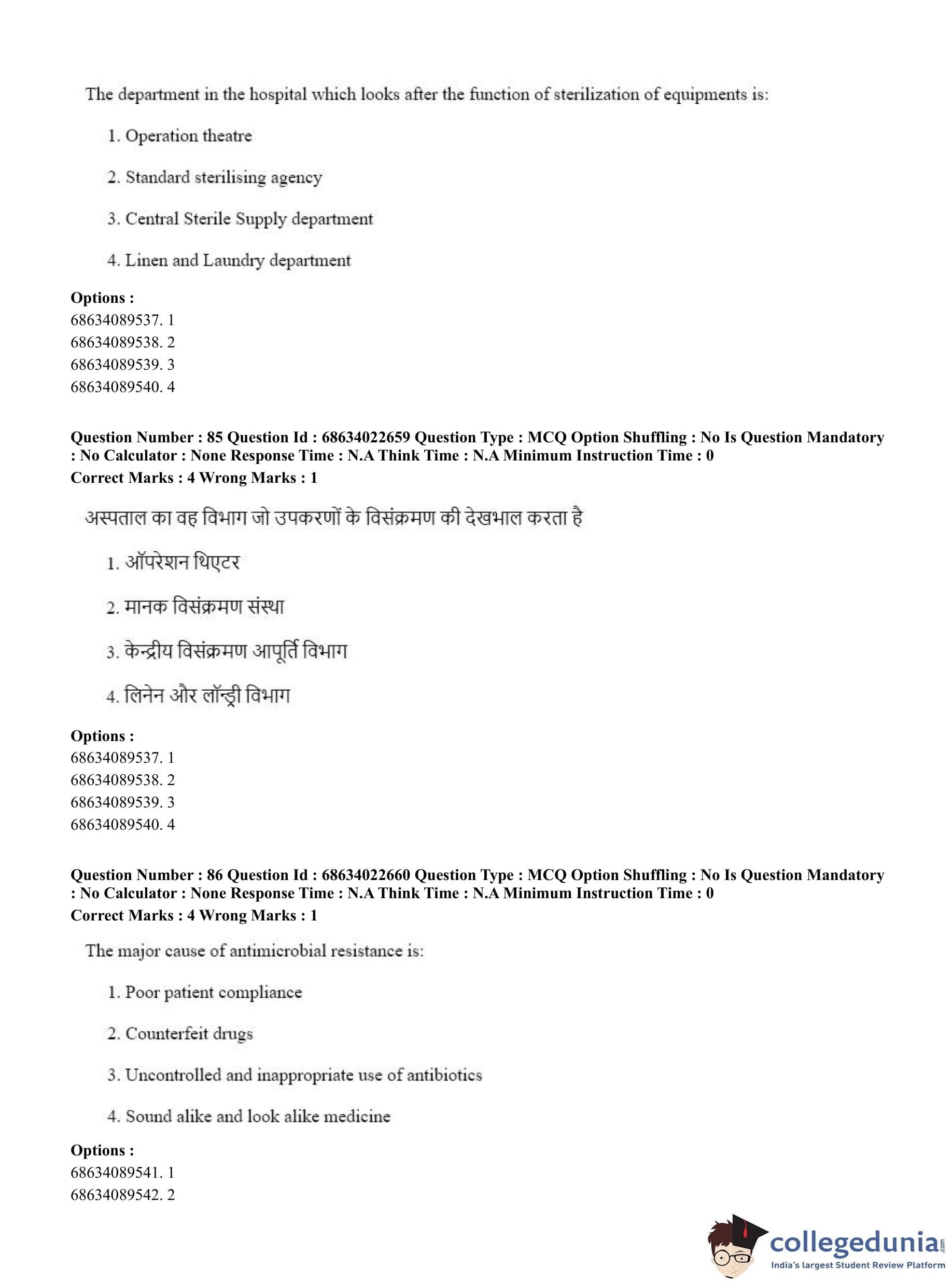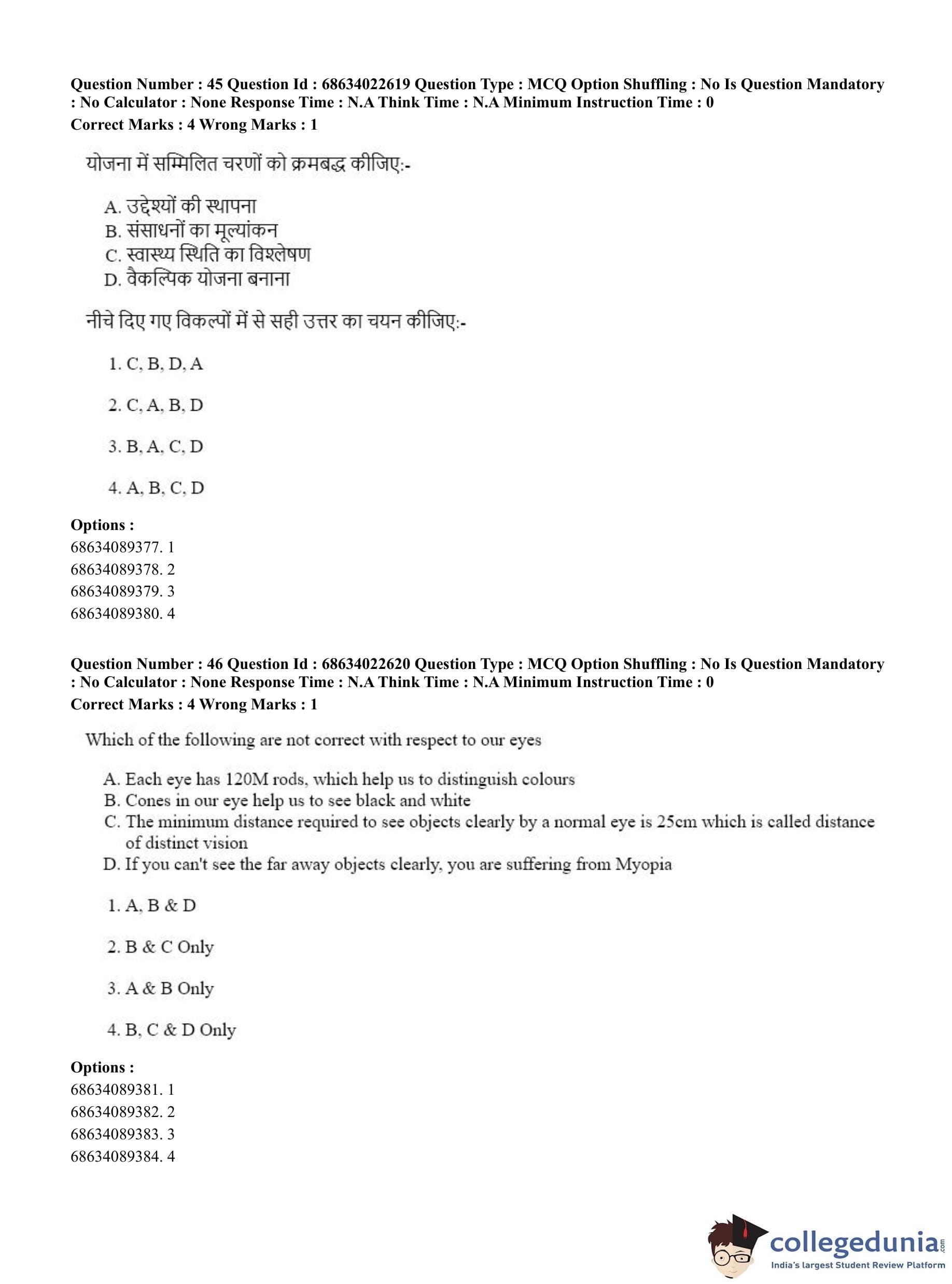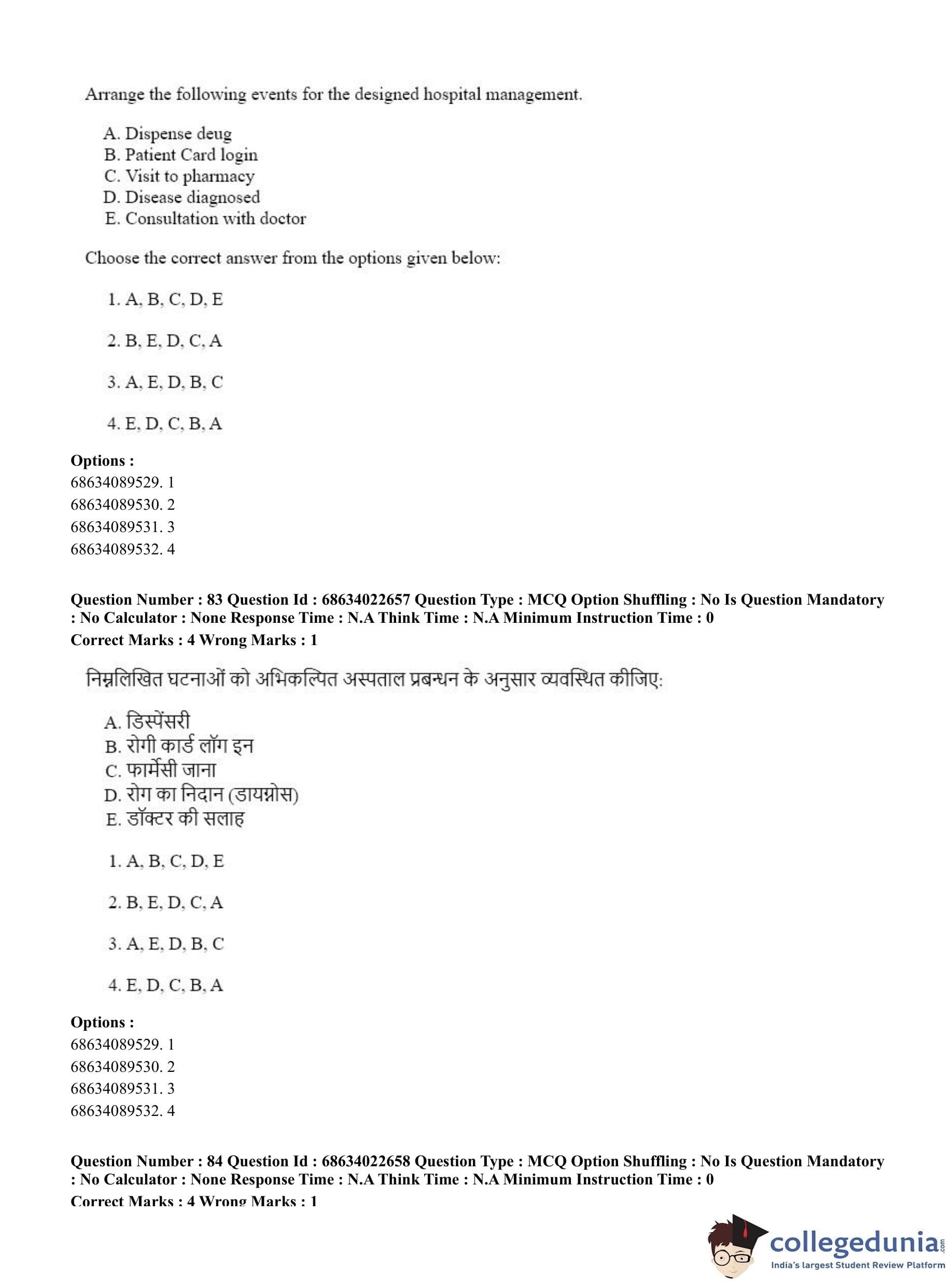 CUET PG 2023 Hospital Management Question Paper in Hindi (June 15 - Shift 3)
