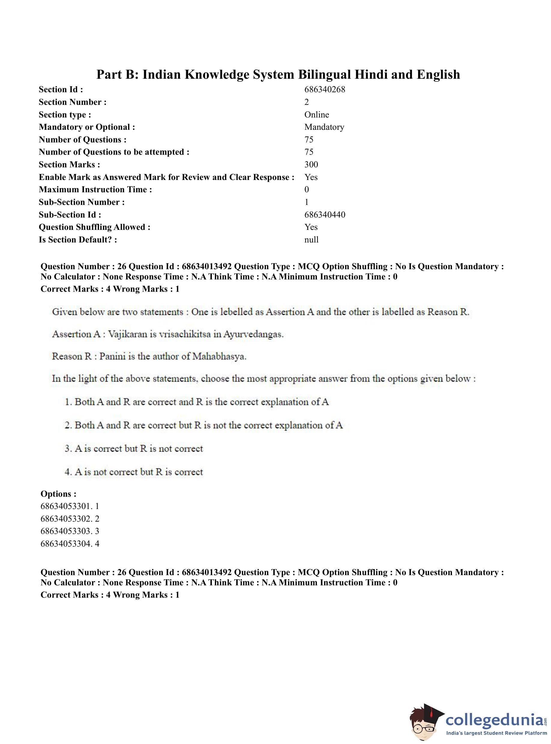 CUET PG 2023 Indian Knowledge System Question Paper in English (June 11 - Shift 2)