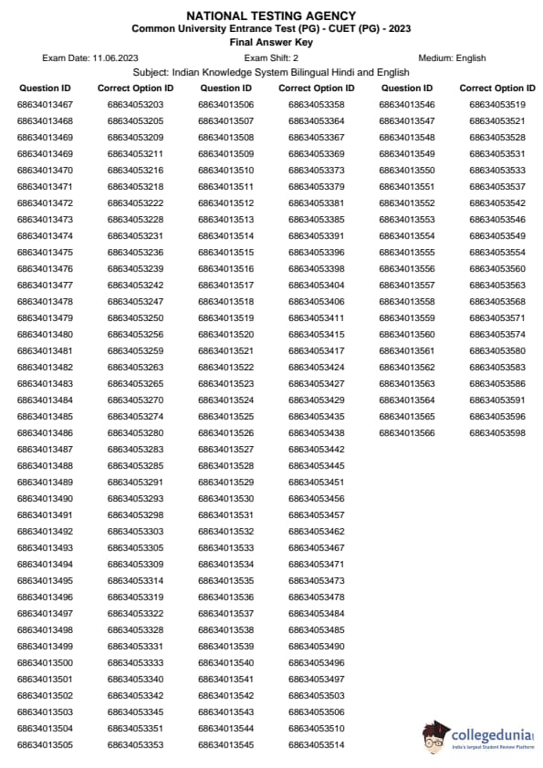| CUET PG Indian Knowledge System Question Paper 2023 PDF | CUET PG Indian Knowledge System Answer Key 2023 PDF |