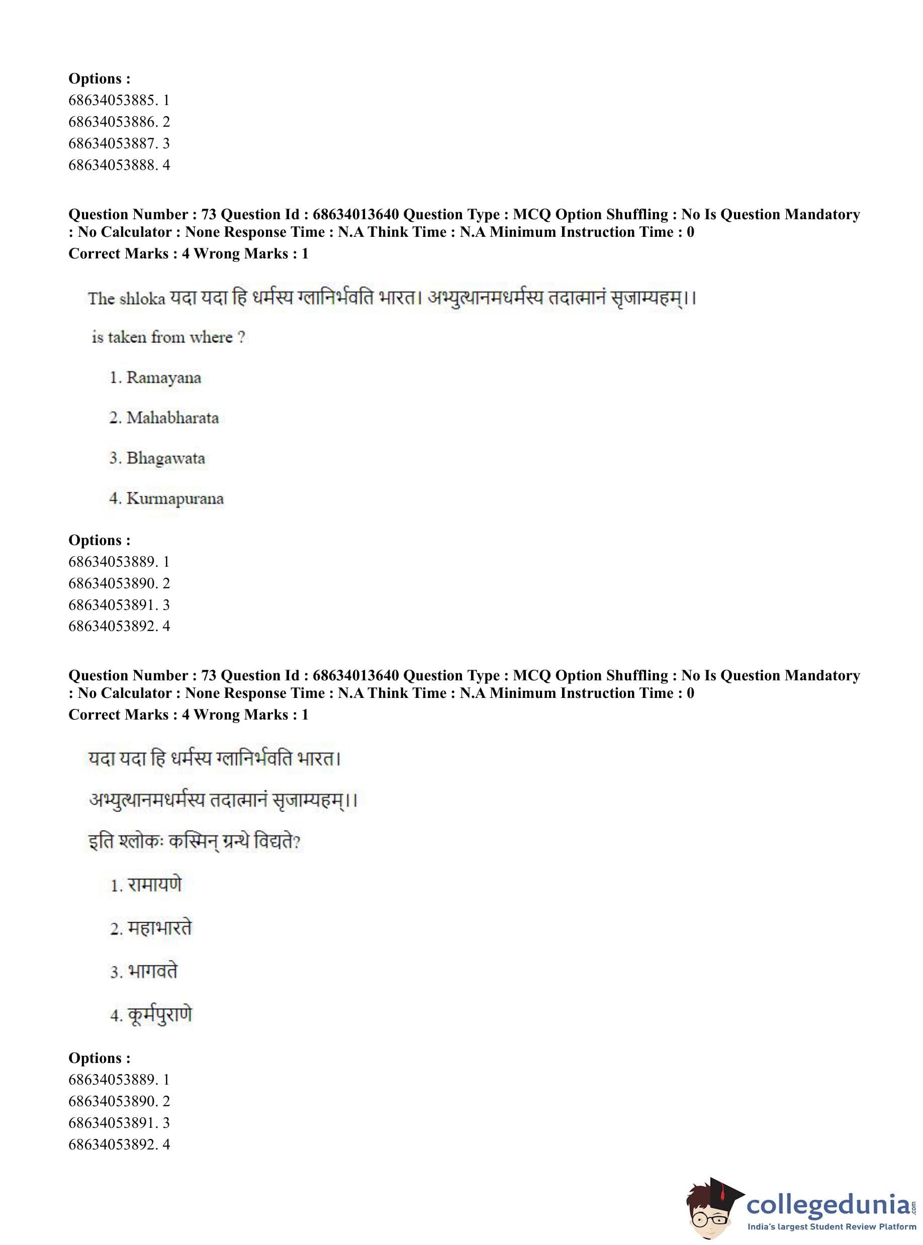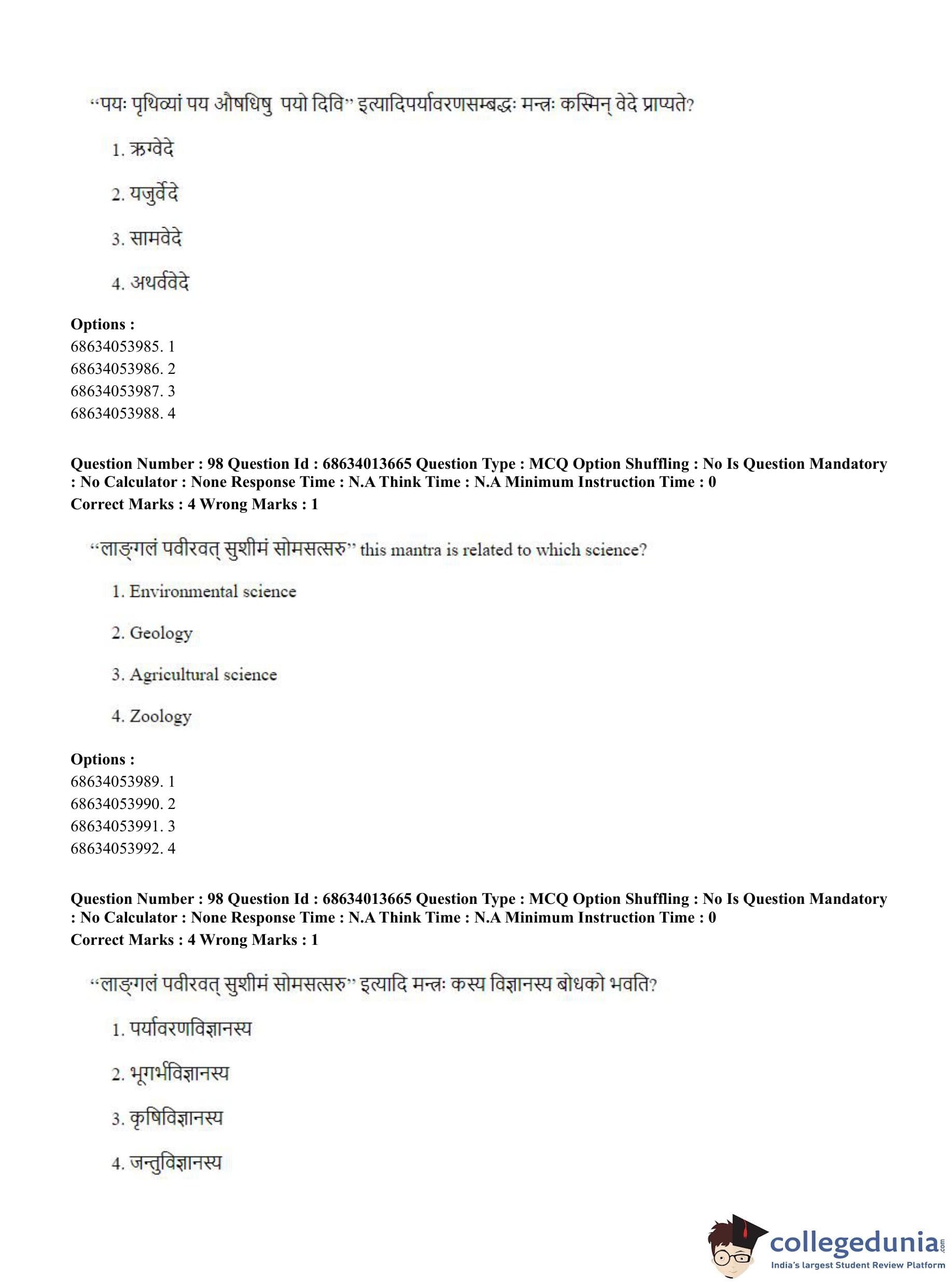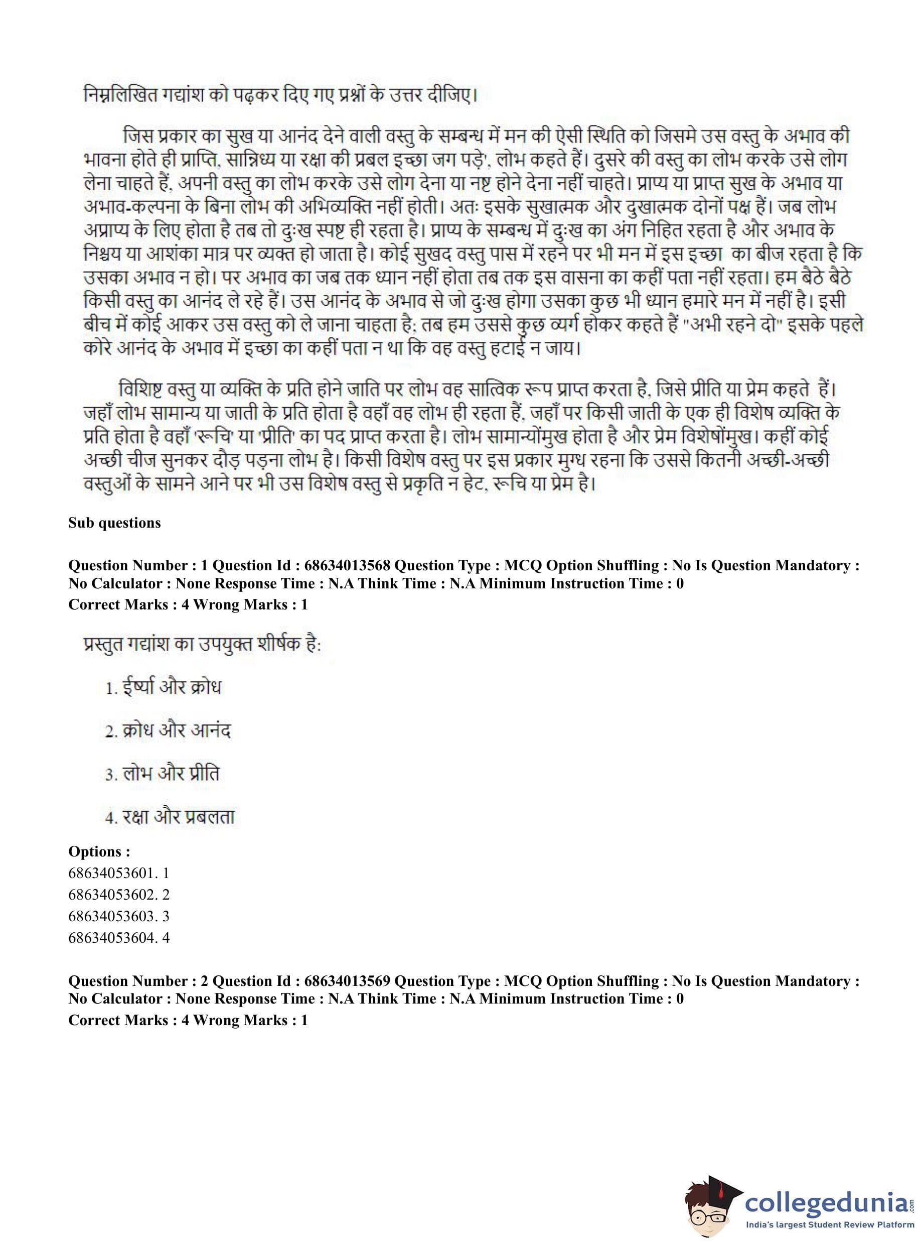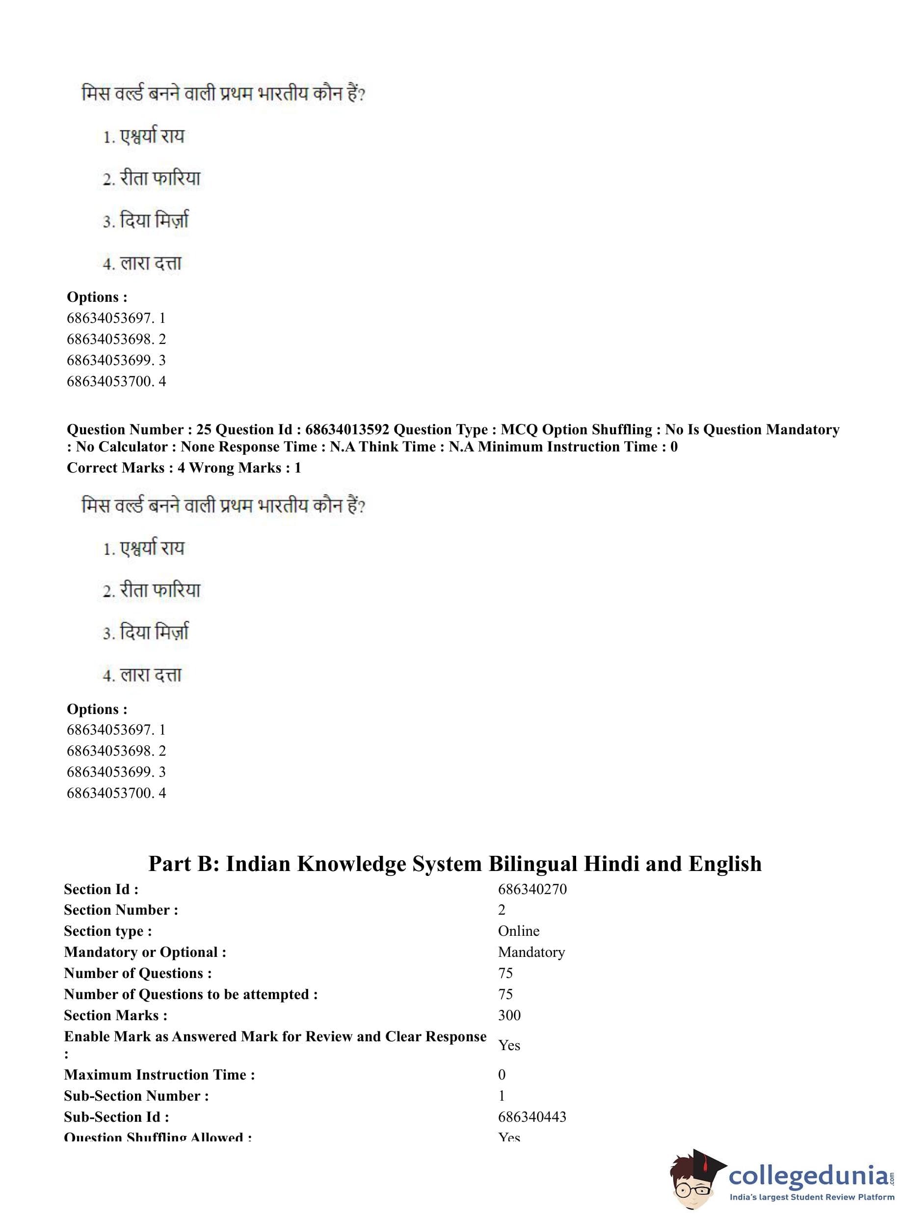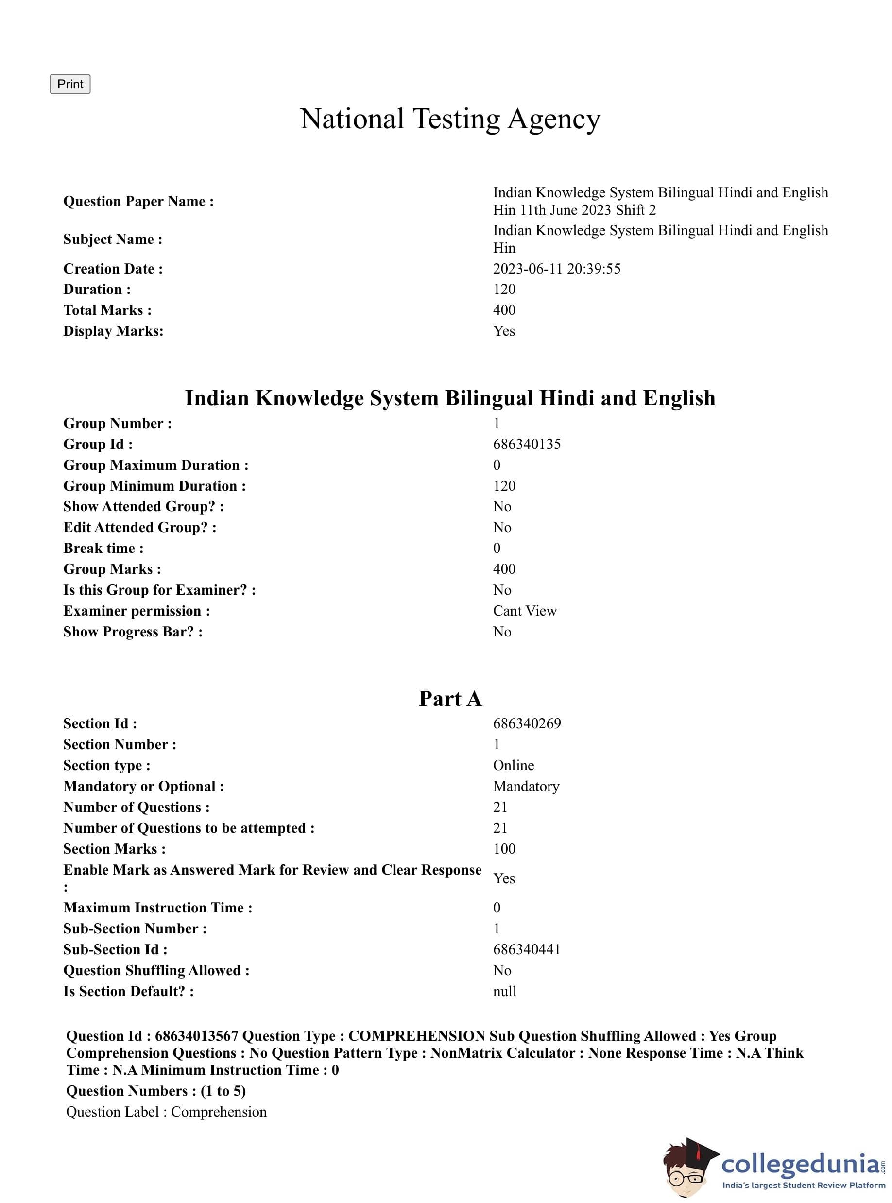 CUET PG 2023 Indian Knowledge System Question Paper in Hindi (June 11 - Shift 2)