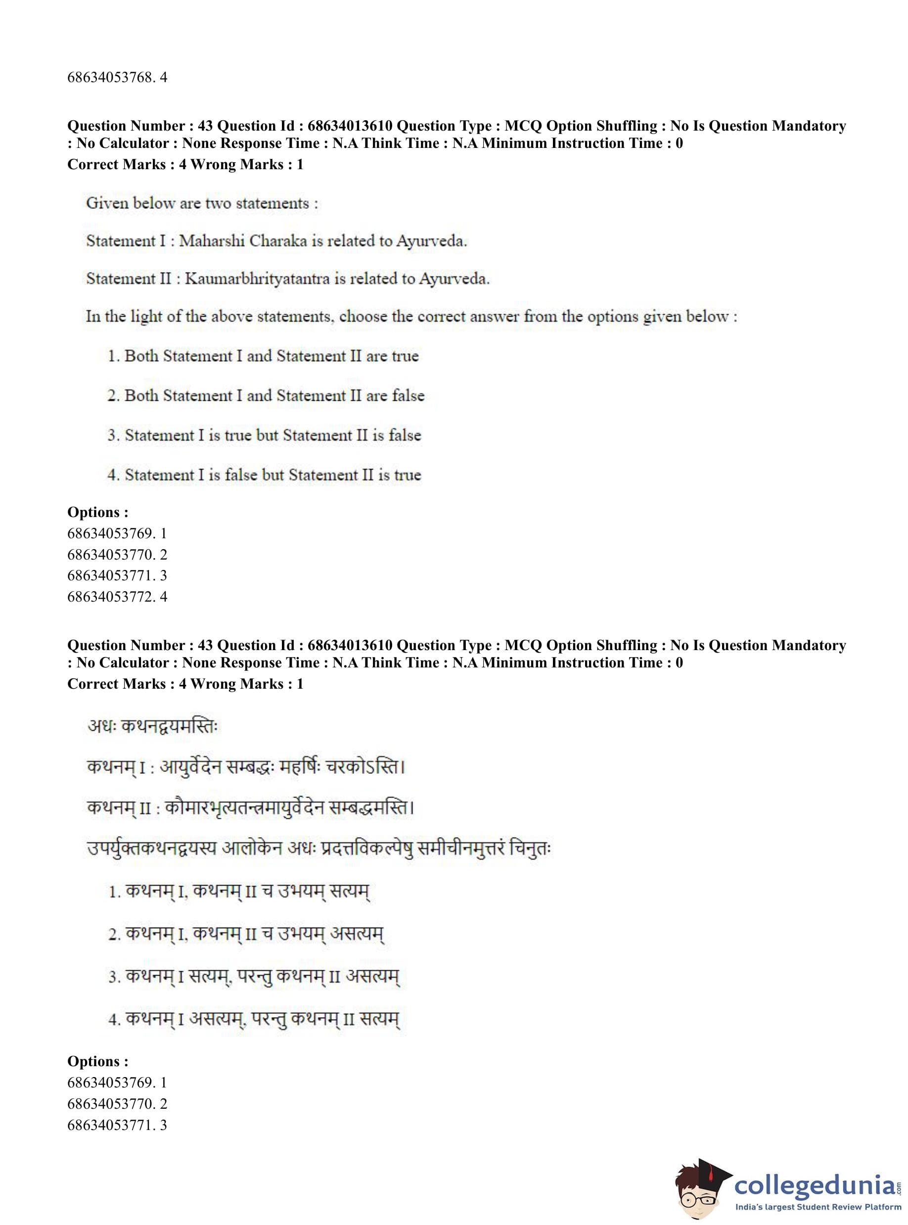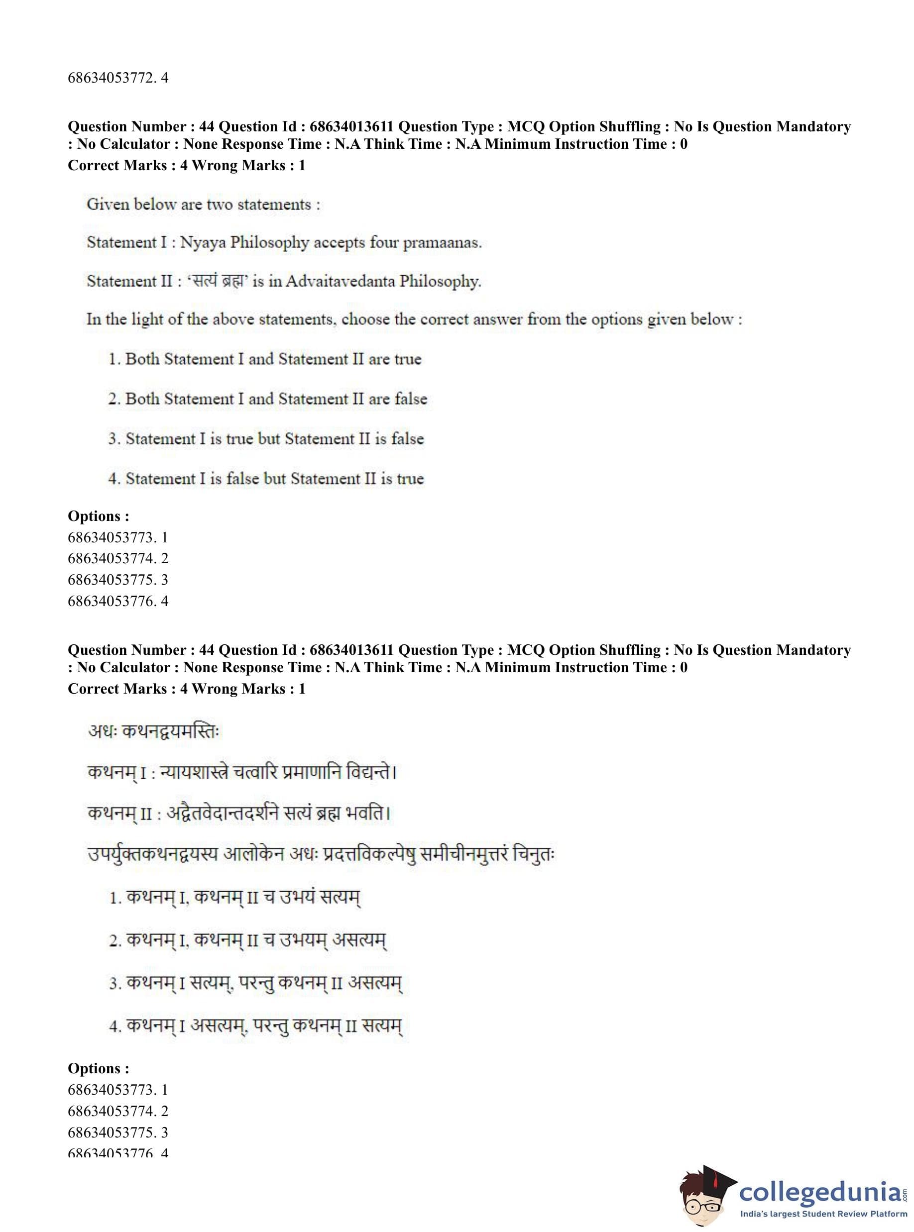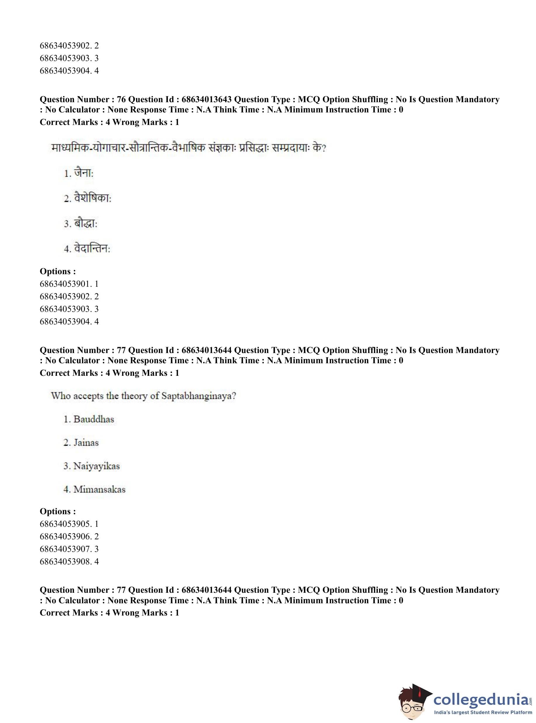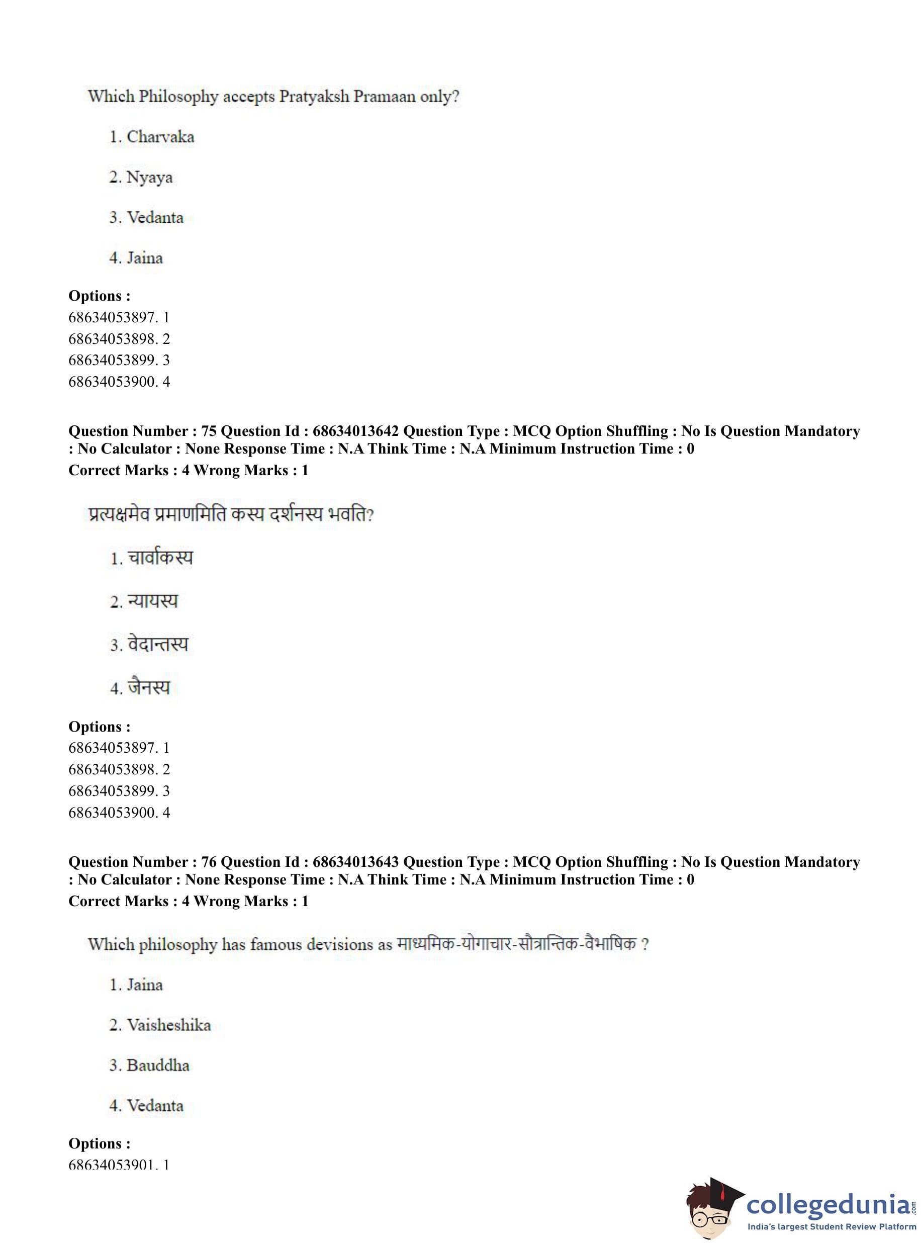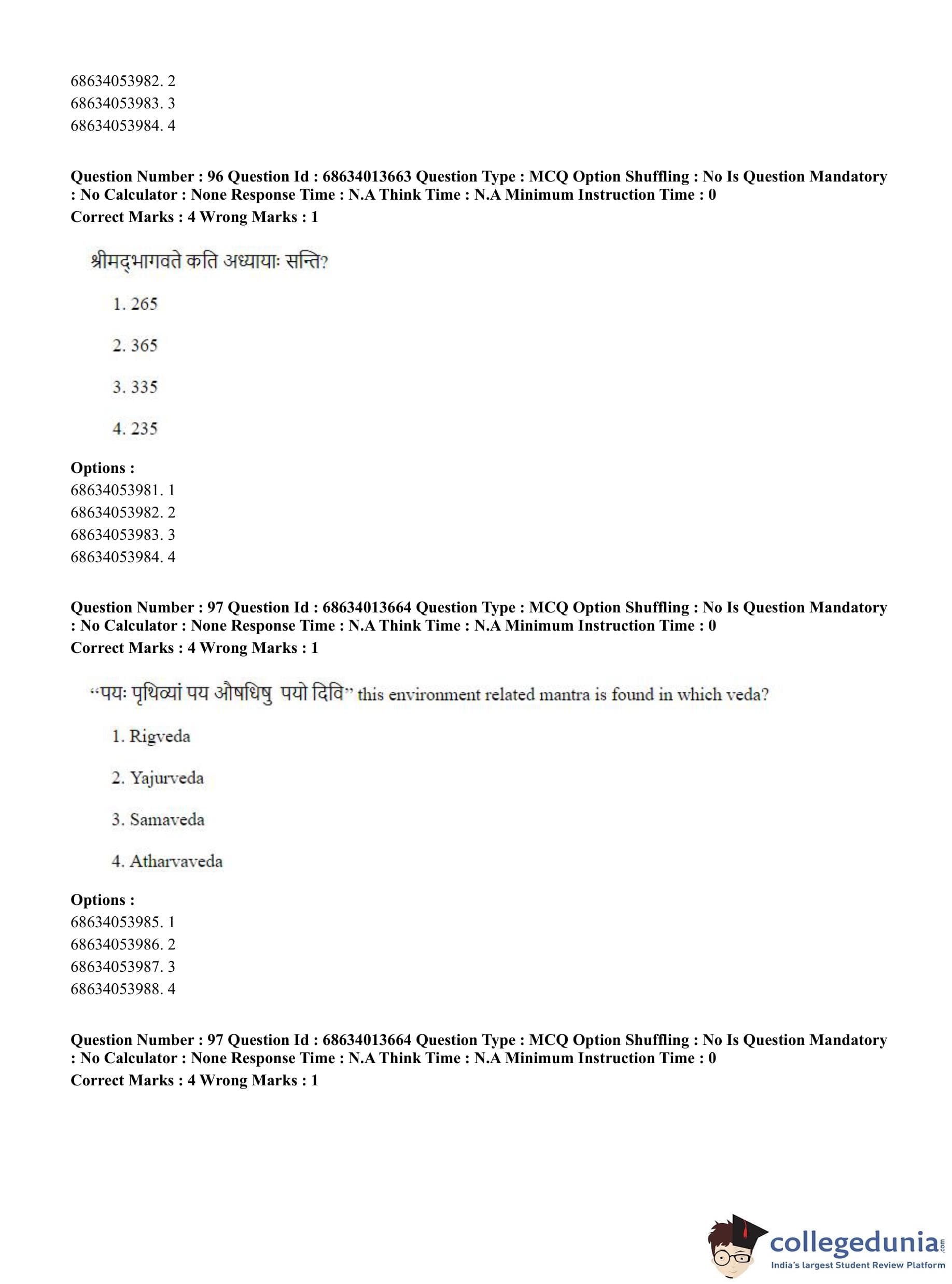 CUET PG 2023 Indian Knowledge System Question Paper in Hindi (June 11 - Shift 2)