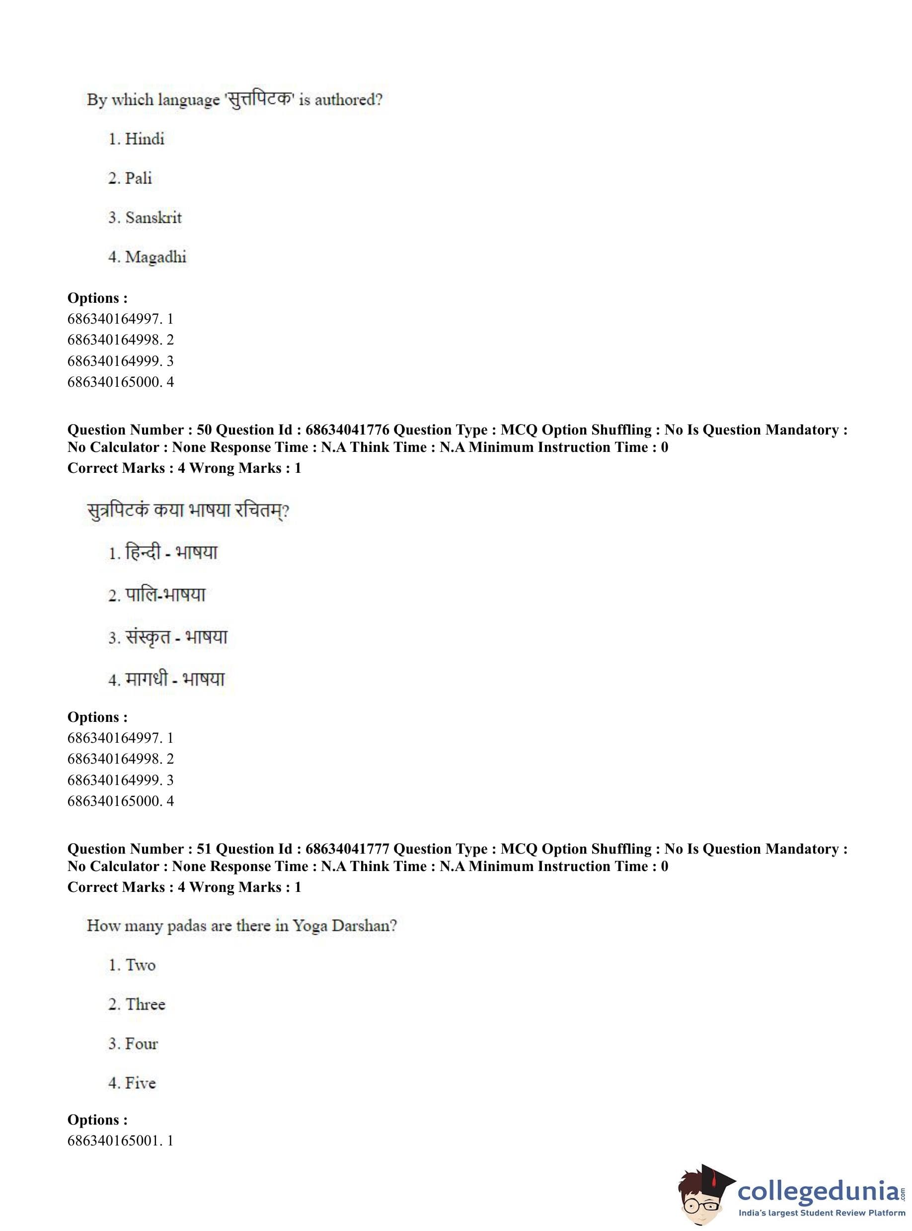 CUET PG 2023 Indian Knowledge System Question Paper in Hindi (June 30 - Shift 3)