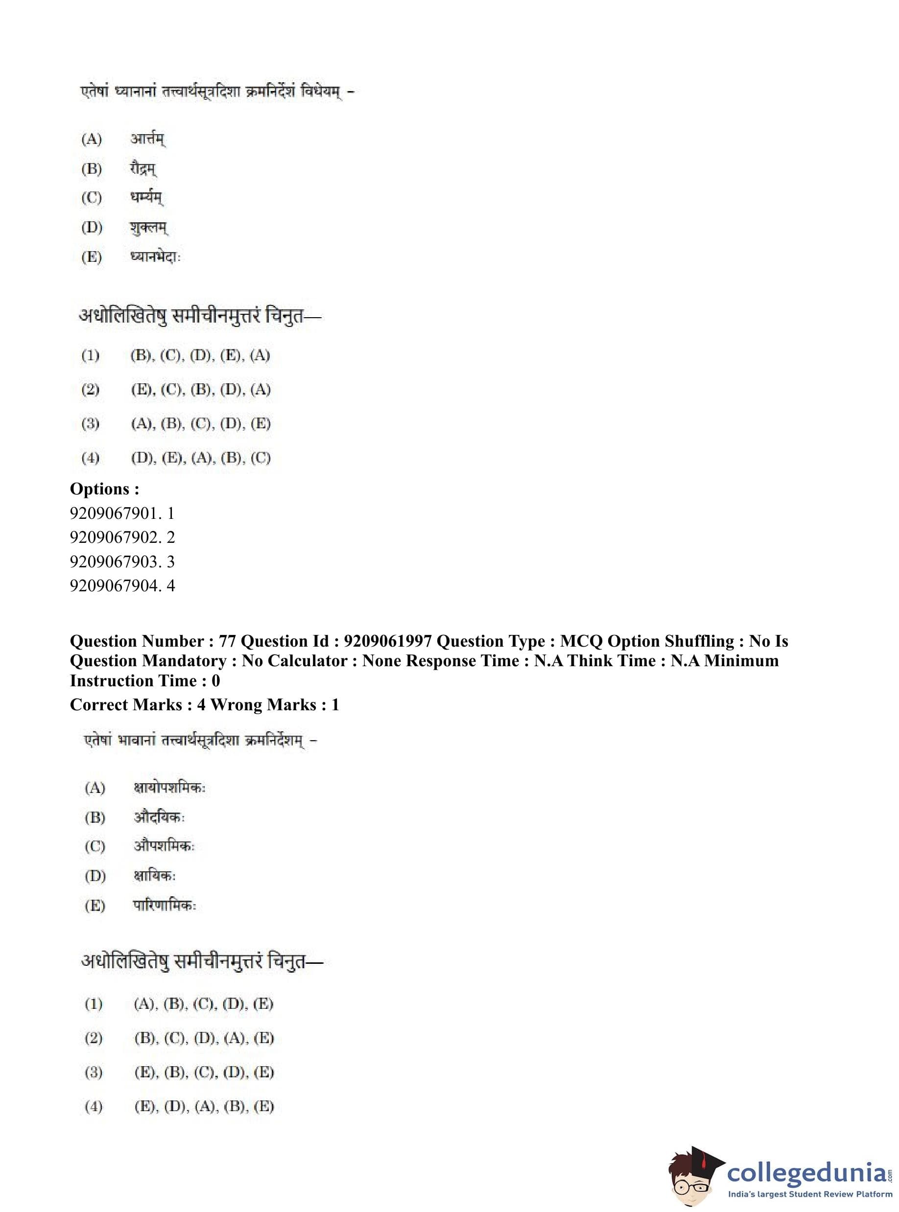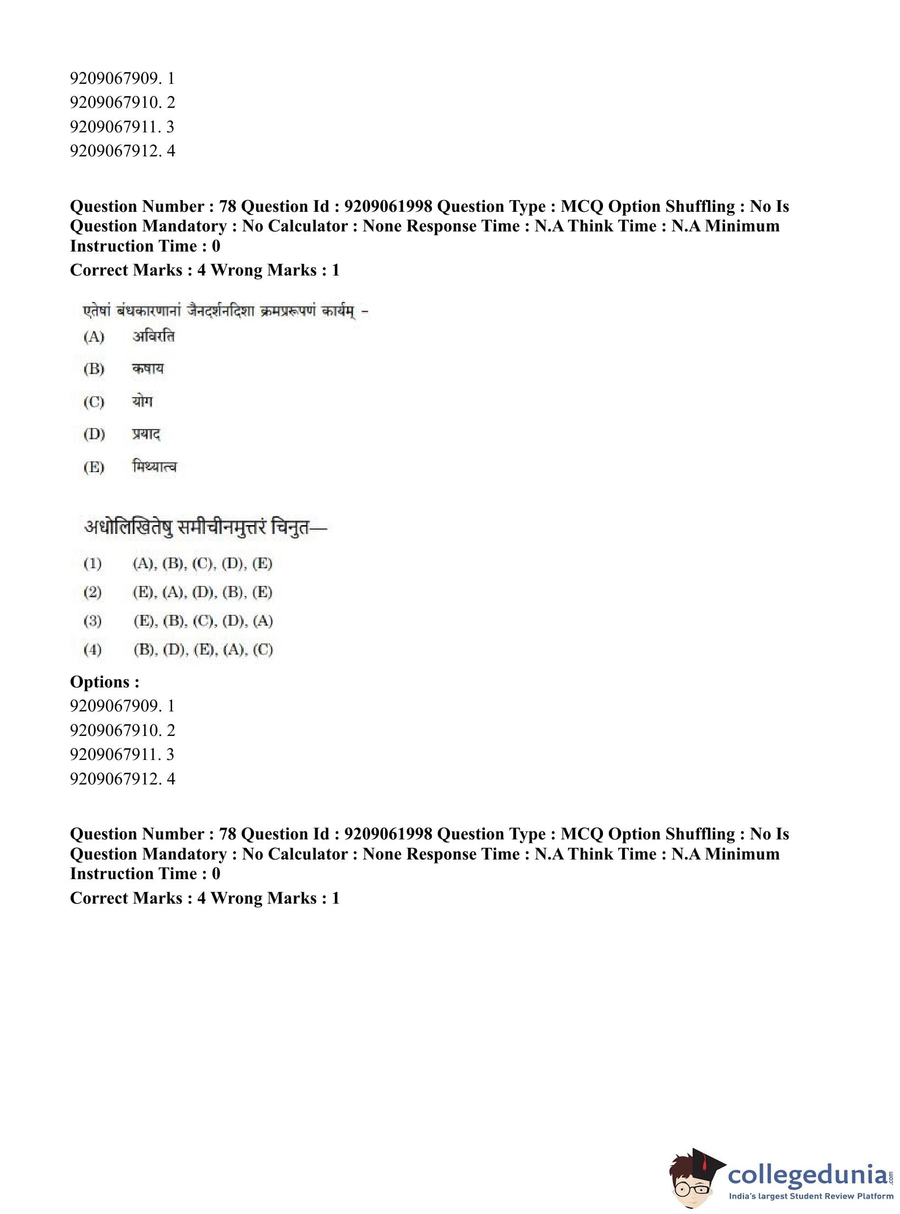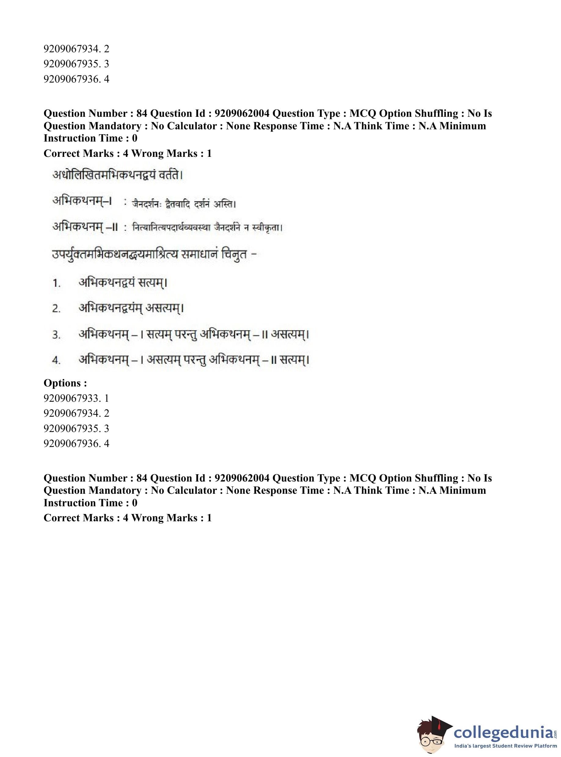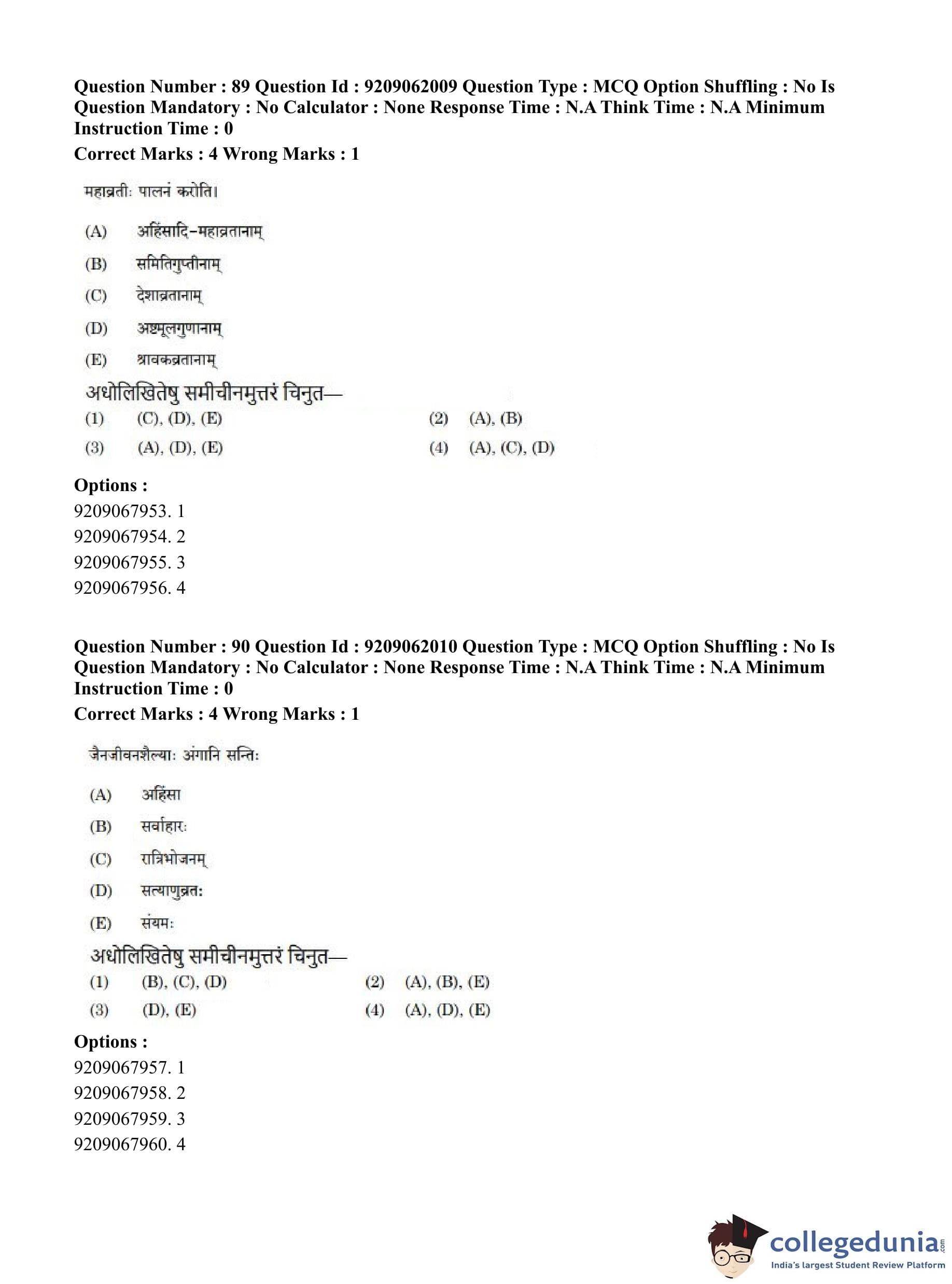CUET PG 2023 Jain Darshan Question Paper in Hindi (June 6 - Shift 2)