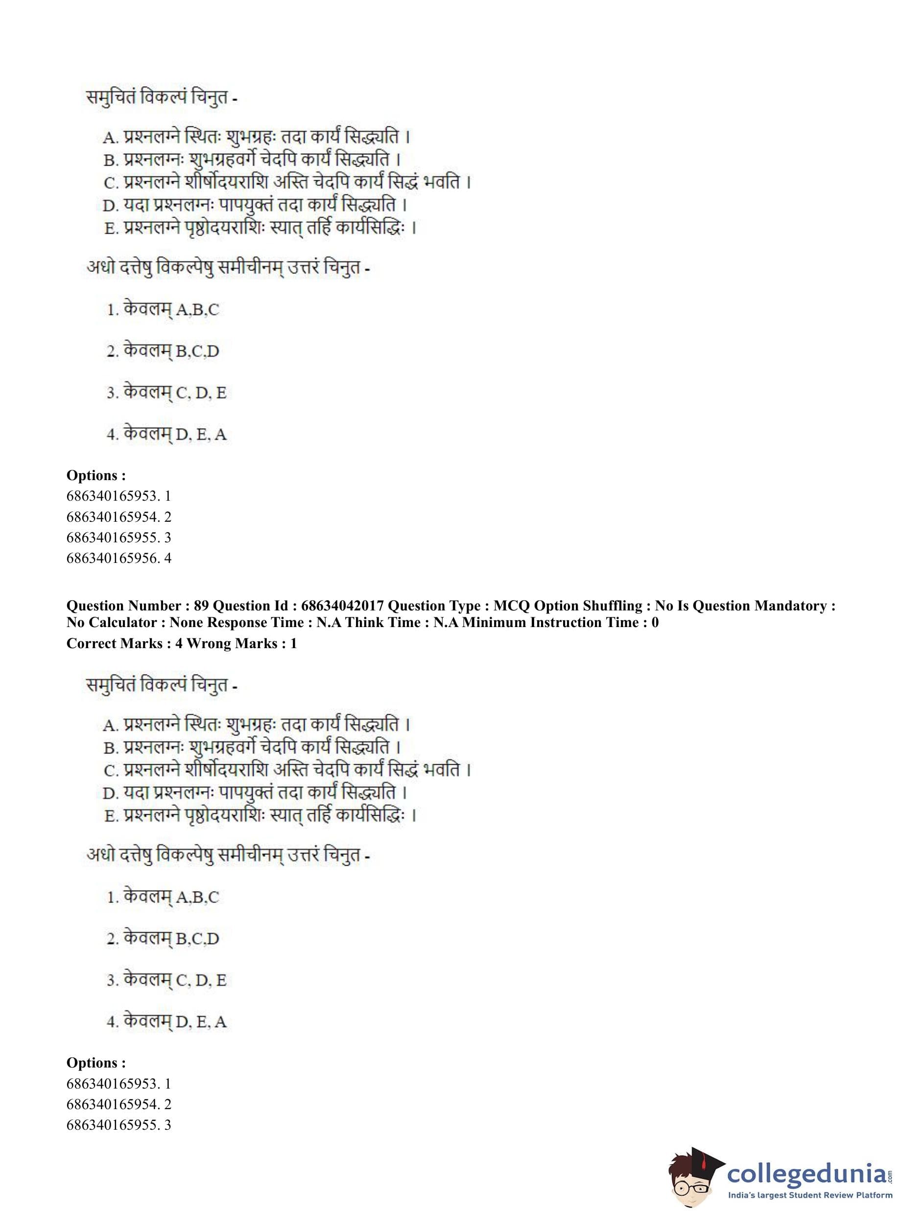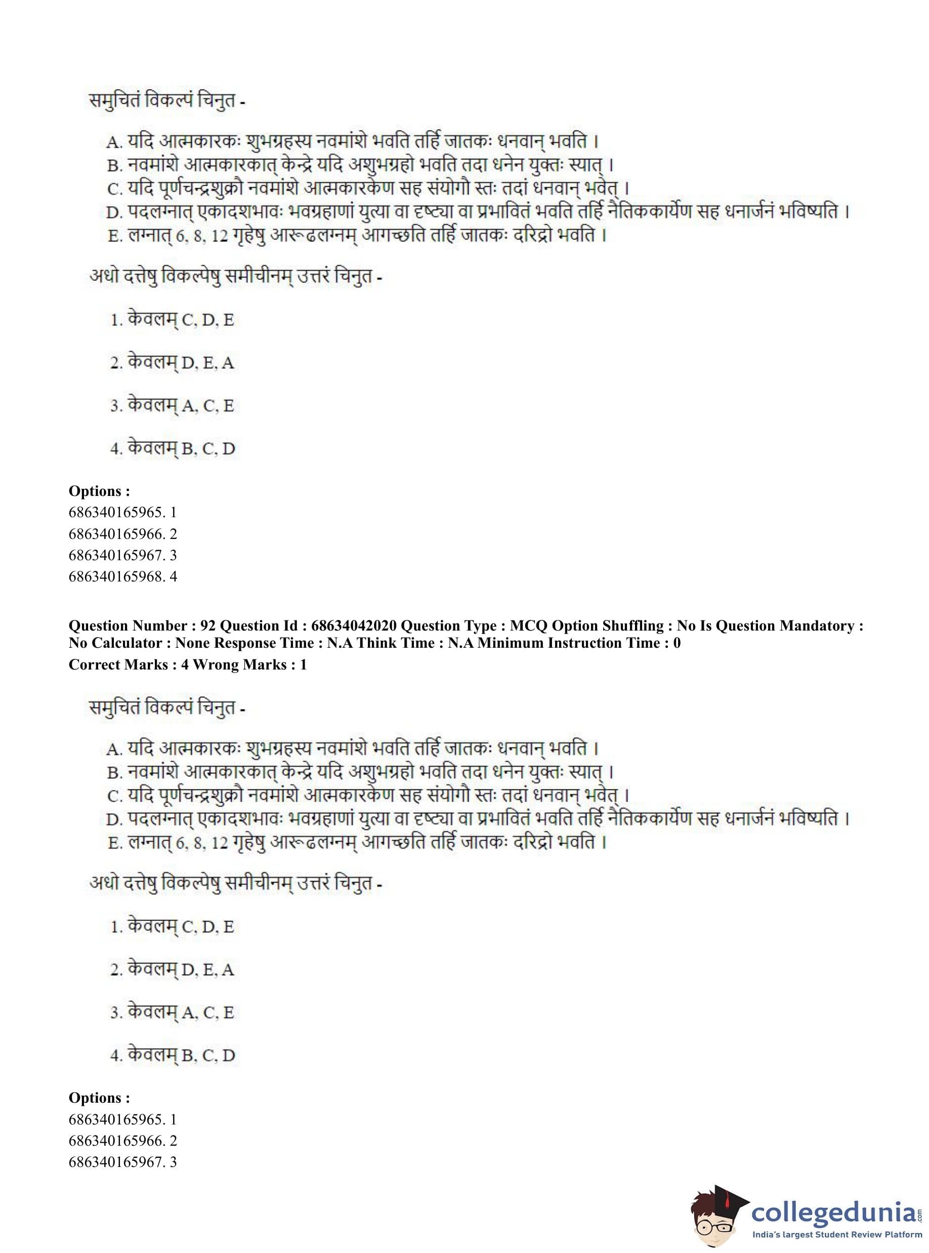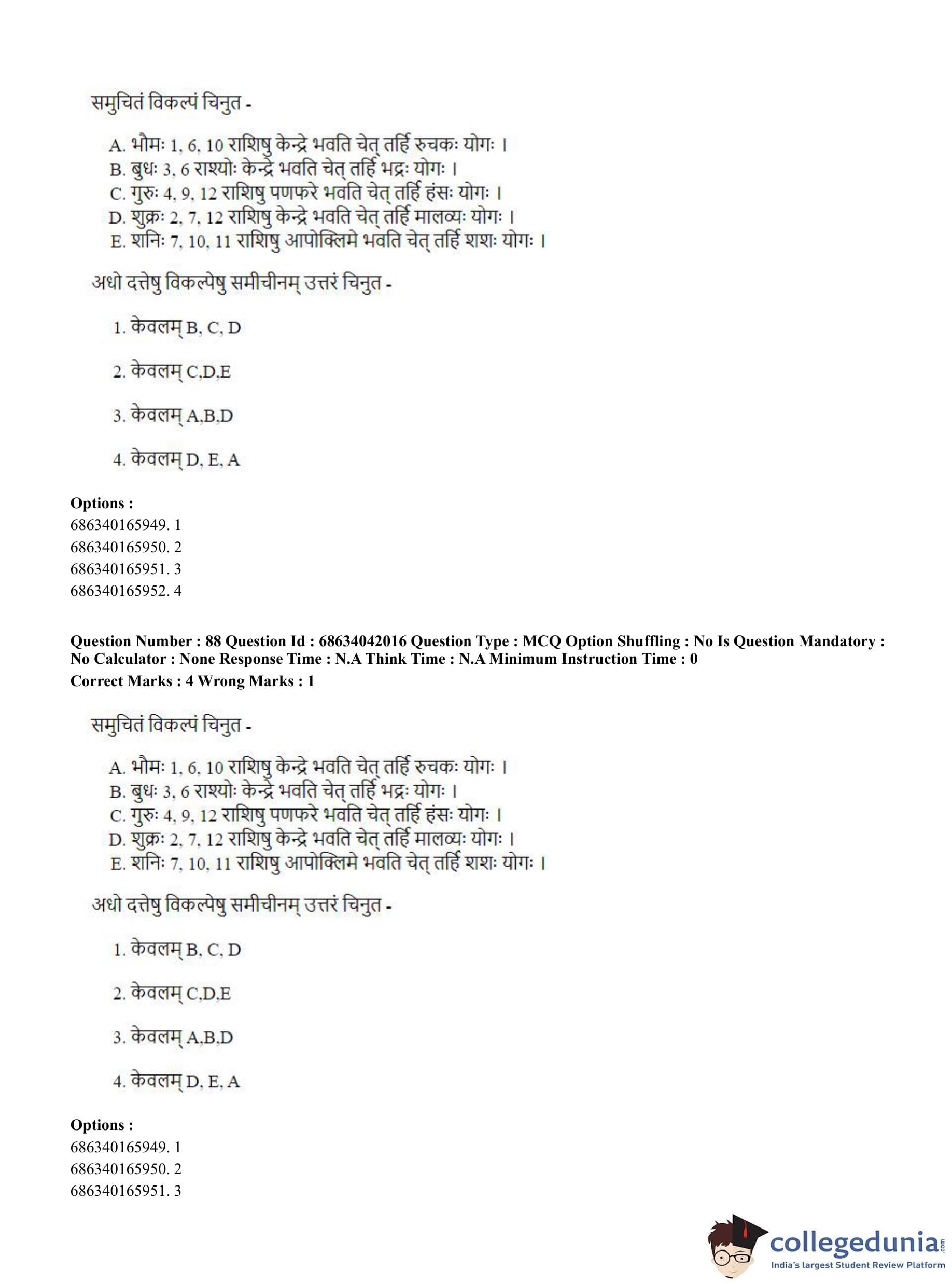 CUET PG 2023 Jyotish -Falit Question Paper in Hindi (June 30 - Shift 3)