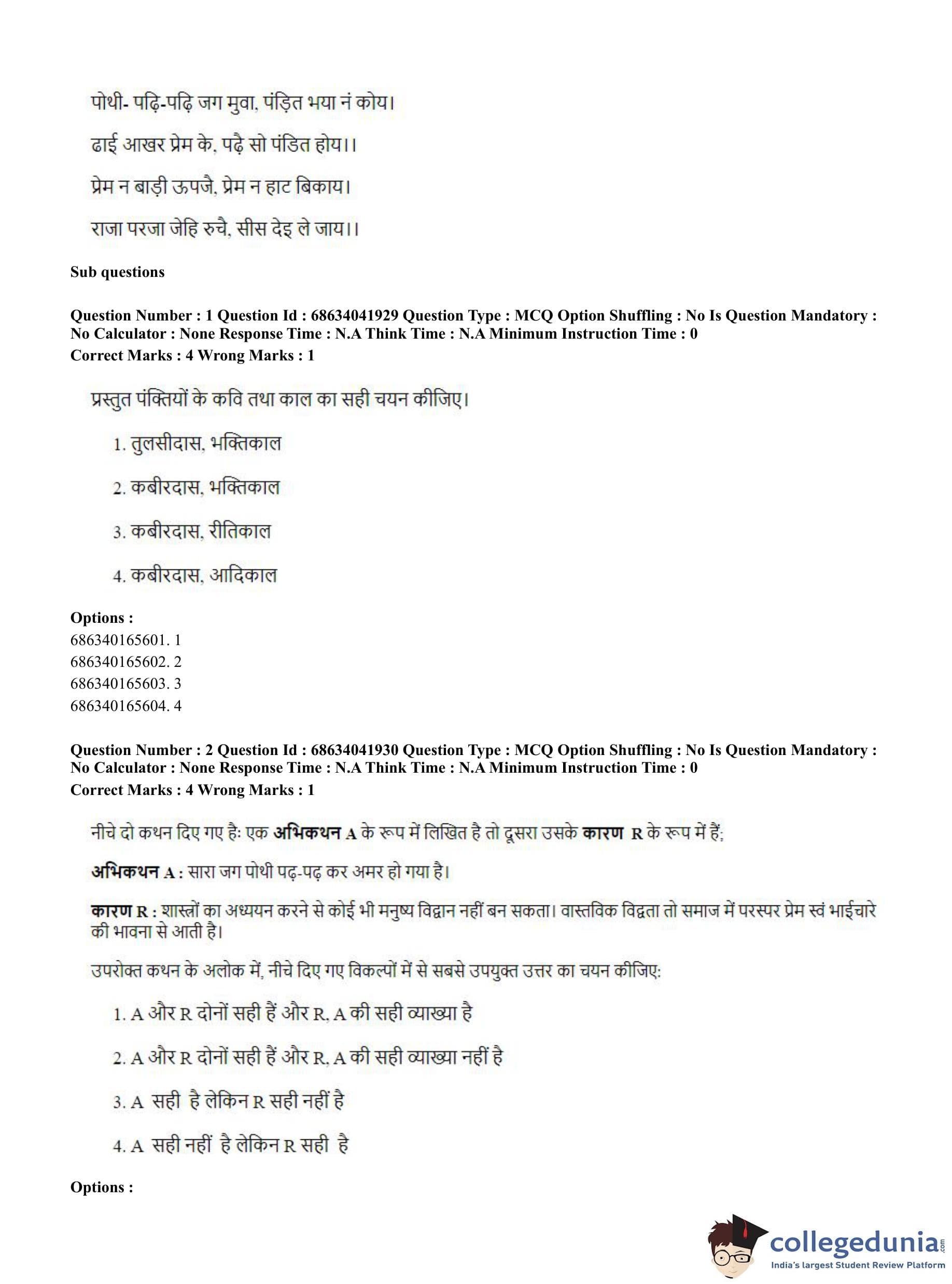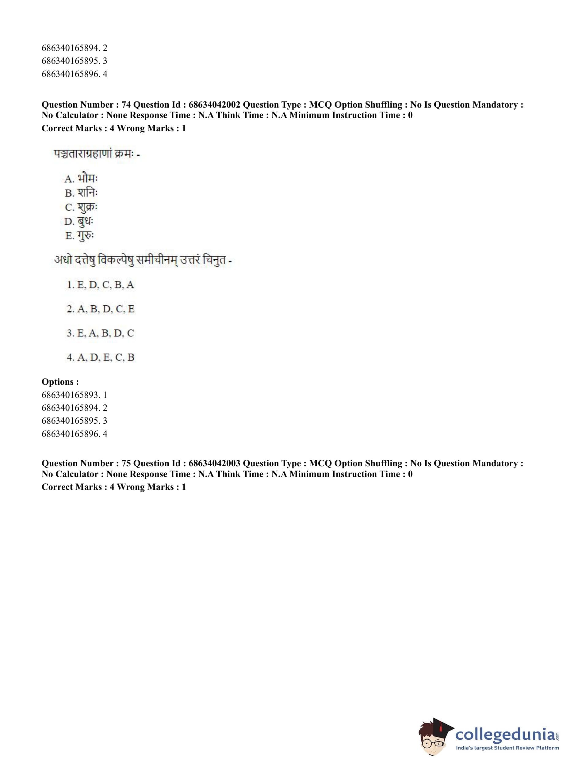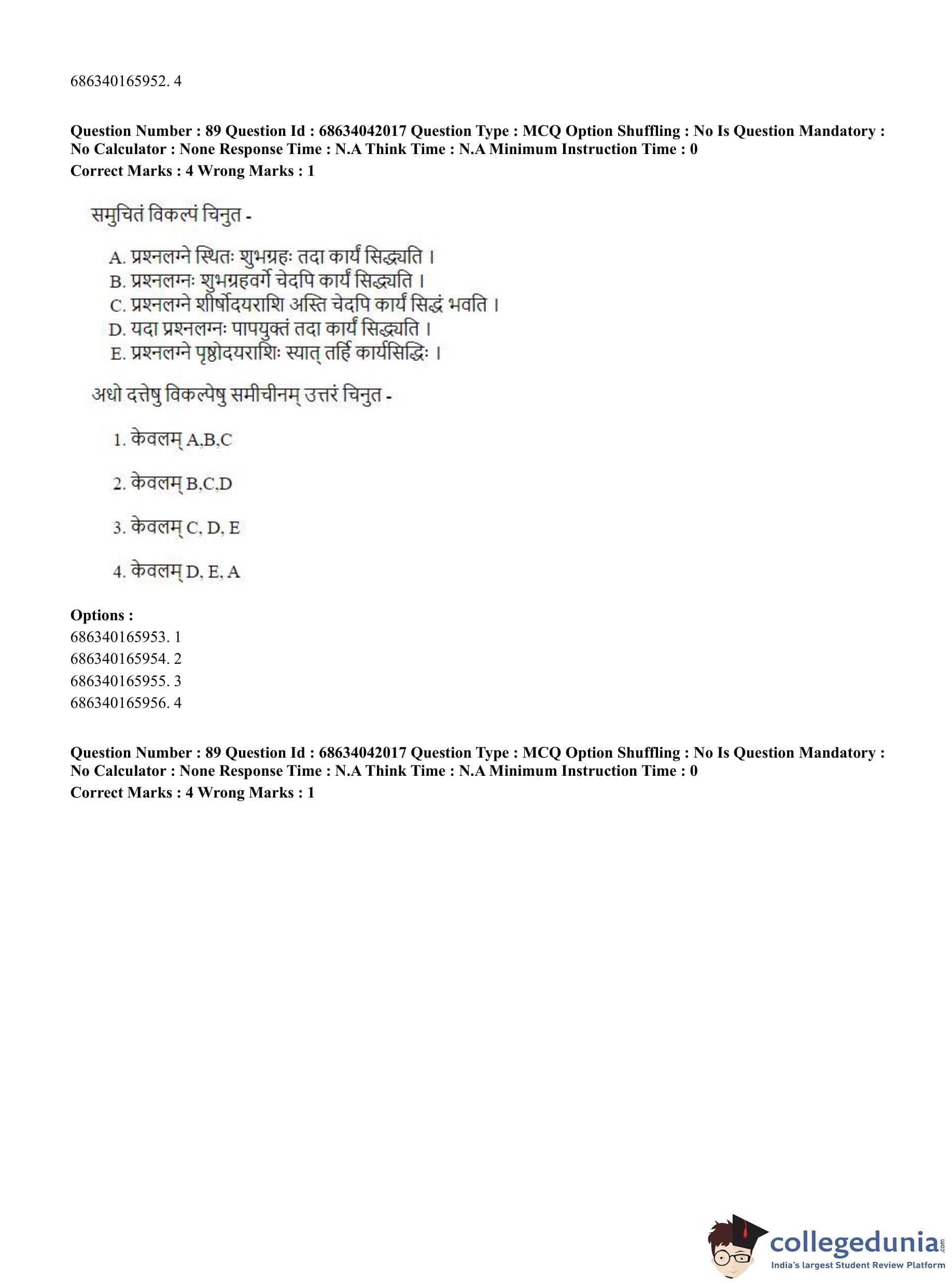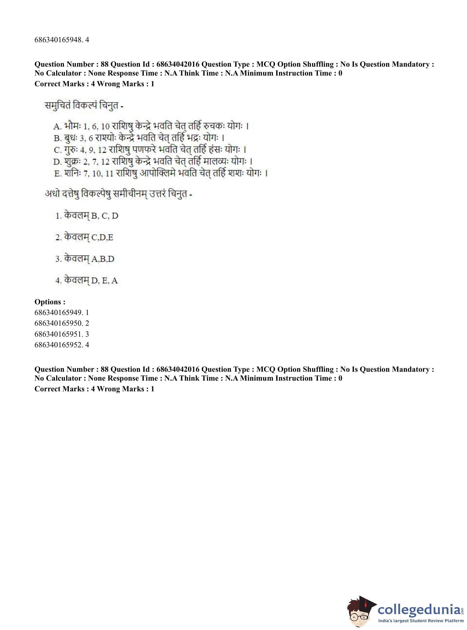 CUET PG 2023 Jyotish -Falit Question Paper in Hindi (June 30 - Shift 3)