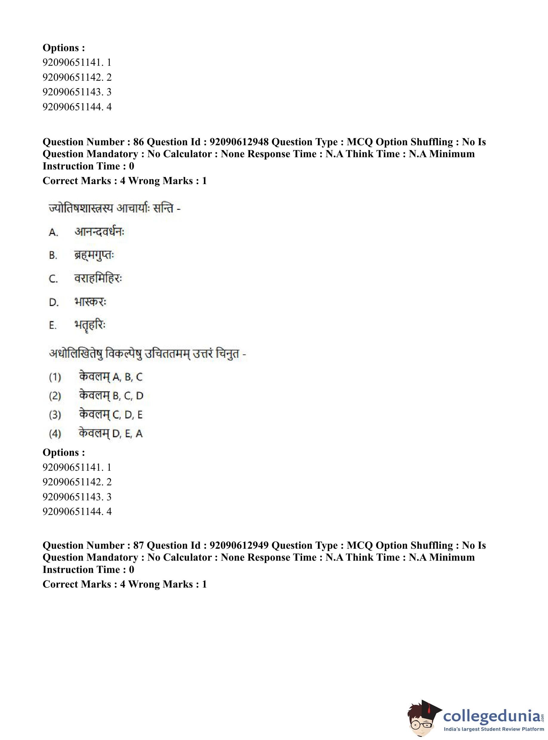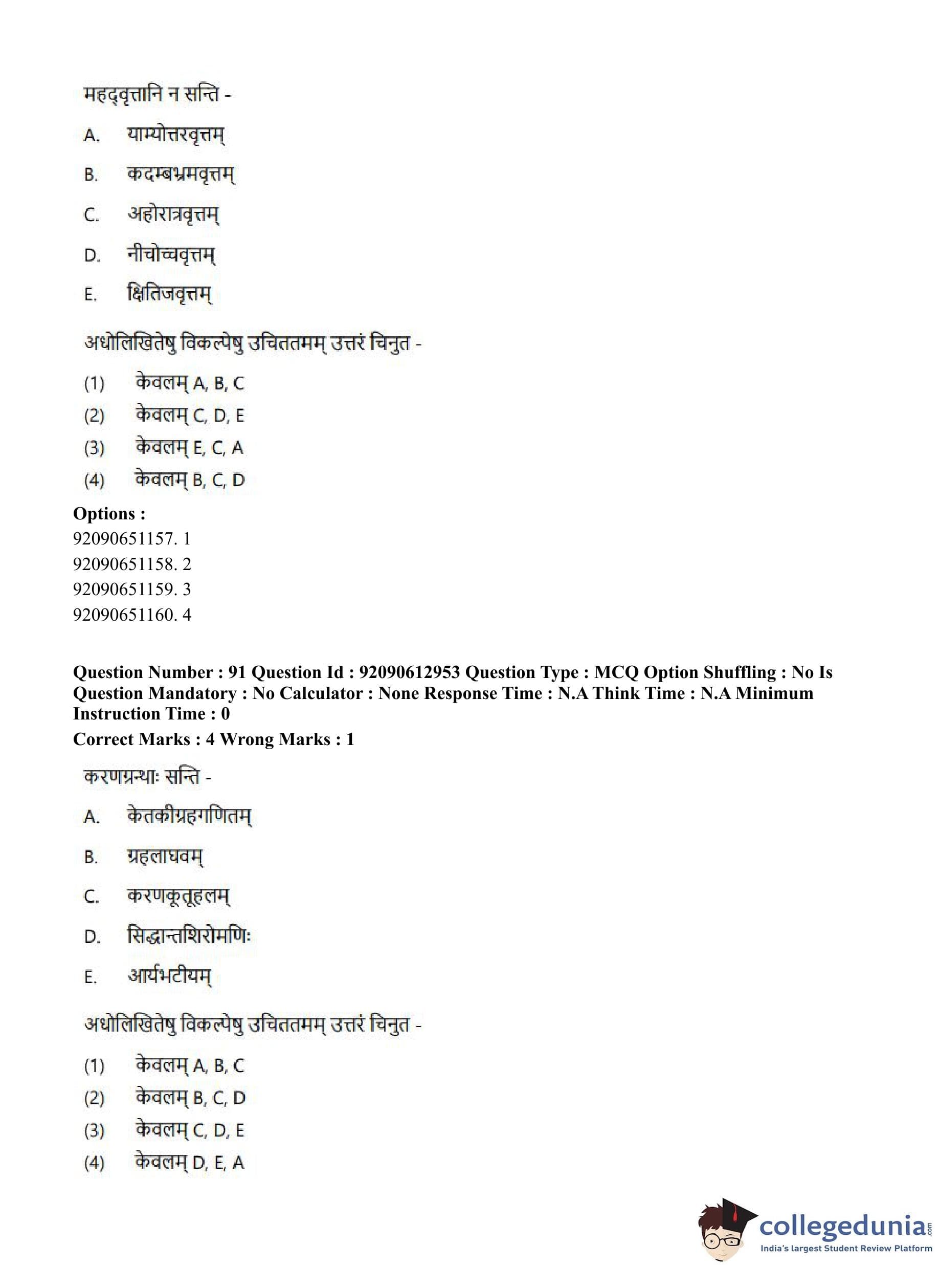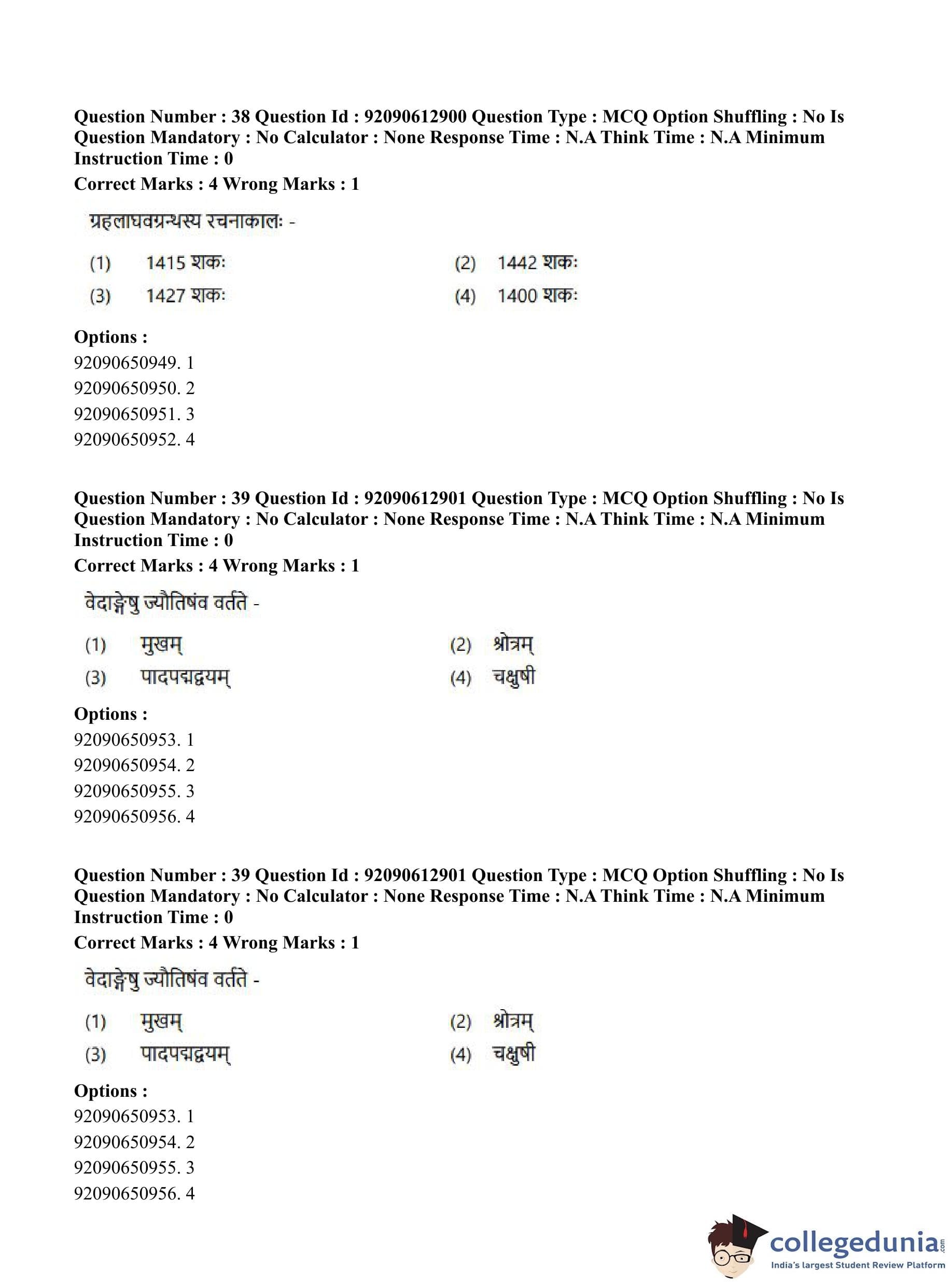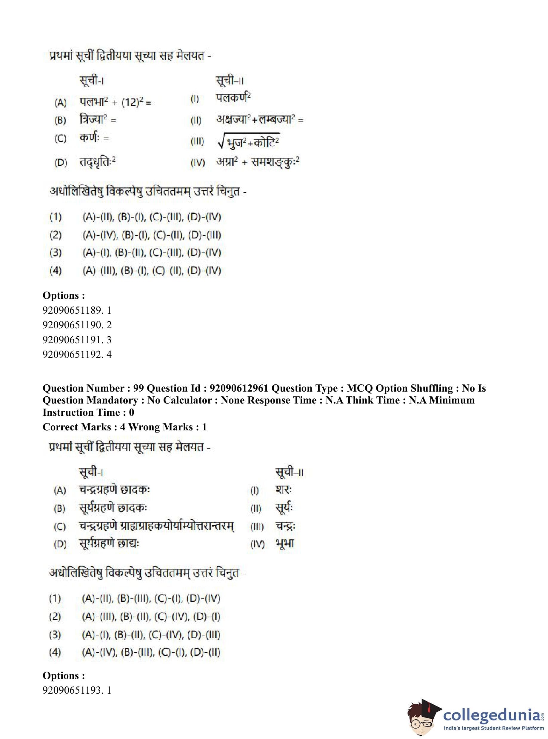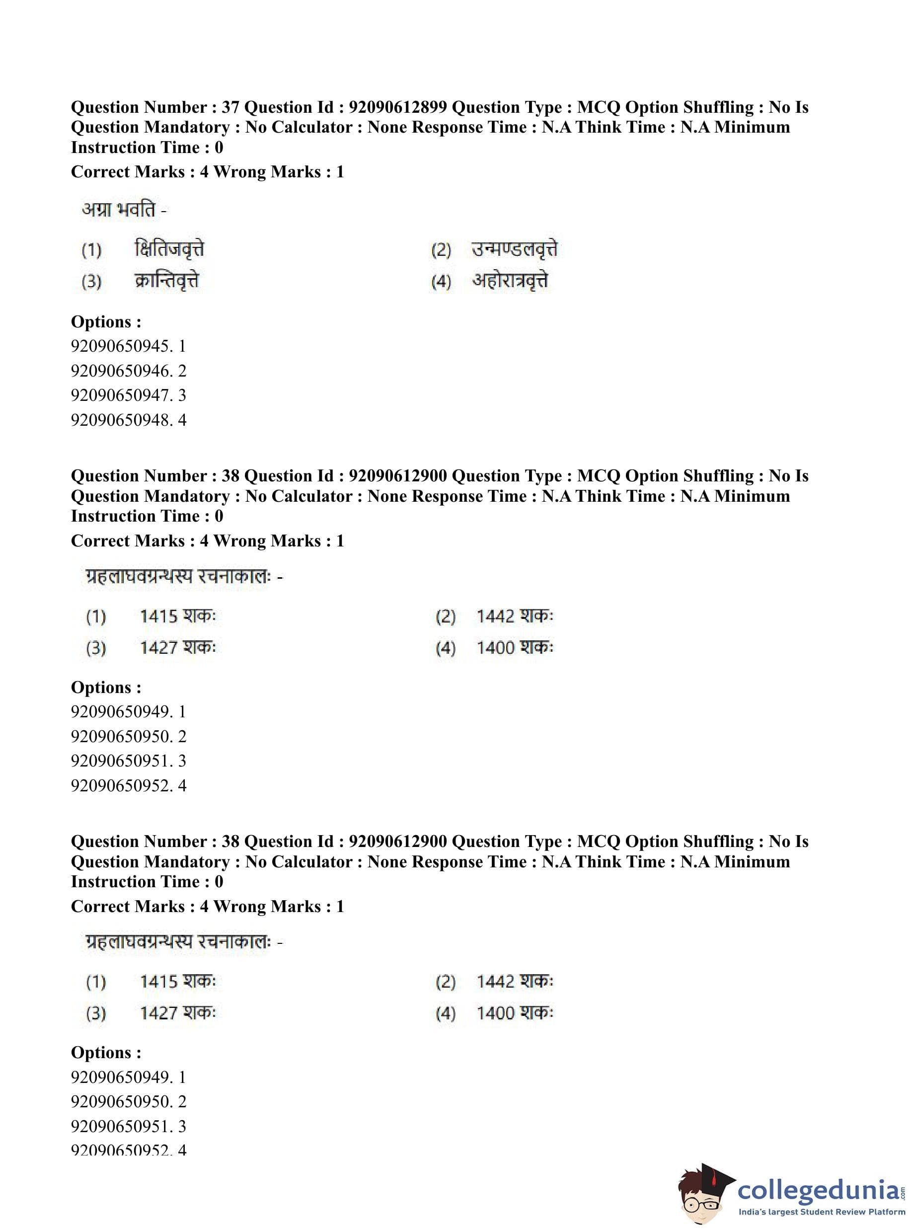 CUET PG 2023 Jyotish -Ganit Question Paper in English (June 12 - Shift 1)