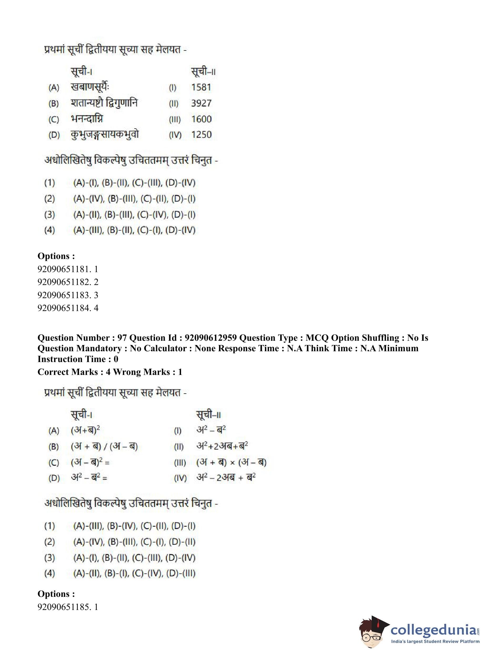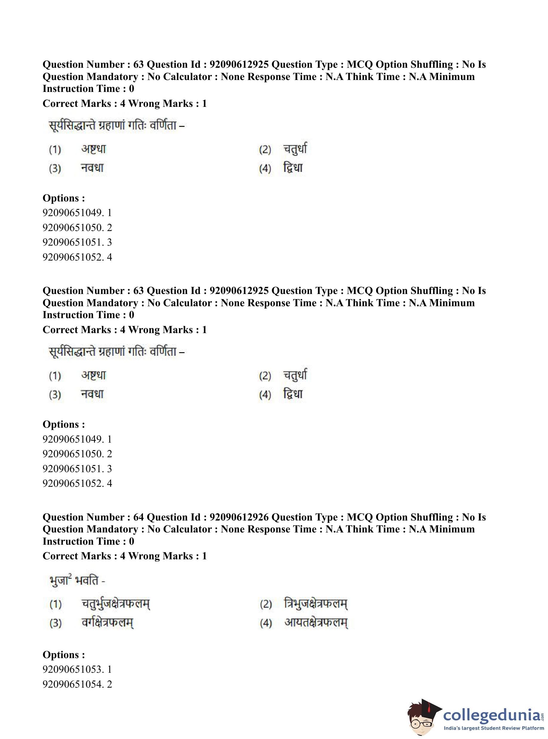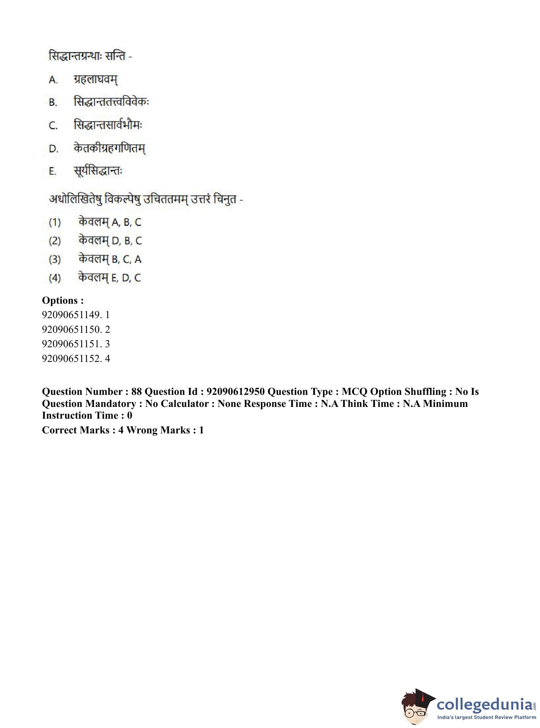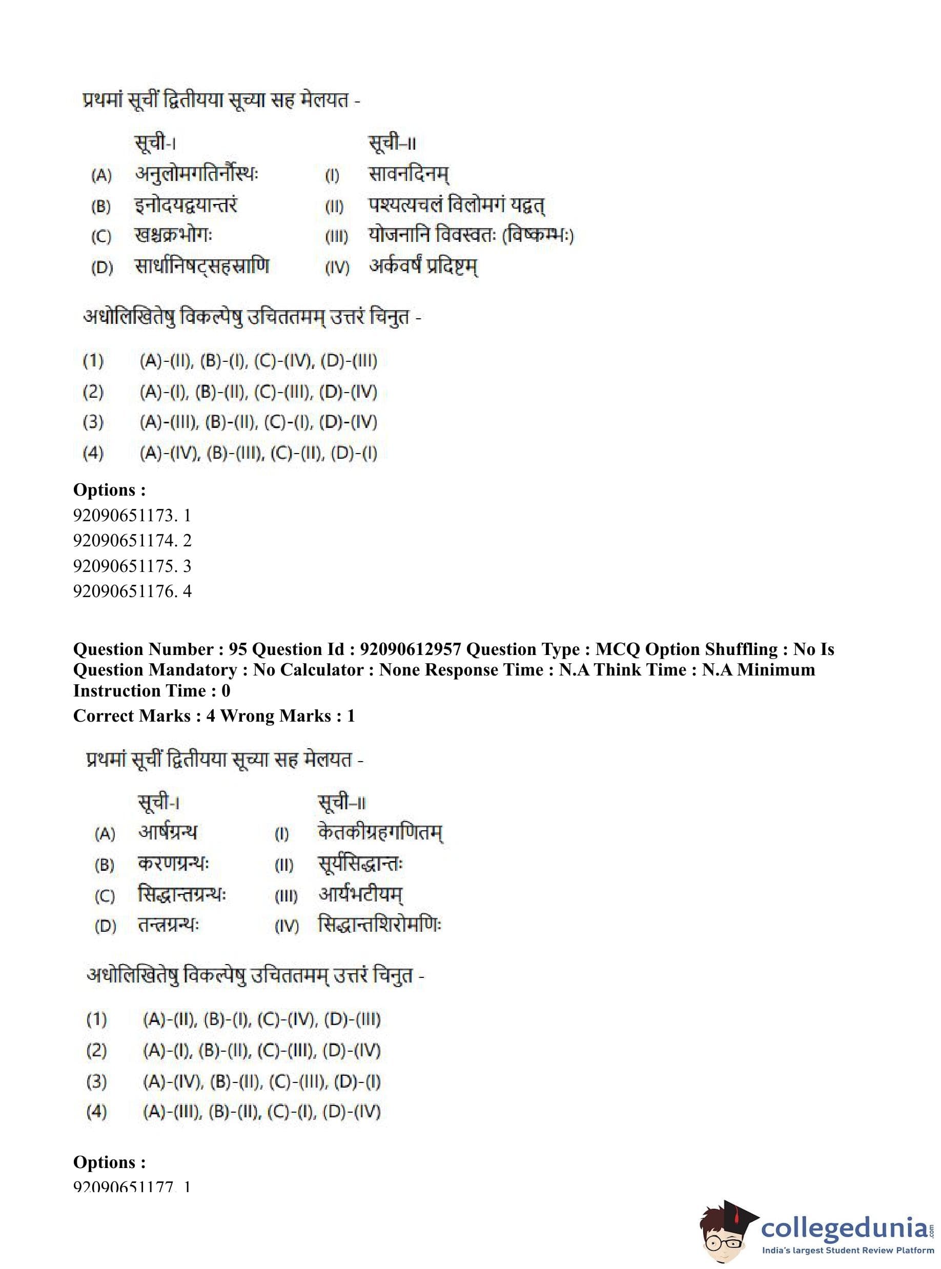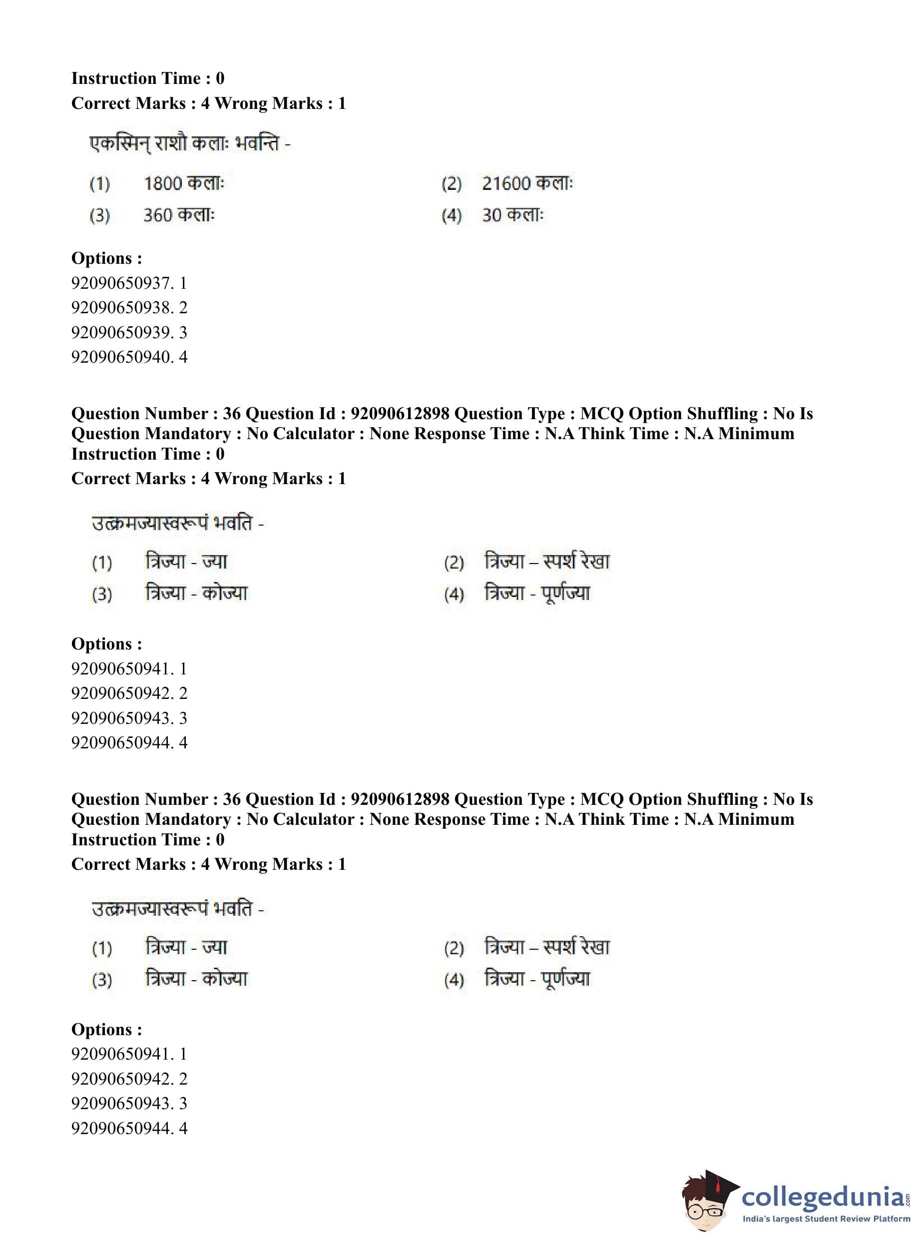 CUET PG 2023 Jyotish -Ganit Question Paper in English (June 12 - Shift 1)