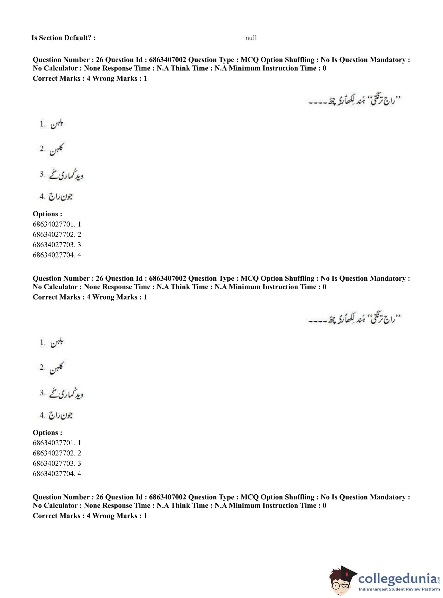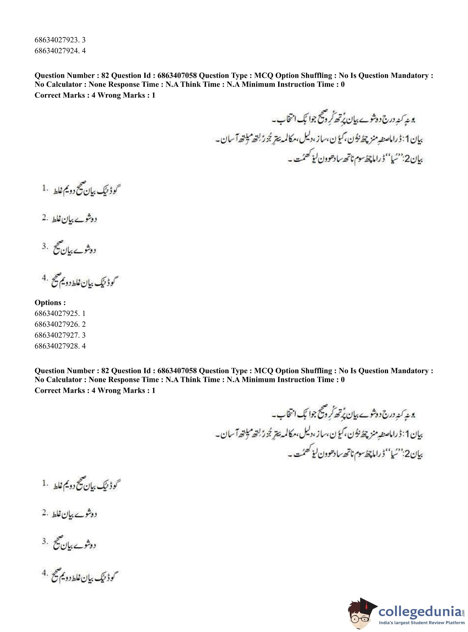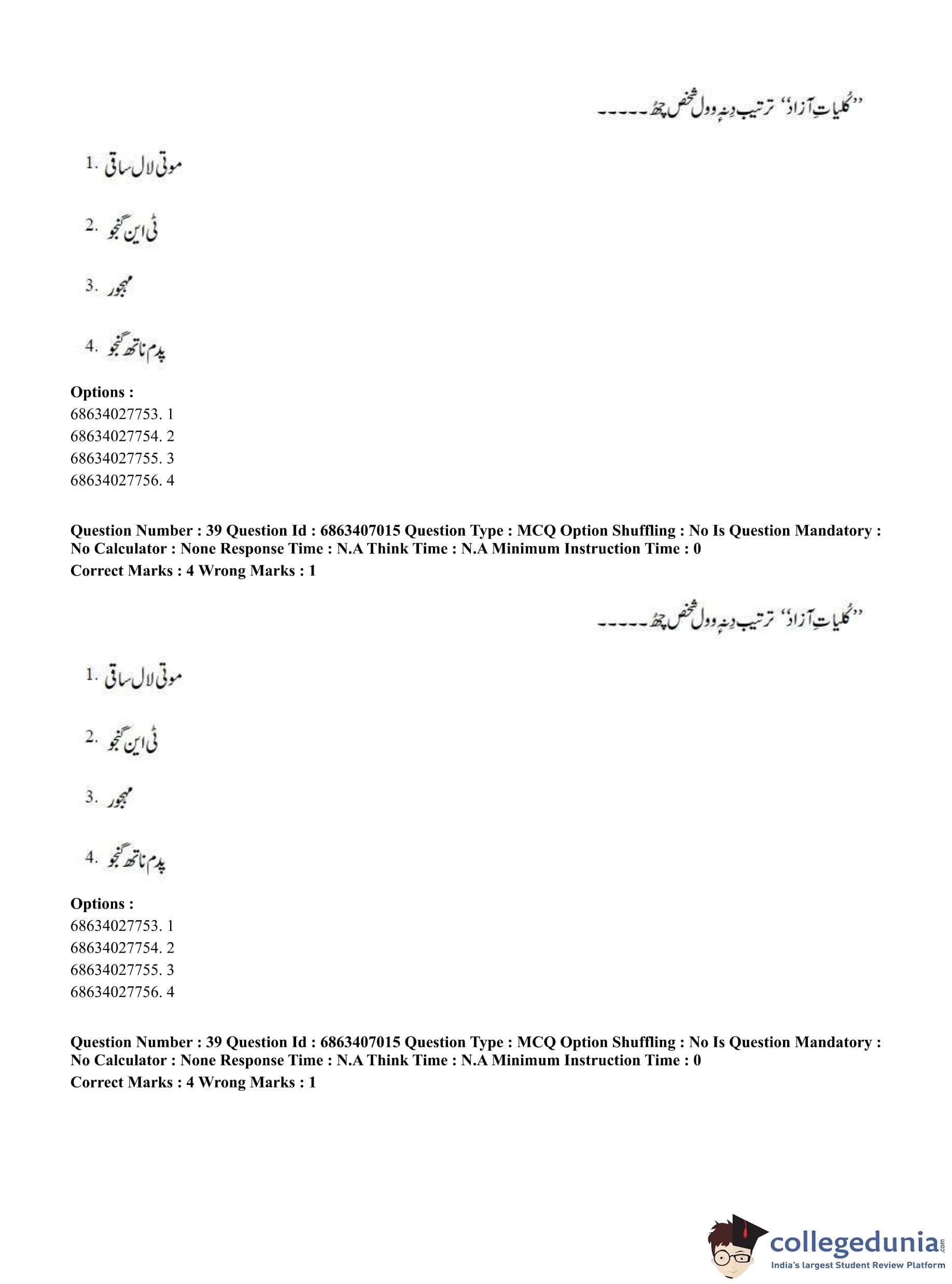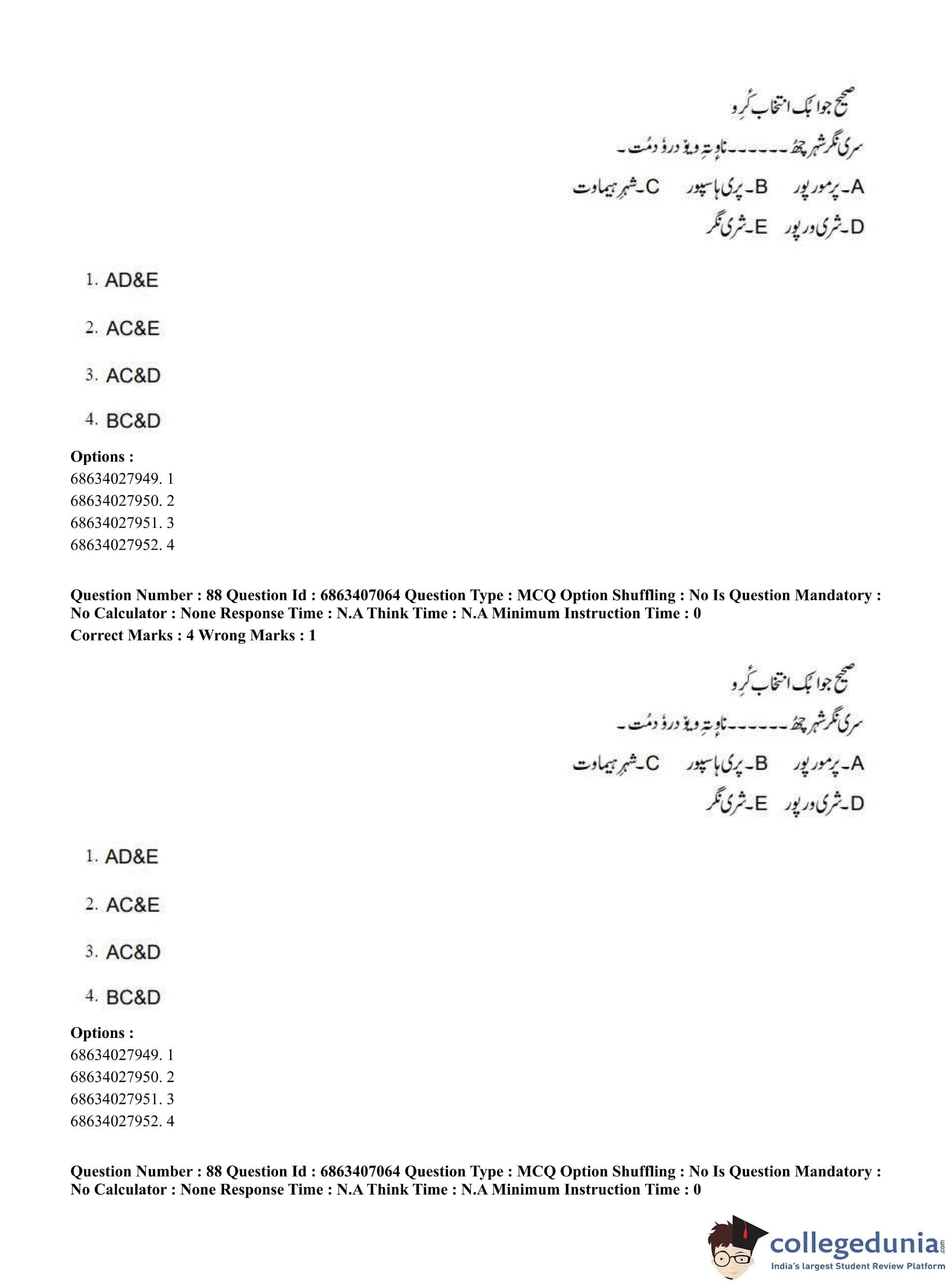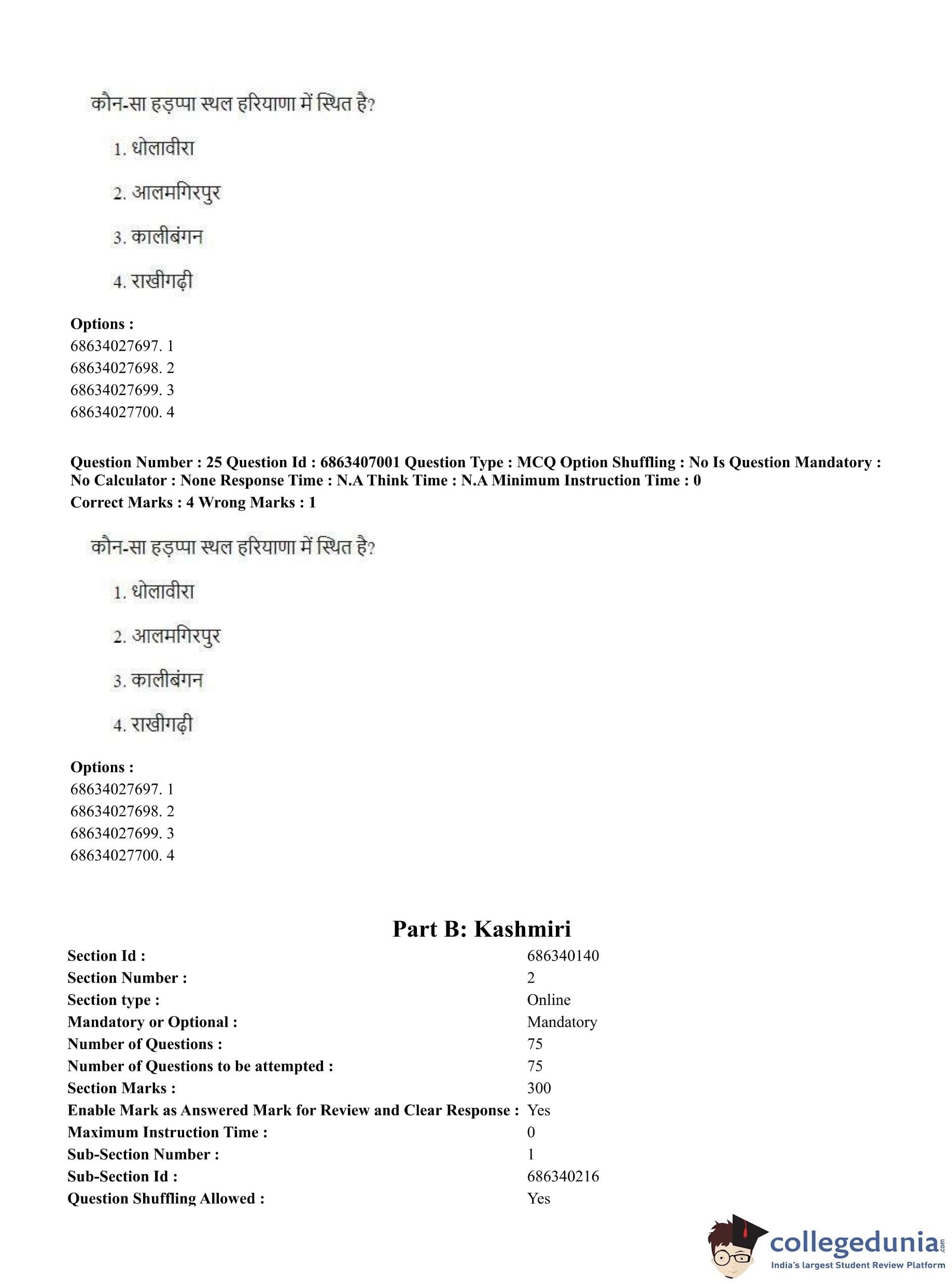 CUET PG 2023 Kashmiri Question Paper in Hindi (June 7 - Shift 1)