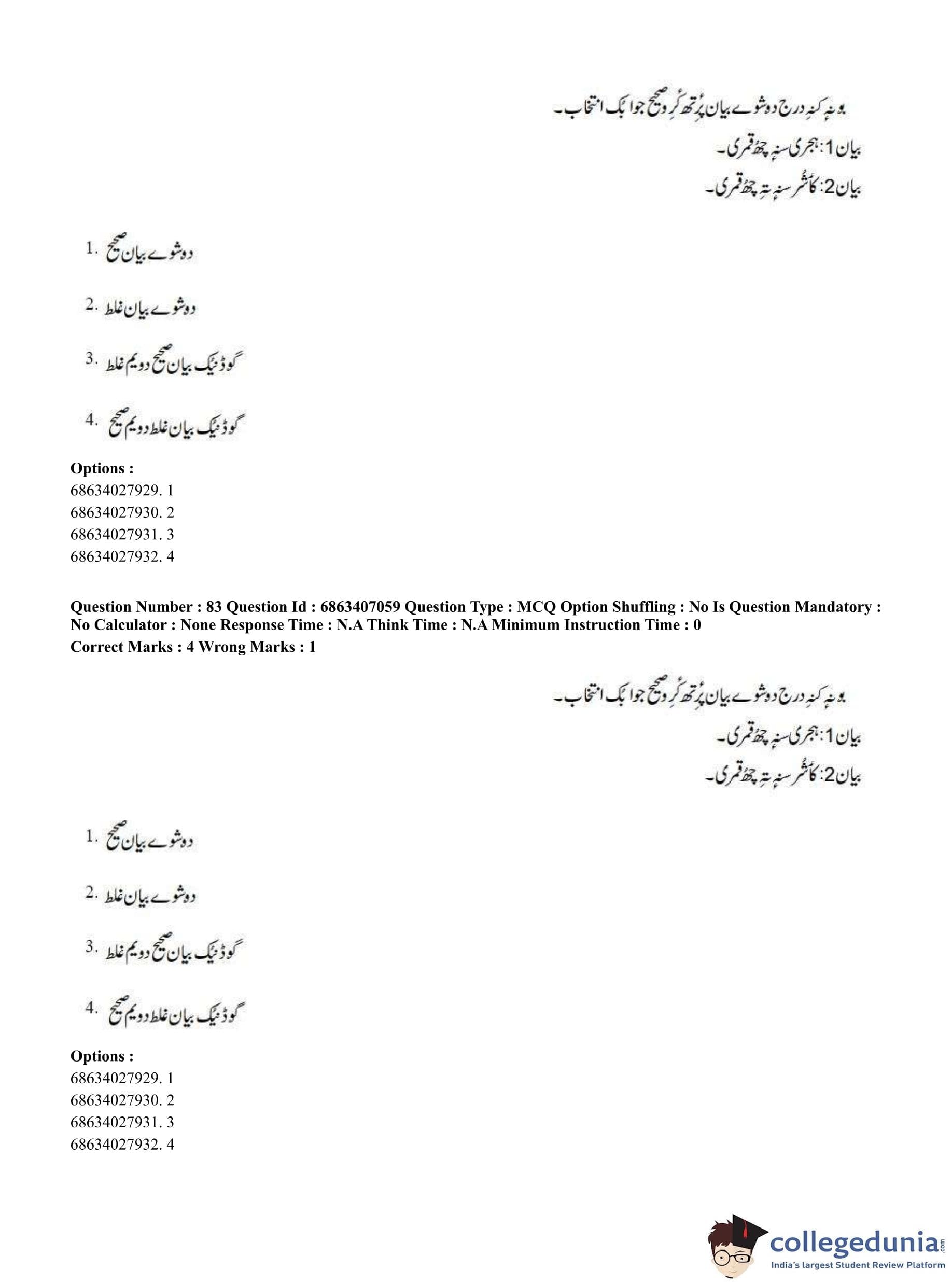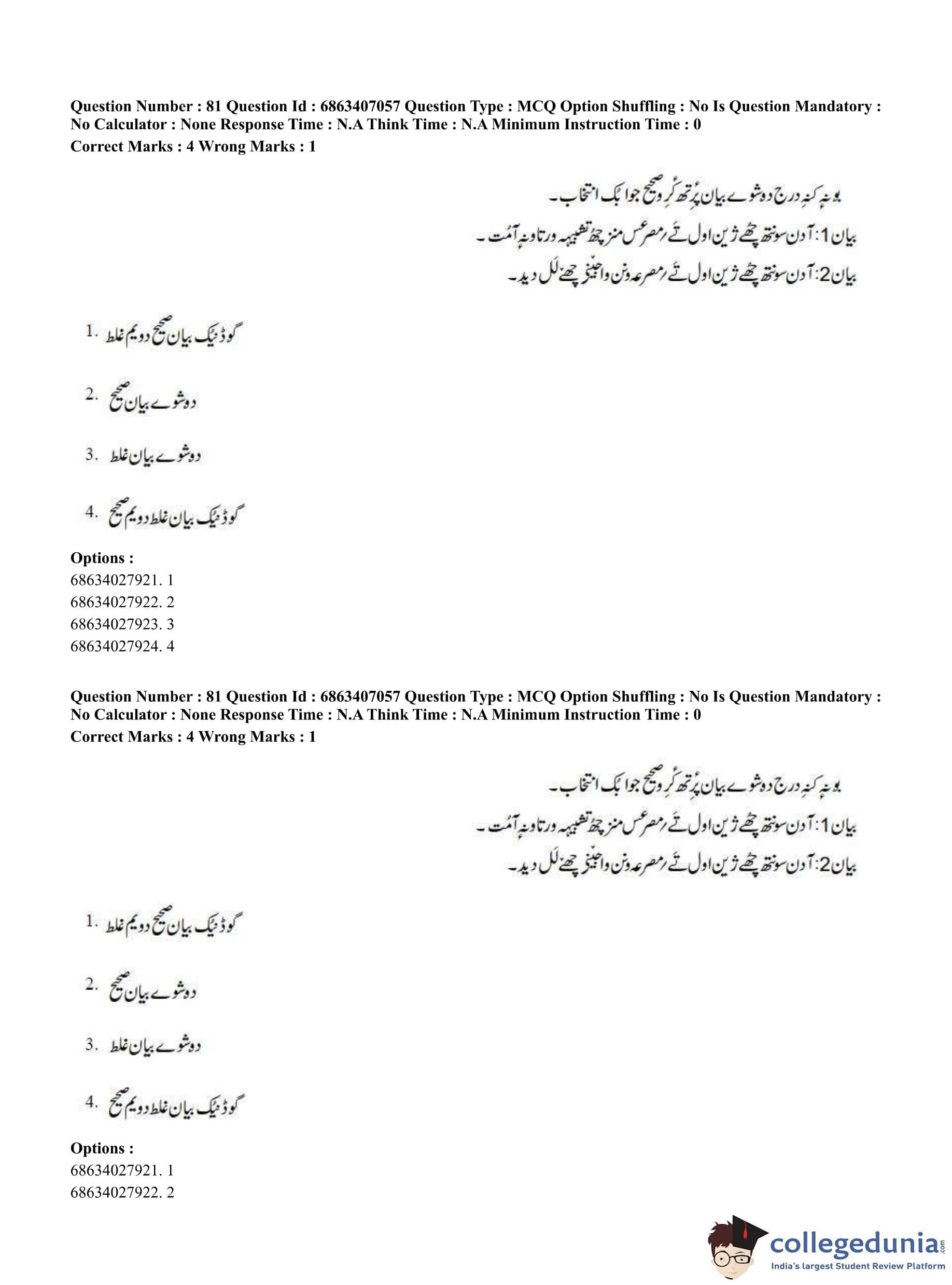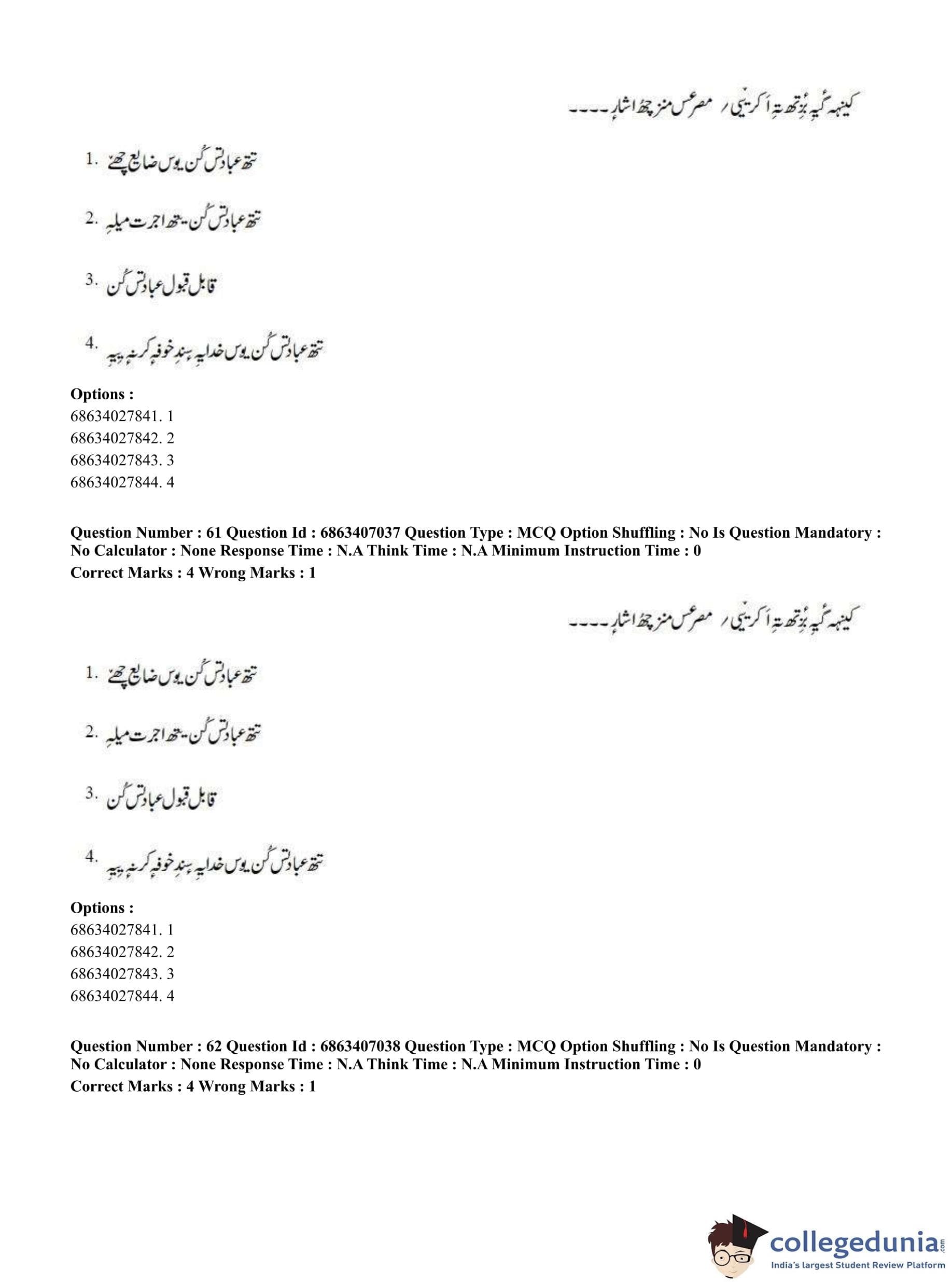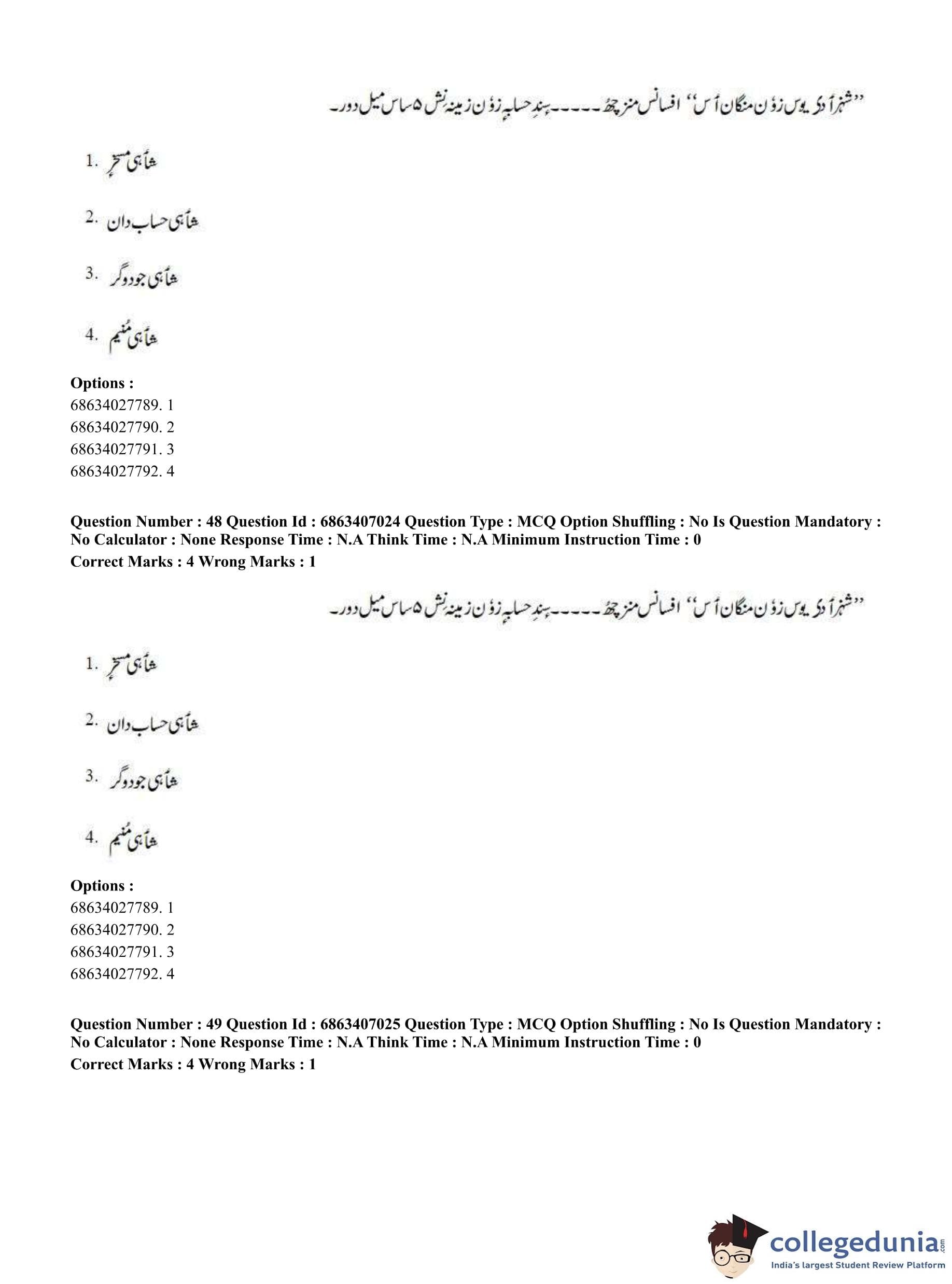 CUET PG 2023 Kashmiri Question Paper in Hindi (June 7 - Shift 1)