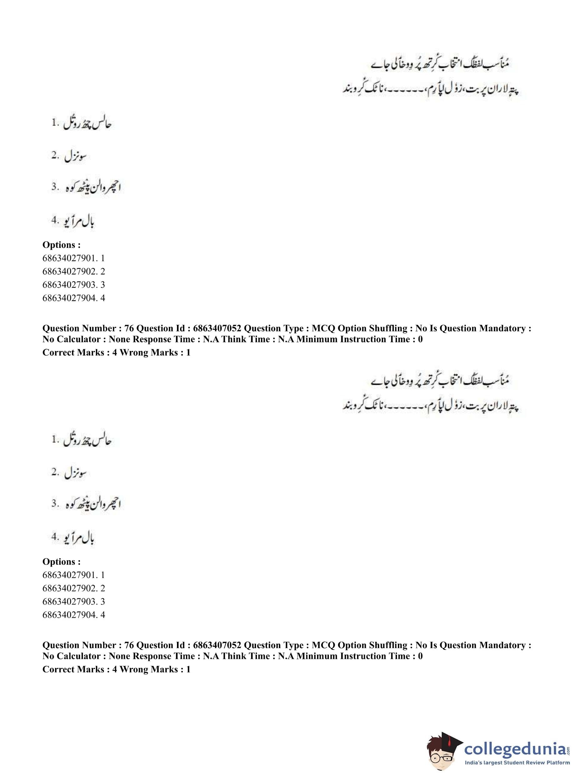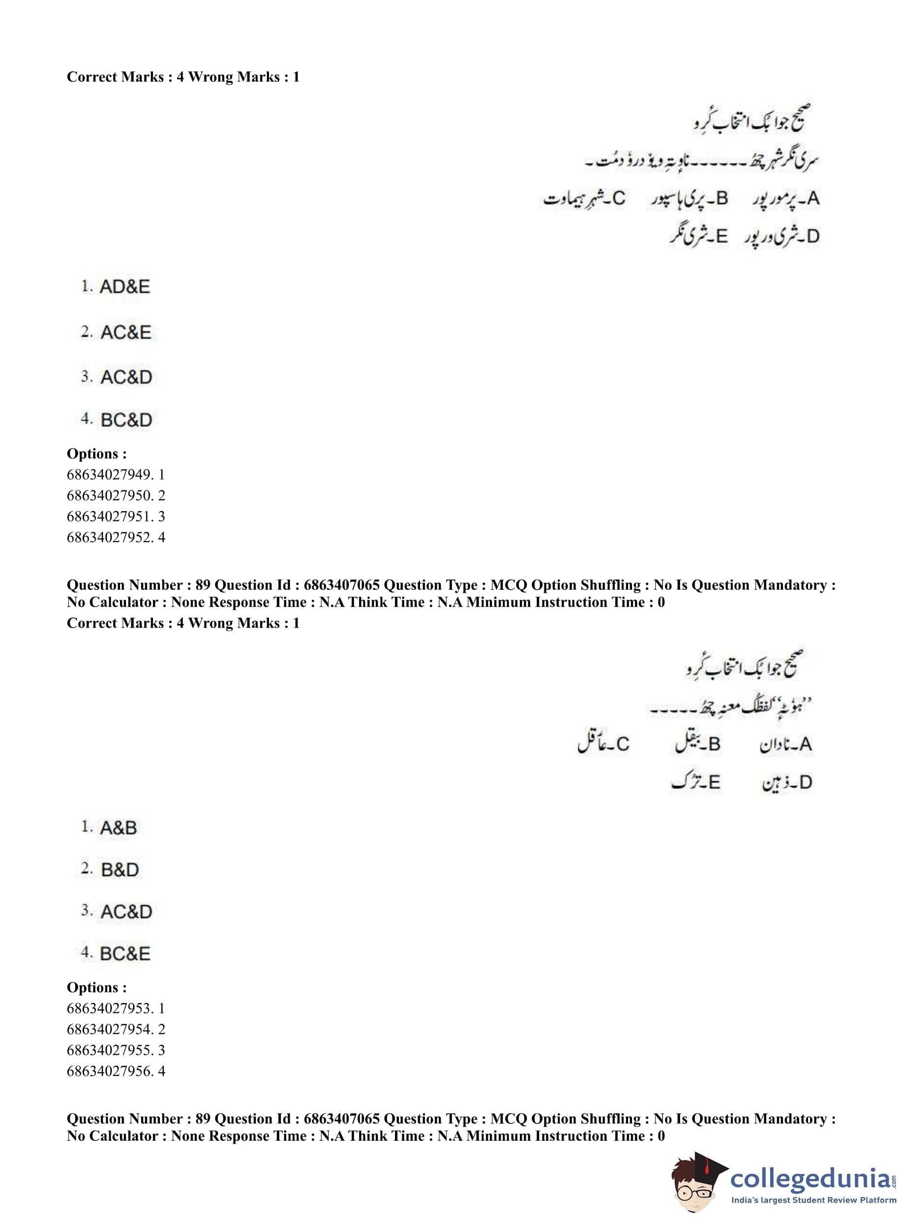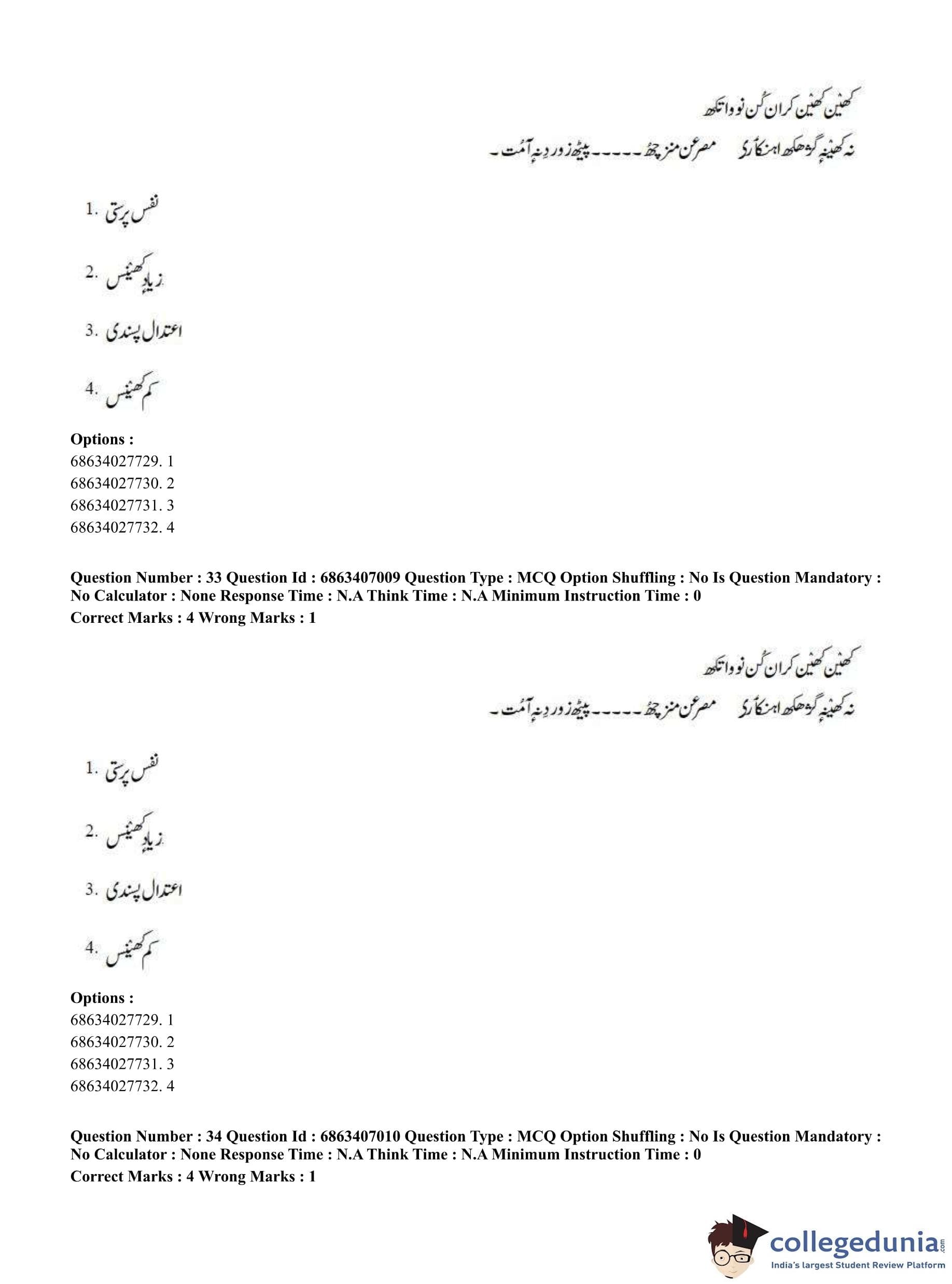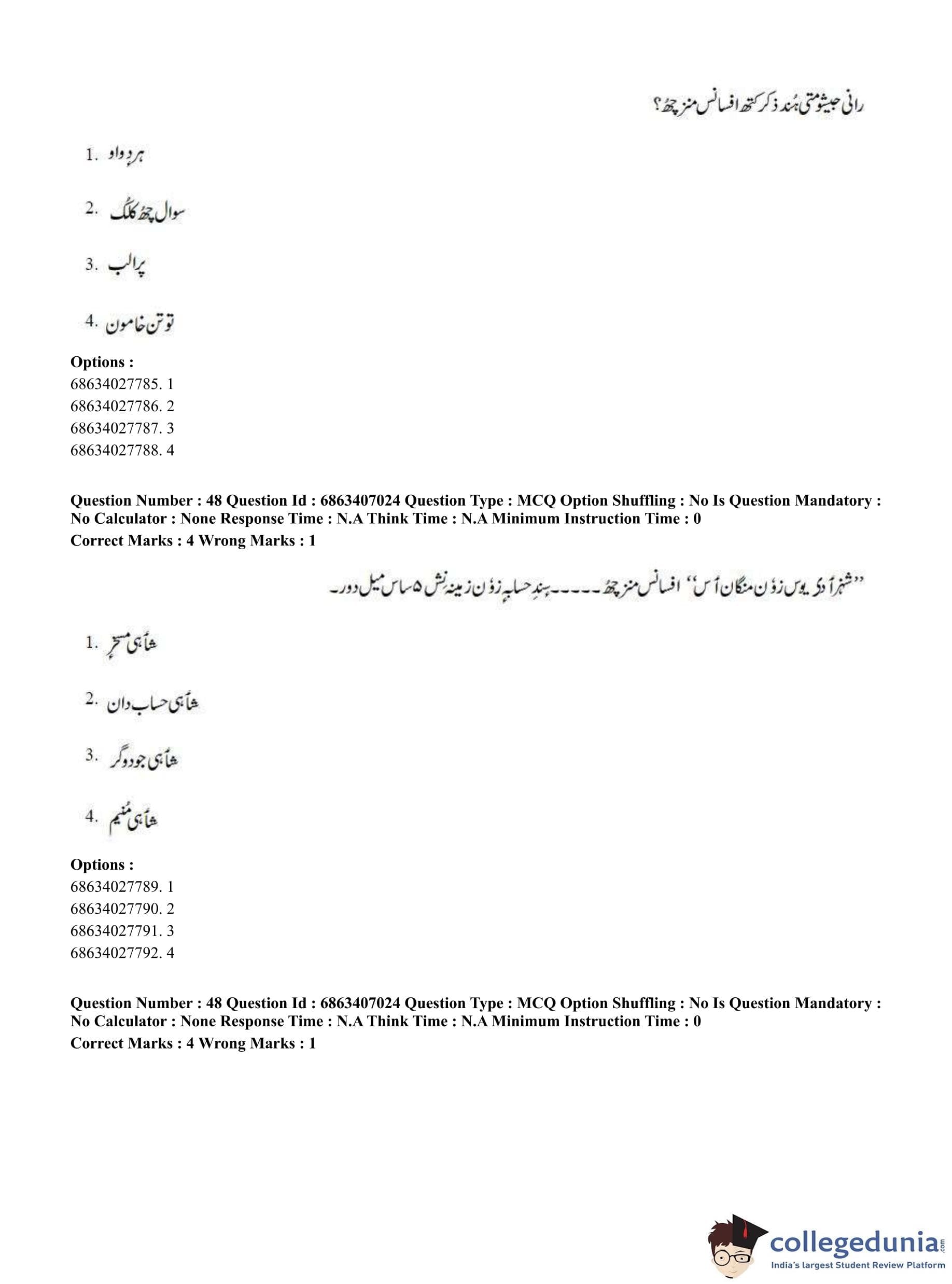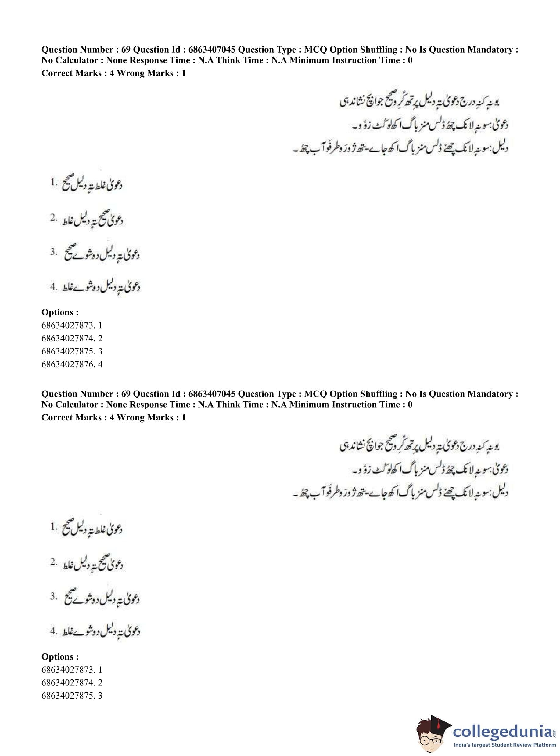 CUET PG 2023 Kashmiri Question Paper in Hindi (June 7 - Shift 1)