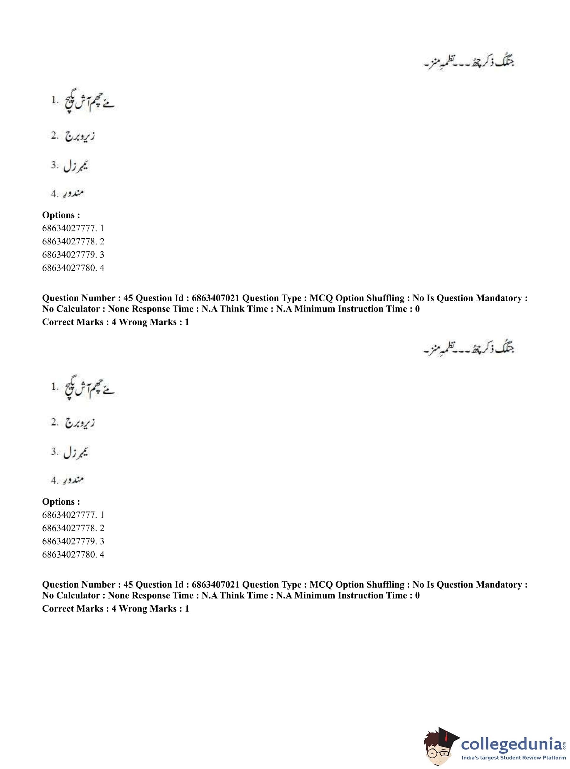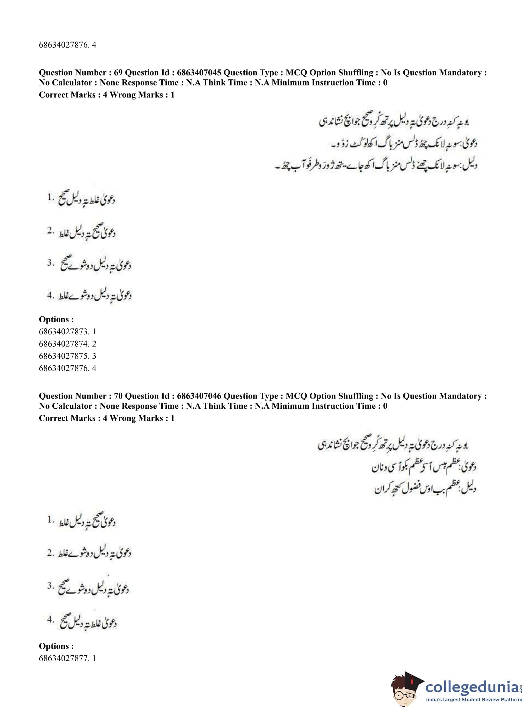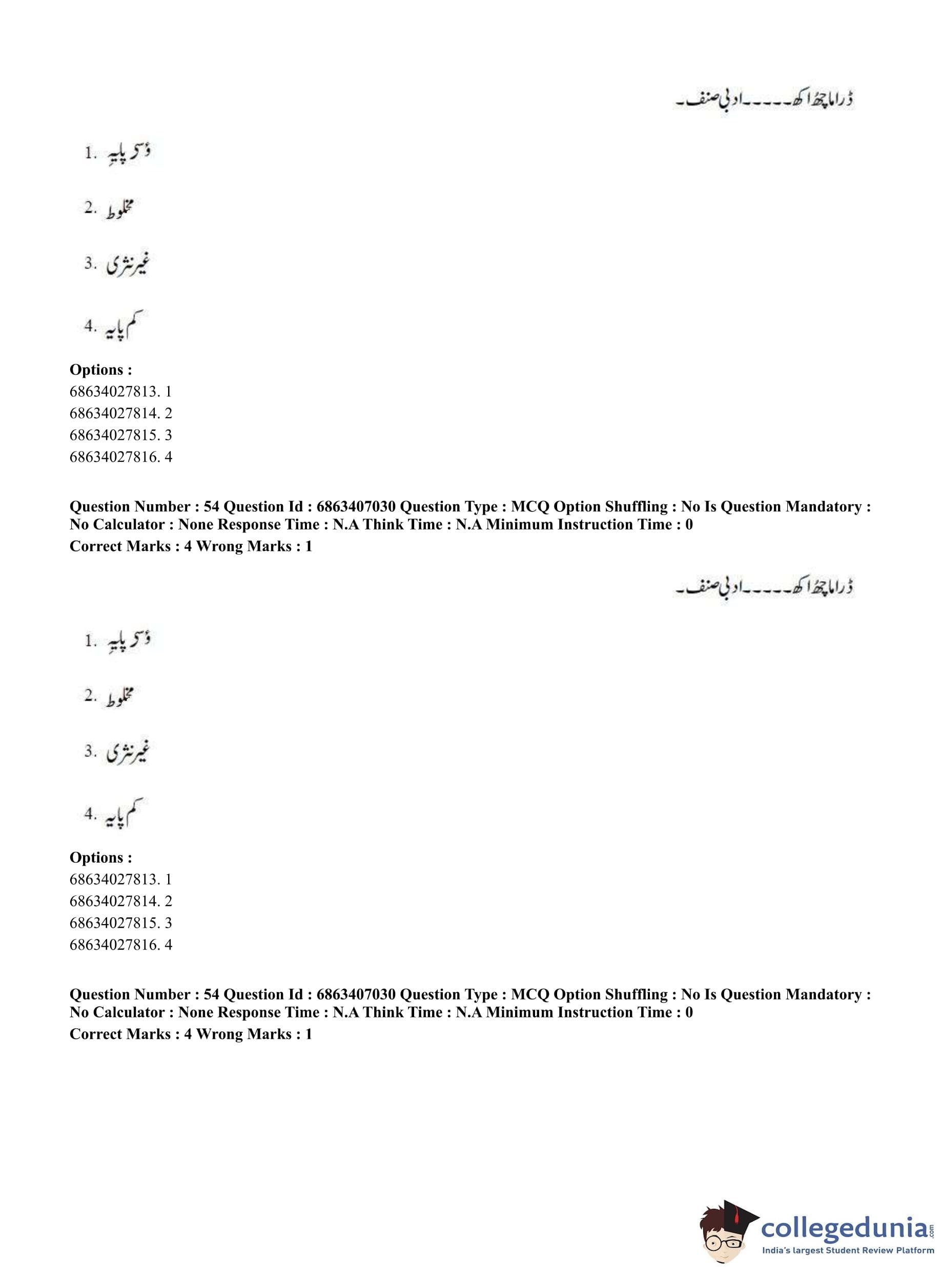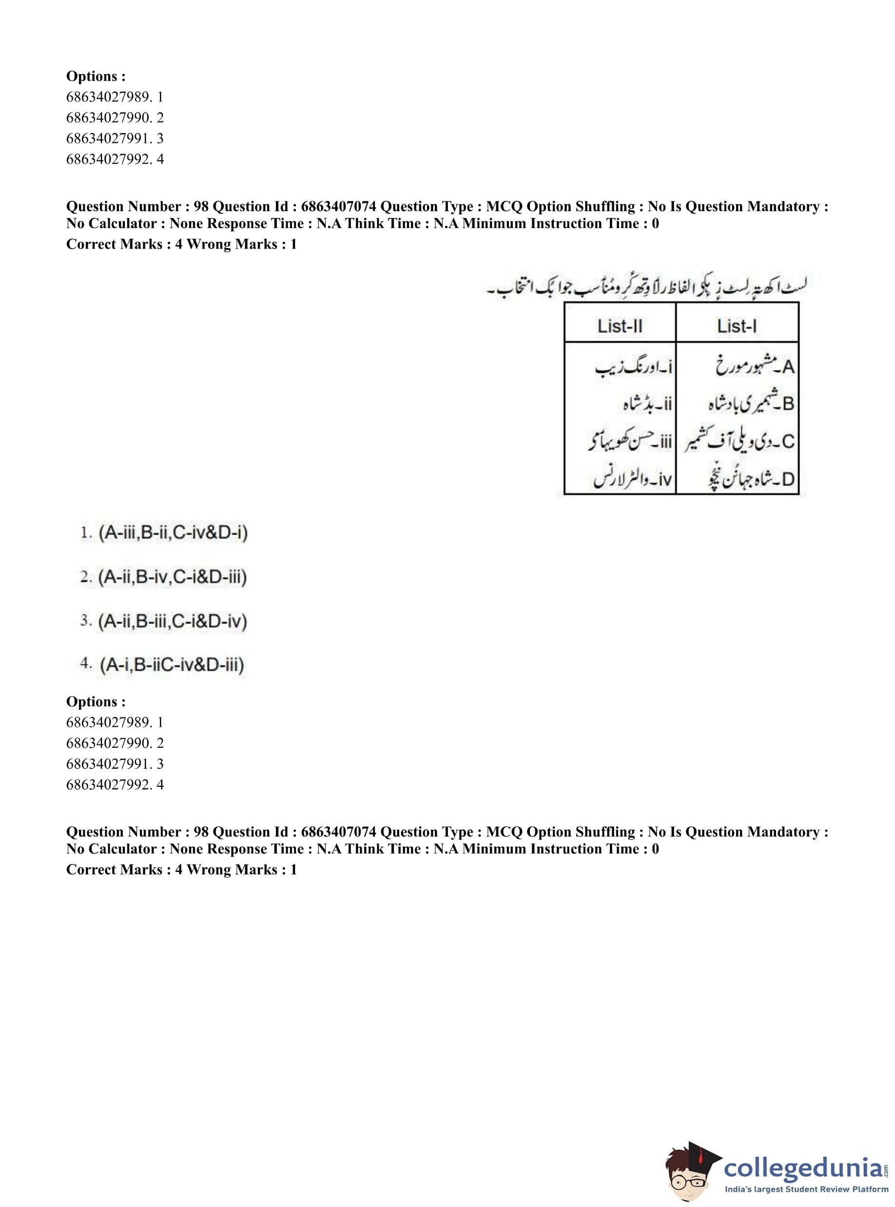 CUET PG 2023 Kashmiri Question Paper in Hindi (June 7 - Shift 1)