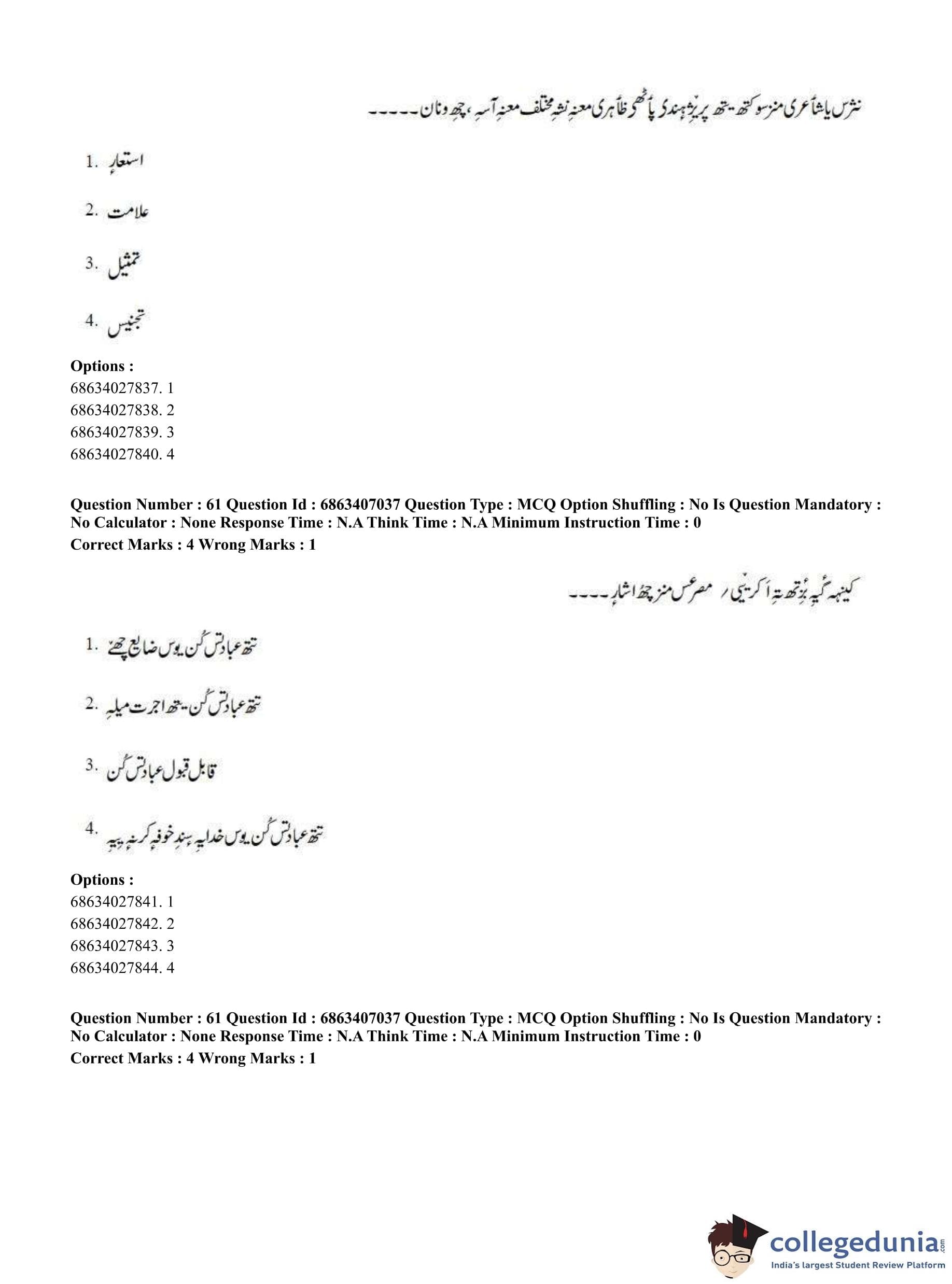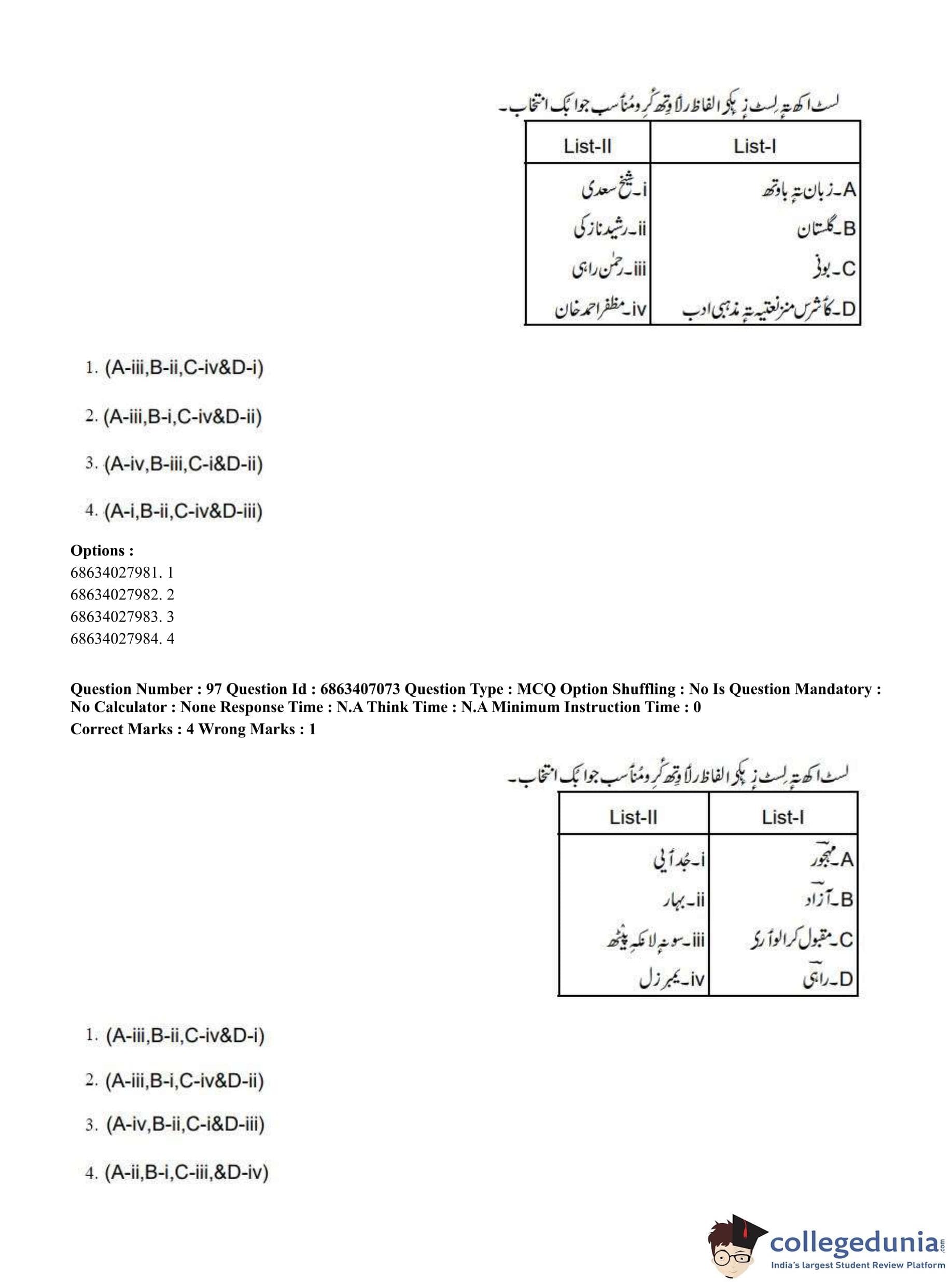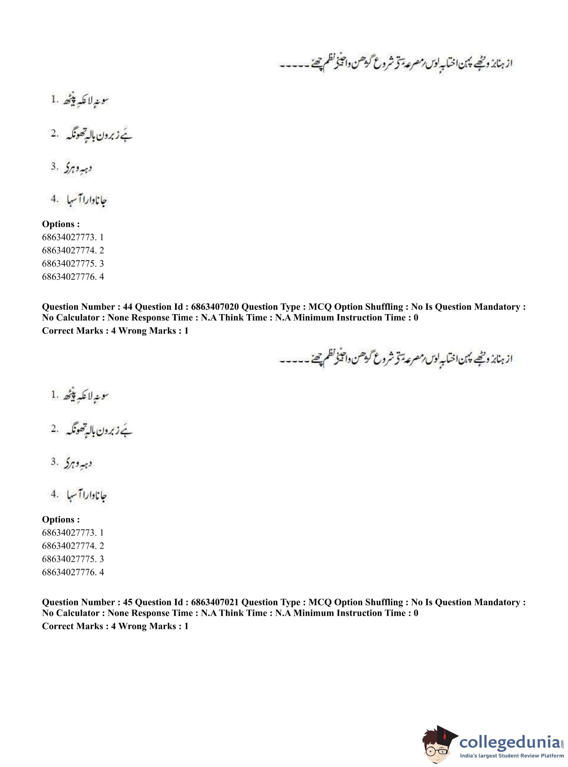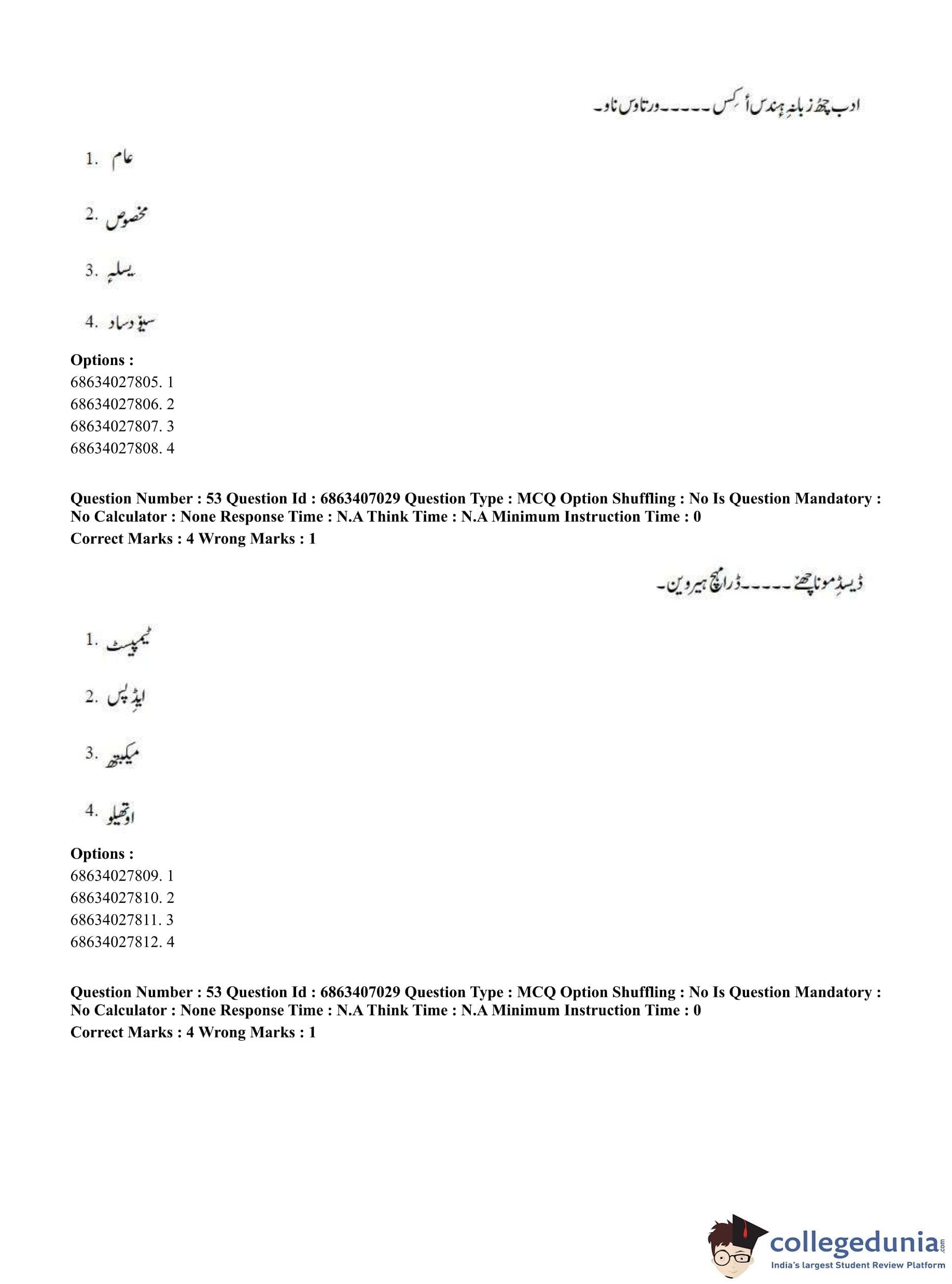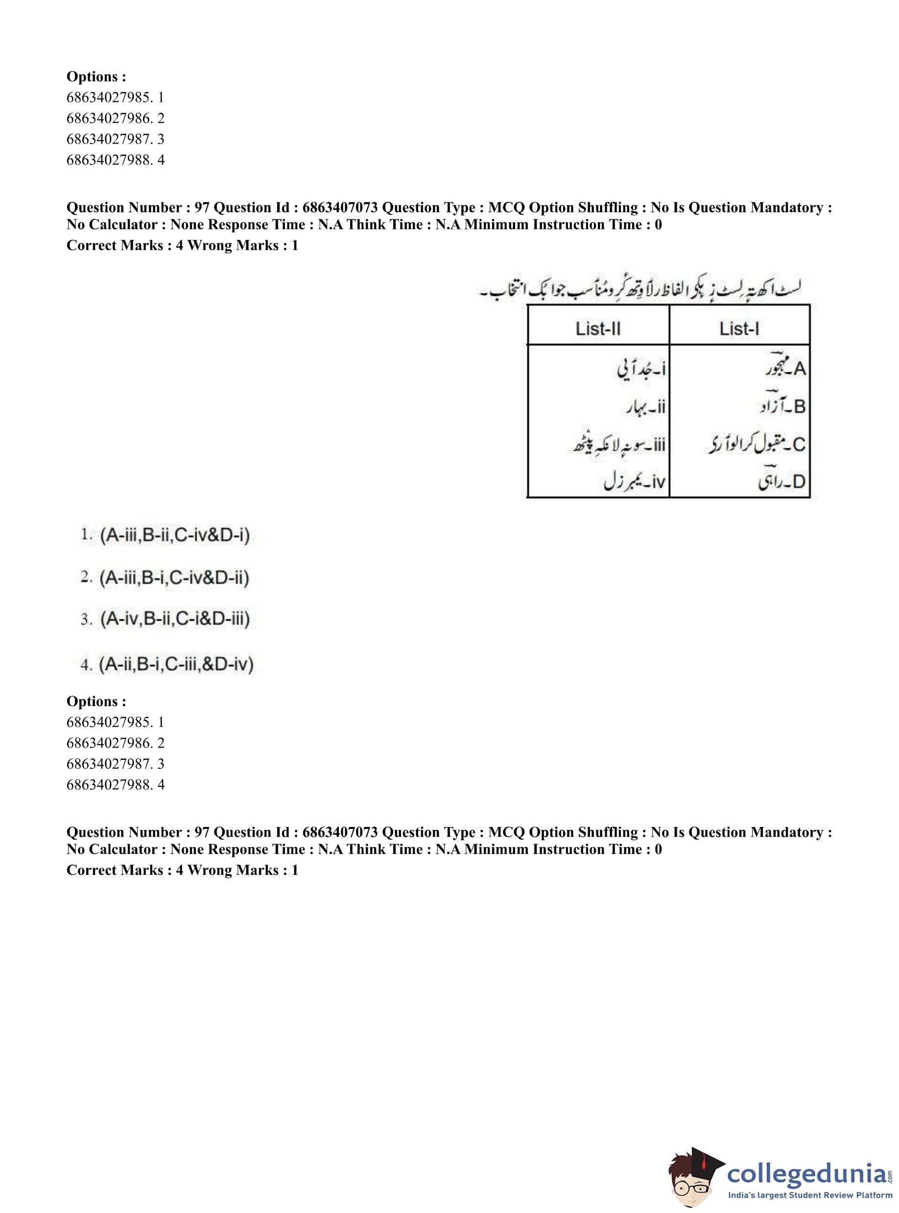 CUET PG 2023 Kashmiri Question Paper in Hindi (June 7 - Shift 1)