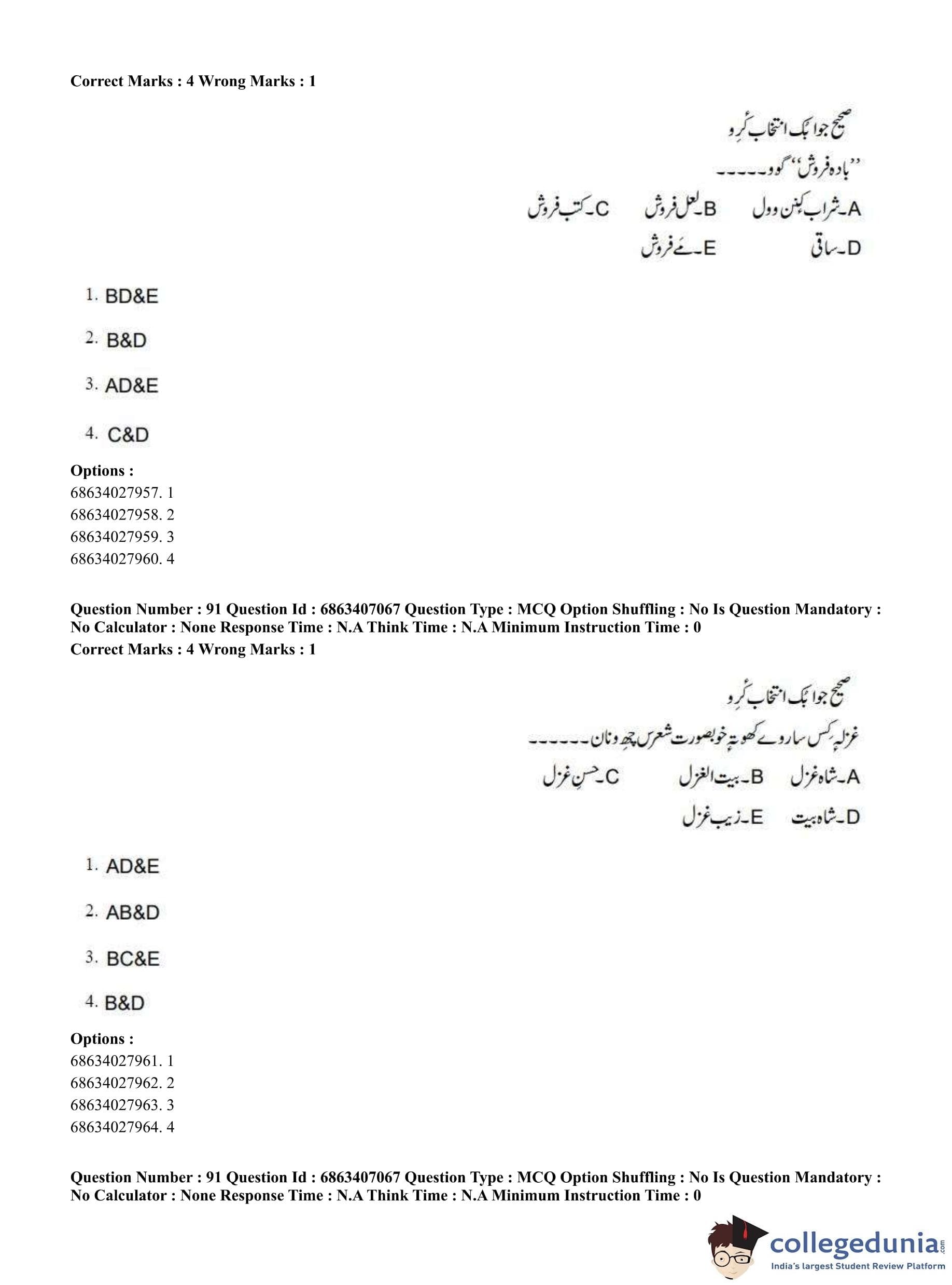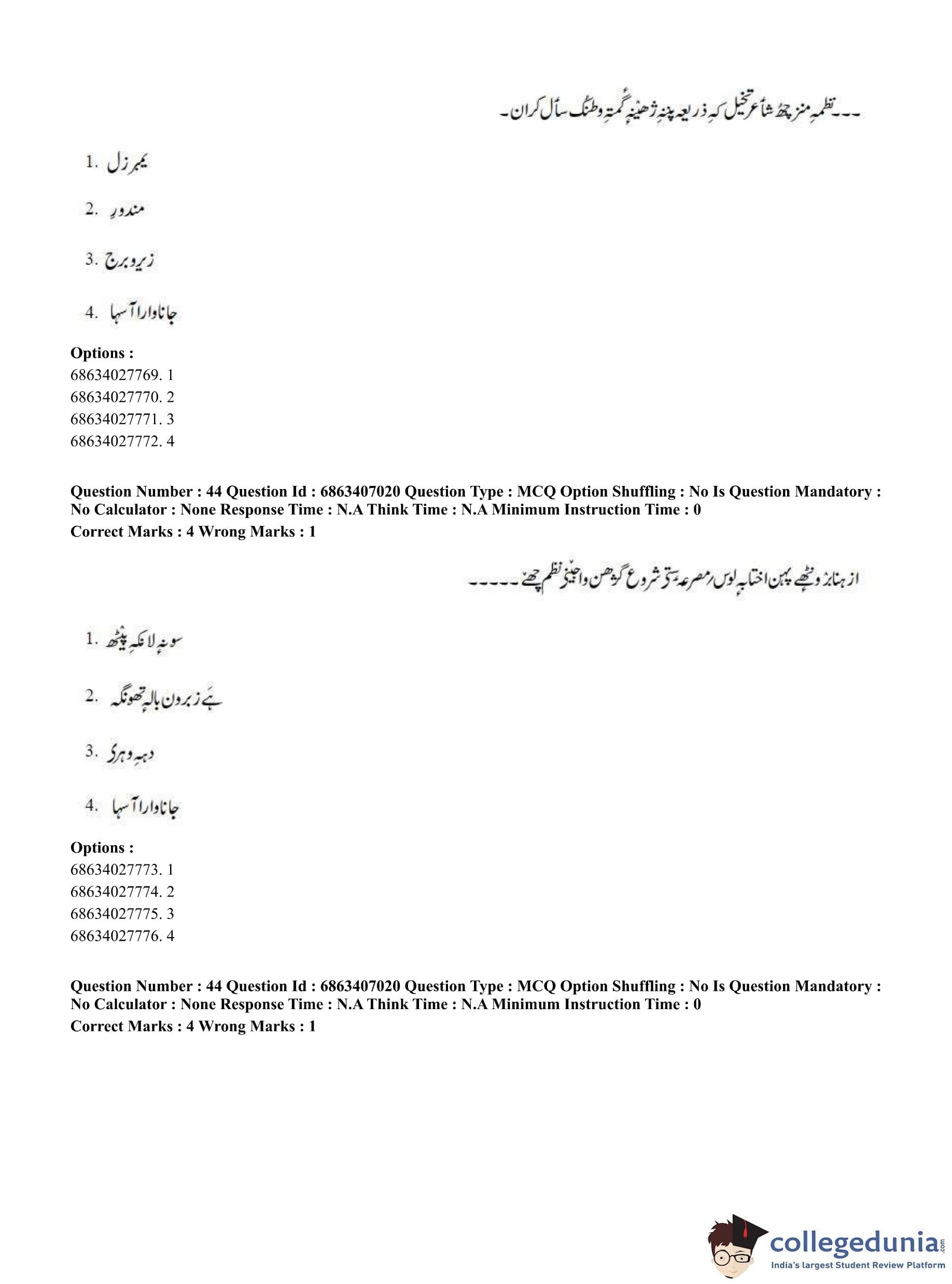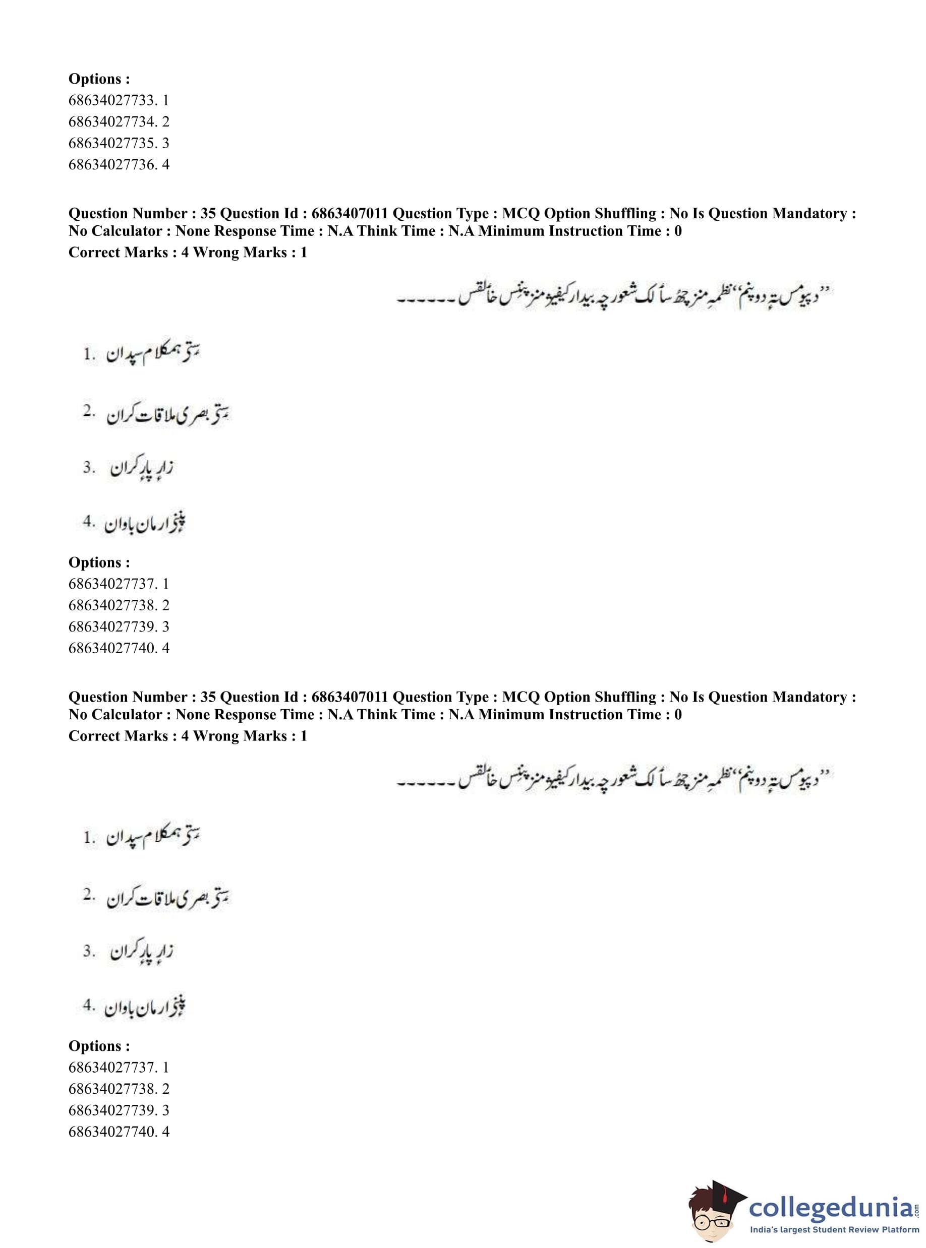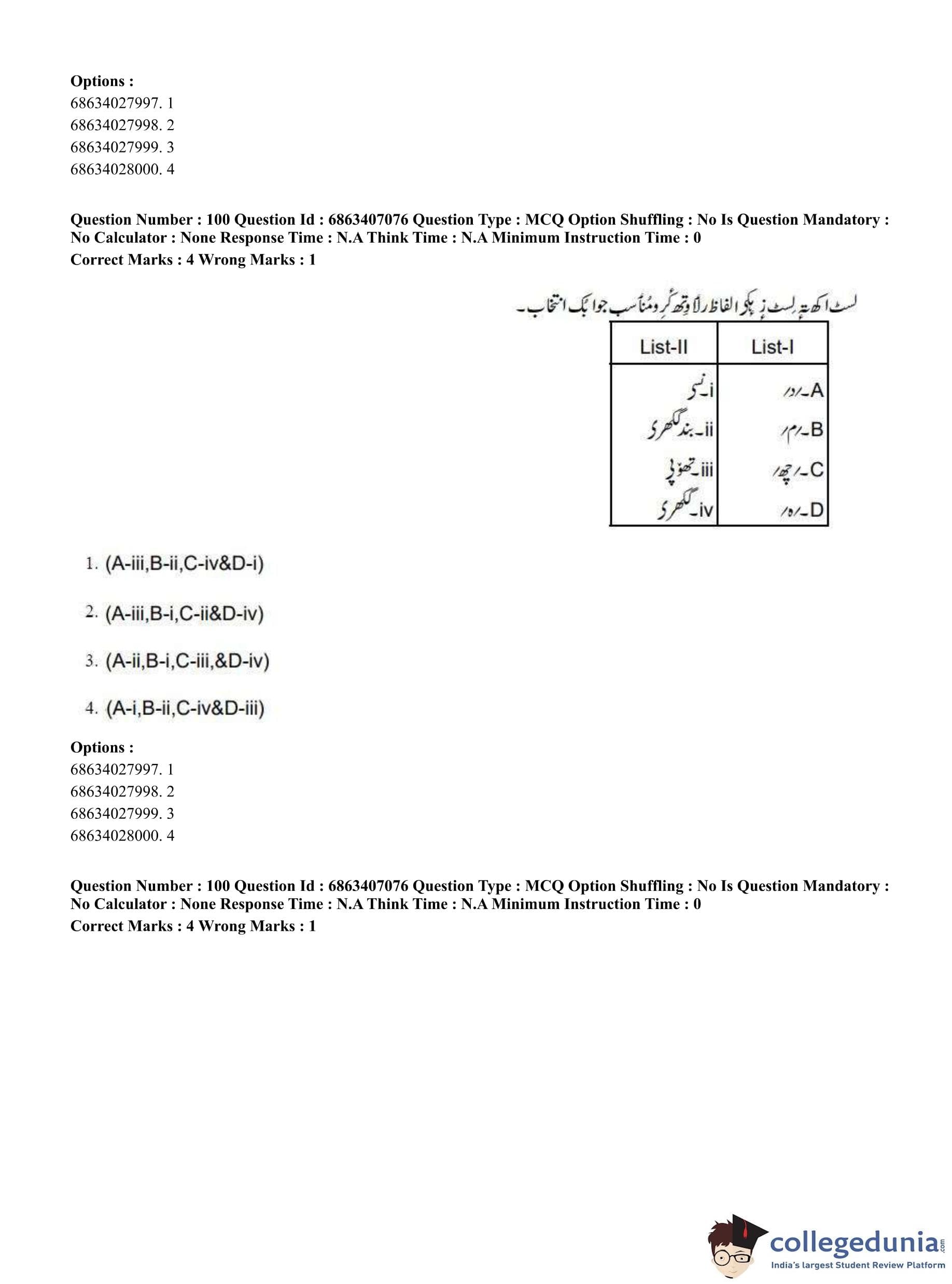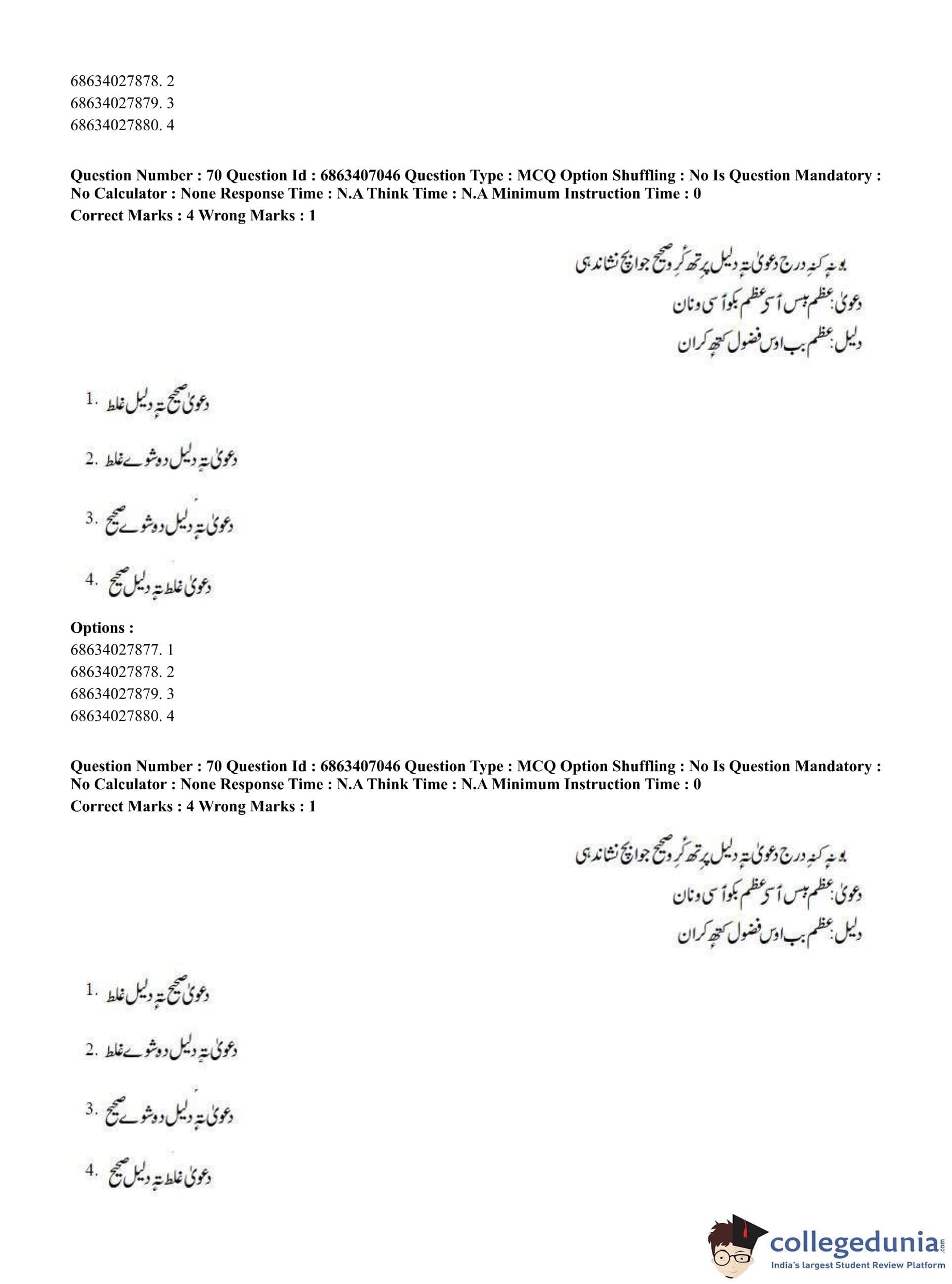 CUET PG 2023 Kashmiri Question Paper in Hindi (June 7 - Shift 1)