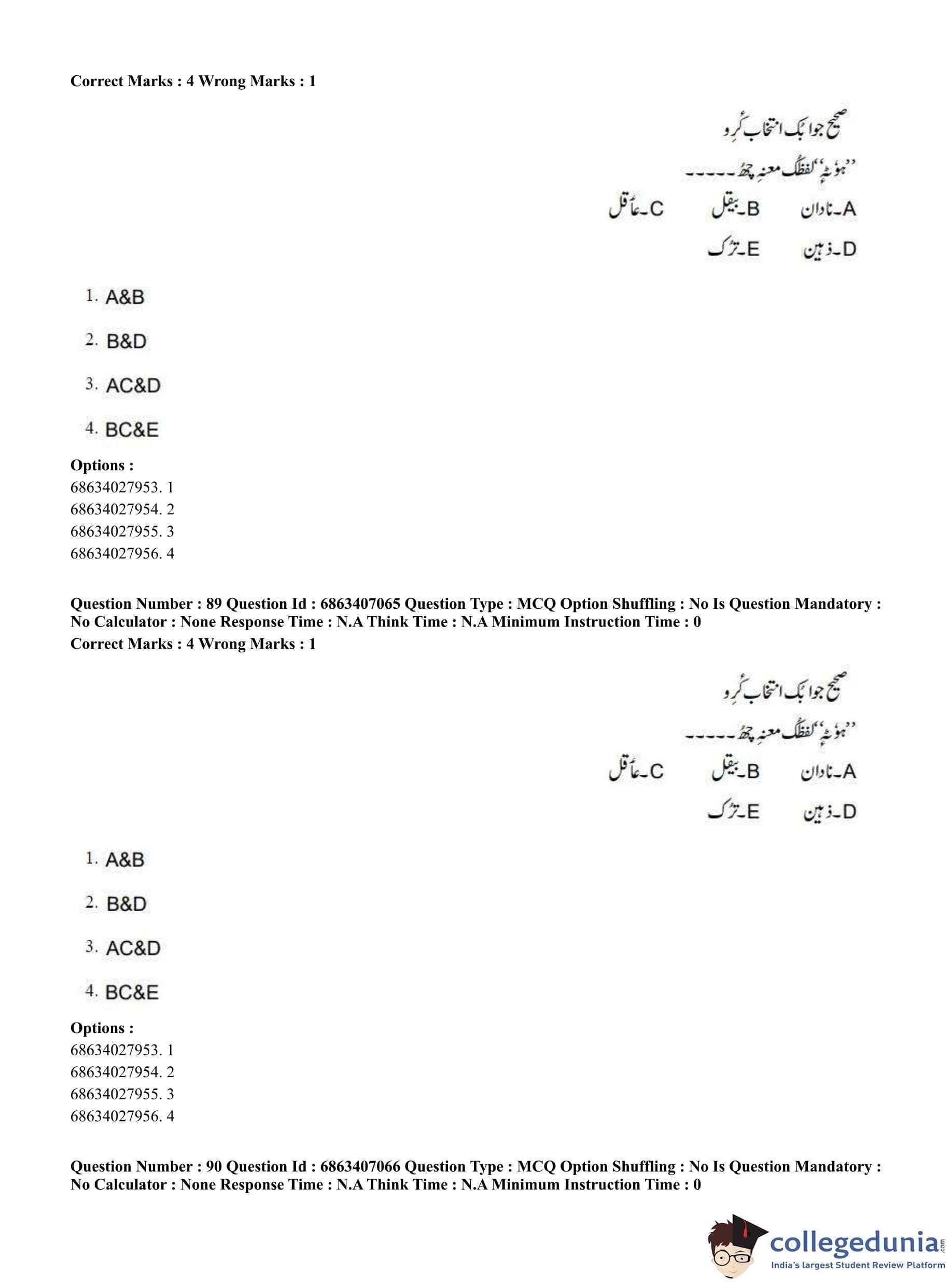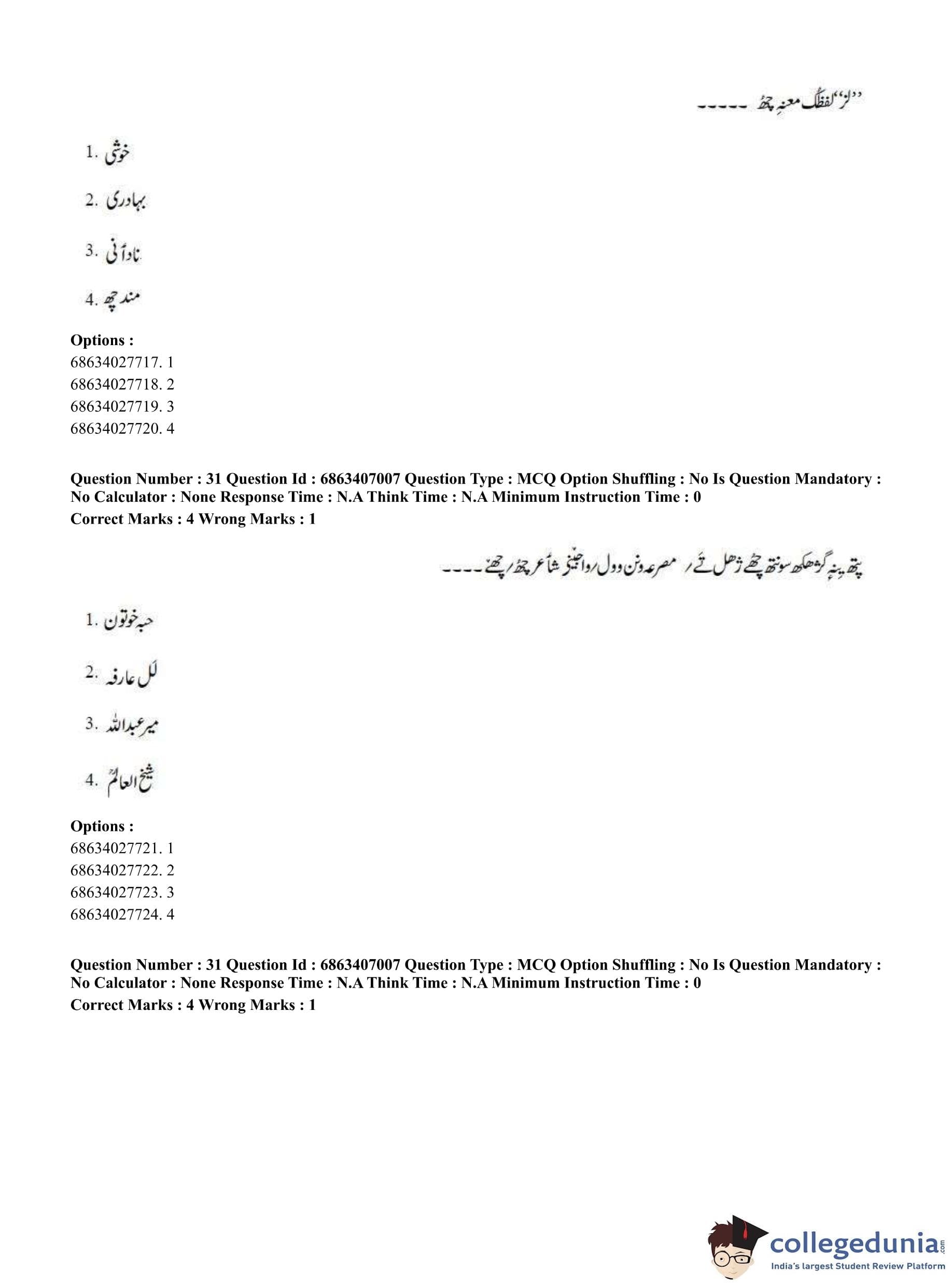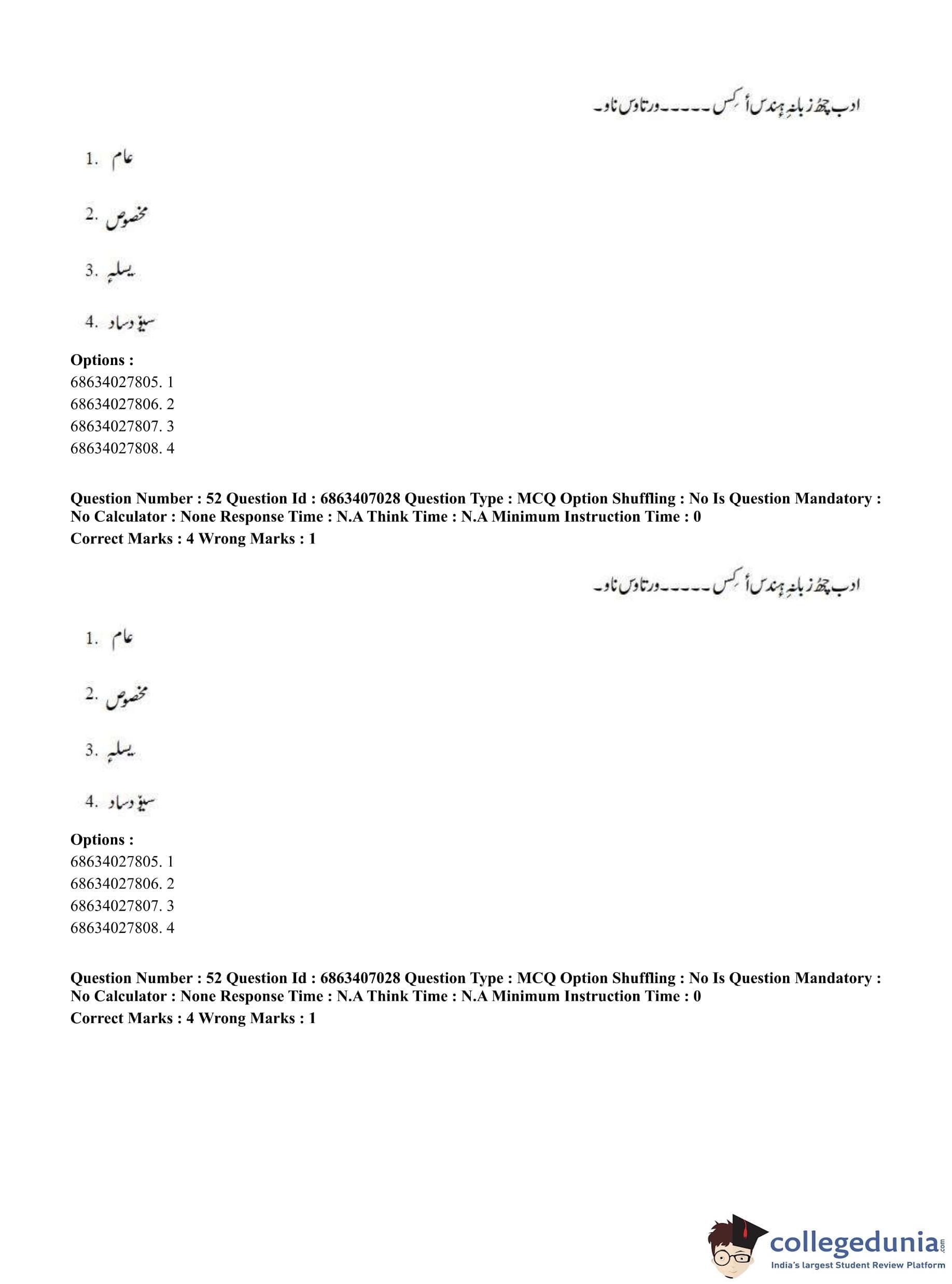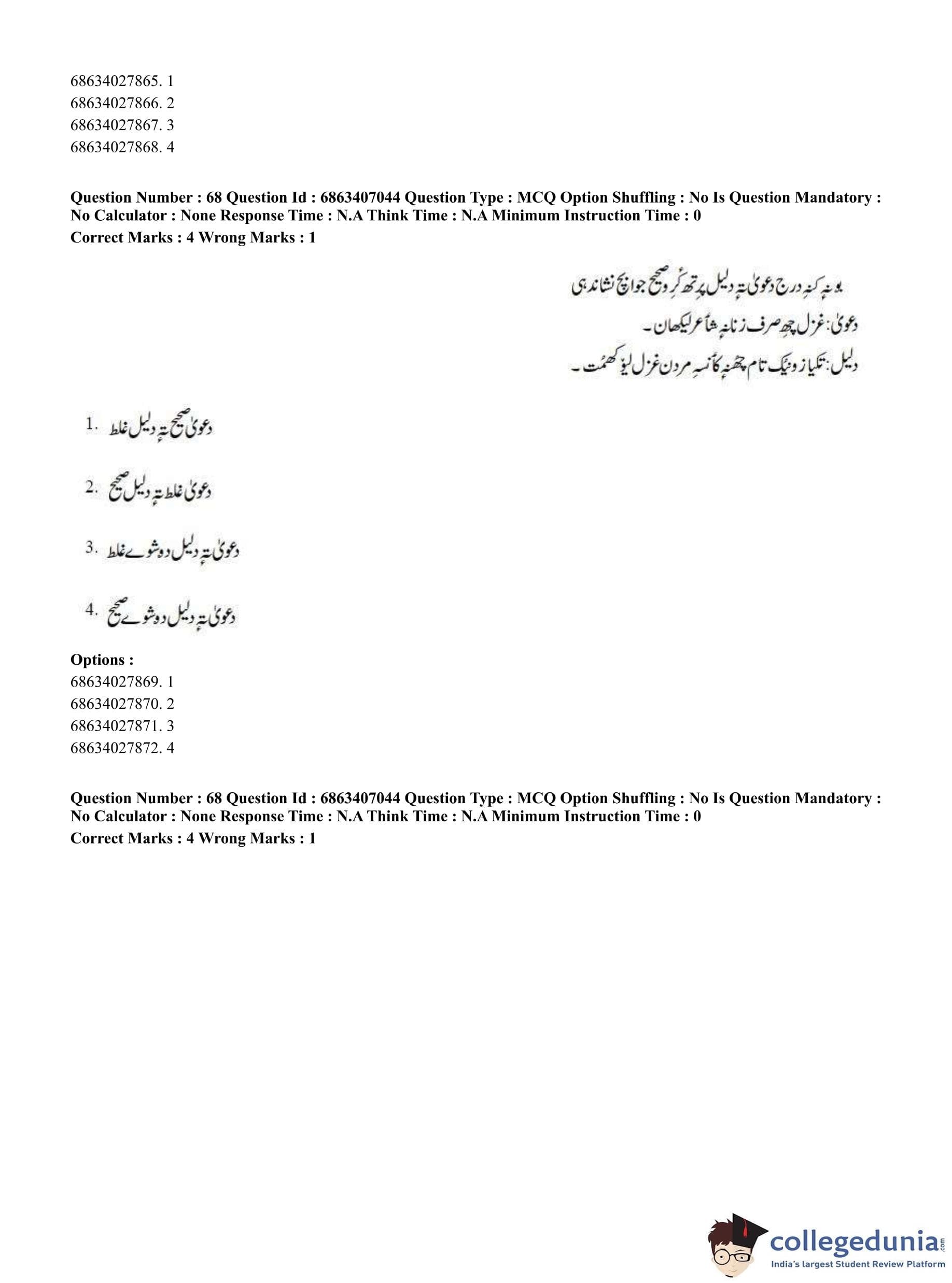 CUET PG 2023 Kashmiri Question Paper in Hindi (June 7 - Shift 1)