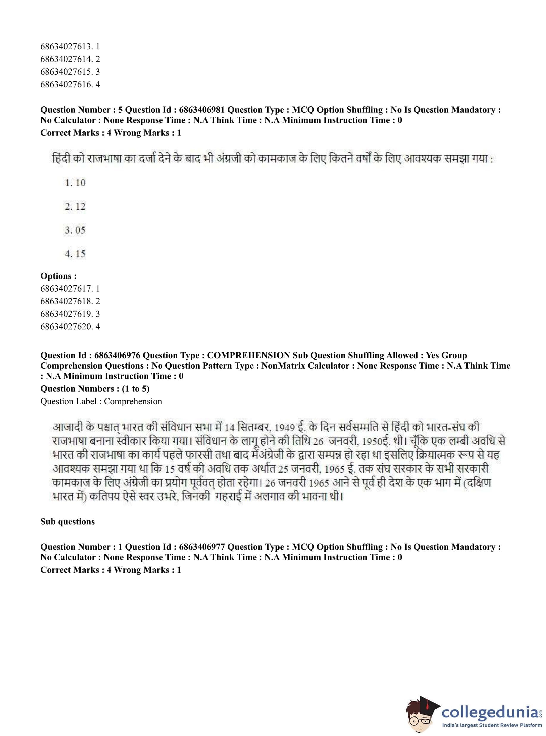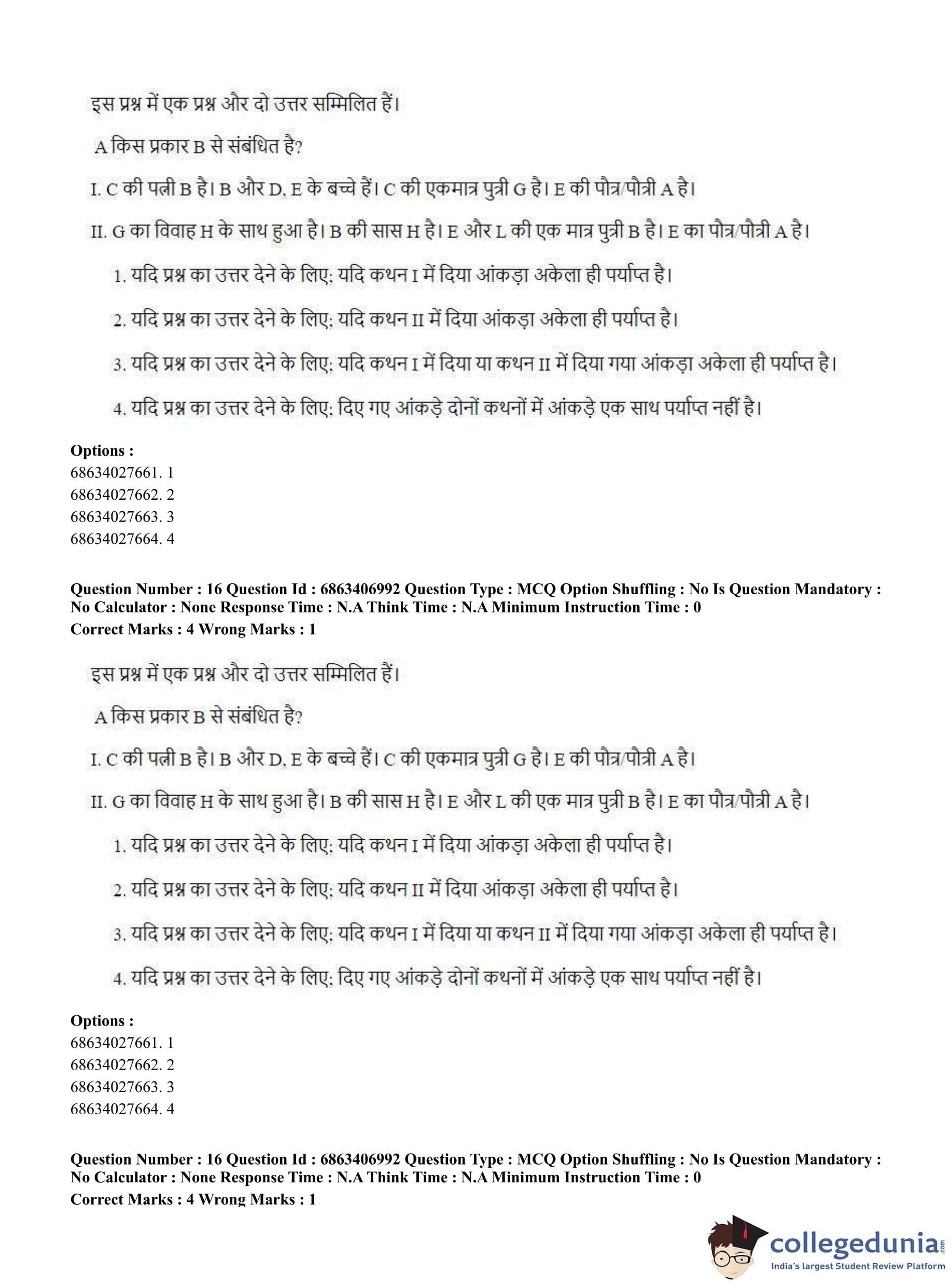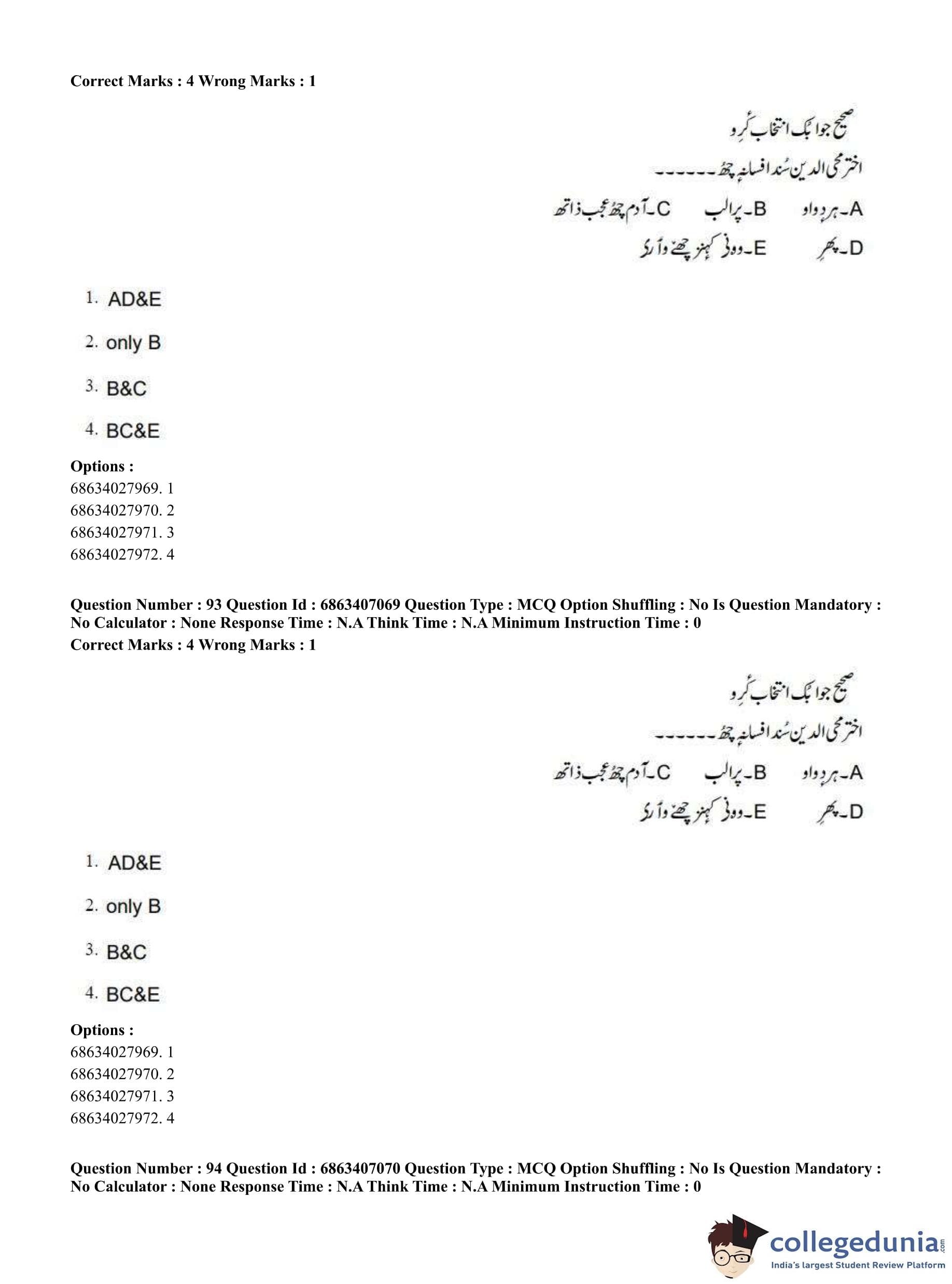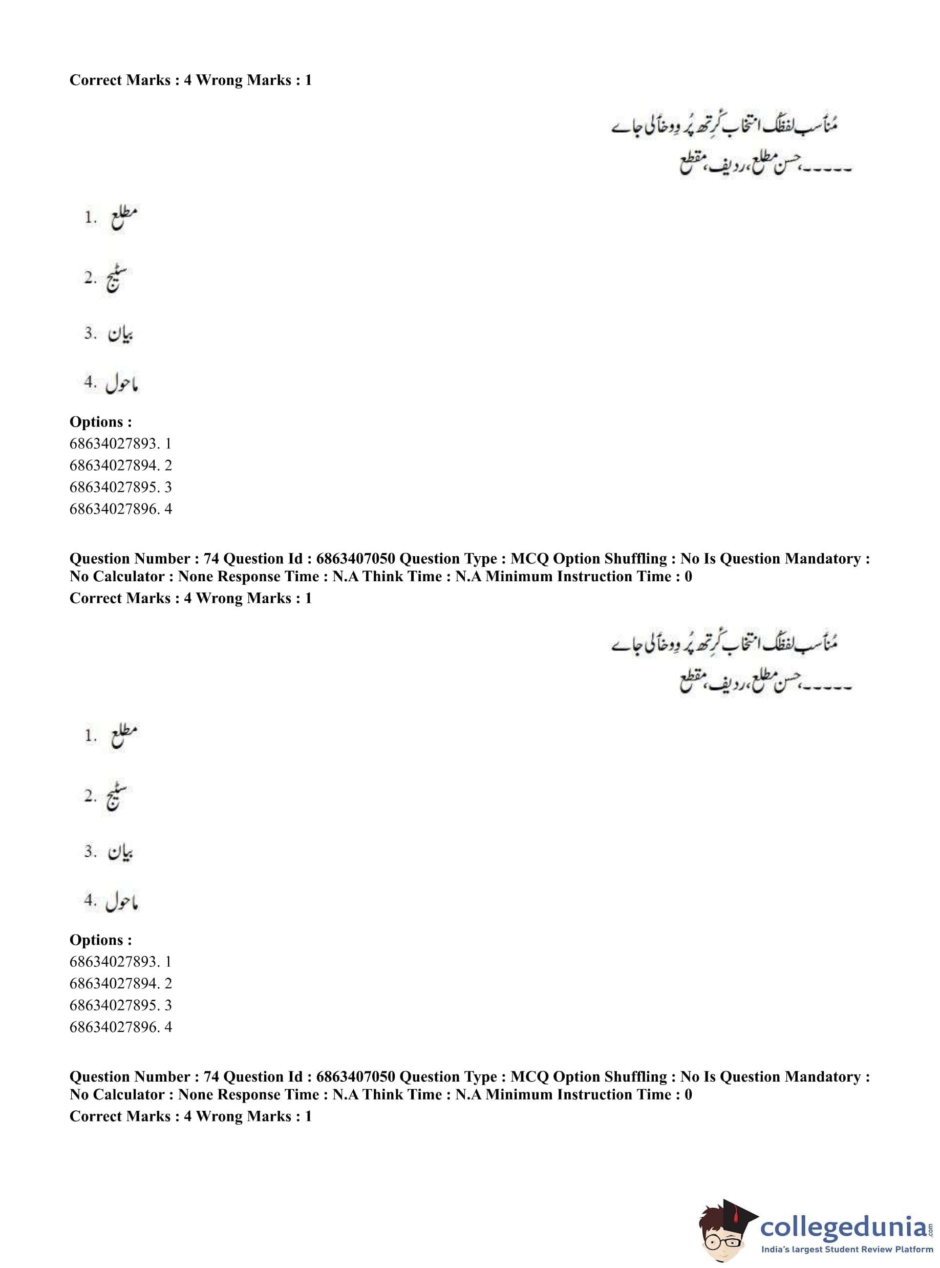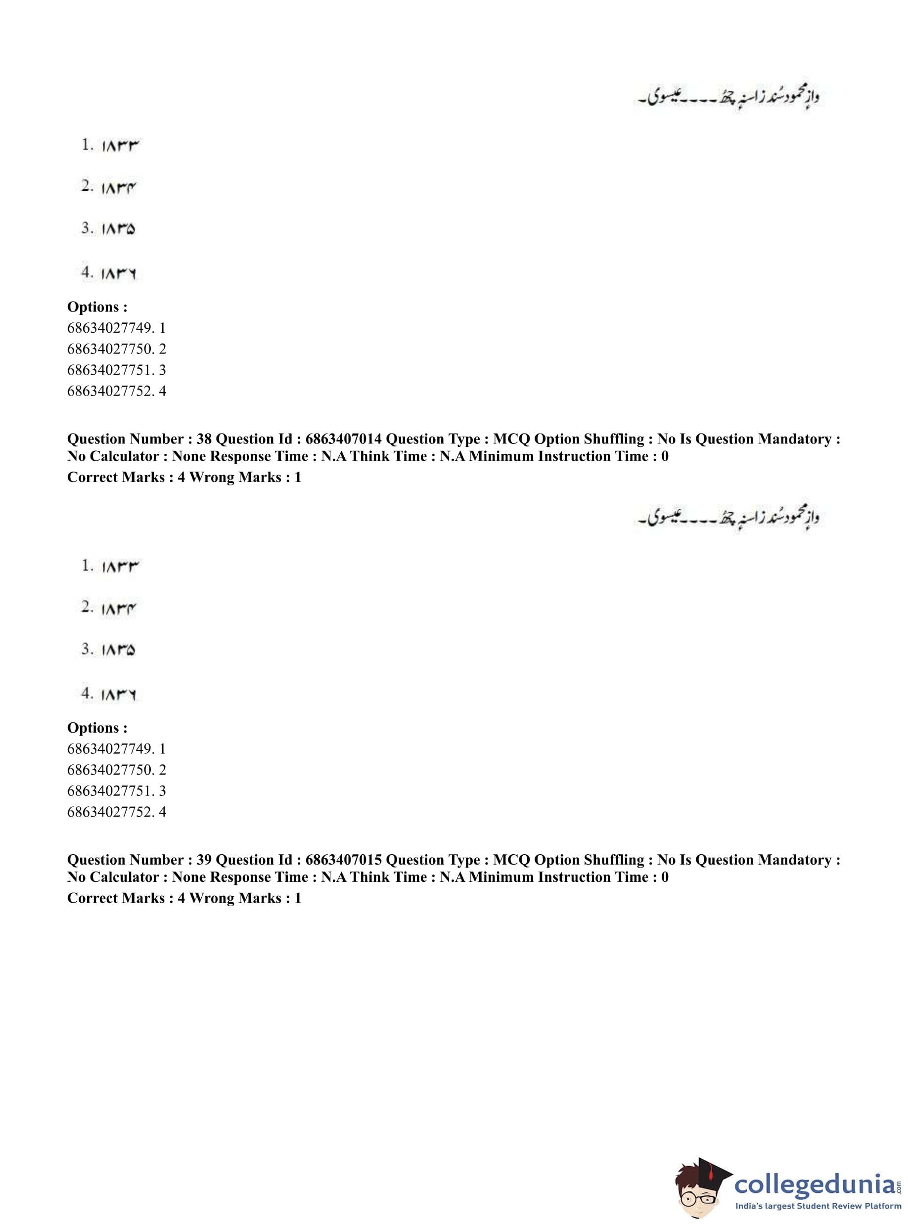 CUET PG 2023 Kashmiri Question Paper in Hindi (June 7 - Shift 1)