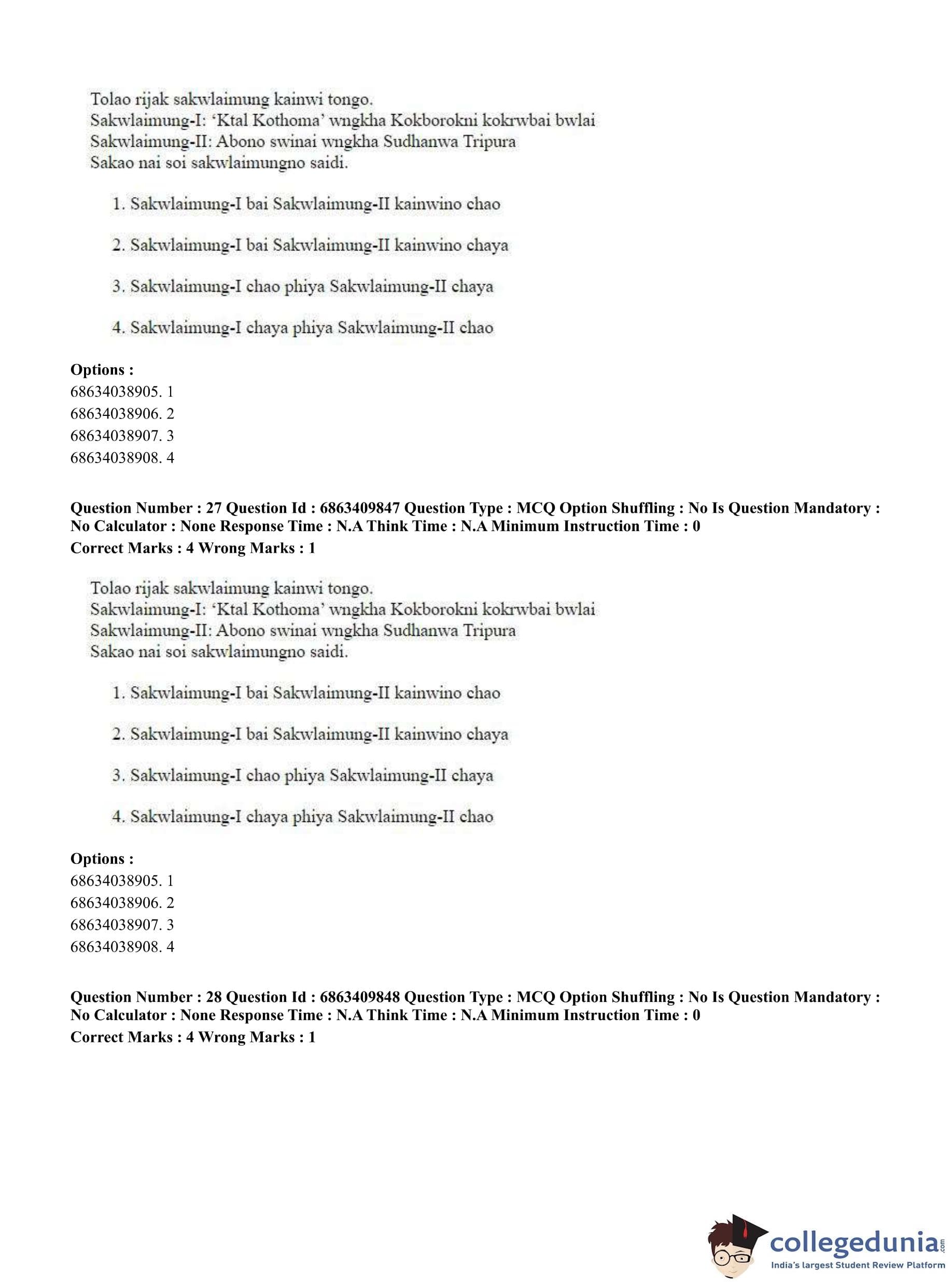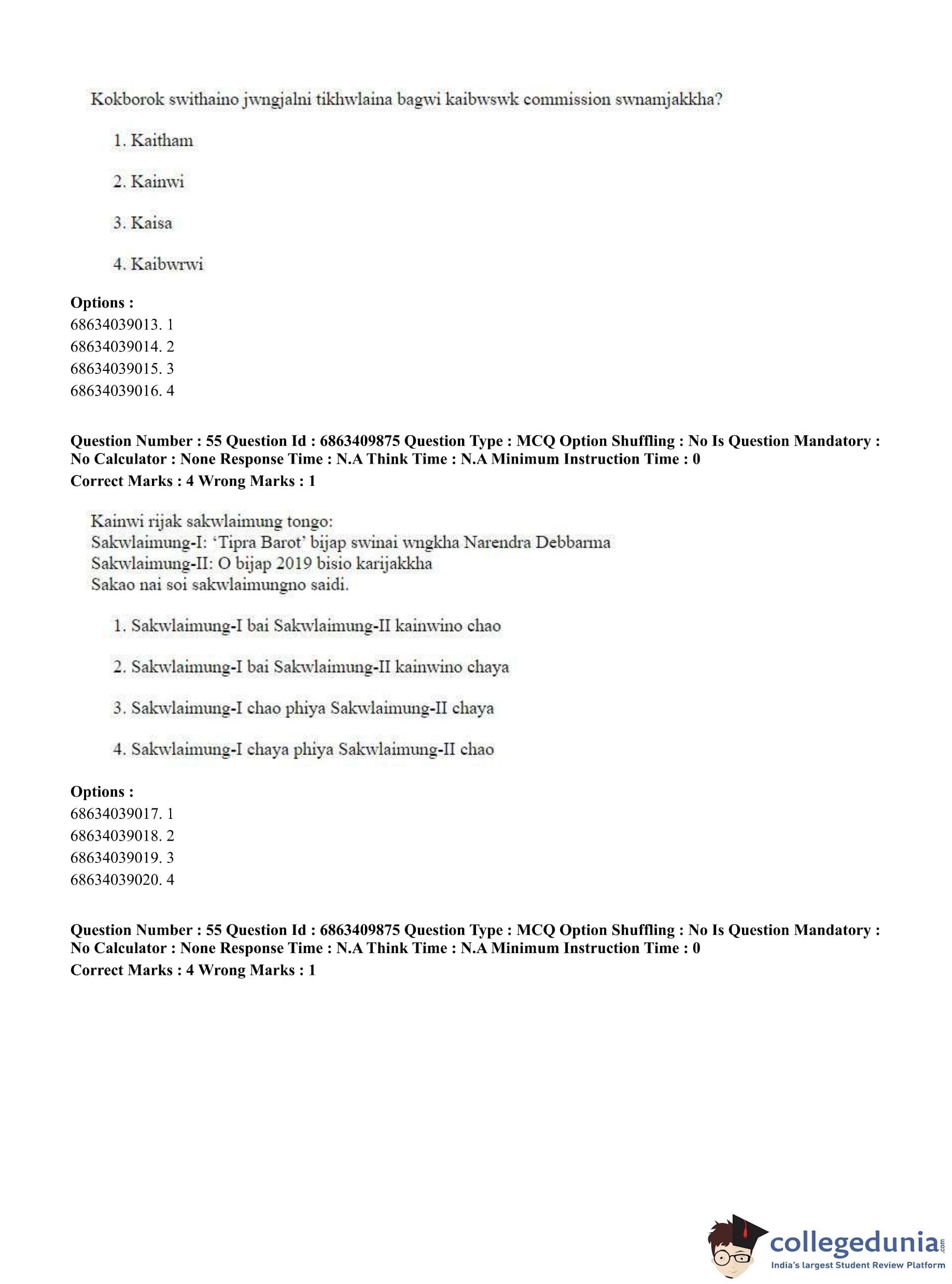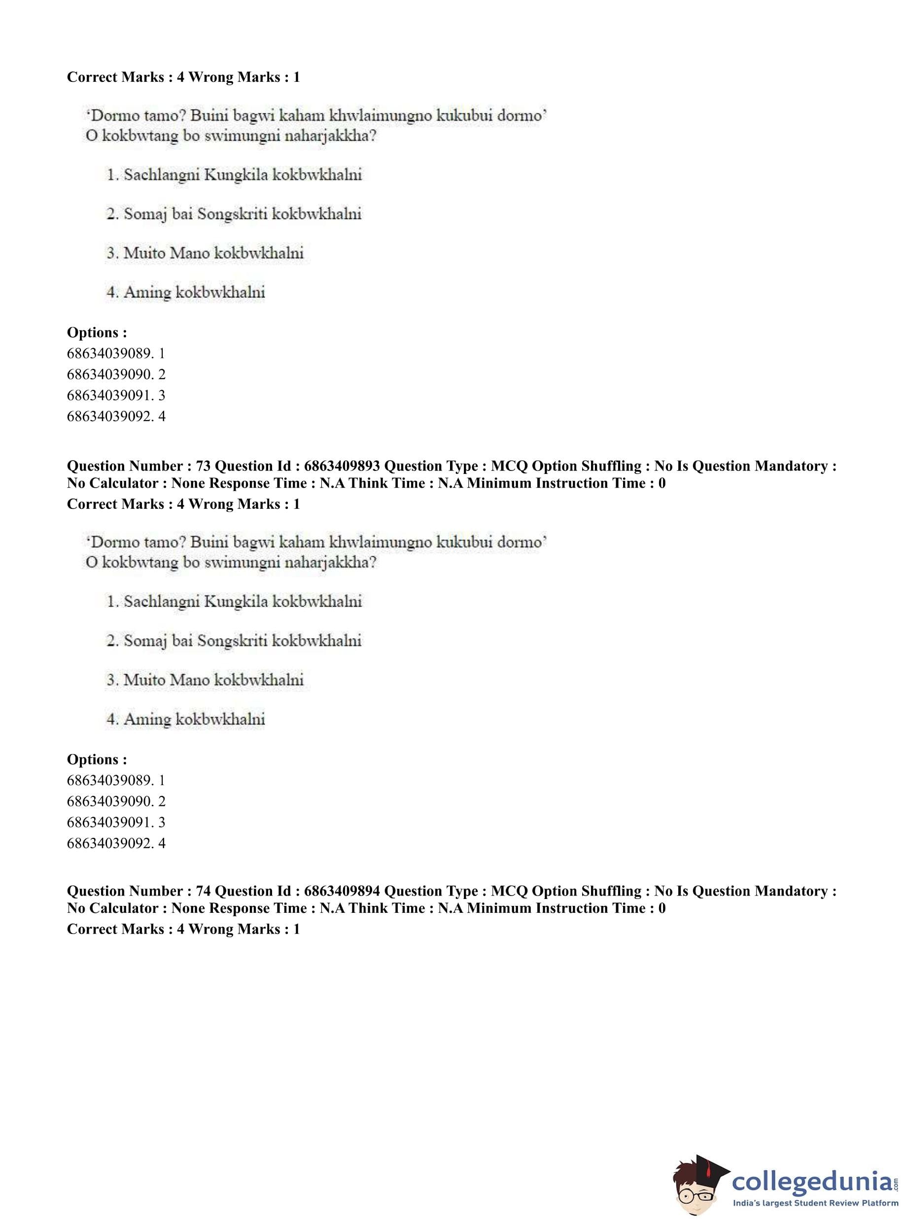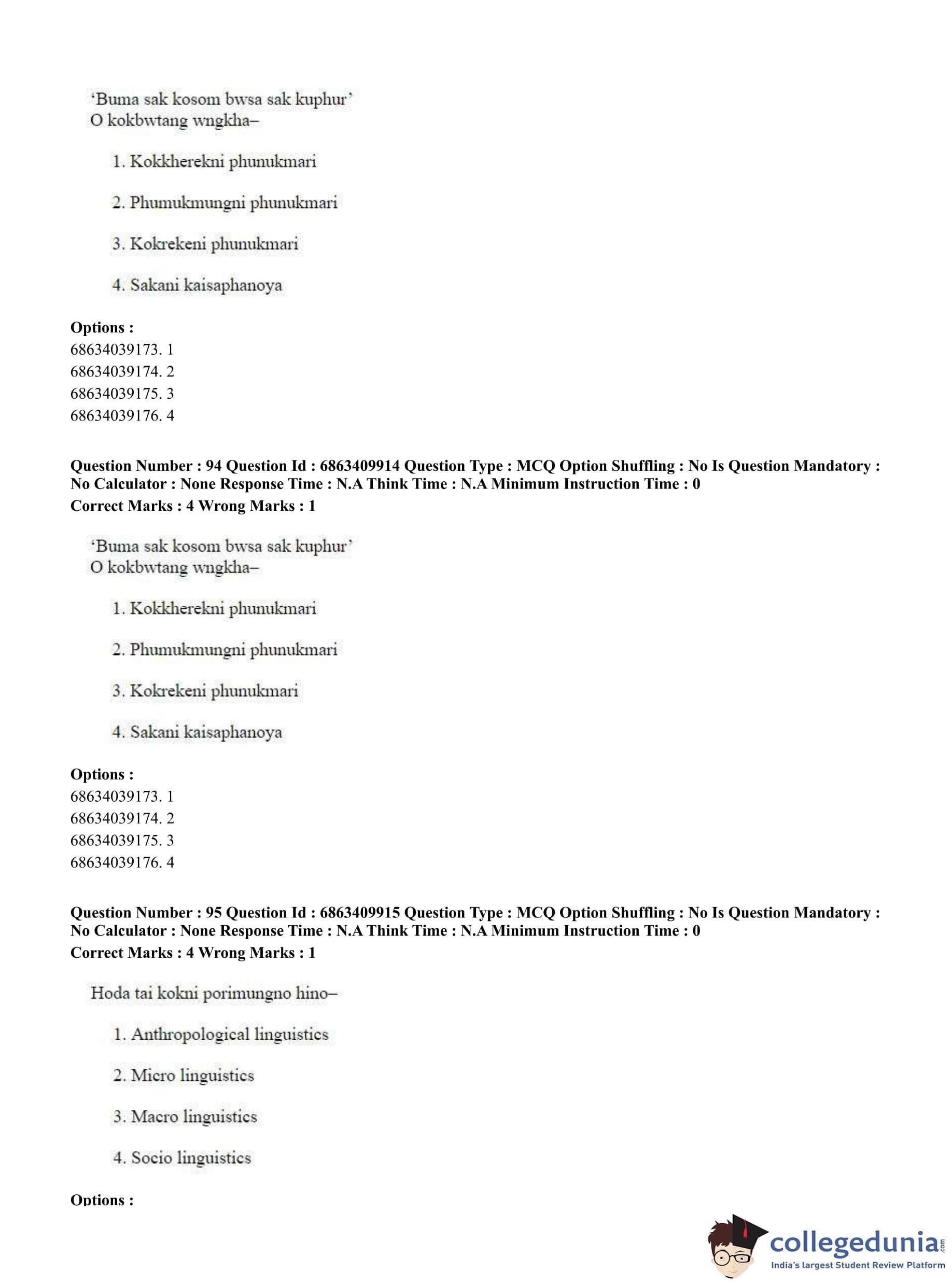 CUET PG 2023 Kokborok Question Paper in Hindi (June 7 - Shift 2)