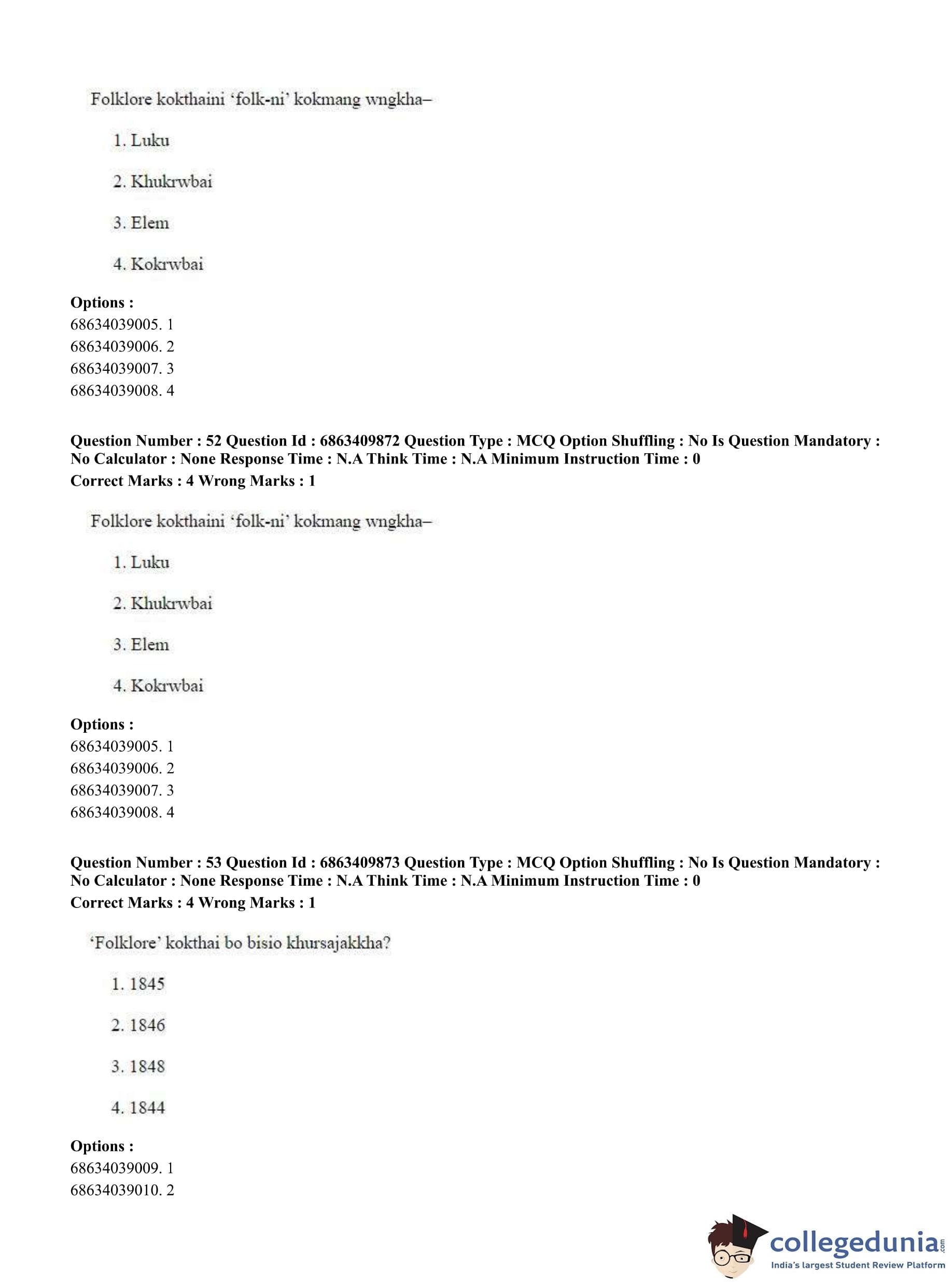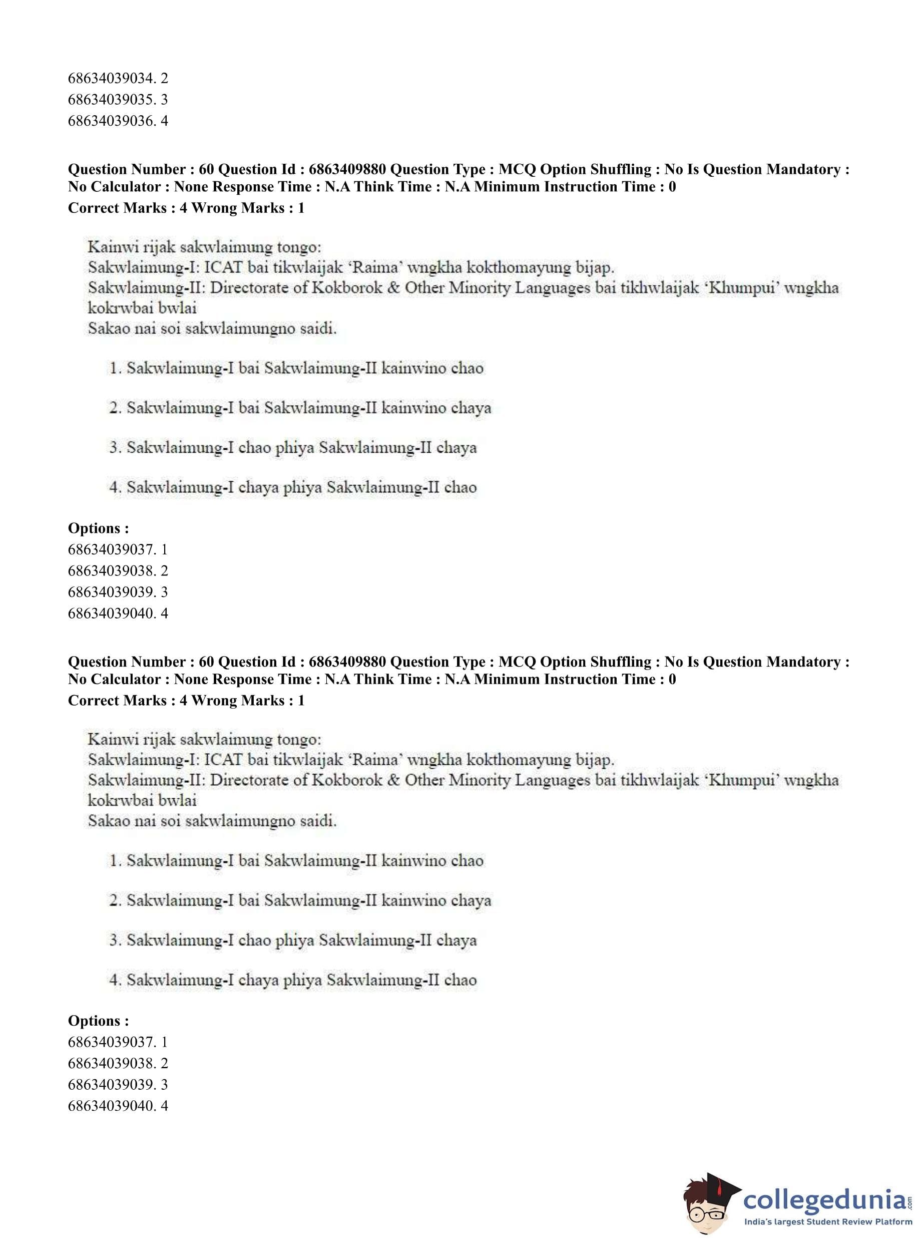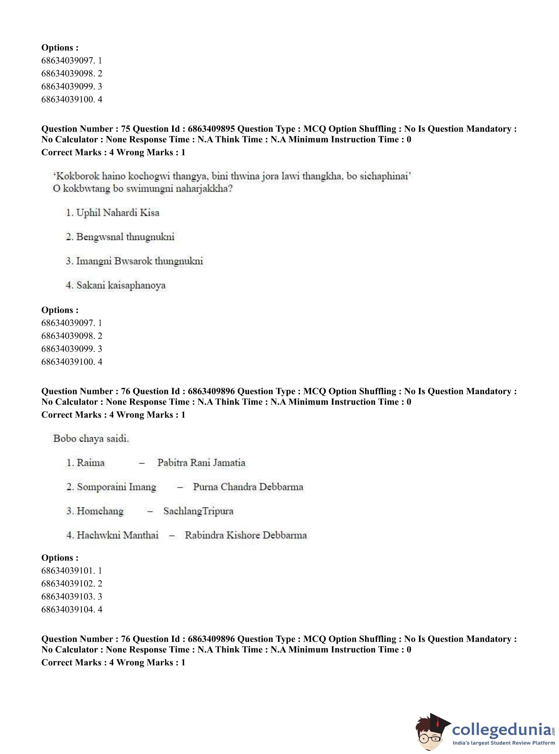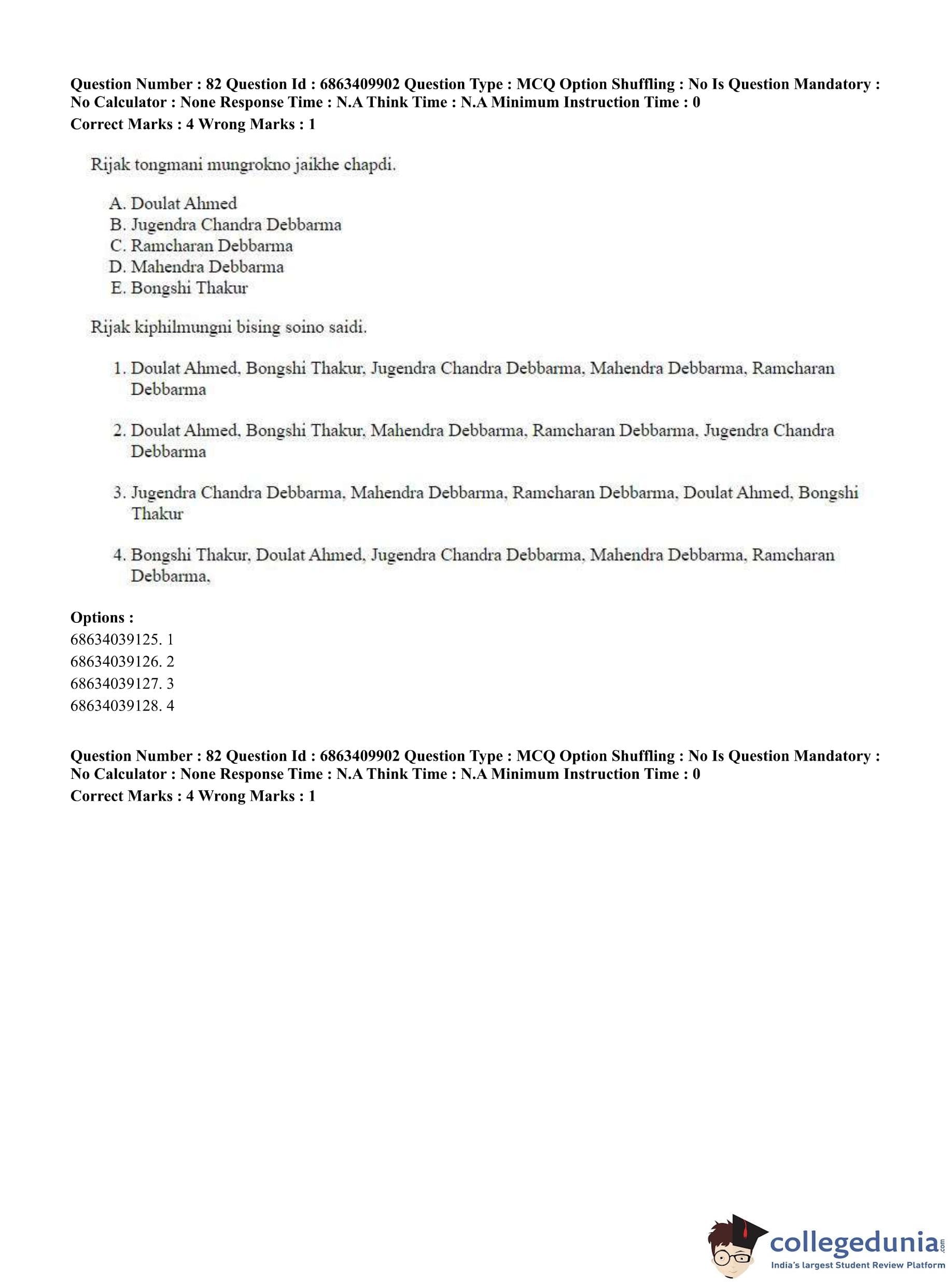 CUET PG 2023 Kokborok Question Paper in Hindi (June 7 - Shift 2)