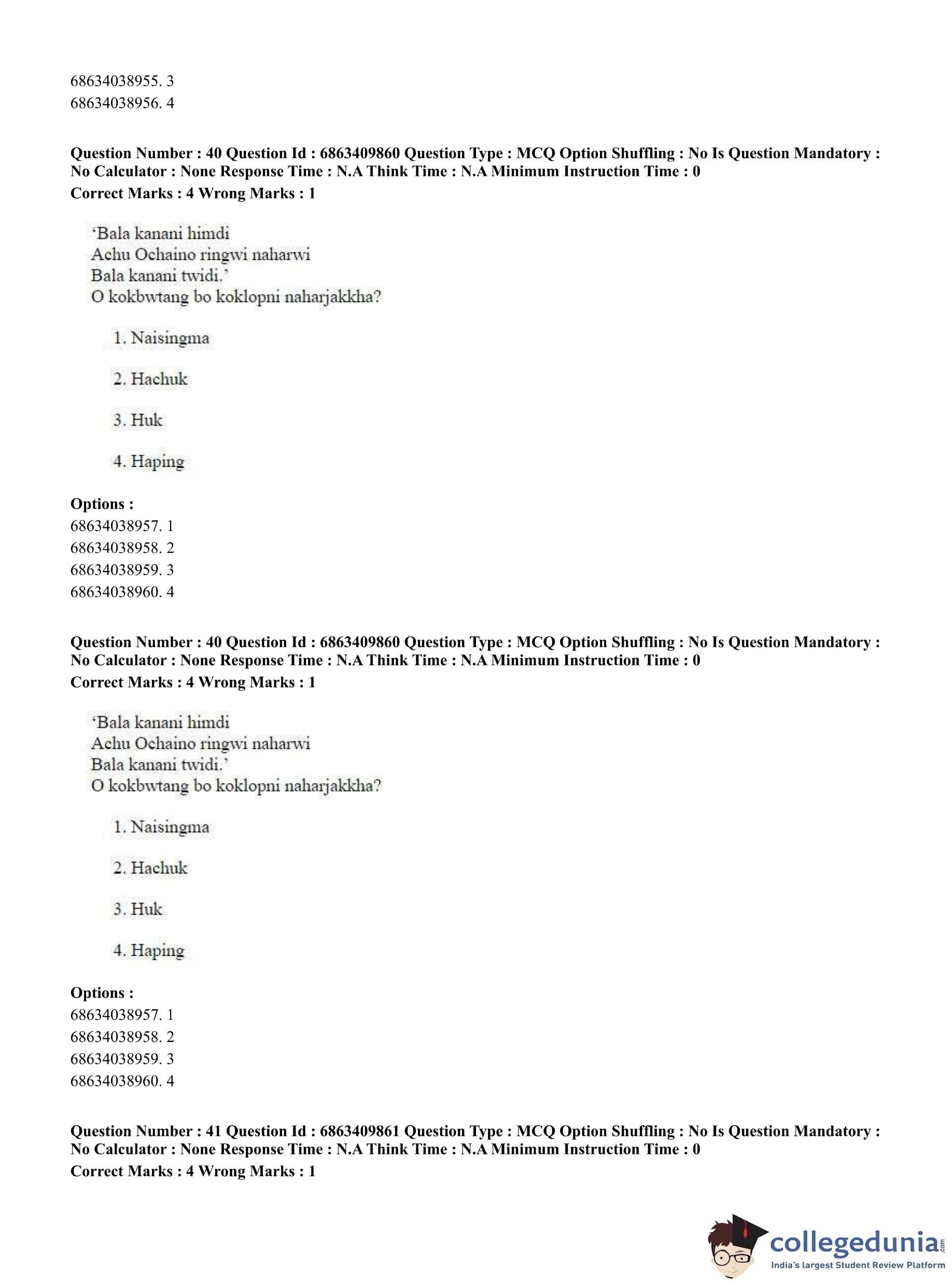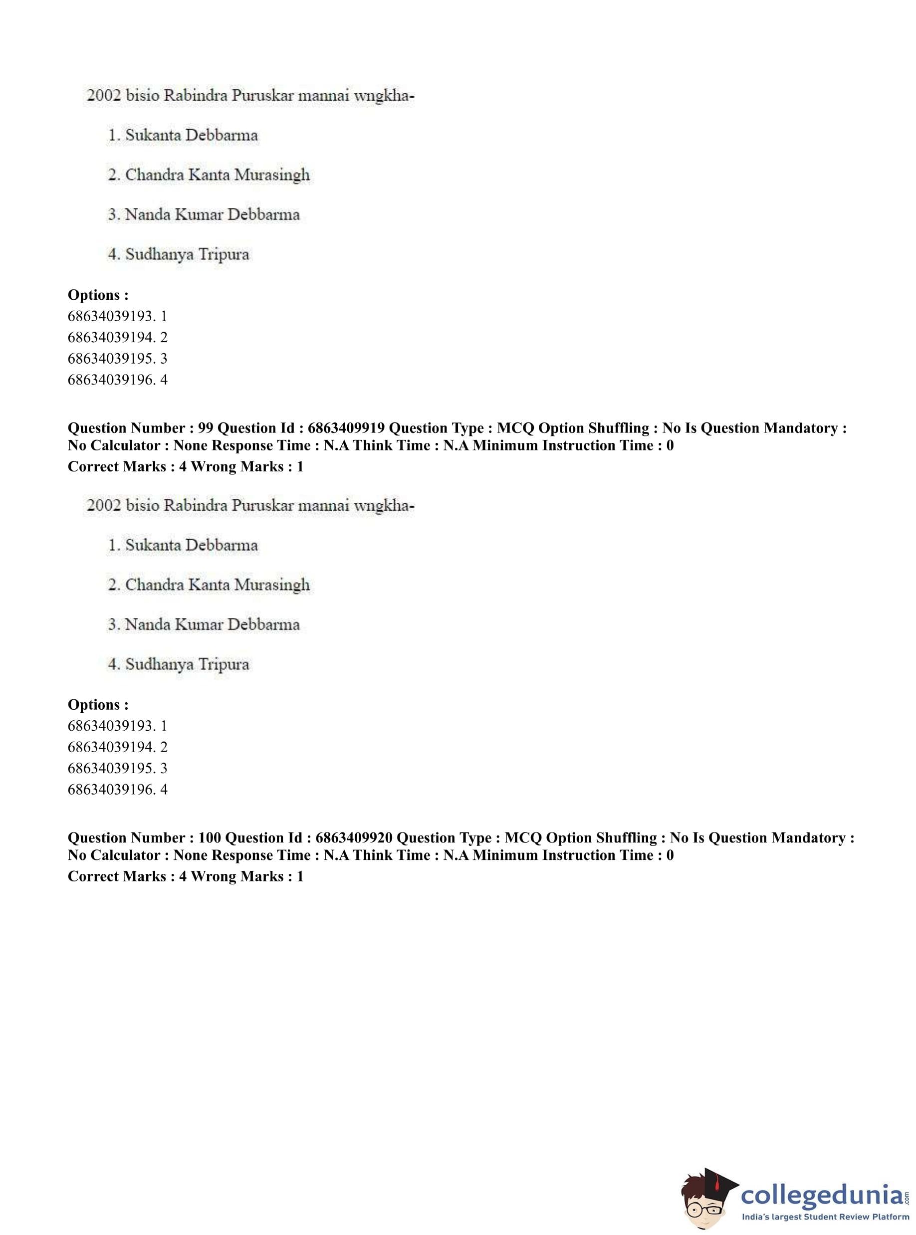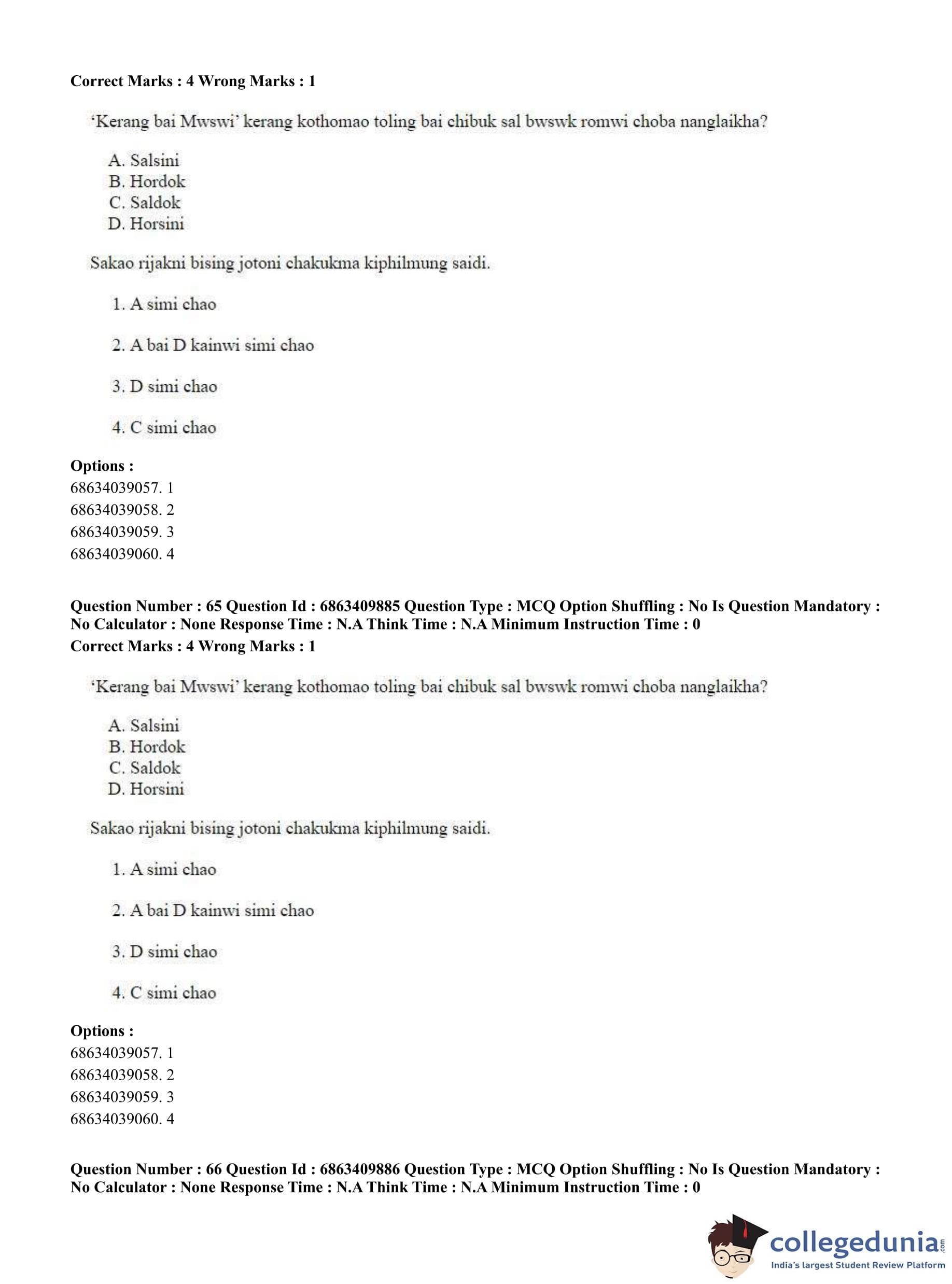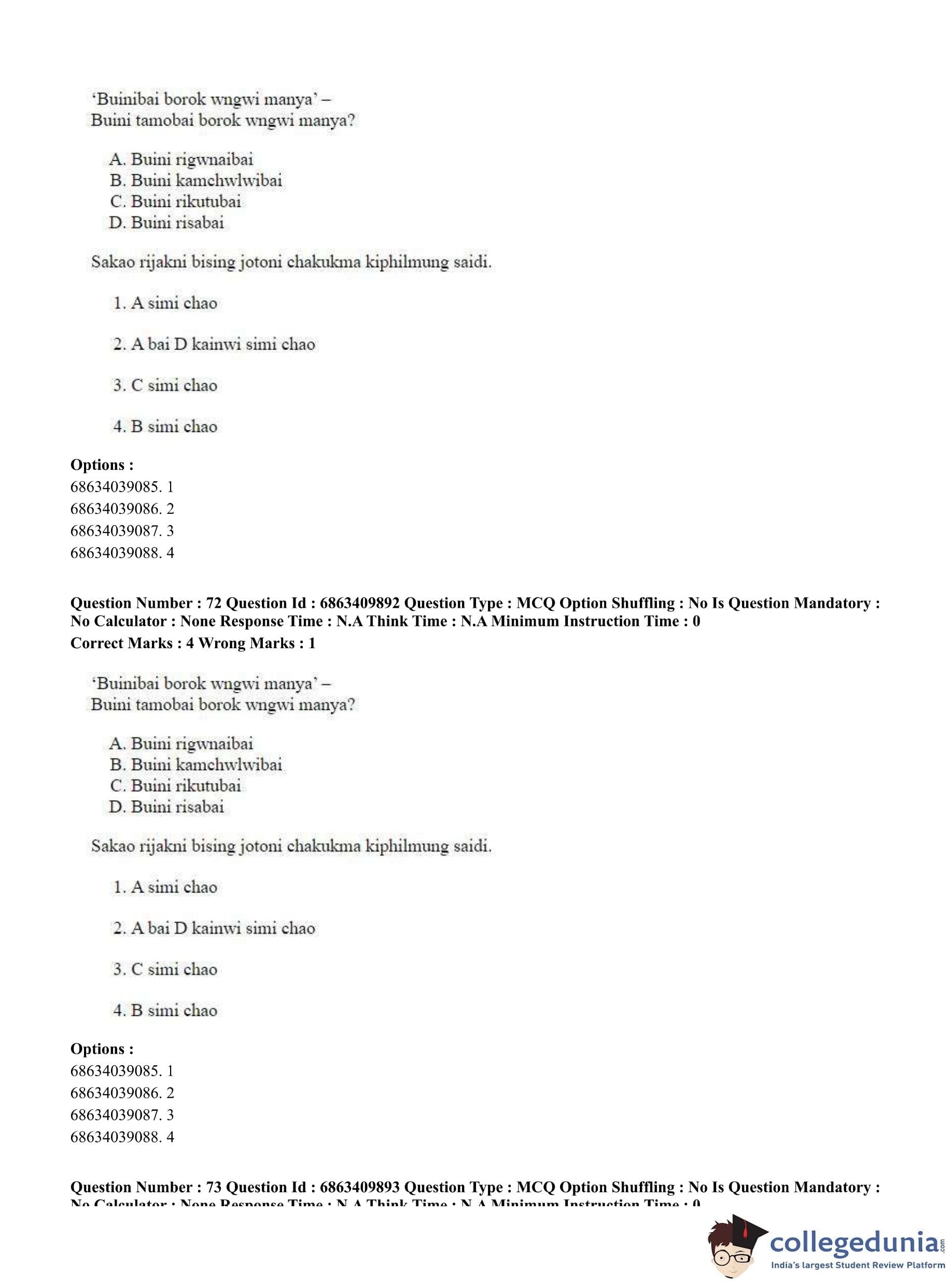 CUET PG 2023 Kokborok Question Paper in Hindi (June 7 - Shift 2)