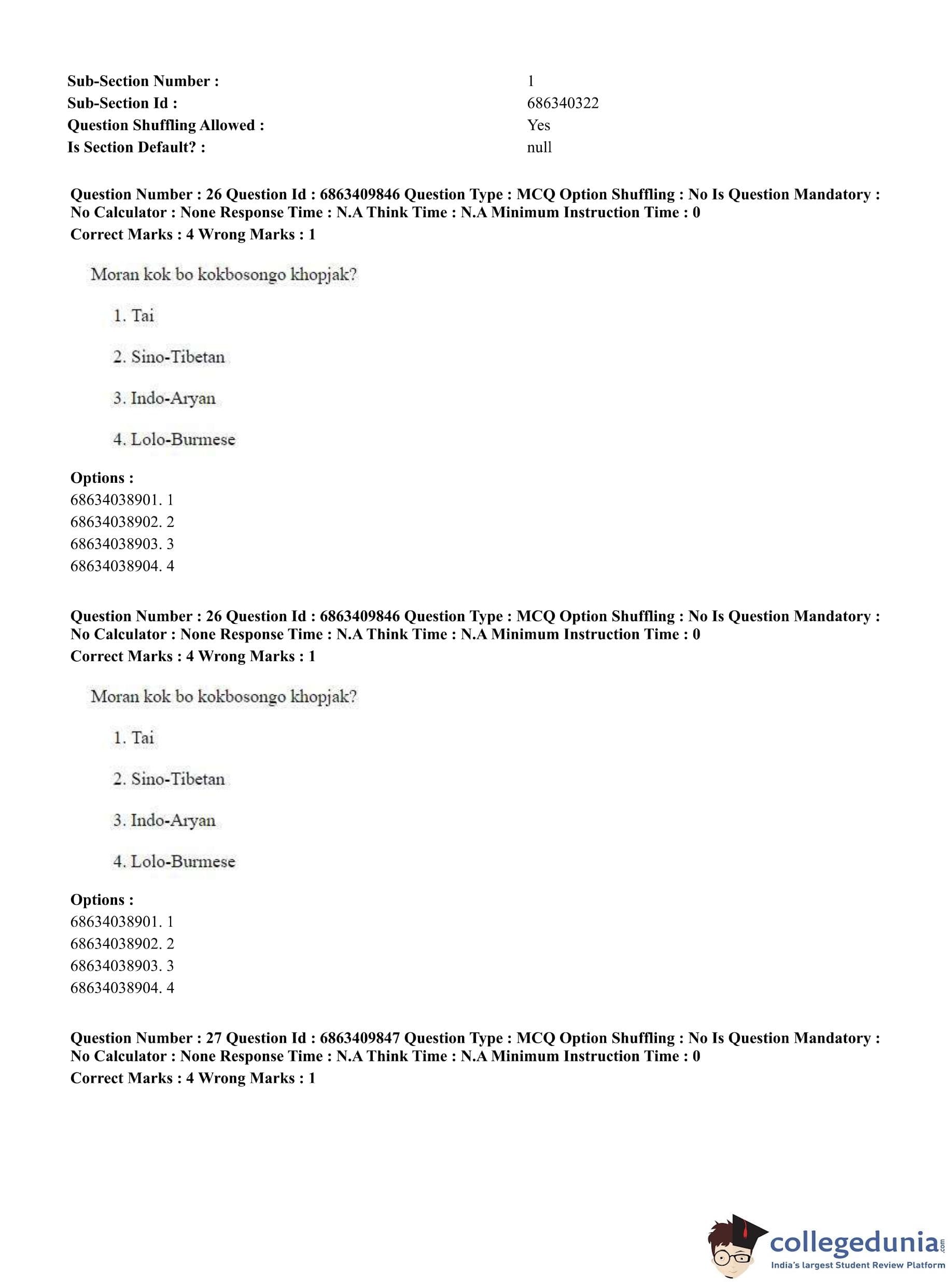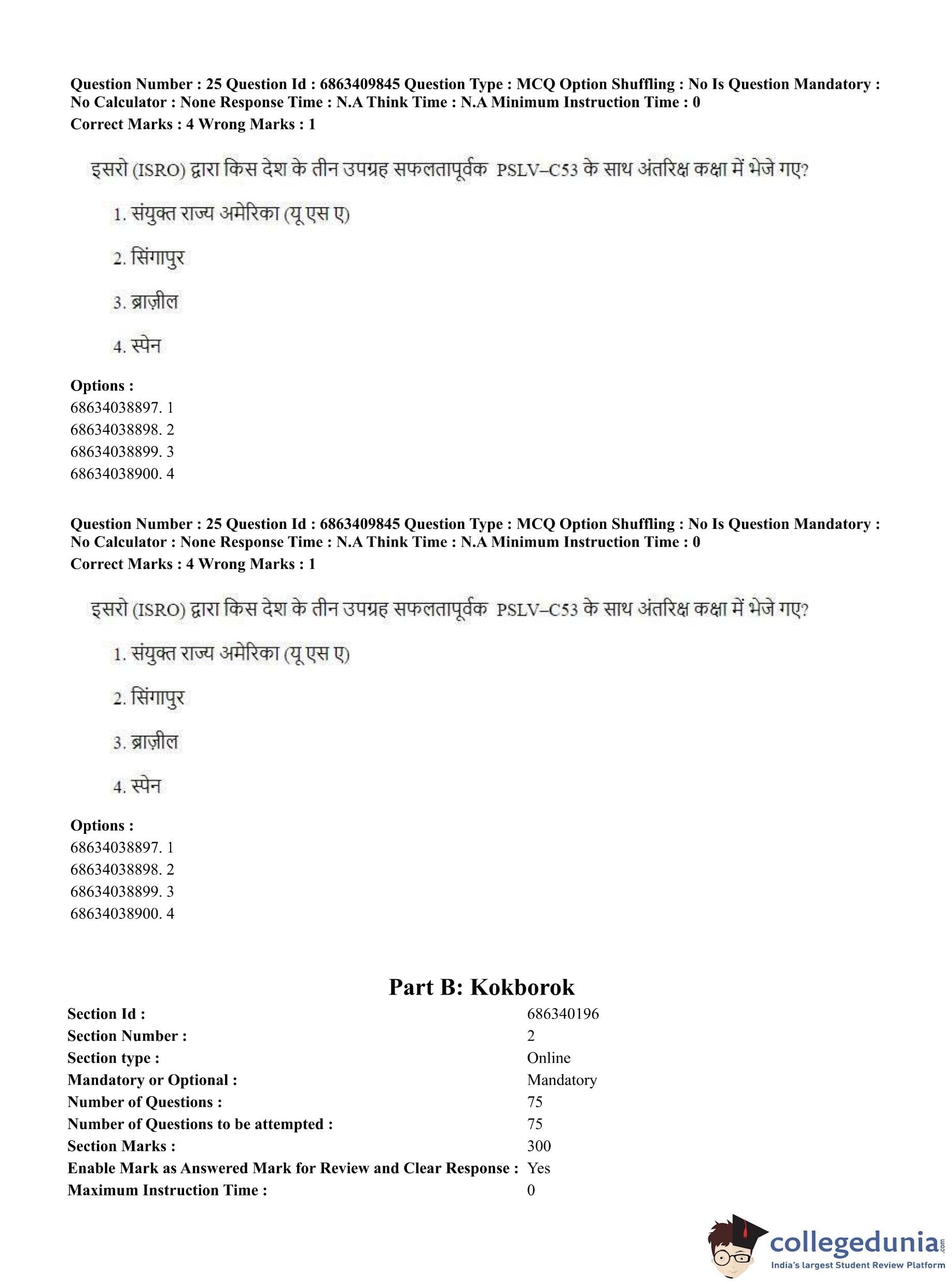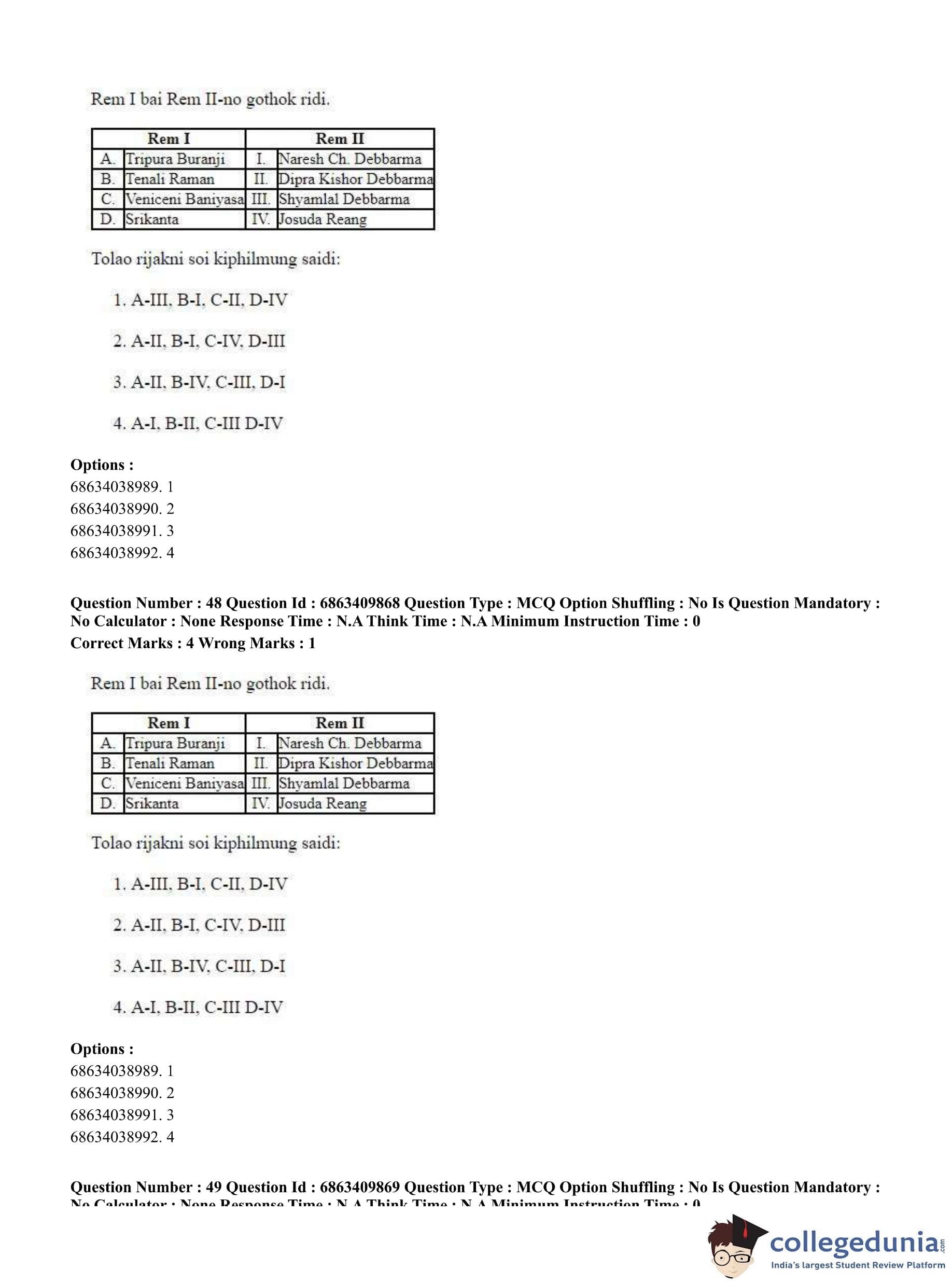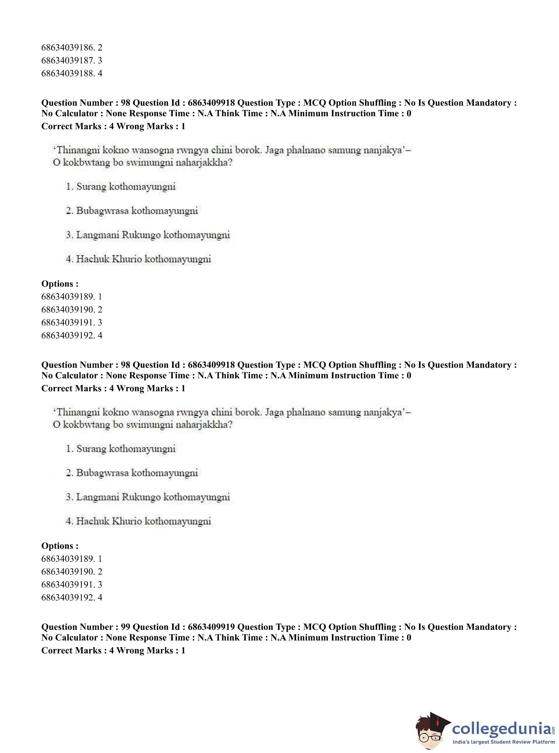 CUET PG 2023 Kokborok Question Paper in Hindi (June 7 - Shift 2)