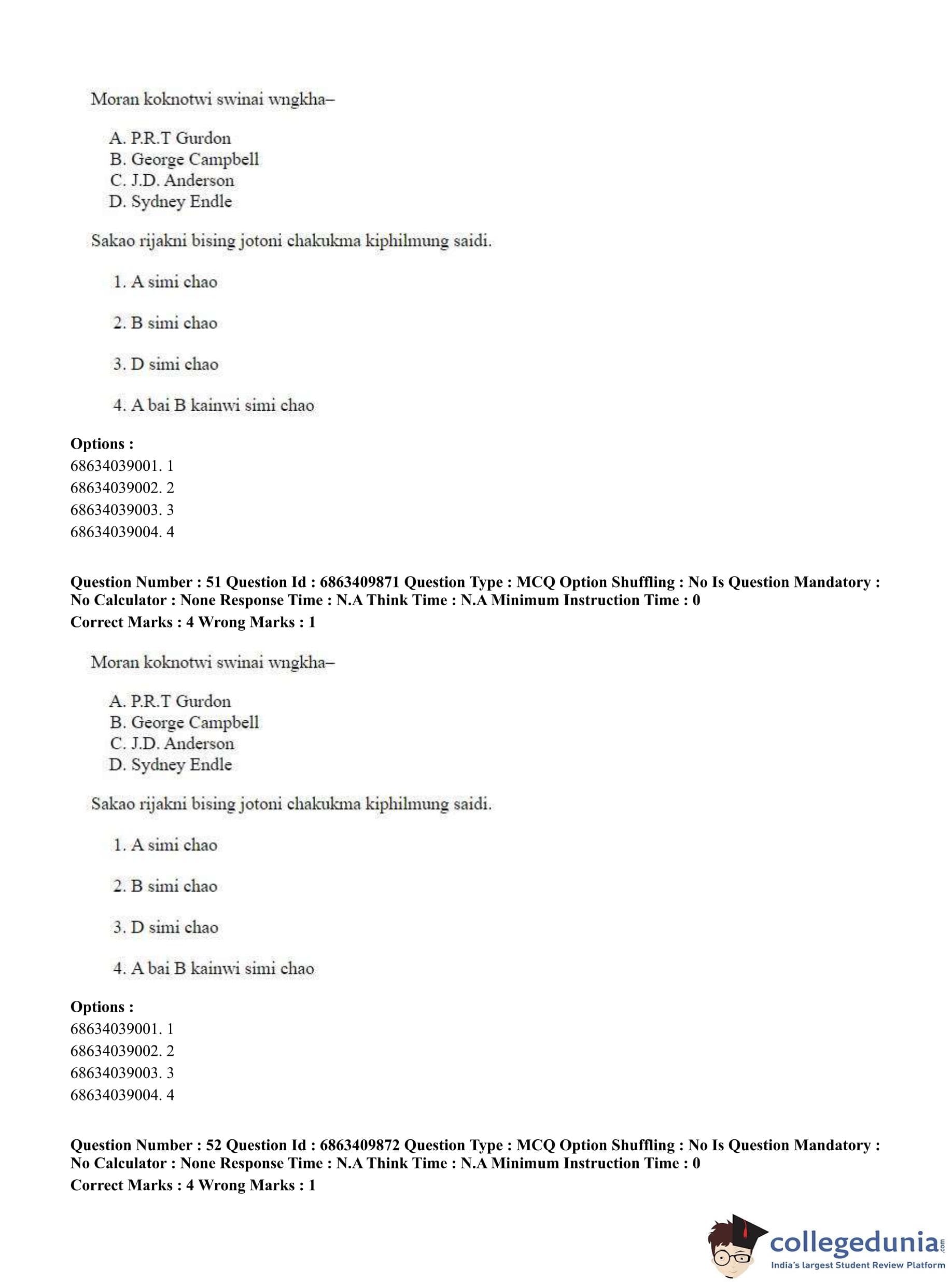 CUET PG 2023 Kokborok Question Paper with Answer Key PDF in Hindi is available for download here. The exam was conducted by National Testing Agency (NTA) on June 7, 2023 in Shift 2. The question paper comprised a total of 100 questions divided into 2 sections.