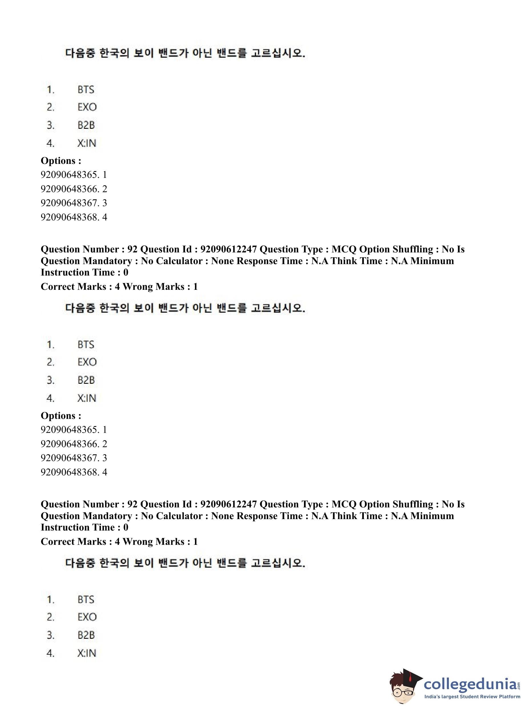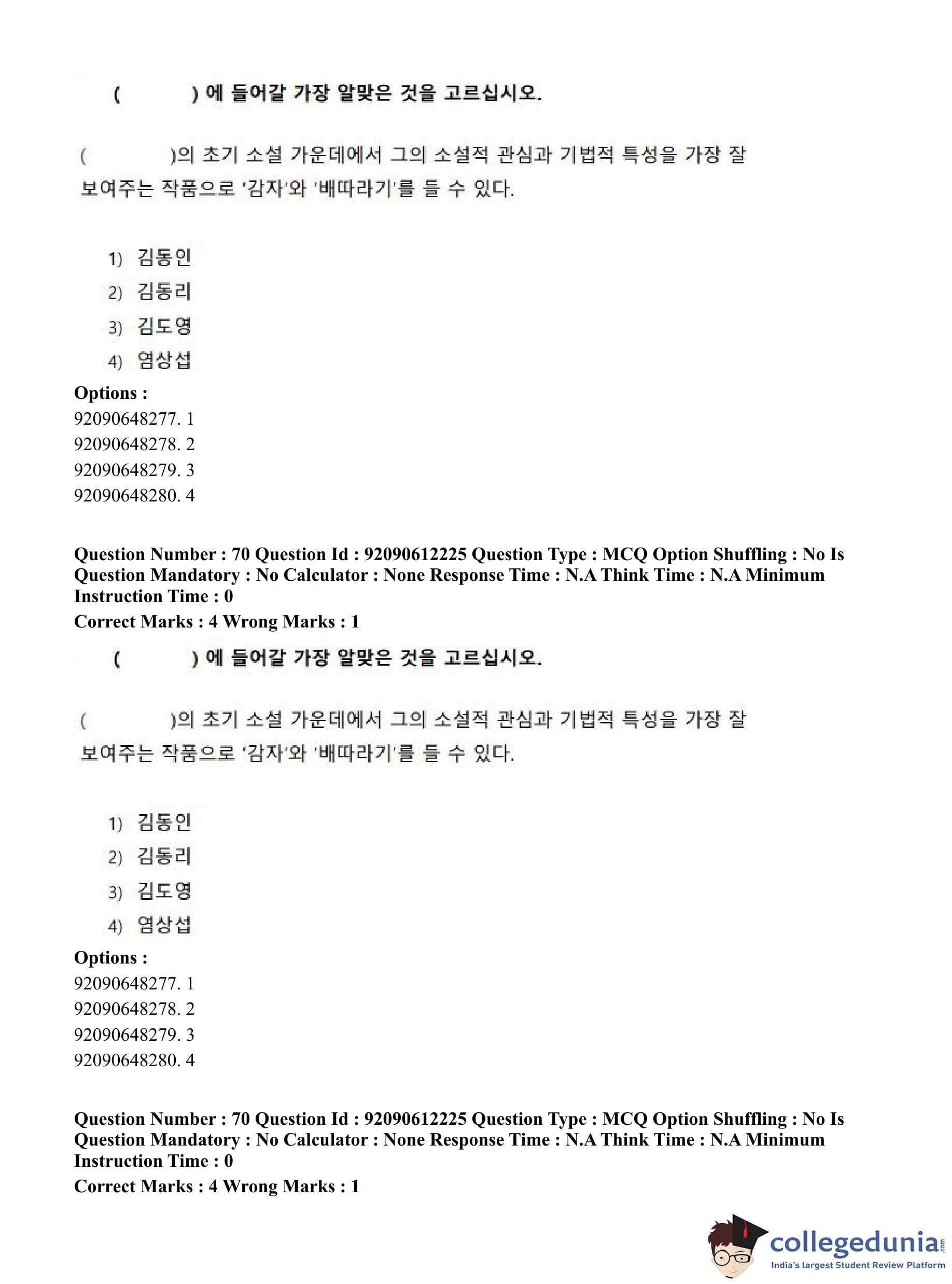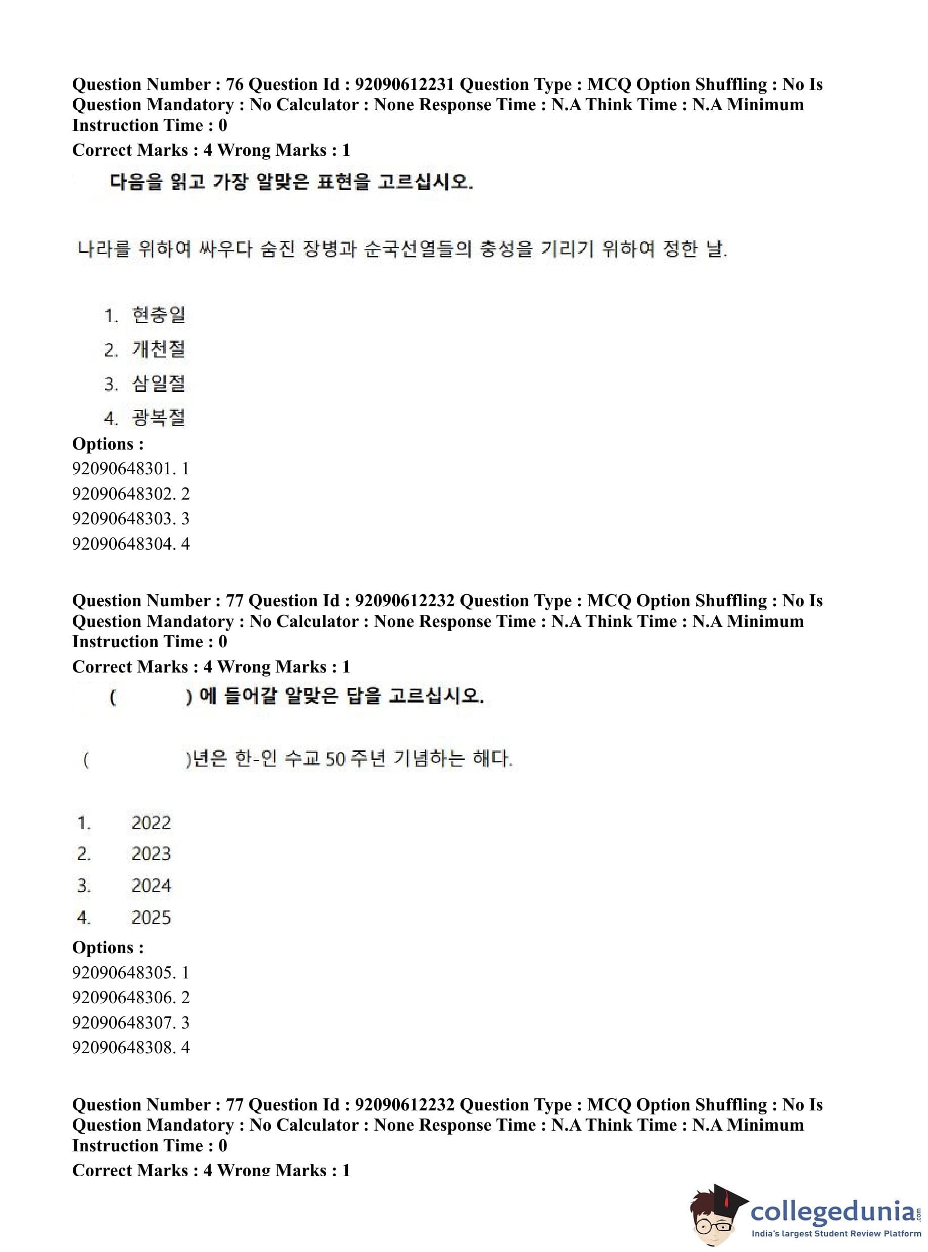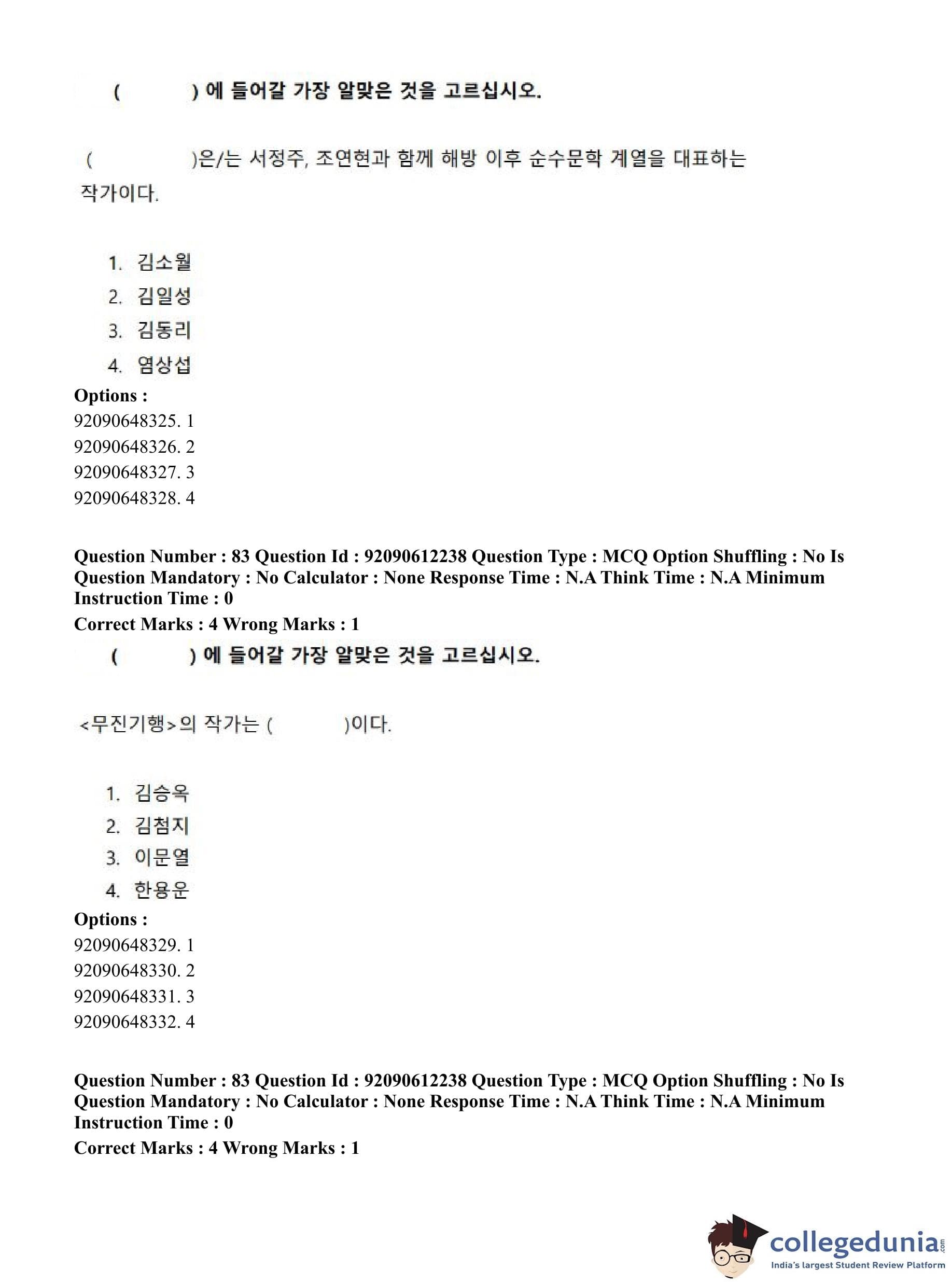 CUET PG 2023 Korean Question Paper in English (June 10 - Shift 3)