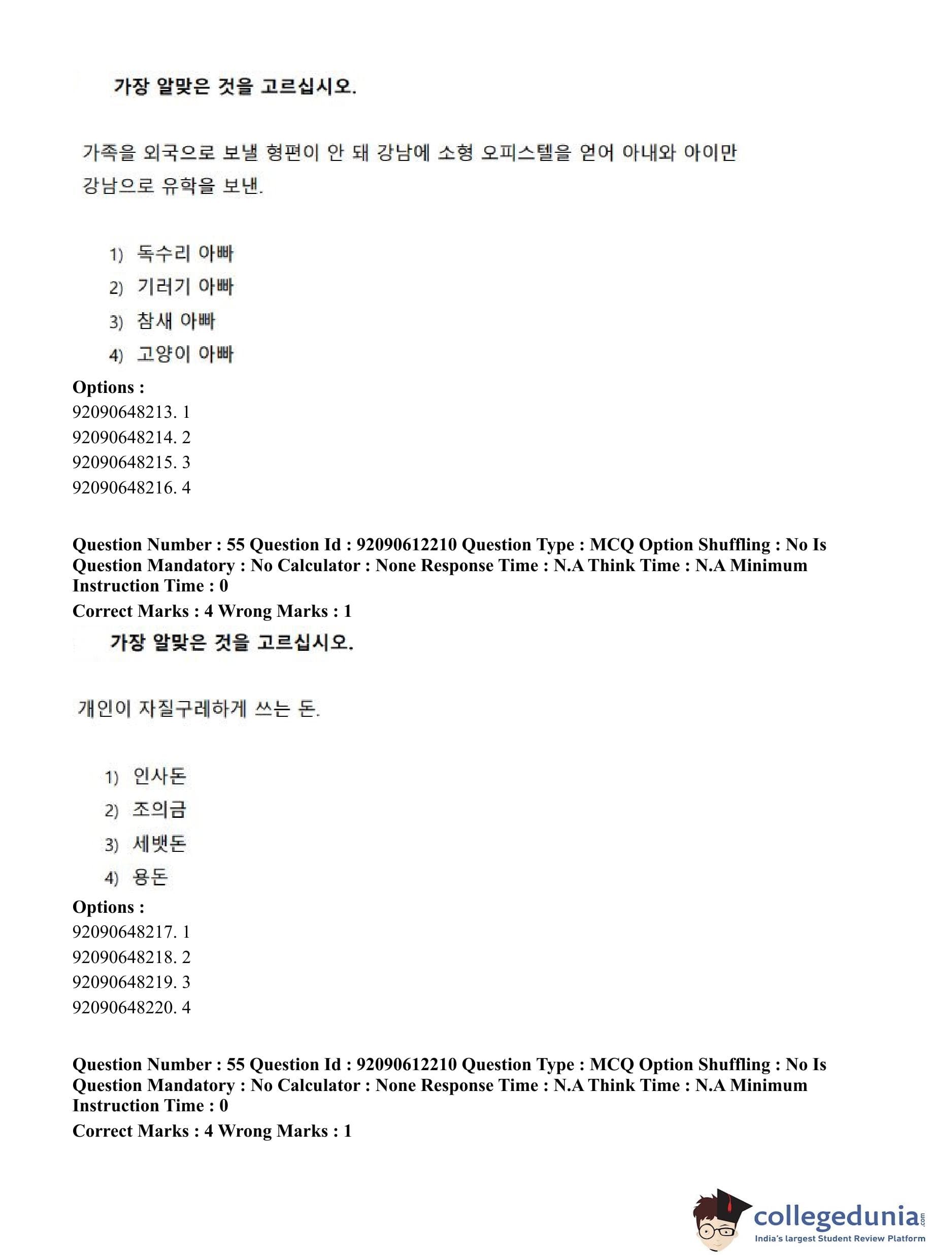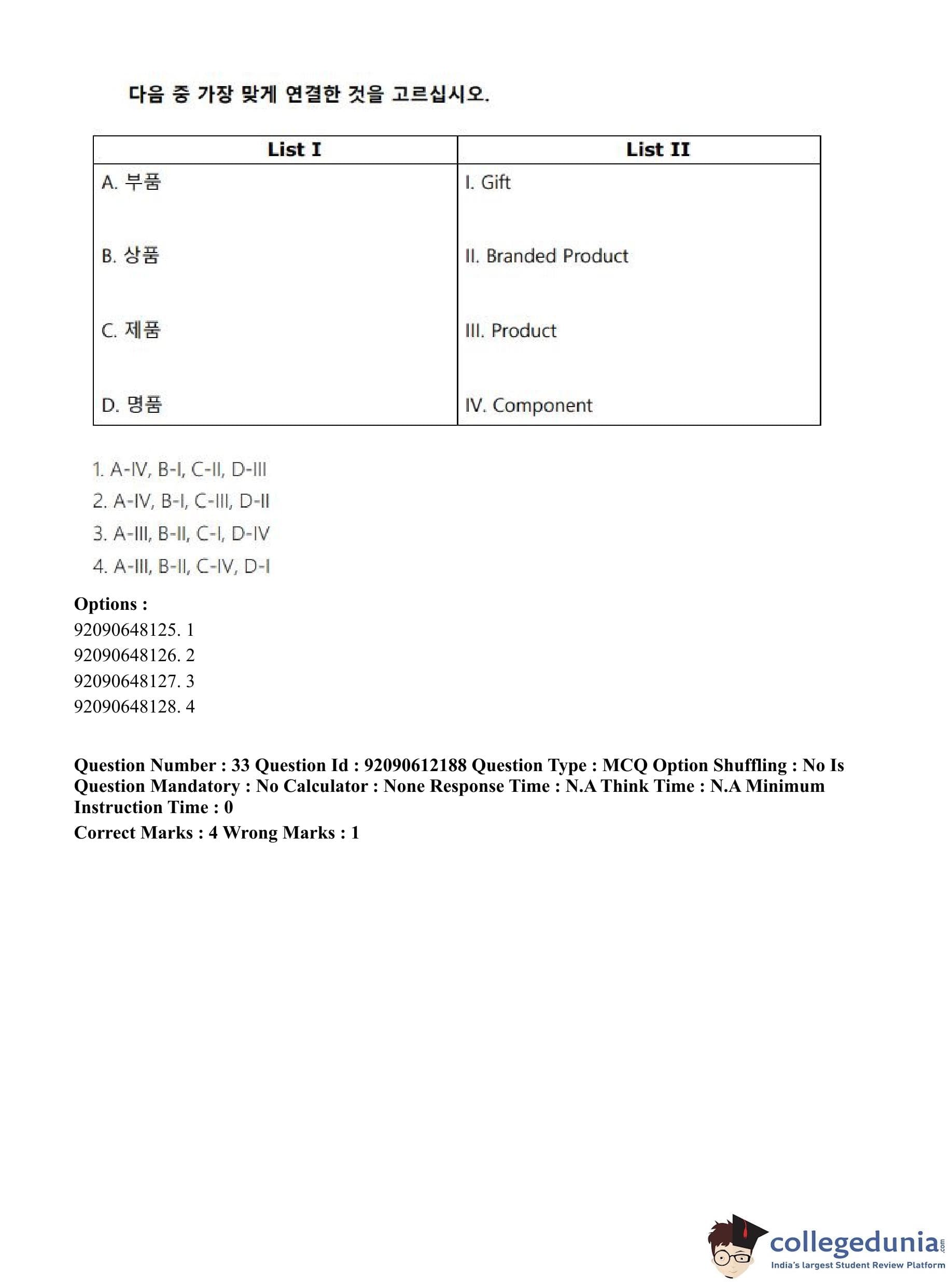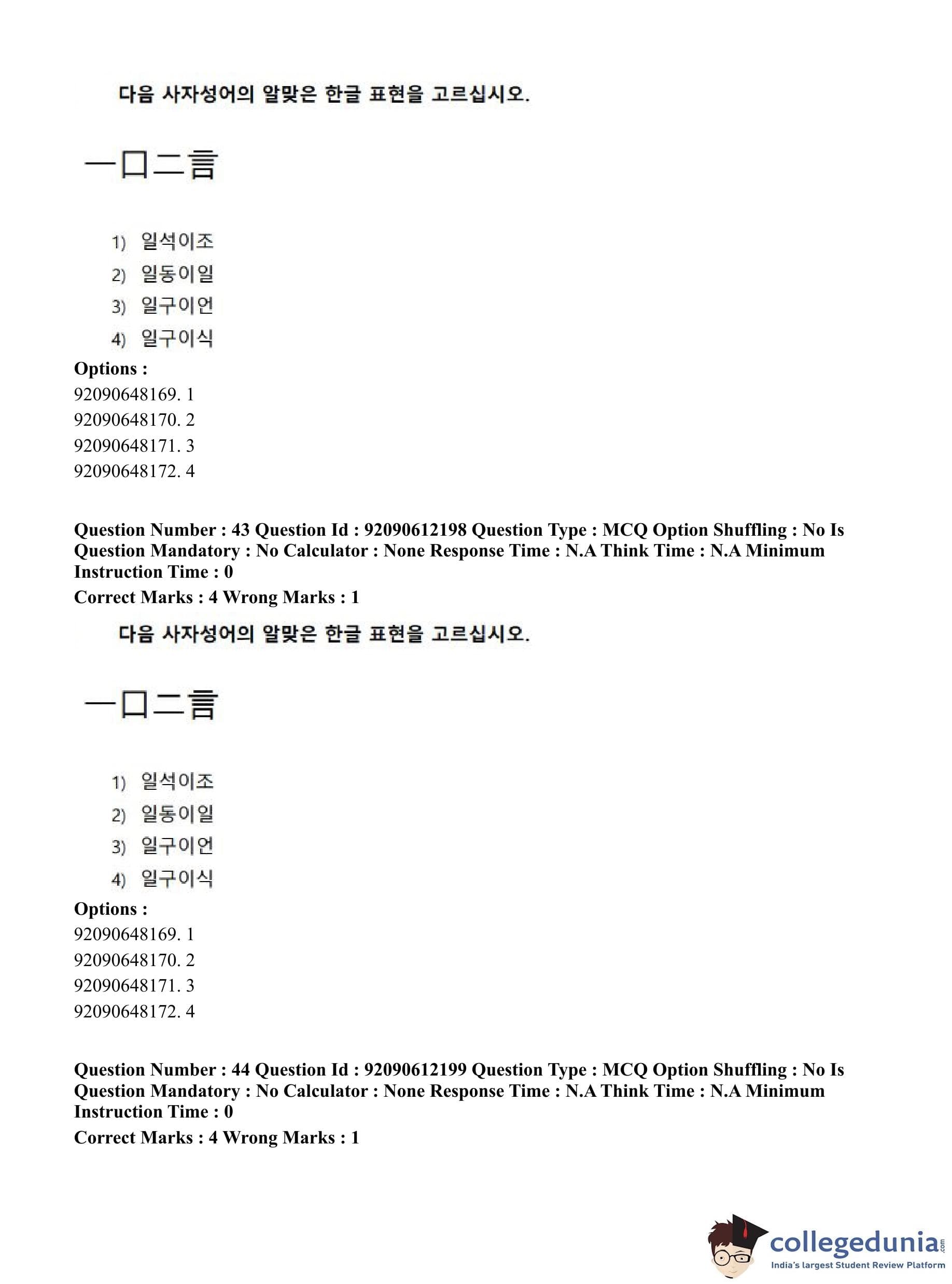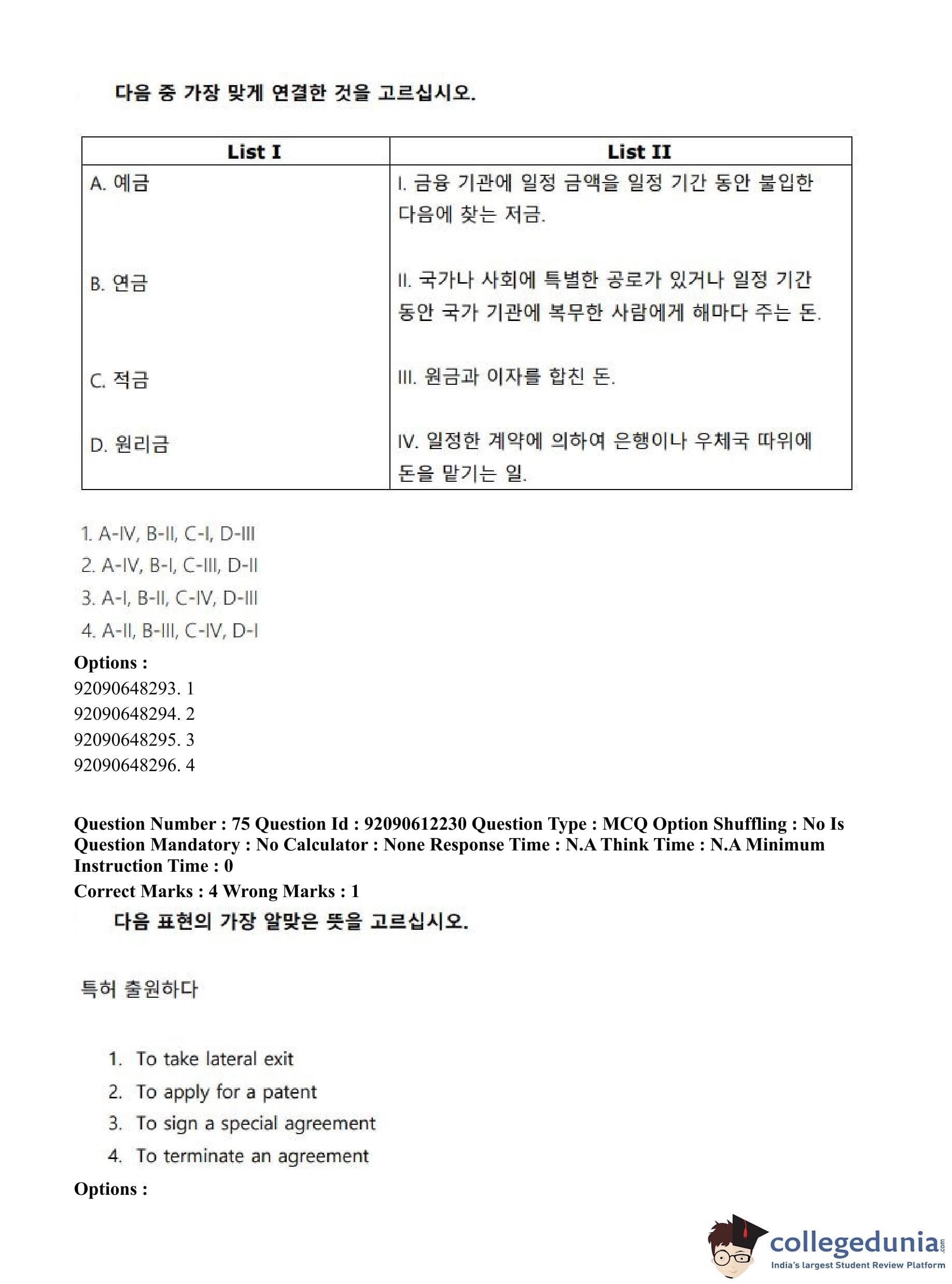 CUET PG 2023 Korean Question Paper in English (June 10 - Shift 3)