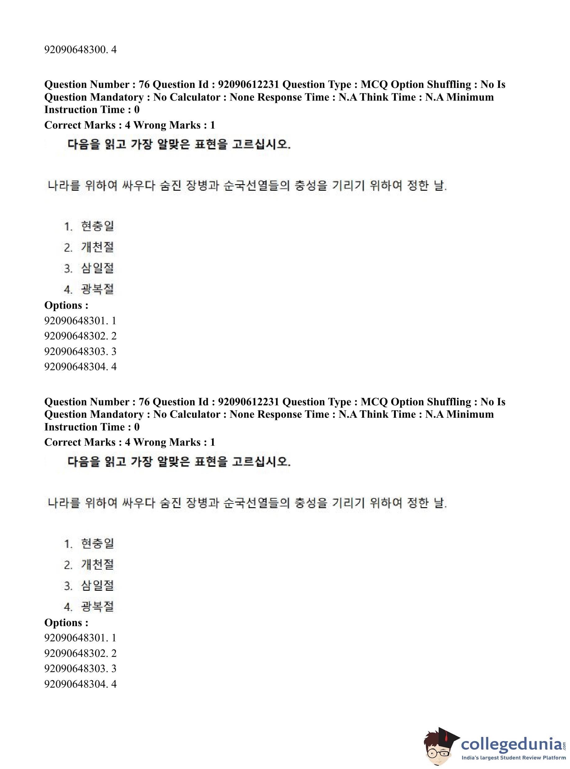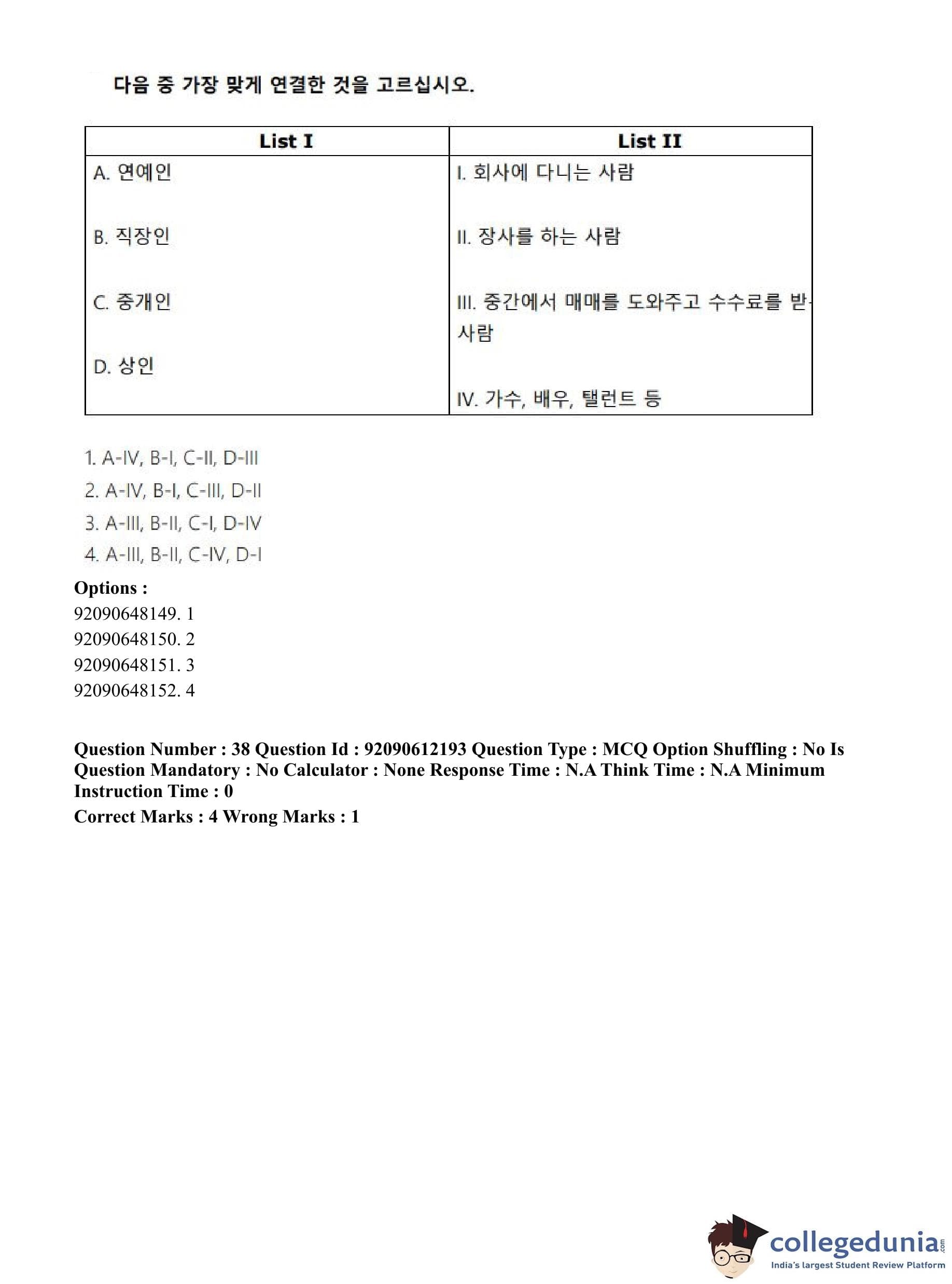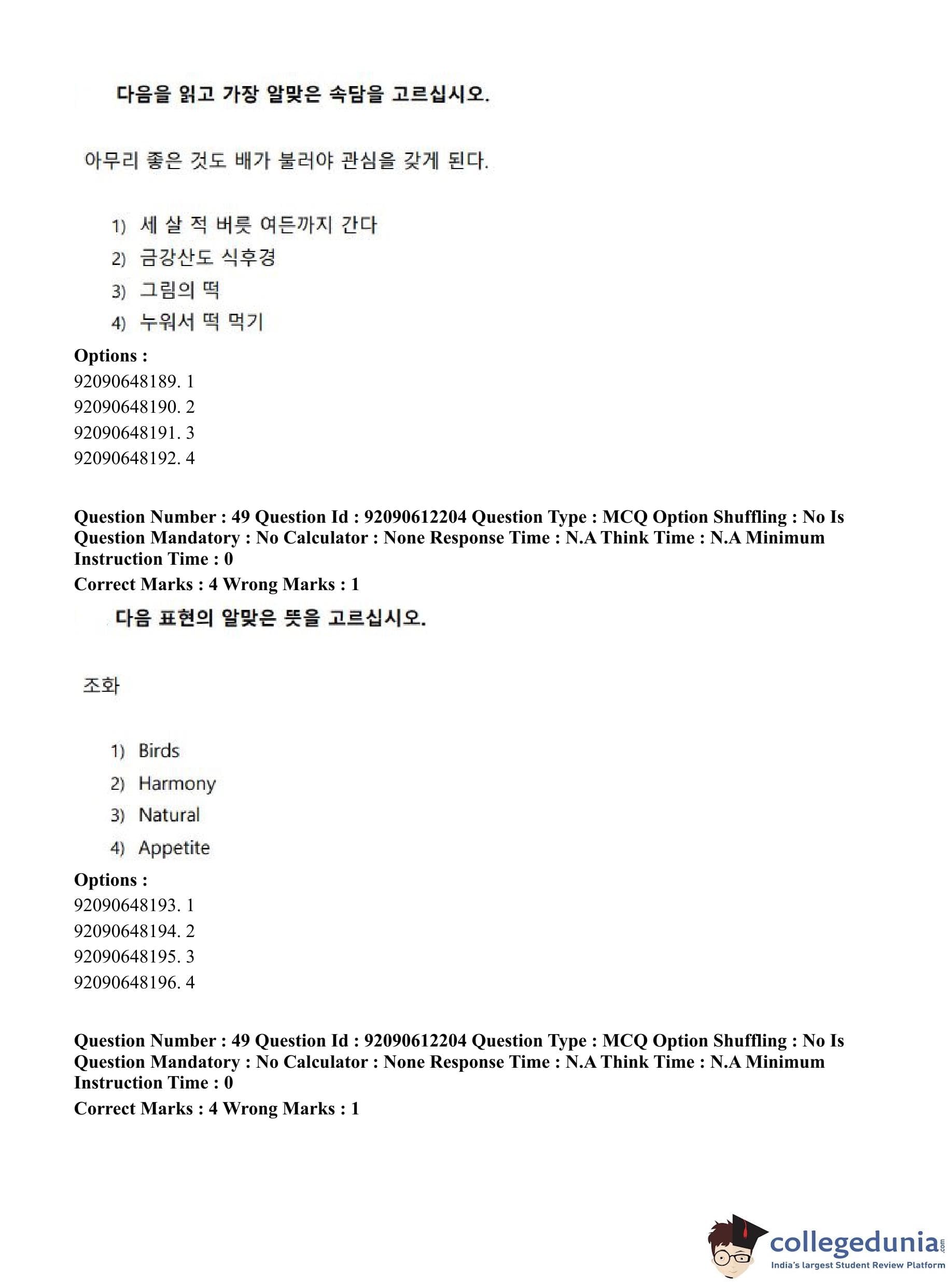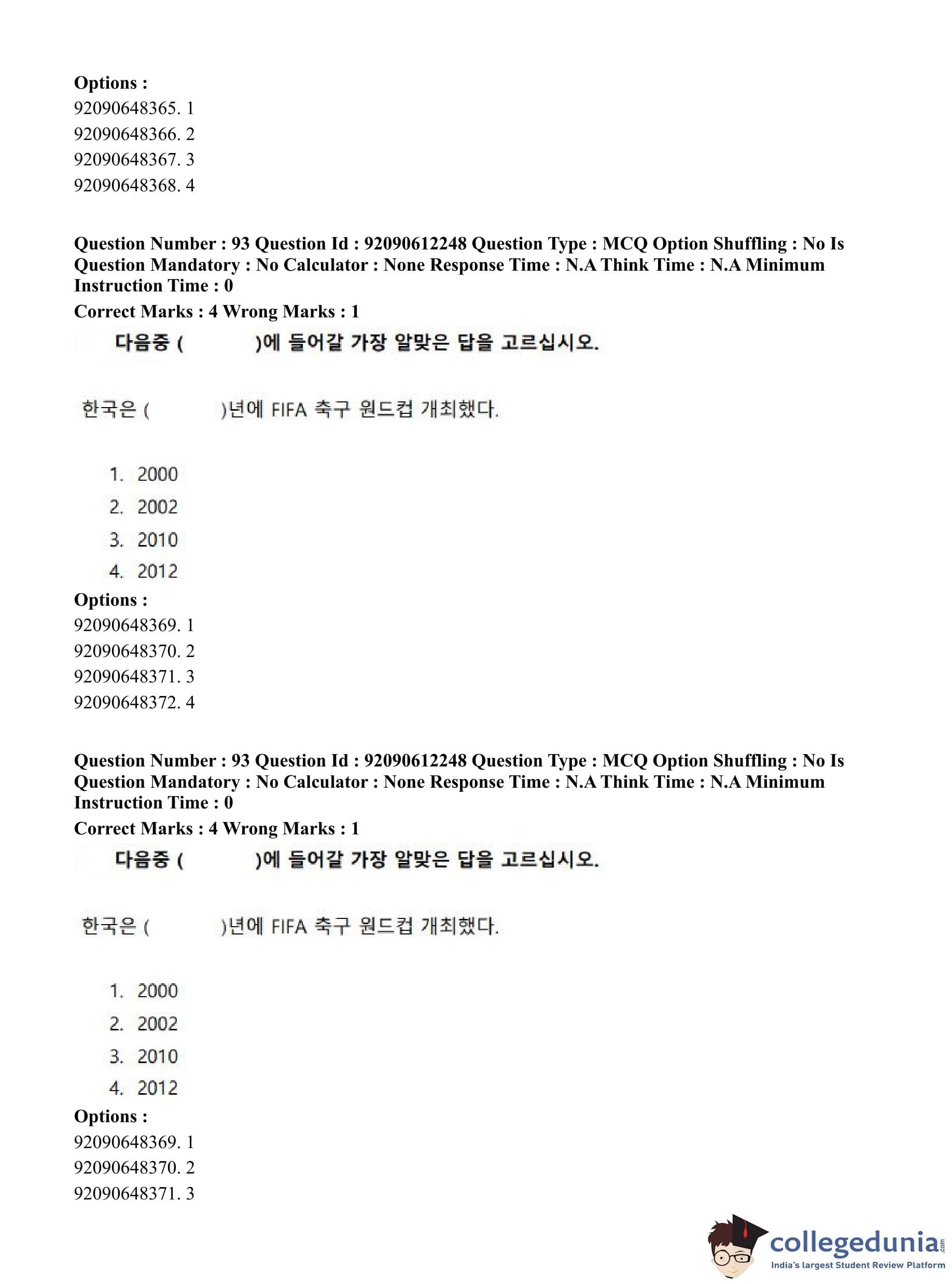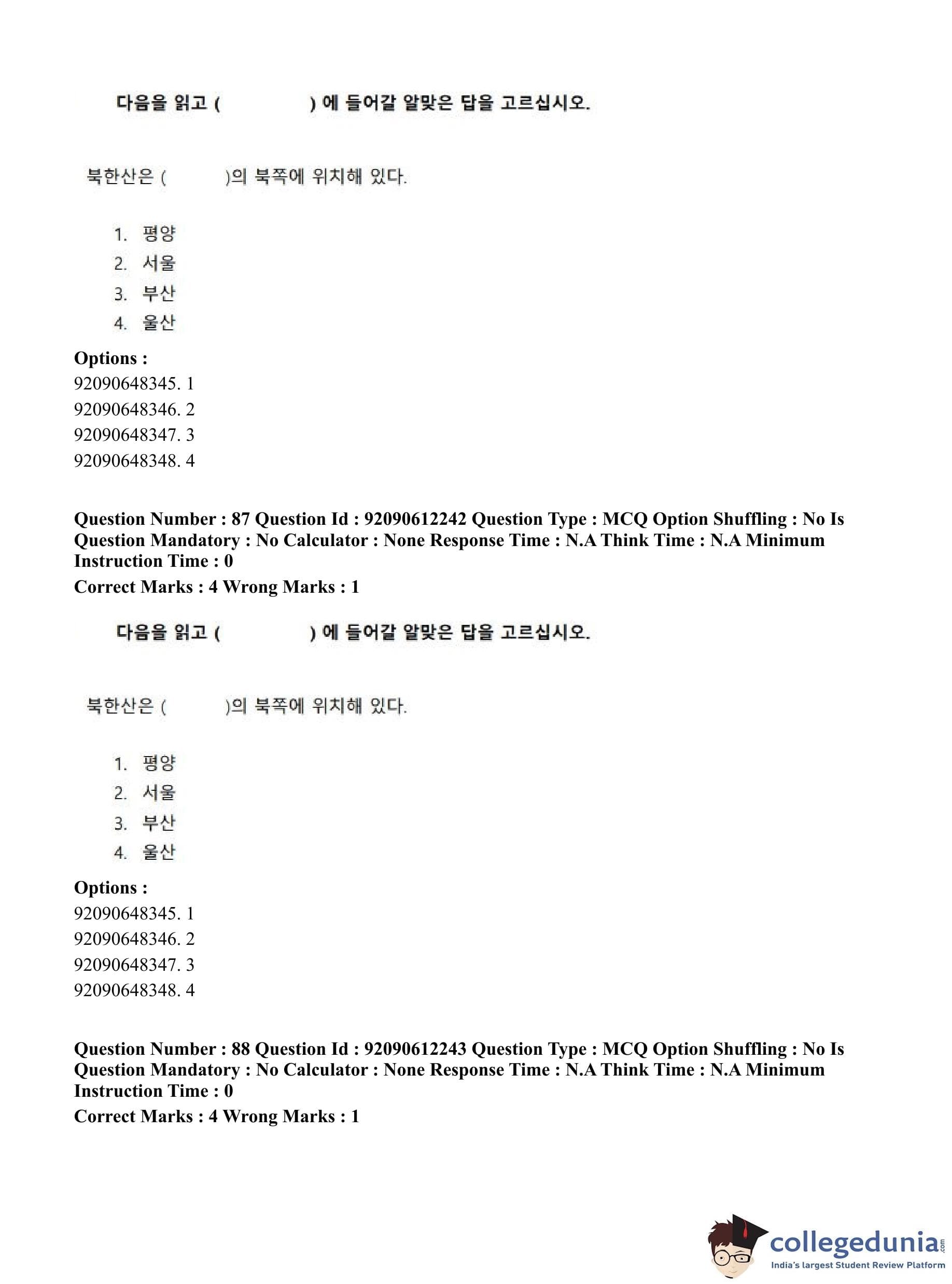 CUET PG 2023 Korean Question Paper in English (June 10 - Shift 3)