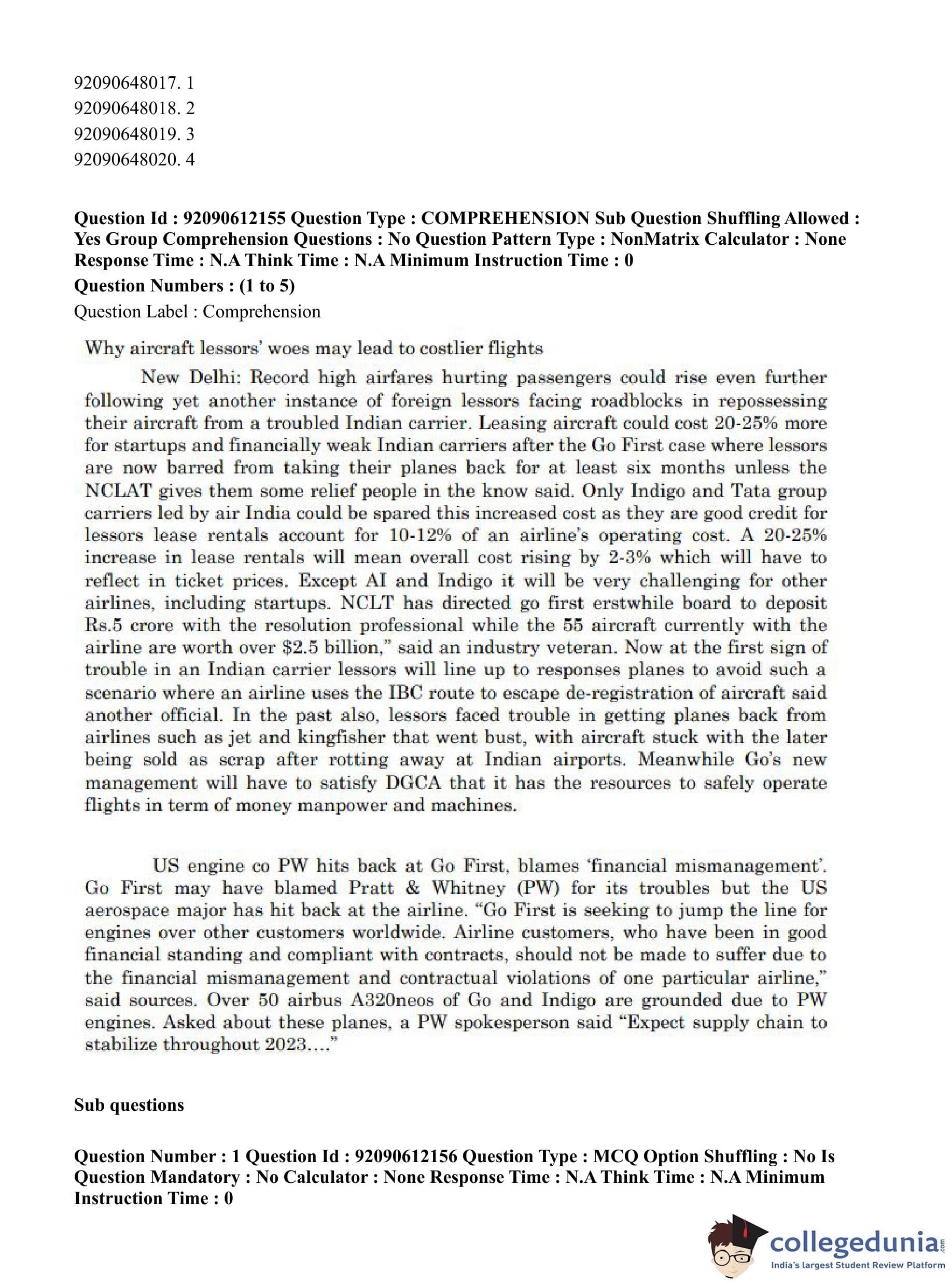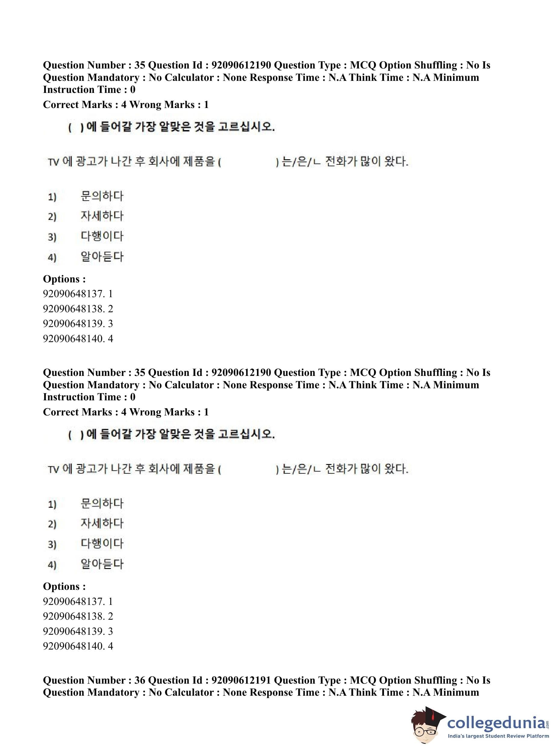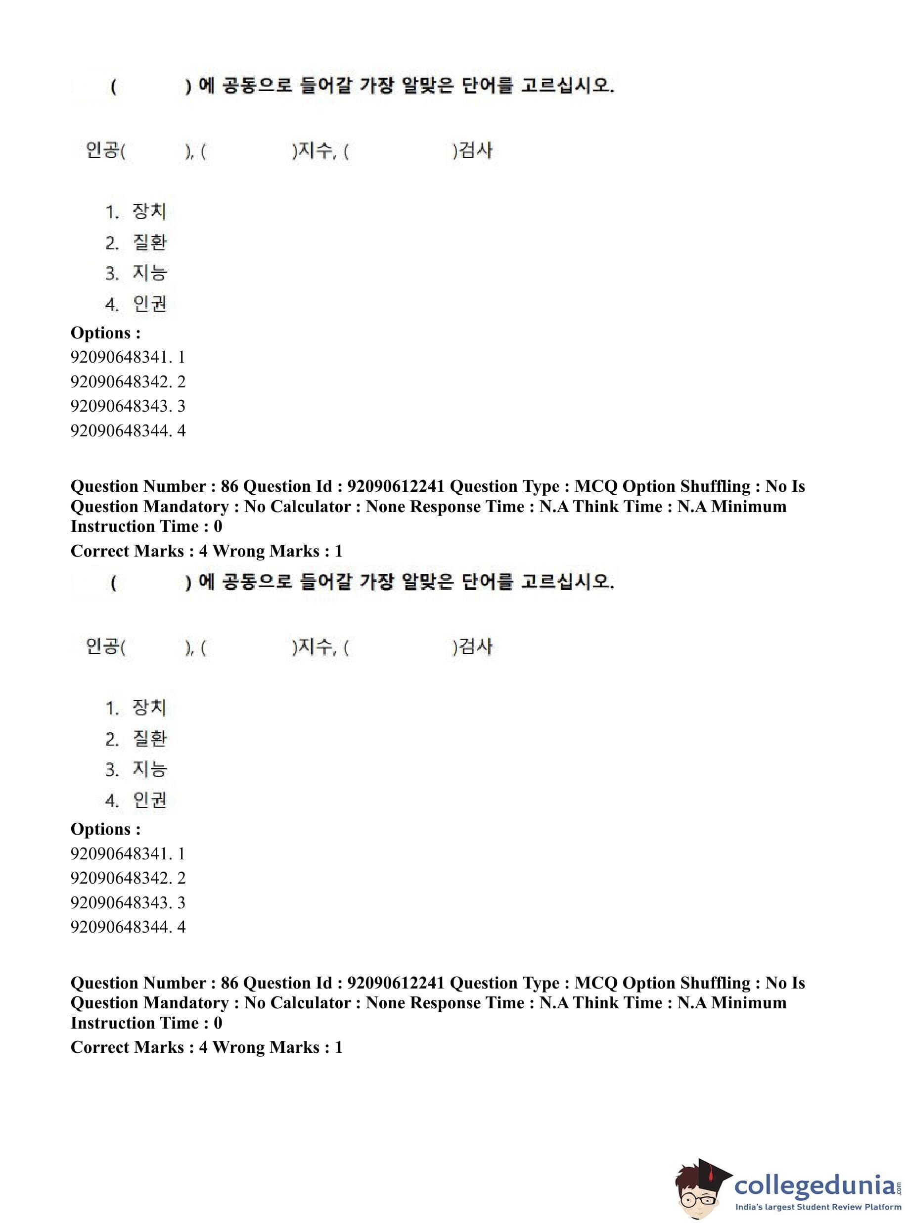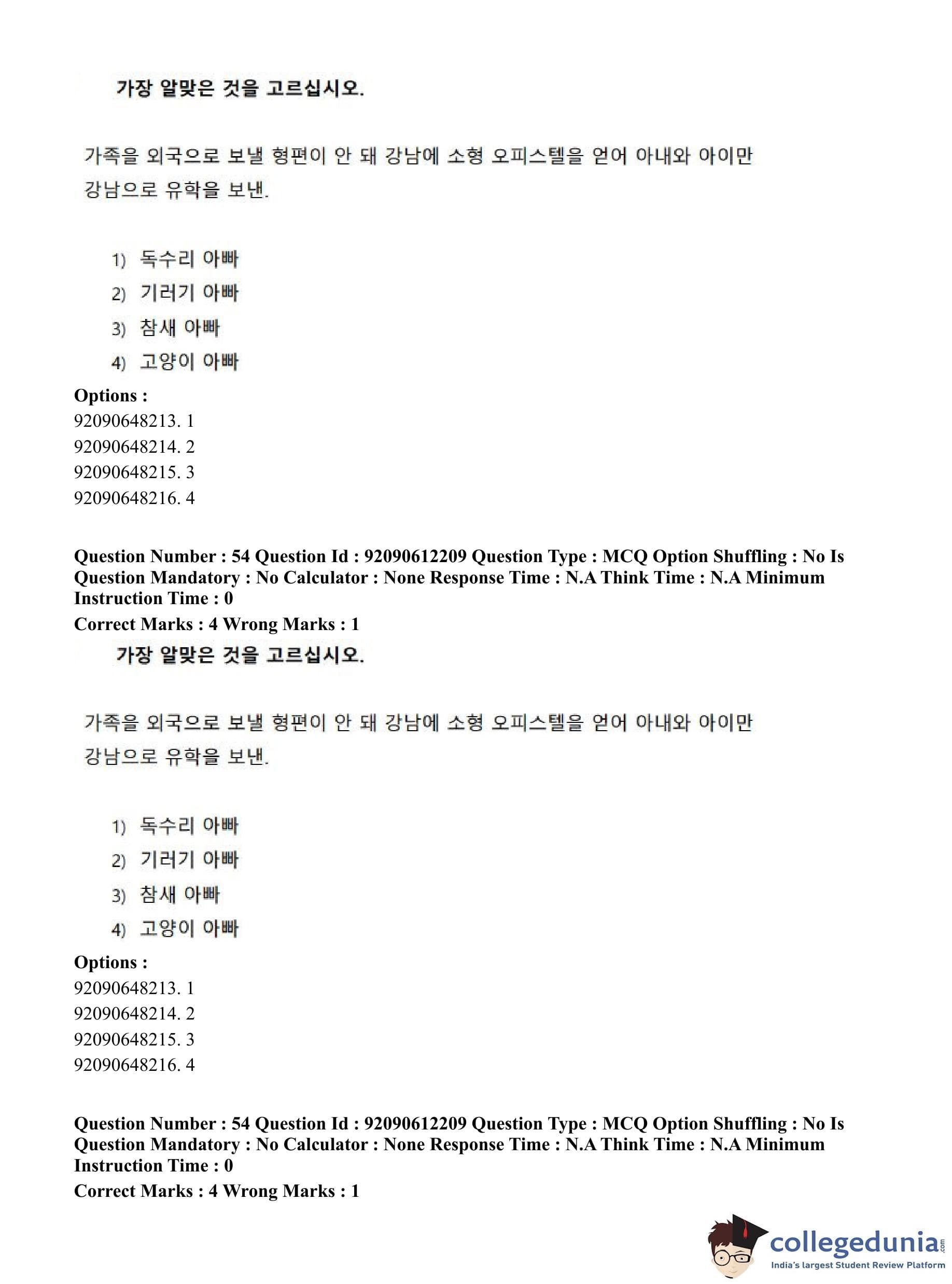 CUET PG 2023 Korean Question Paper in English (June 10 - Shift 3)