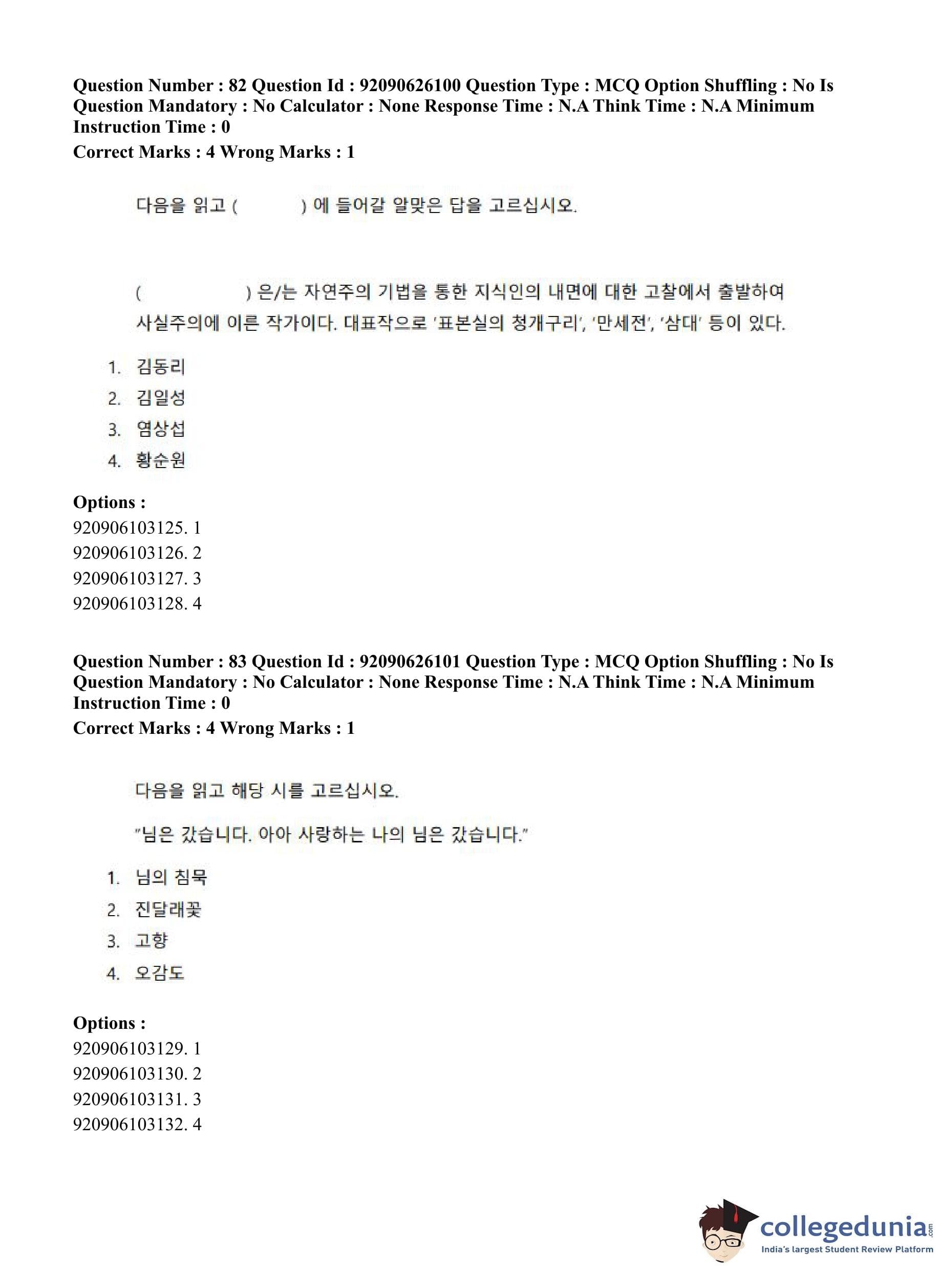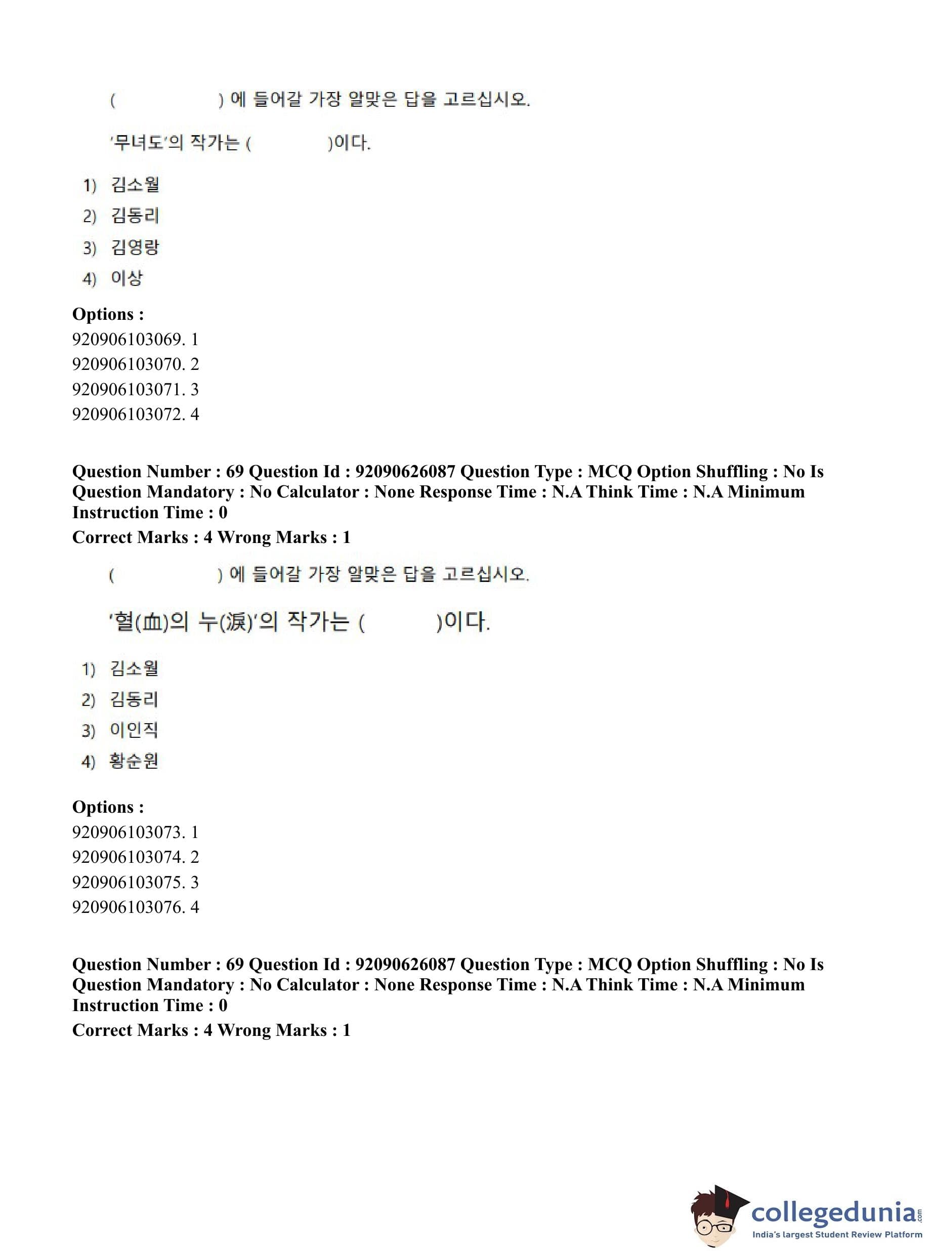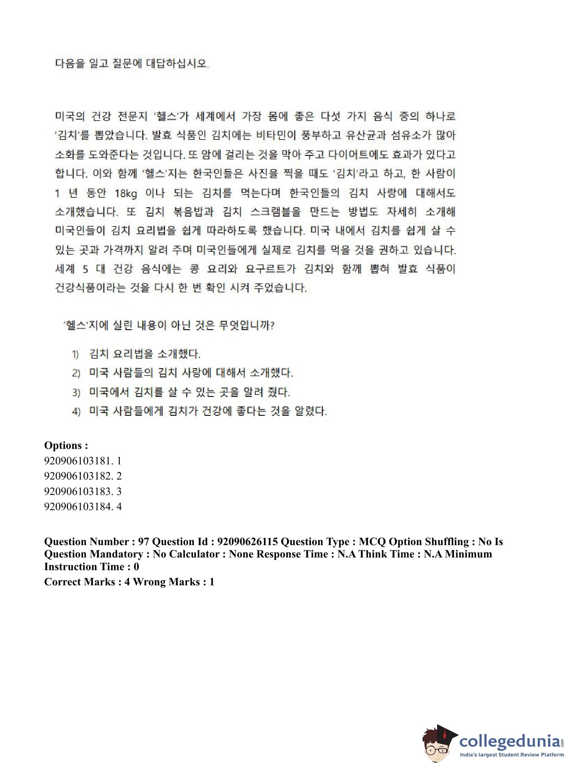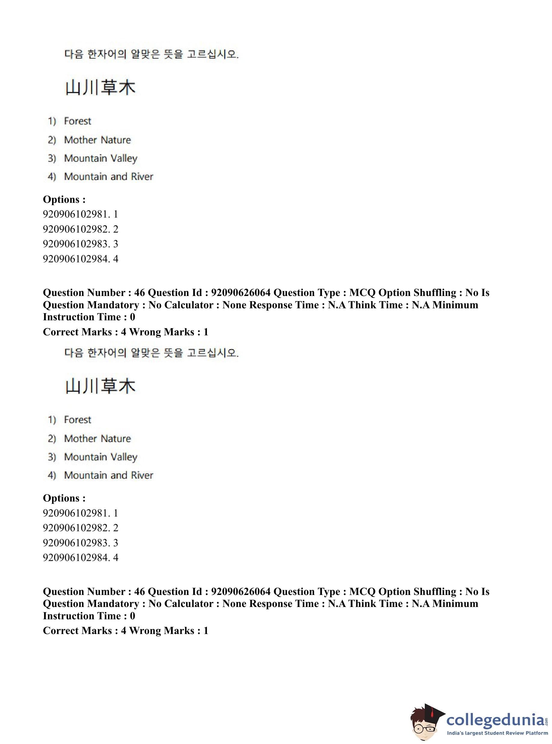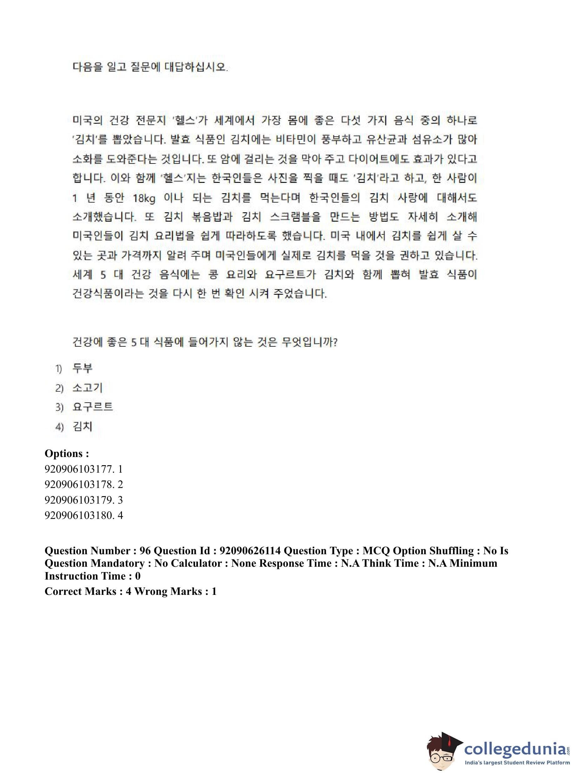 CUET PG 2023 Korean Question Paper in English (June 26 - Shift 1)