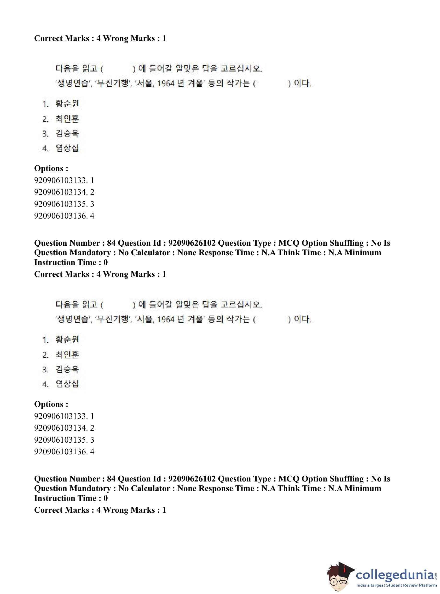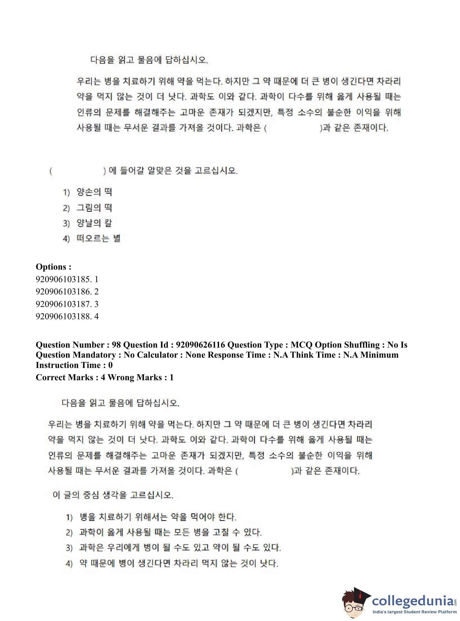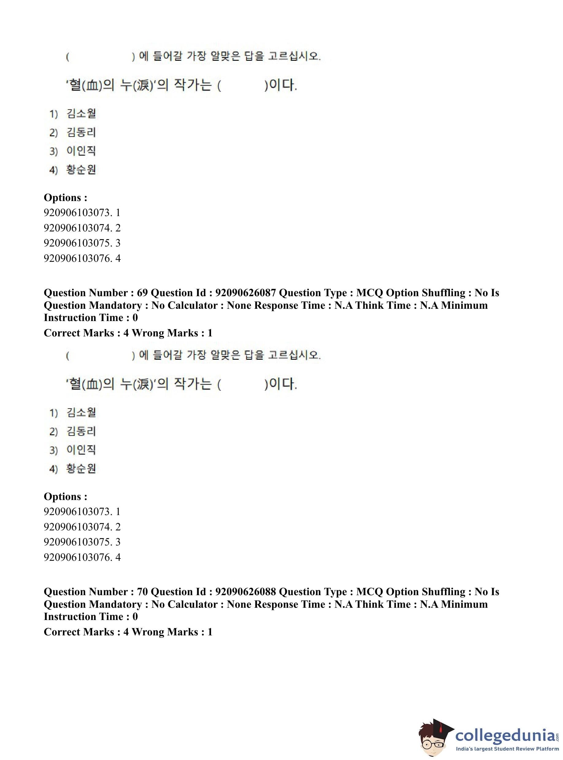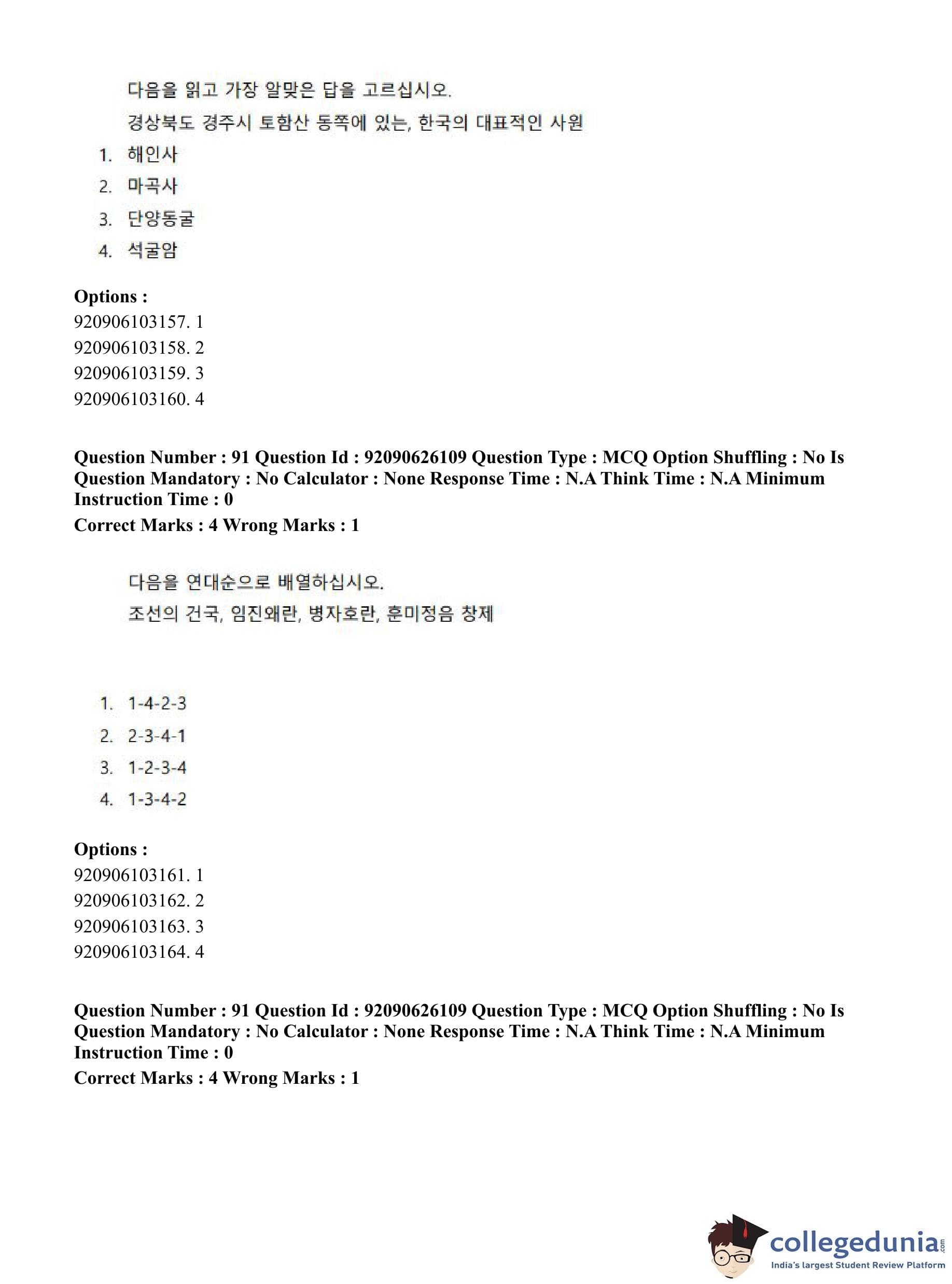 CUET PG 2023 Korean Question Paper in English (June 26 - Shift 1)