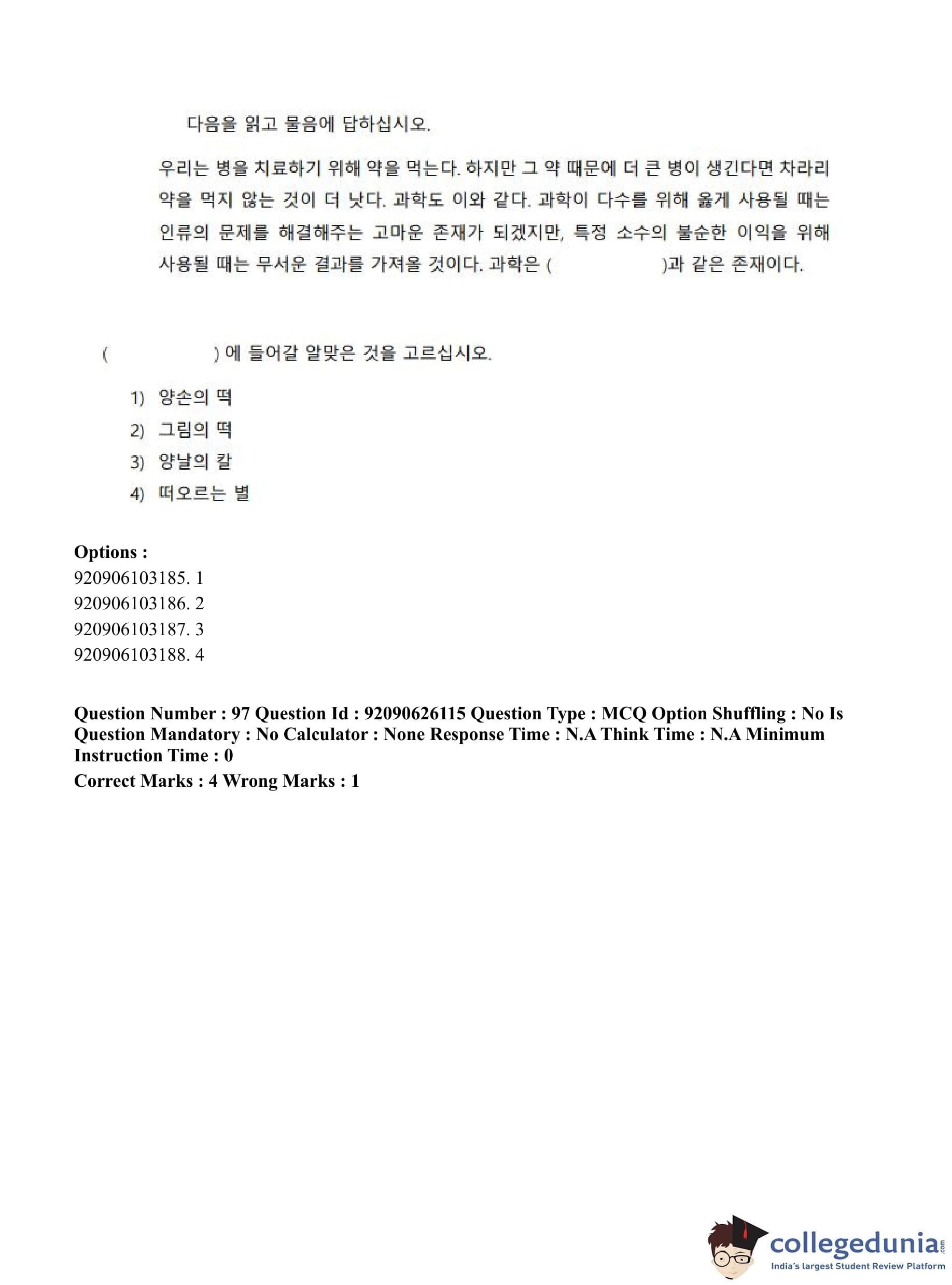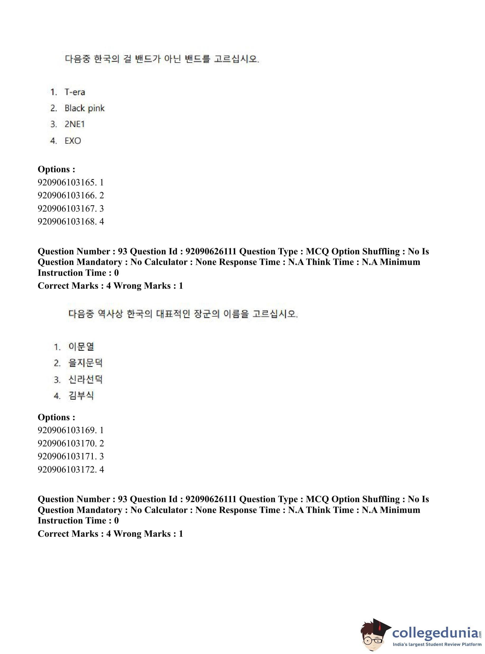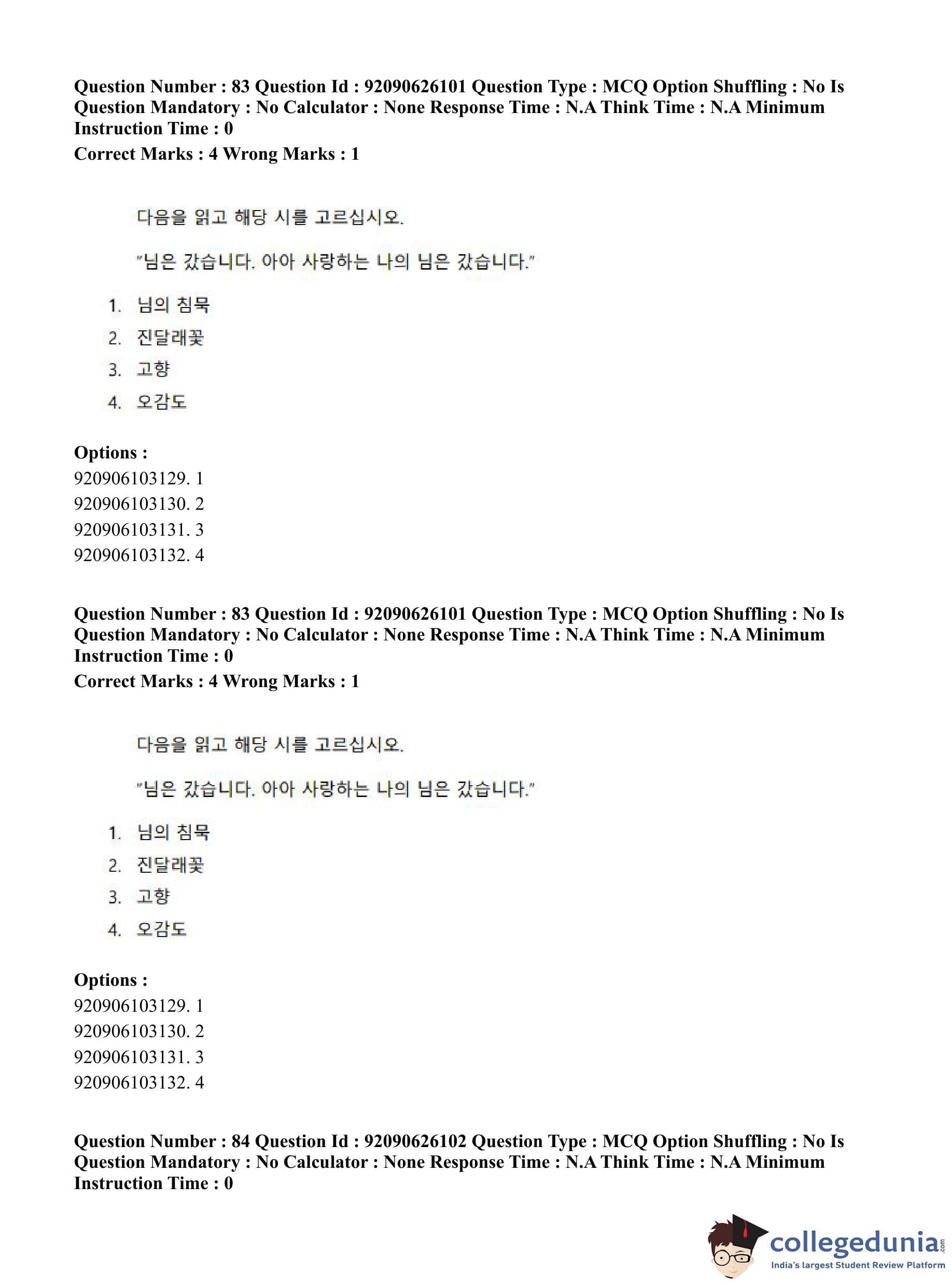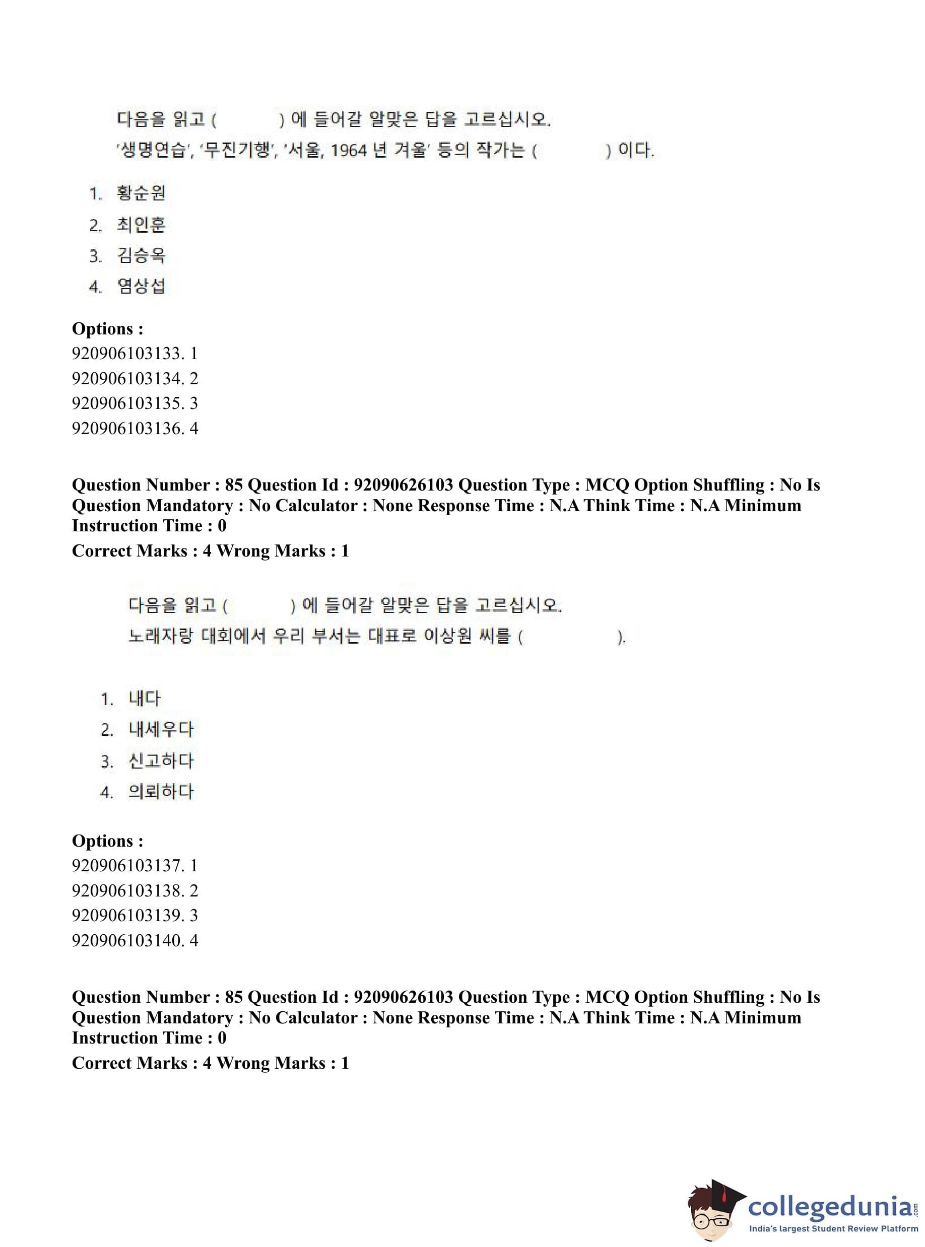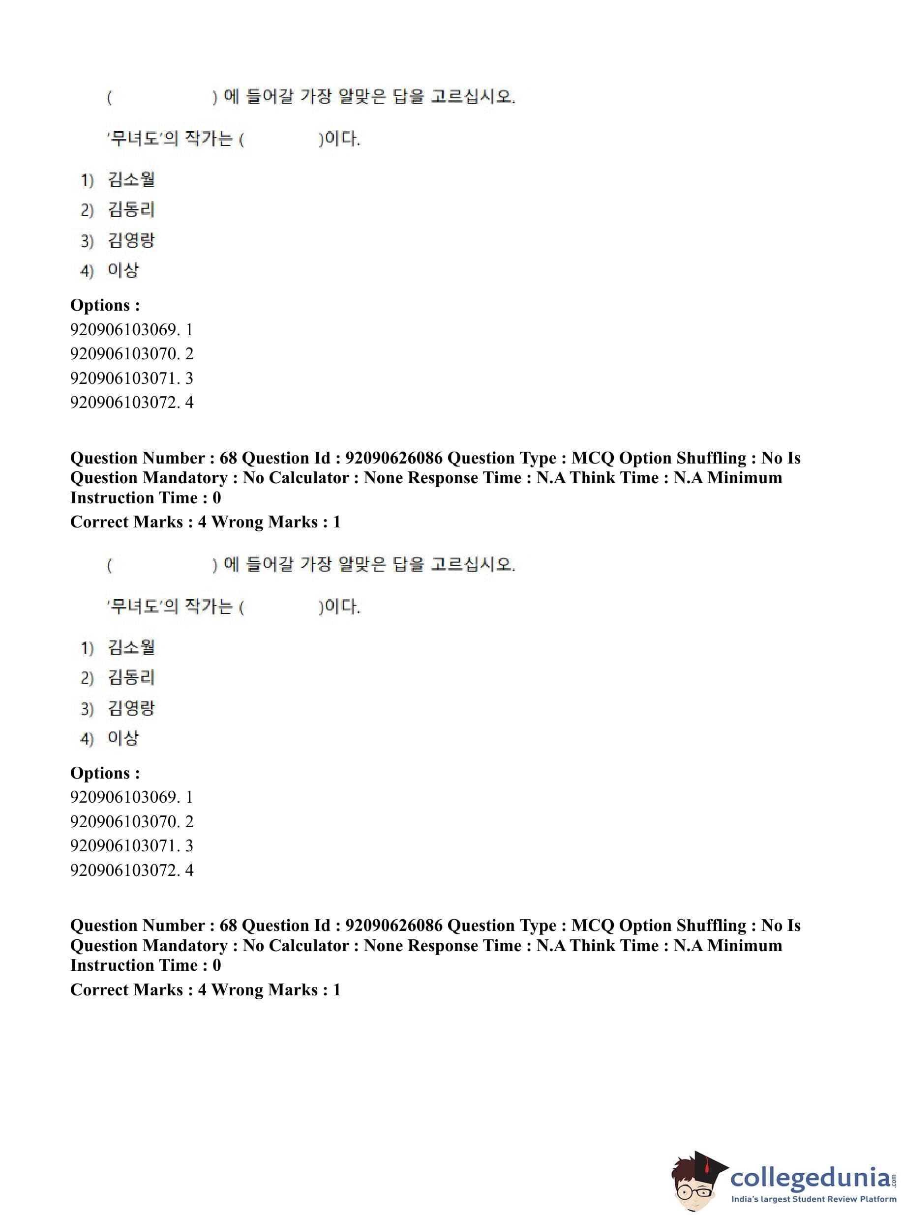 CUET PG 2023 Korean Question Paper in English (June 26 - Shift 1)
