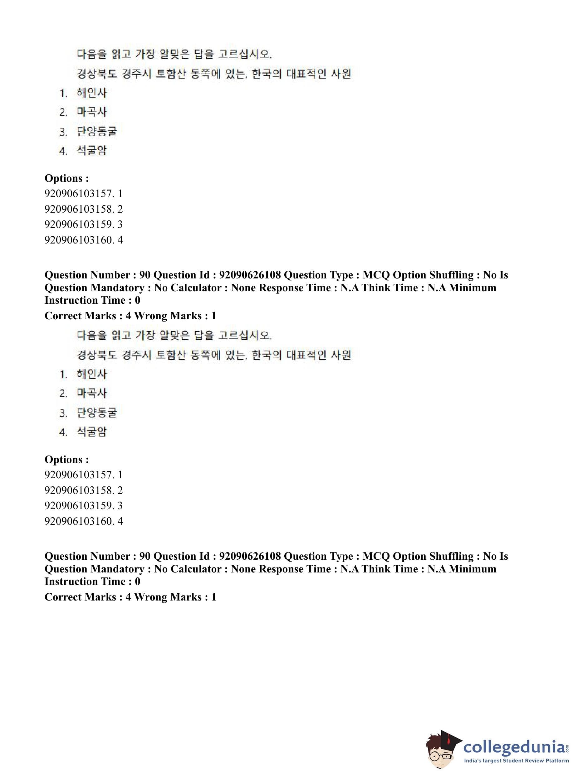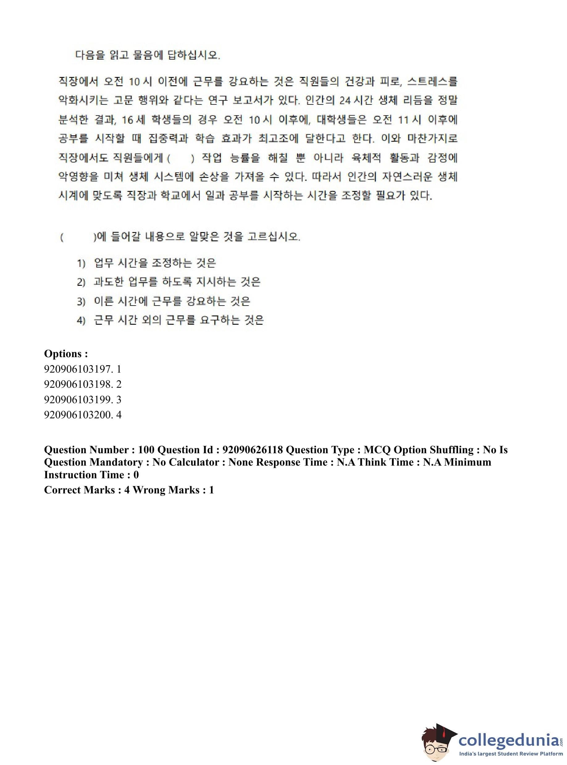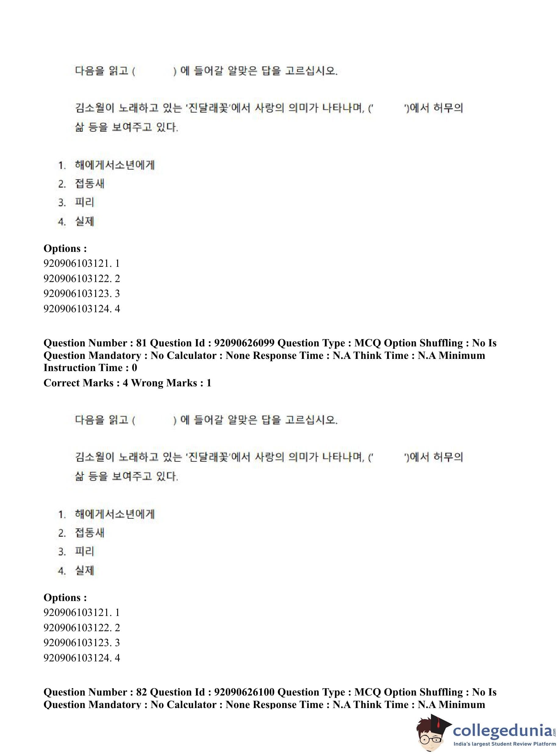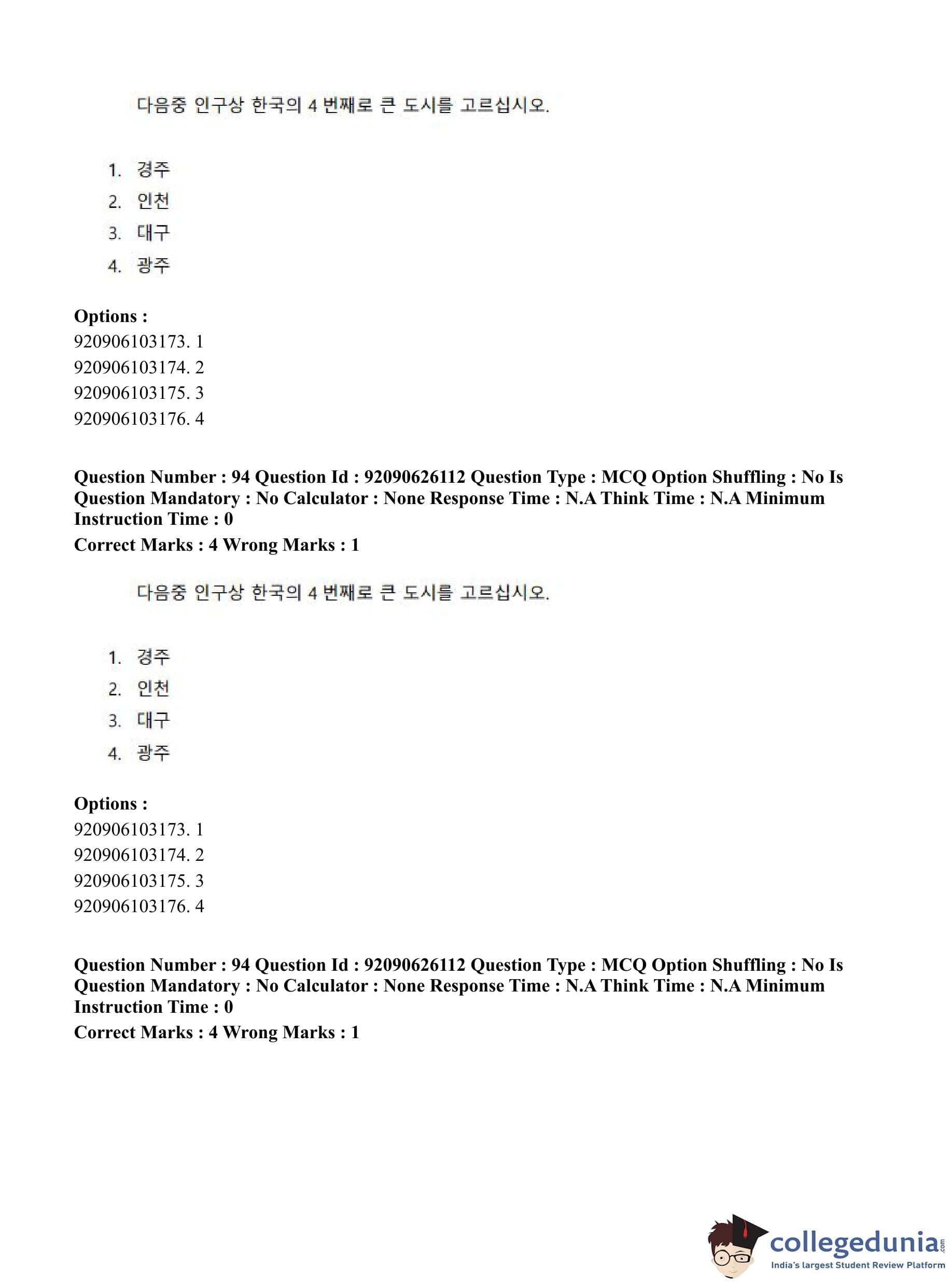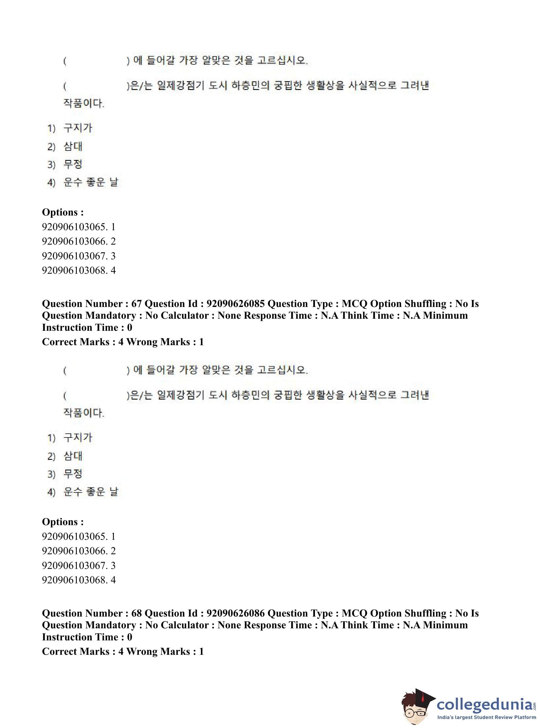 CUET PG 2023 Korean Question Paper in English (June 26 - Shift 1)