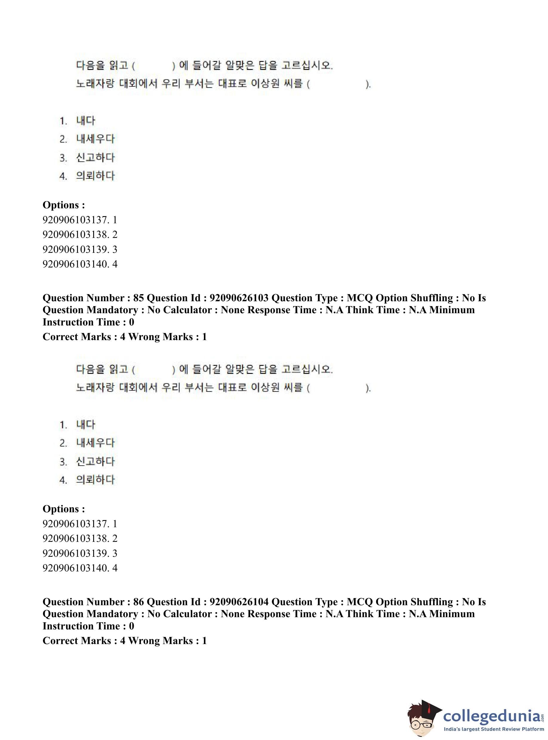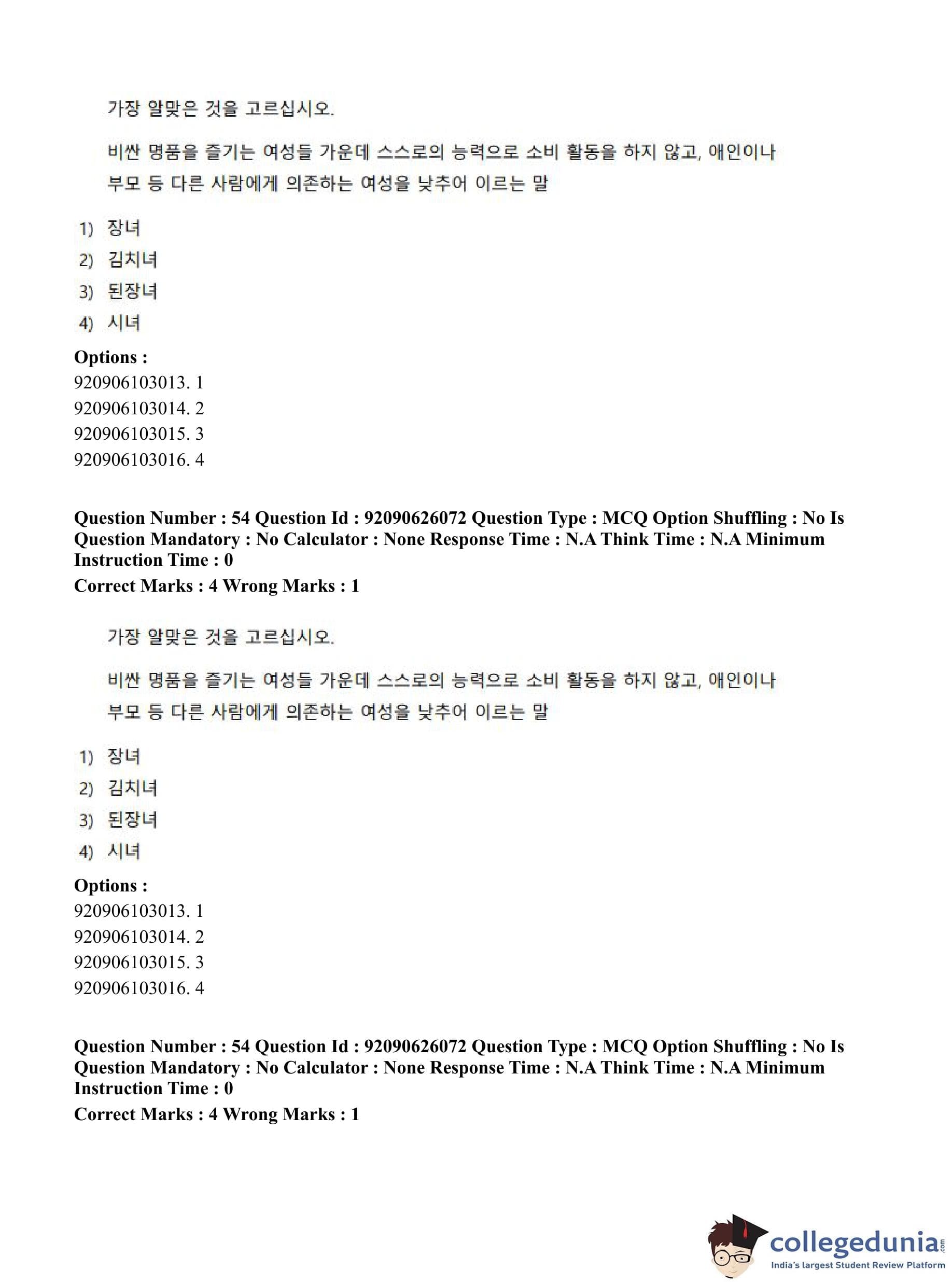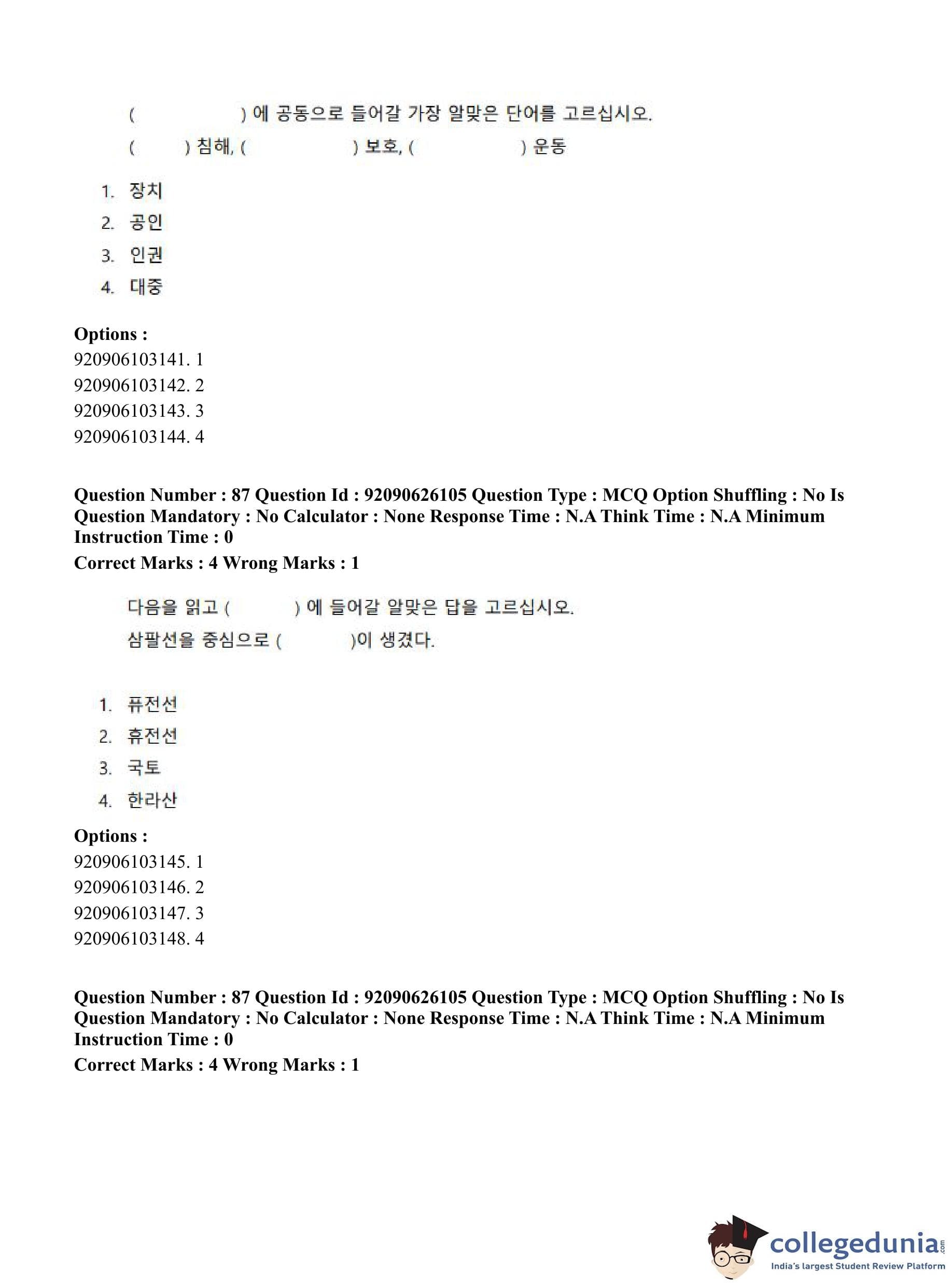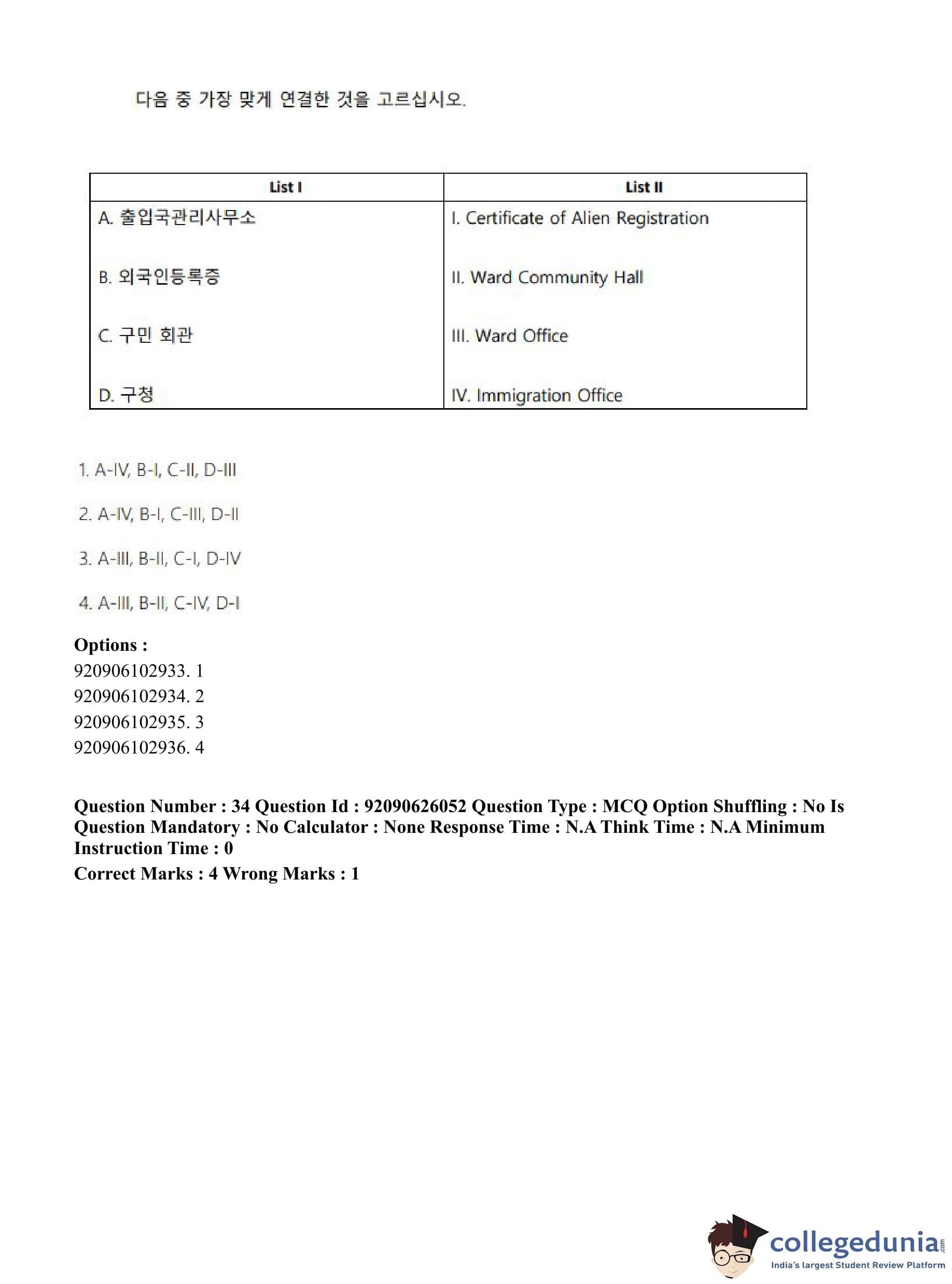 CUET PG 2023 Korean Question Paper in English (June 26 - Shift 1)