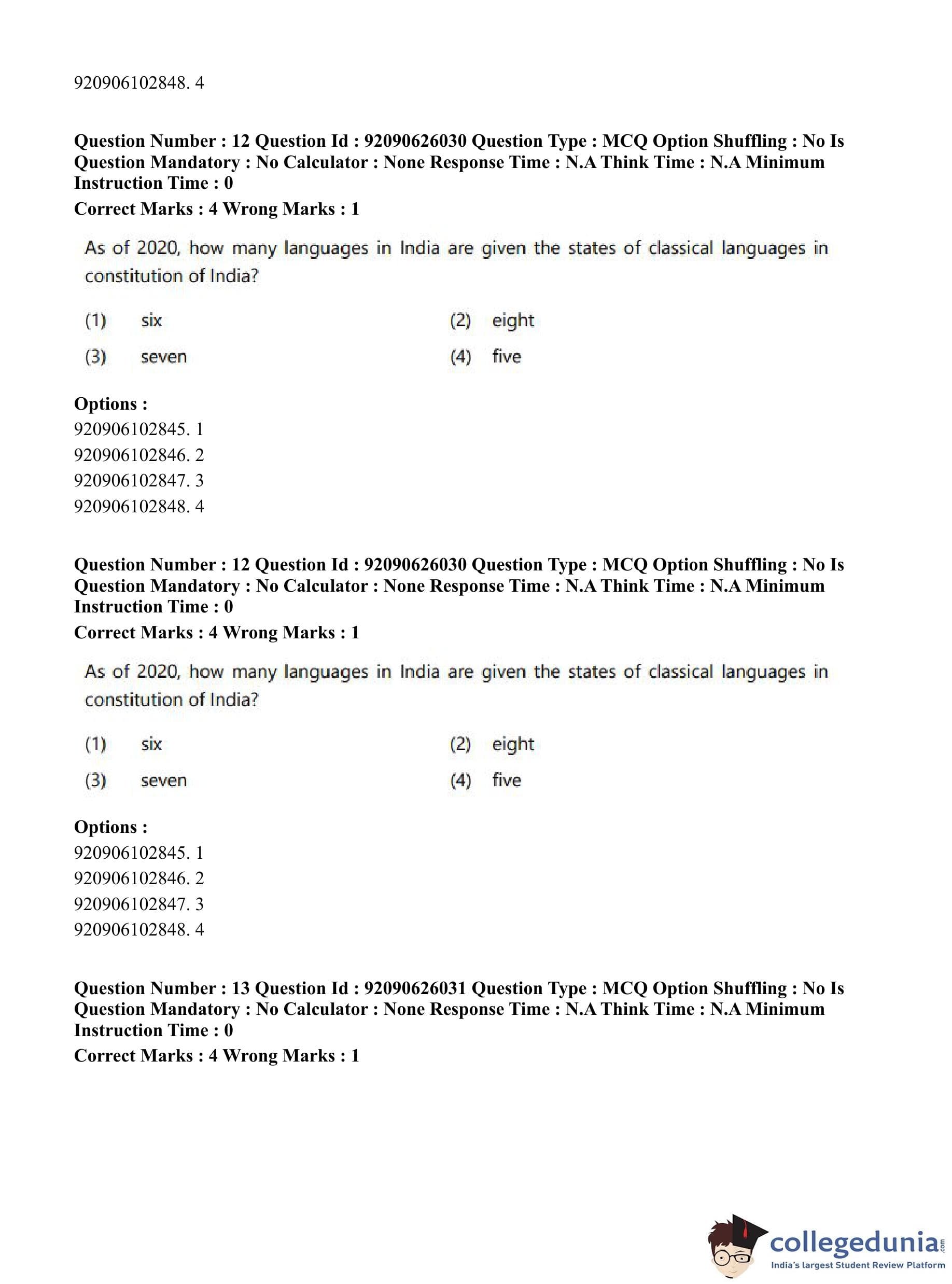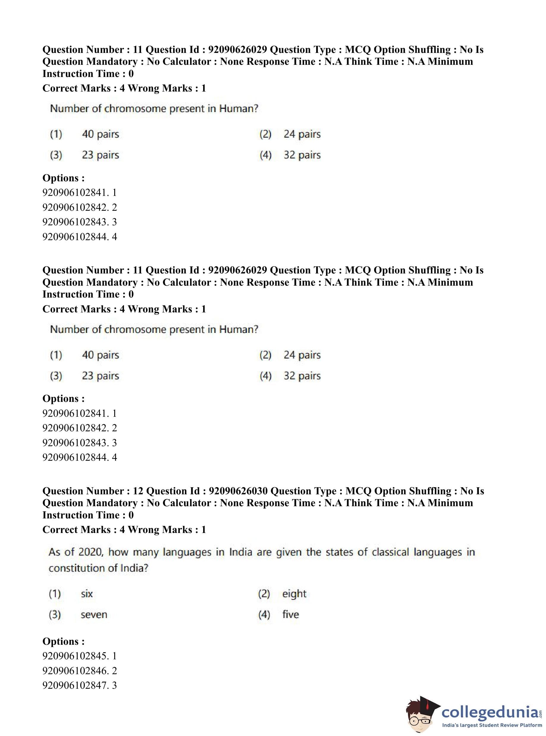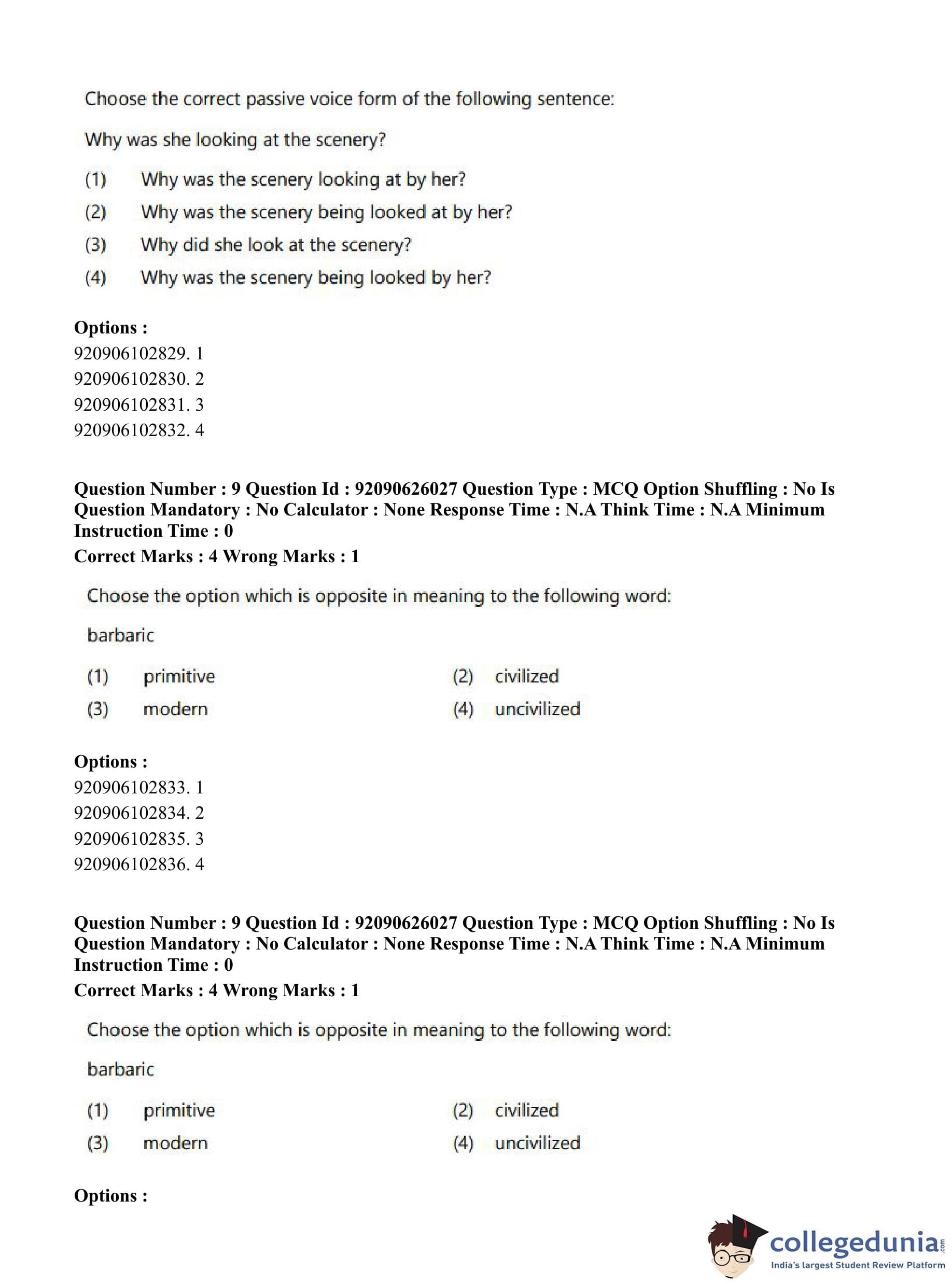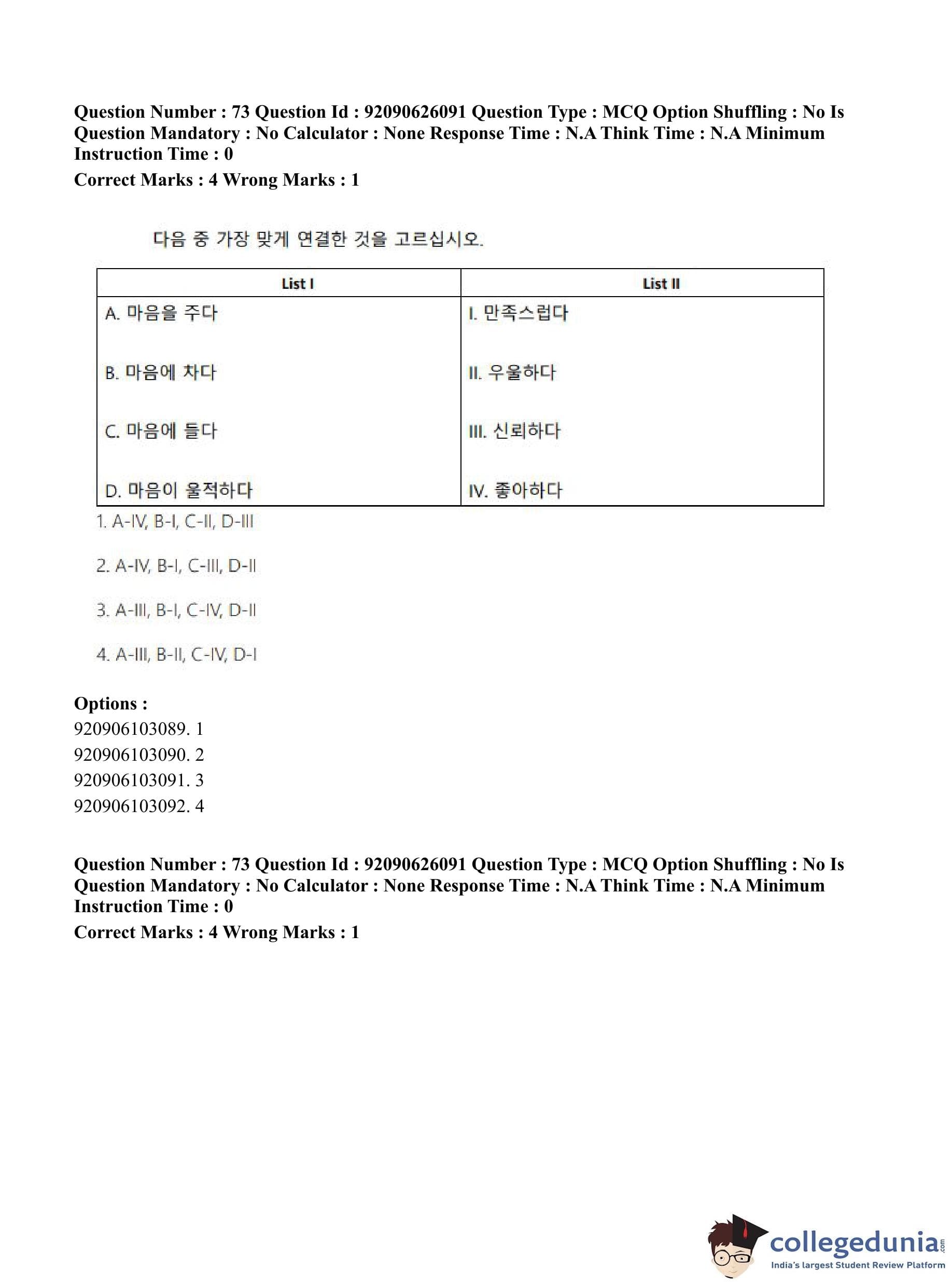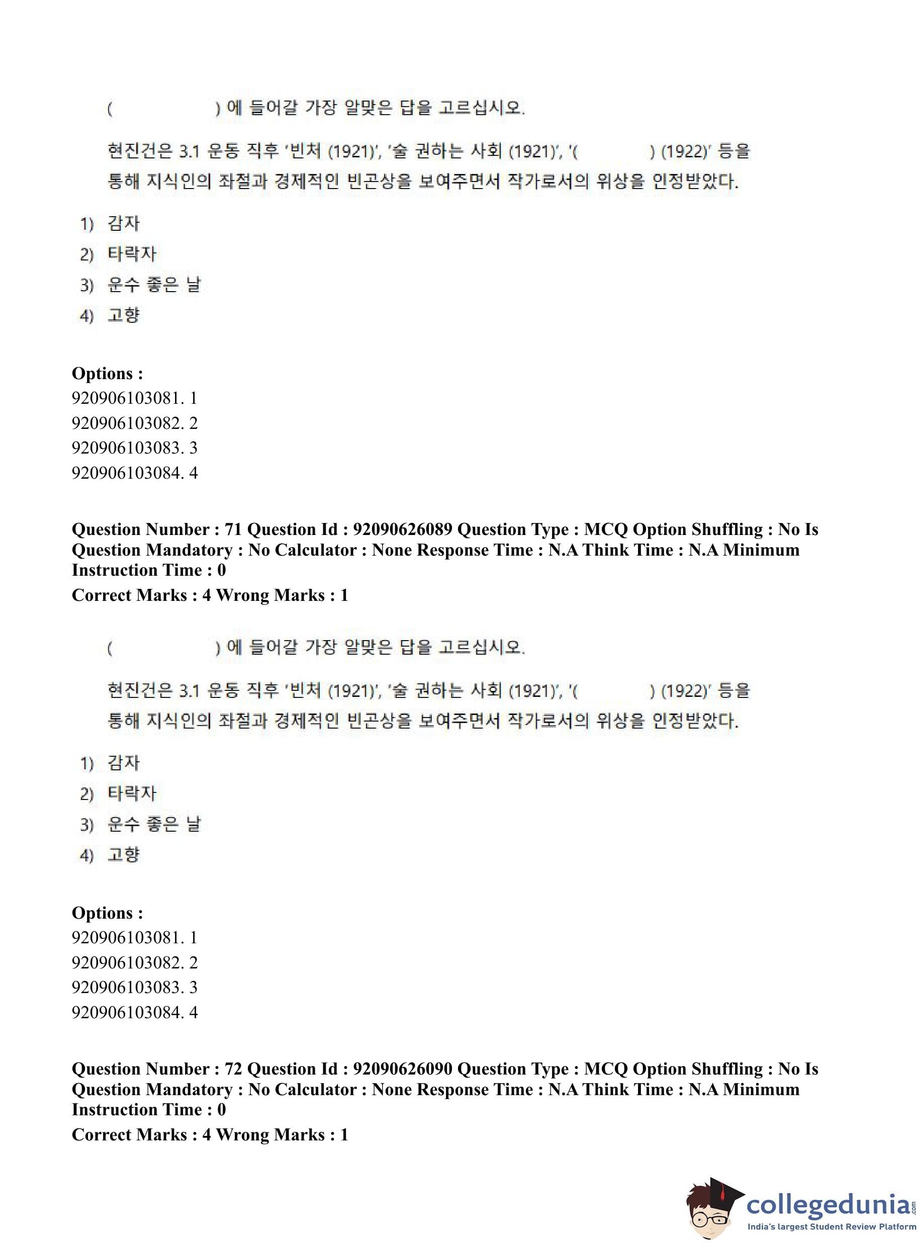 CUET PG 2023 Korean Question Paper in English (June 26 - Shift 1)