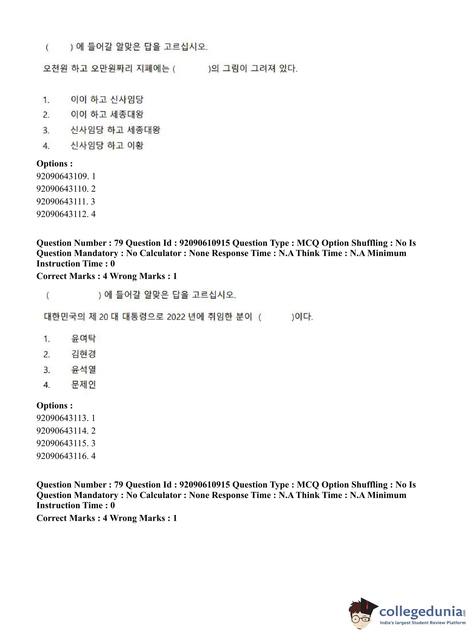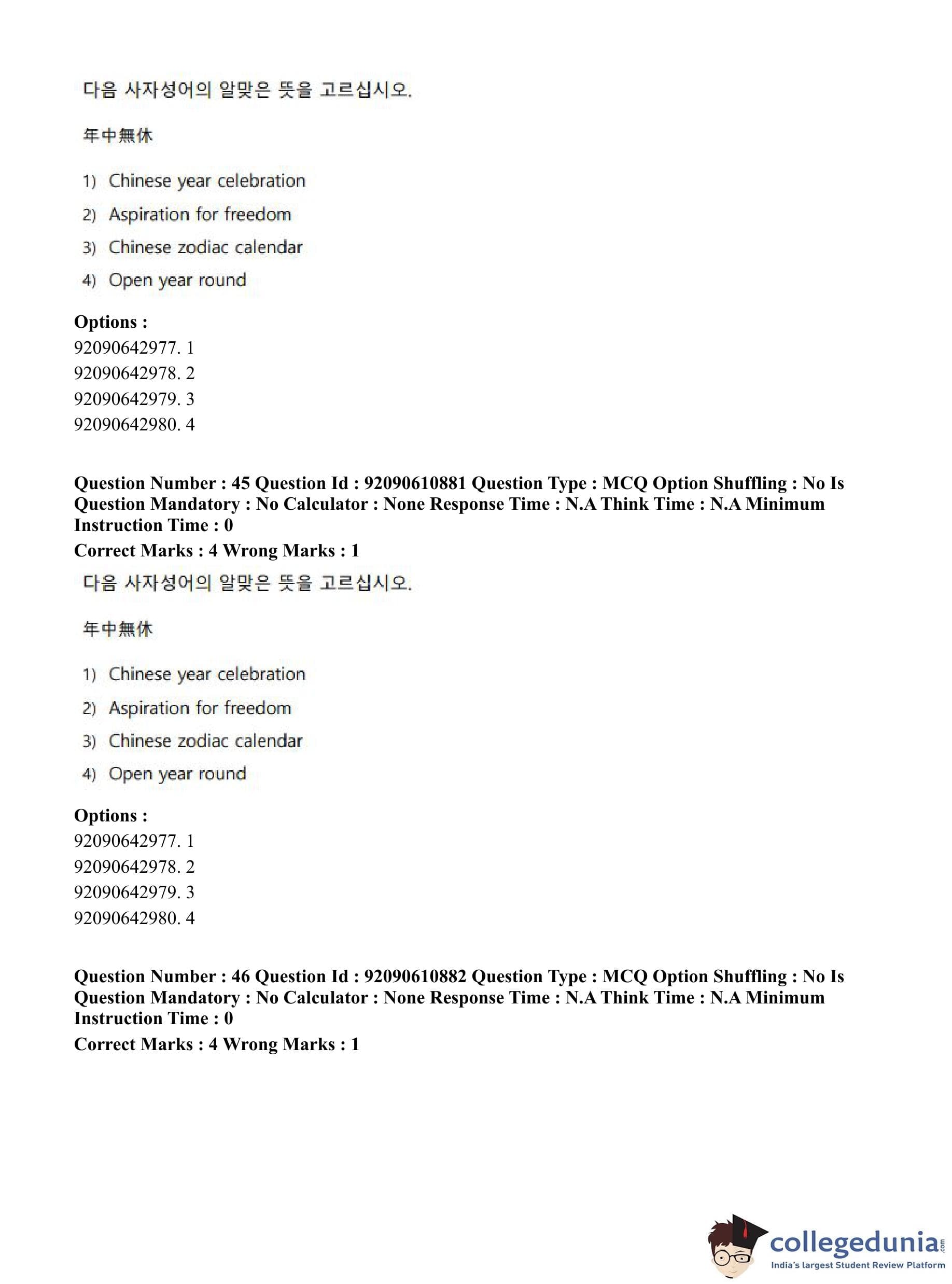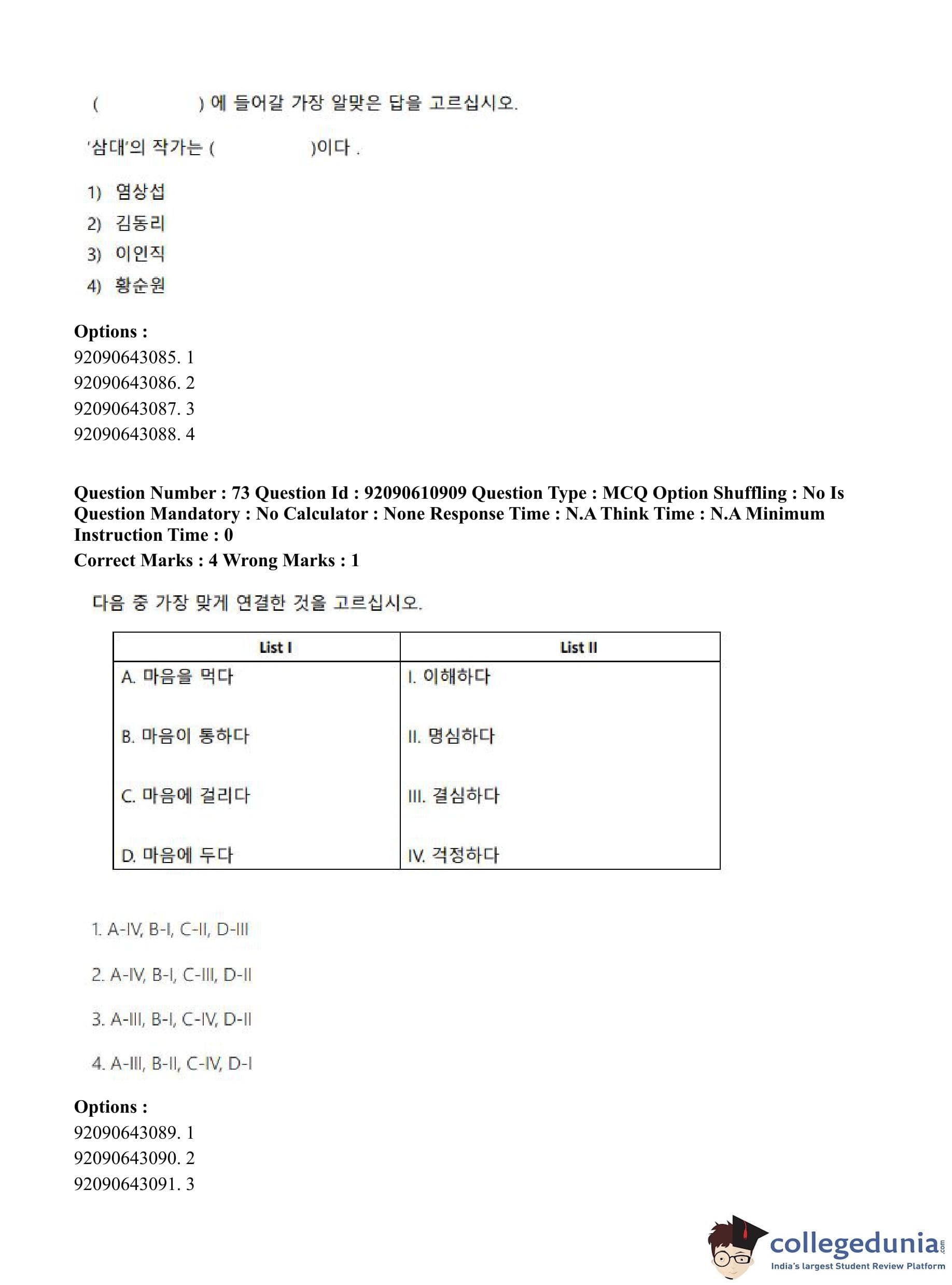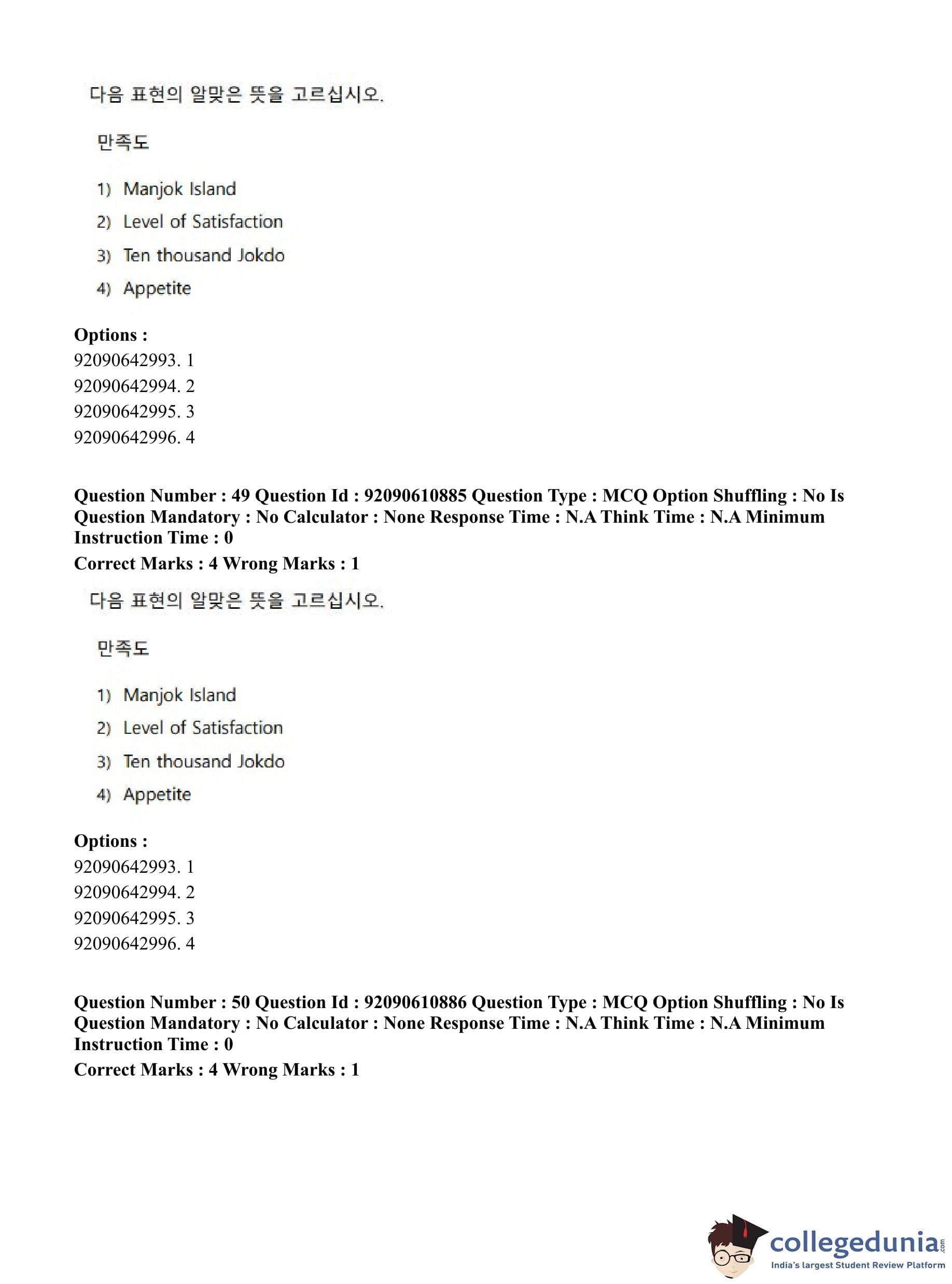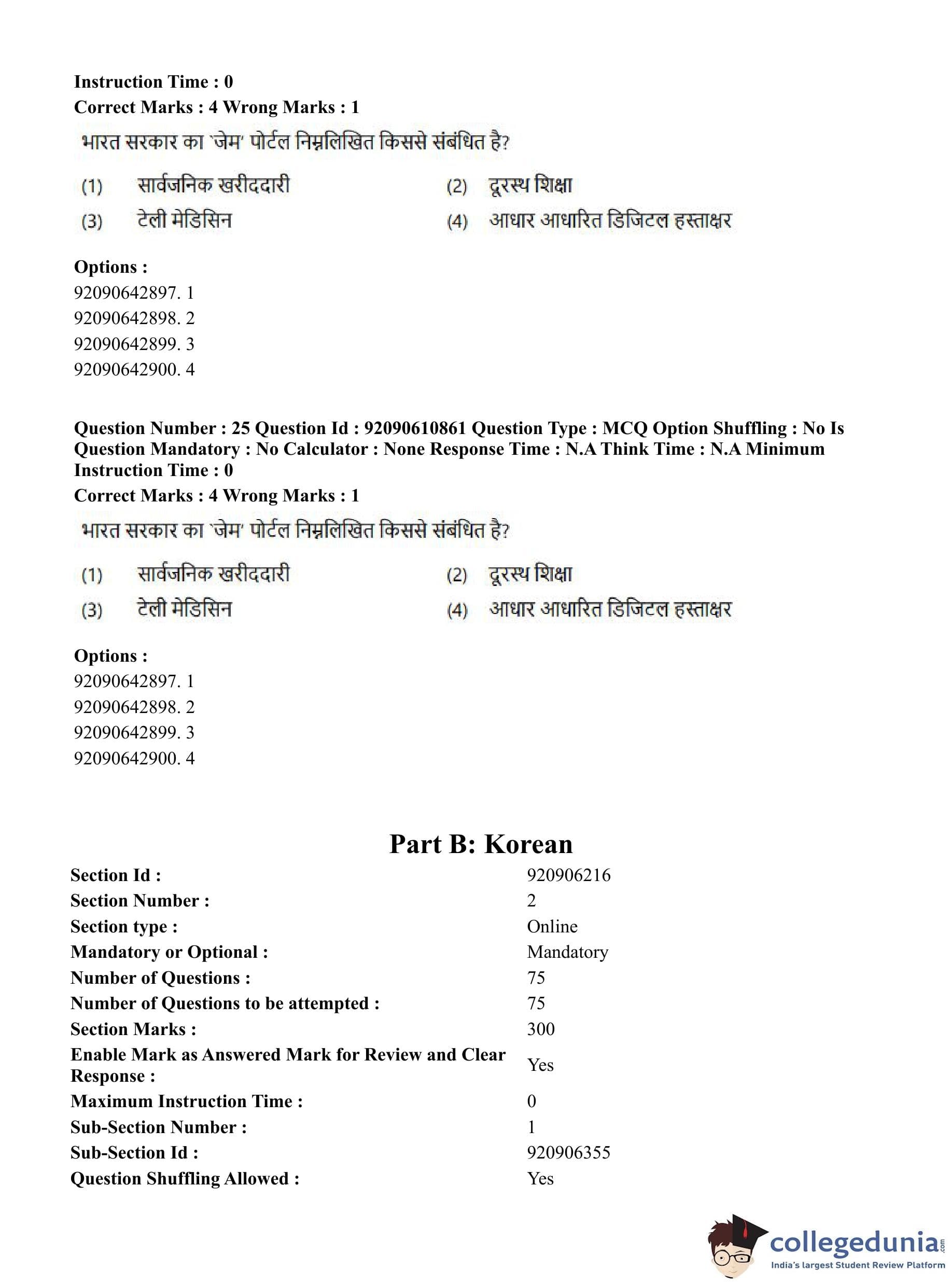 CUET PG 2023 Korean Question Paper in Hindi (June 10 - Shift 2)