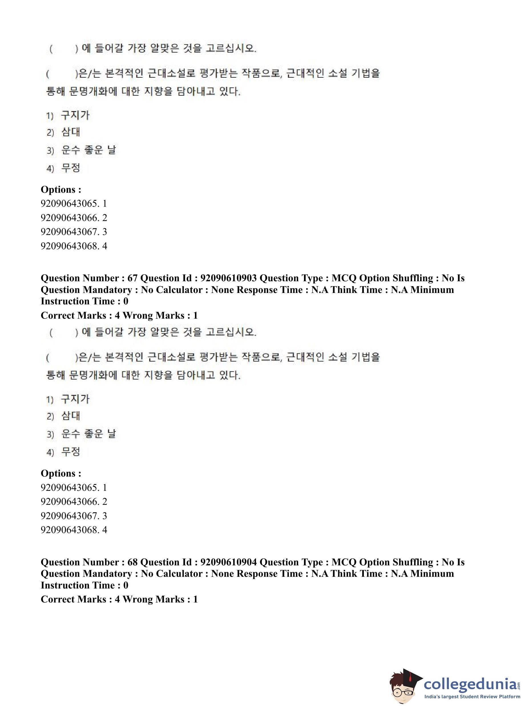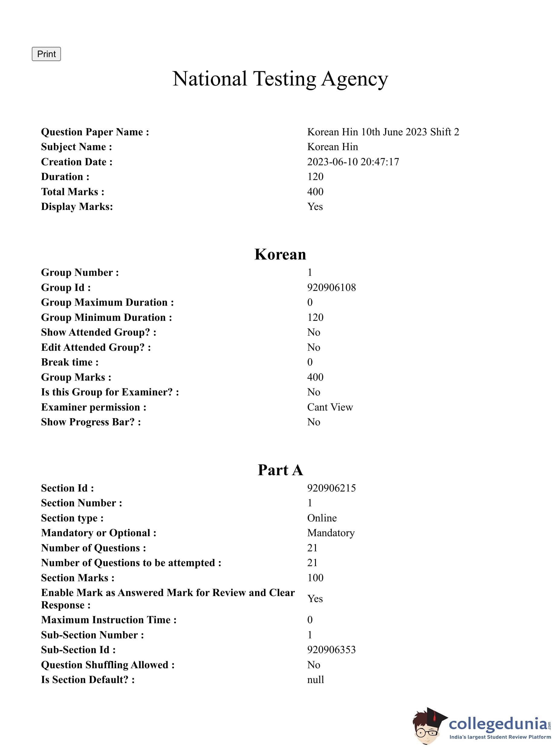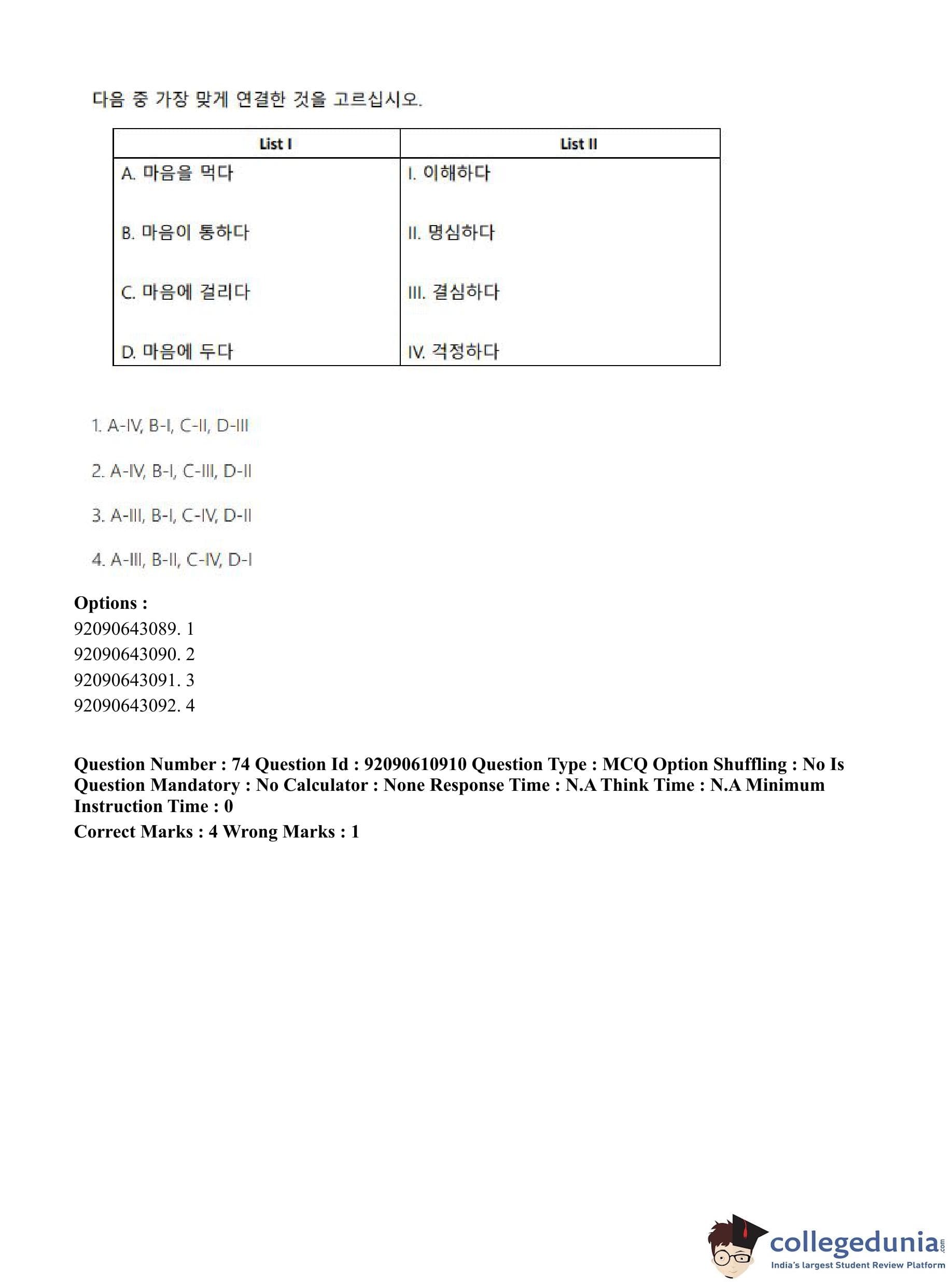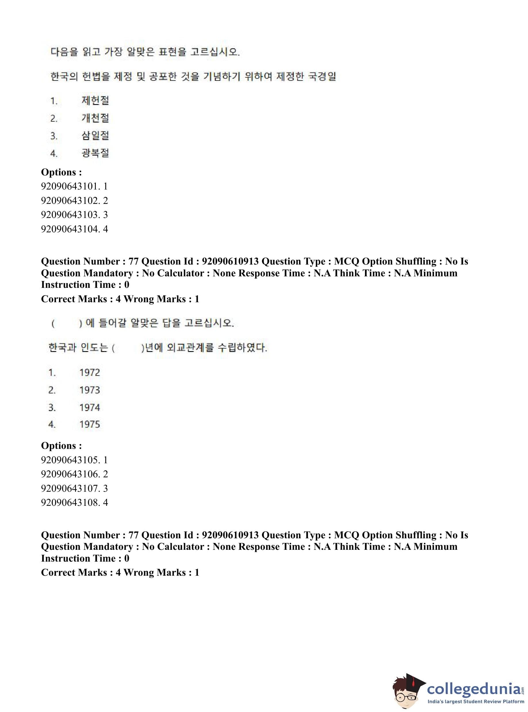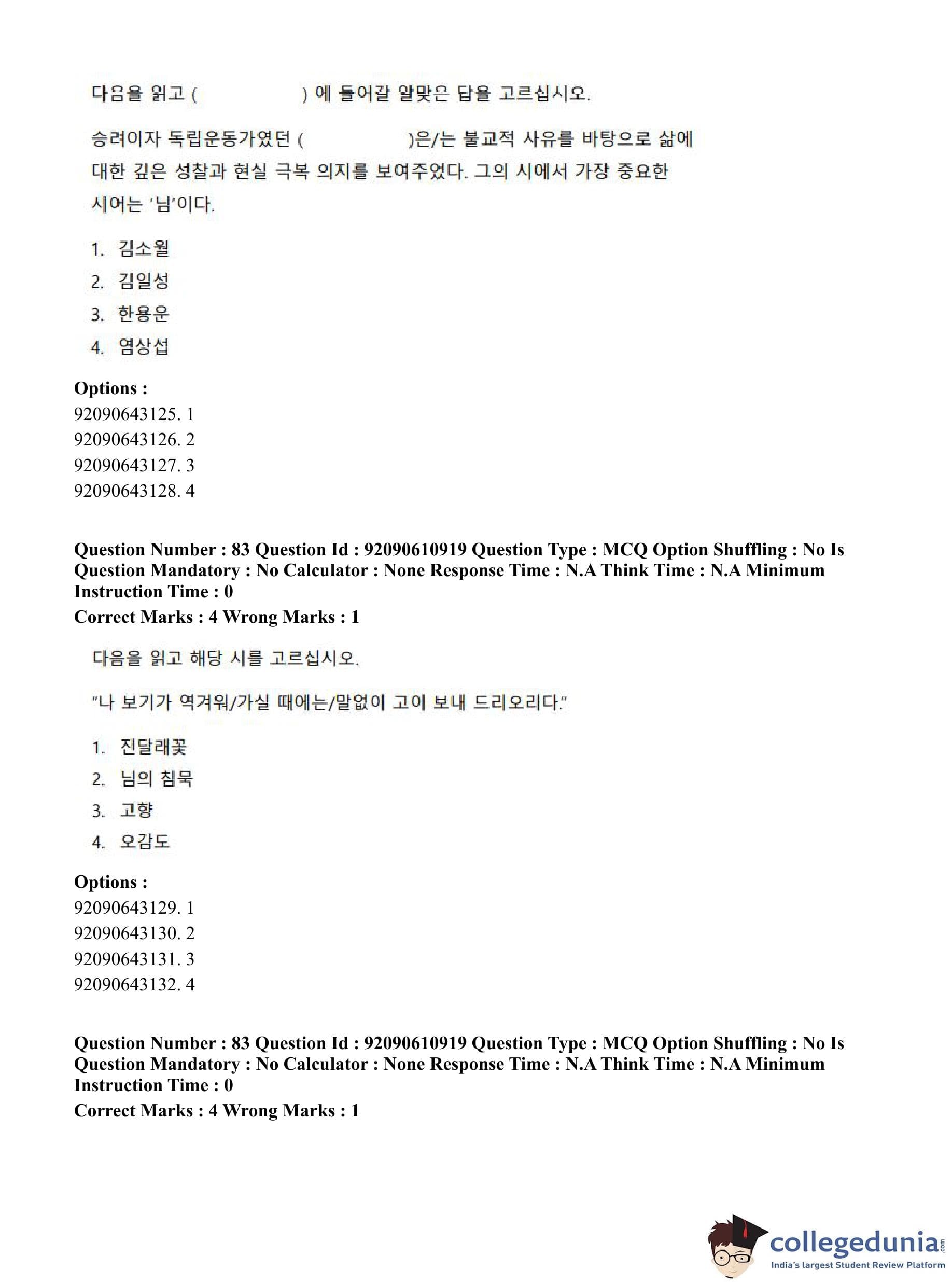 CUET PG 2023 Korean Question Paper in Hindi (June 10 - Shift 2)