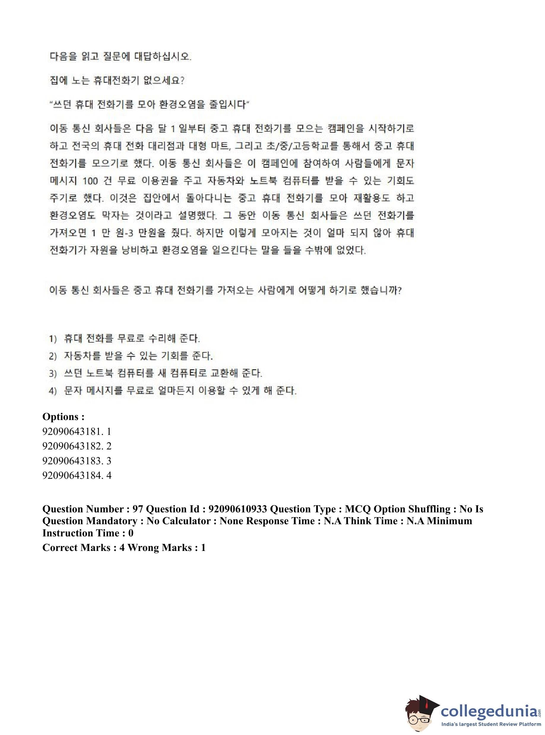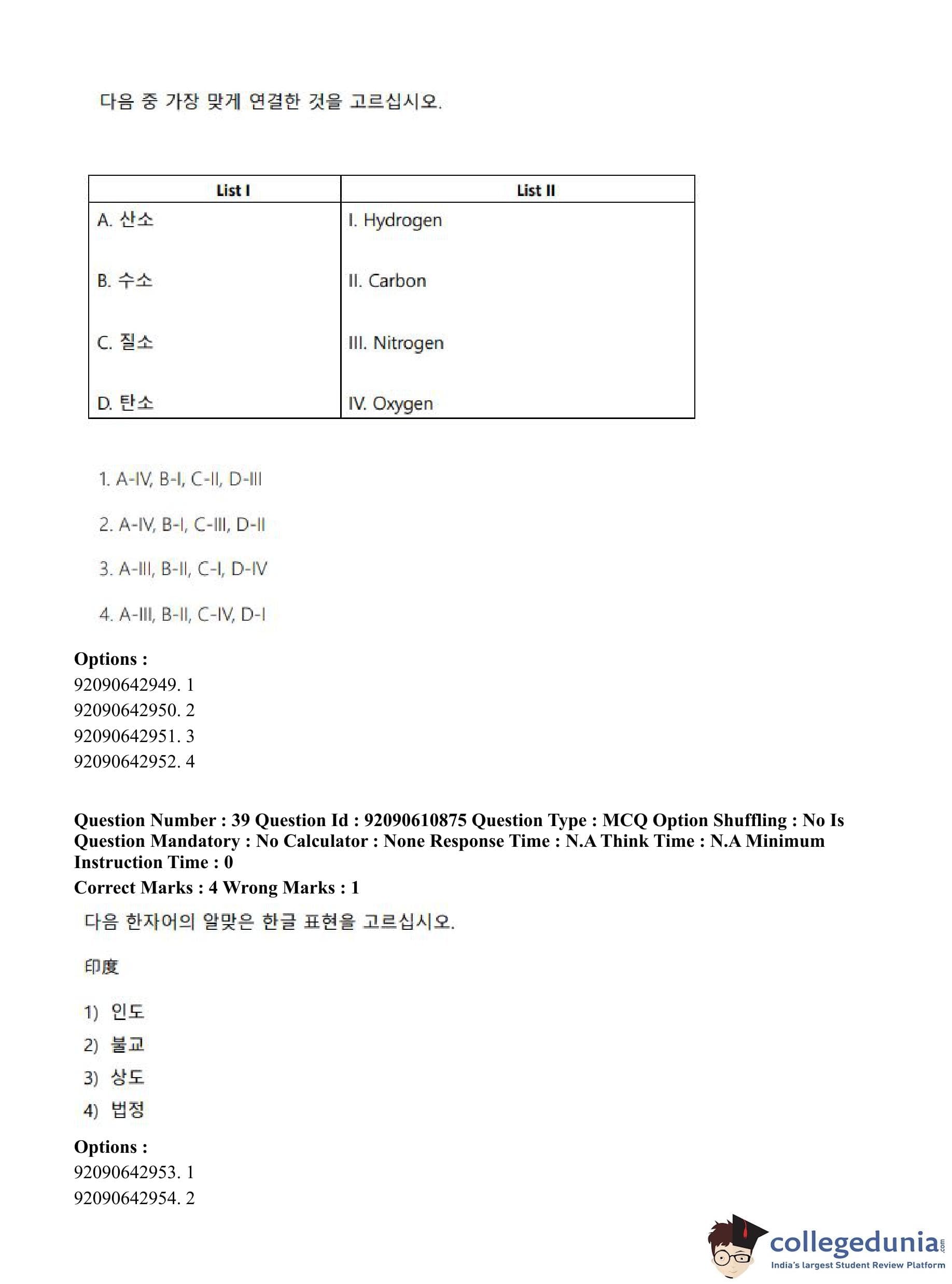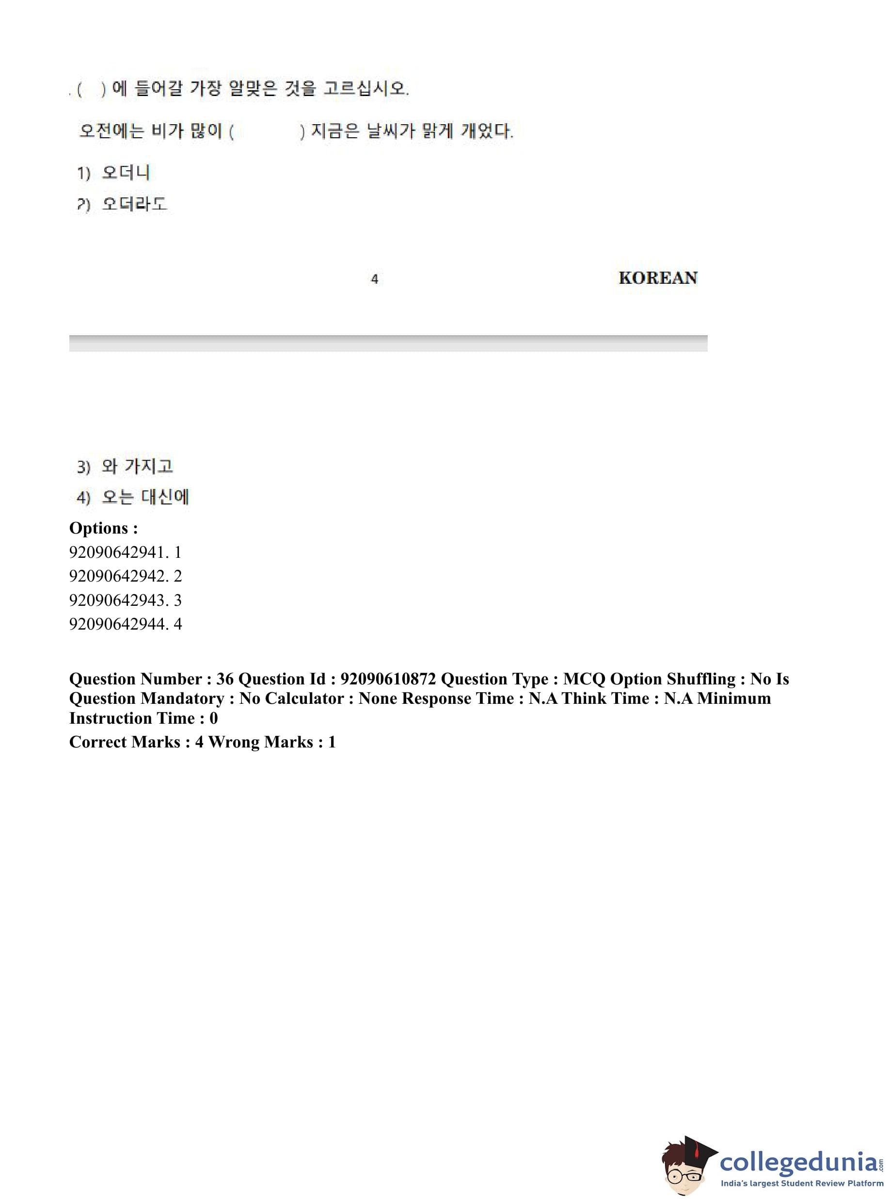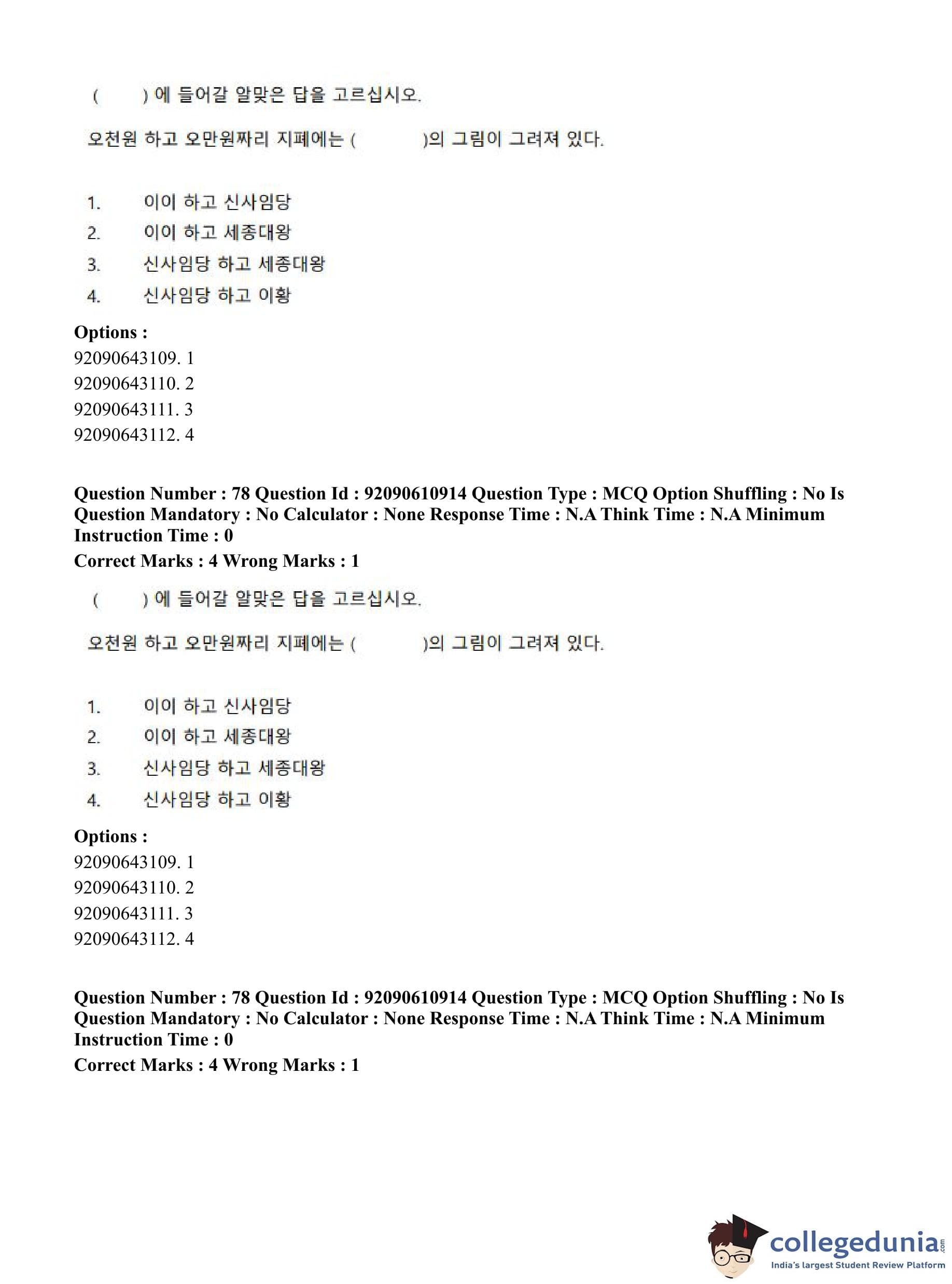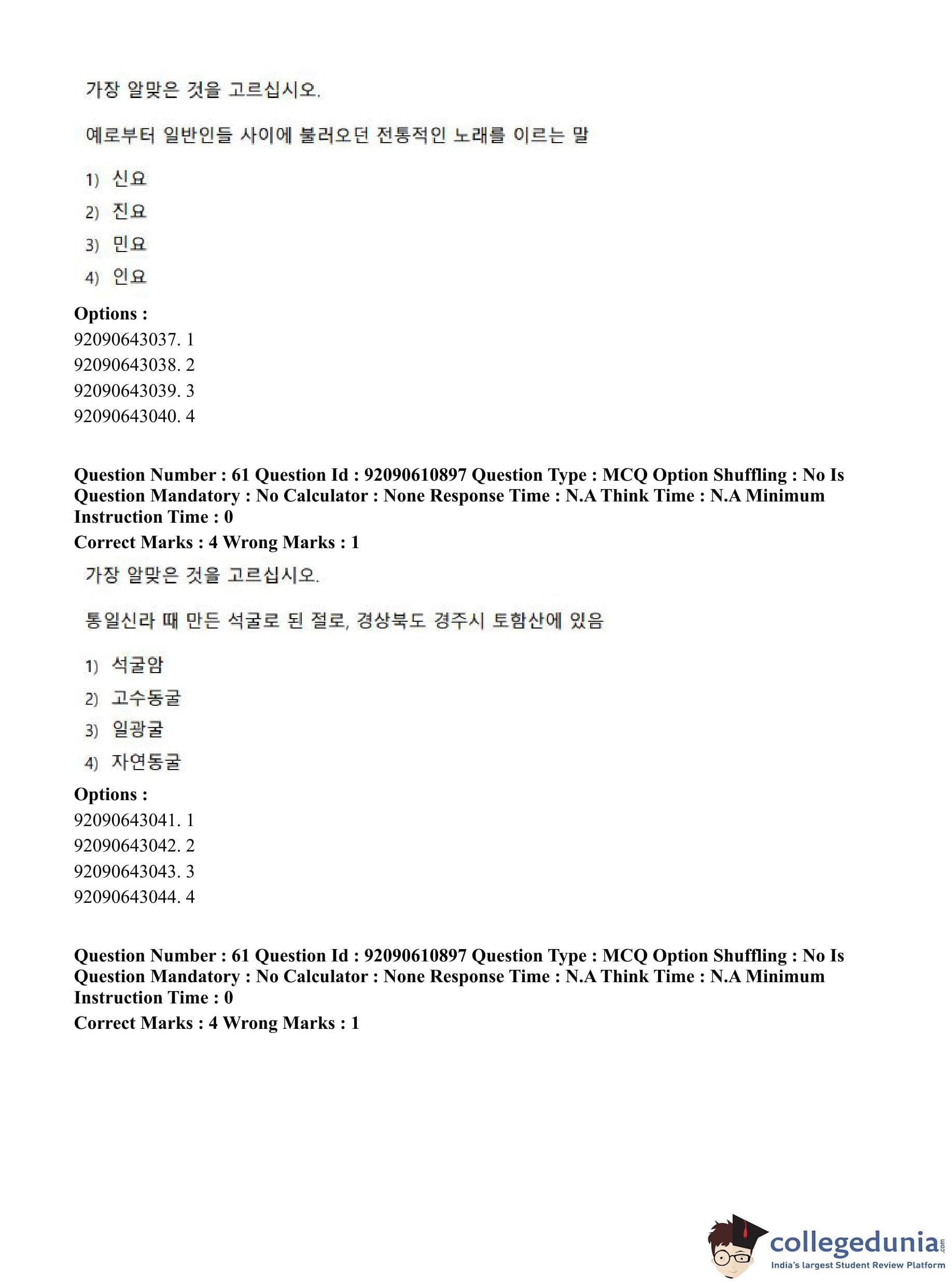 CUET PG 2023 Korean Question Paper in Hindi (June 10 - Shift 2)