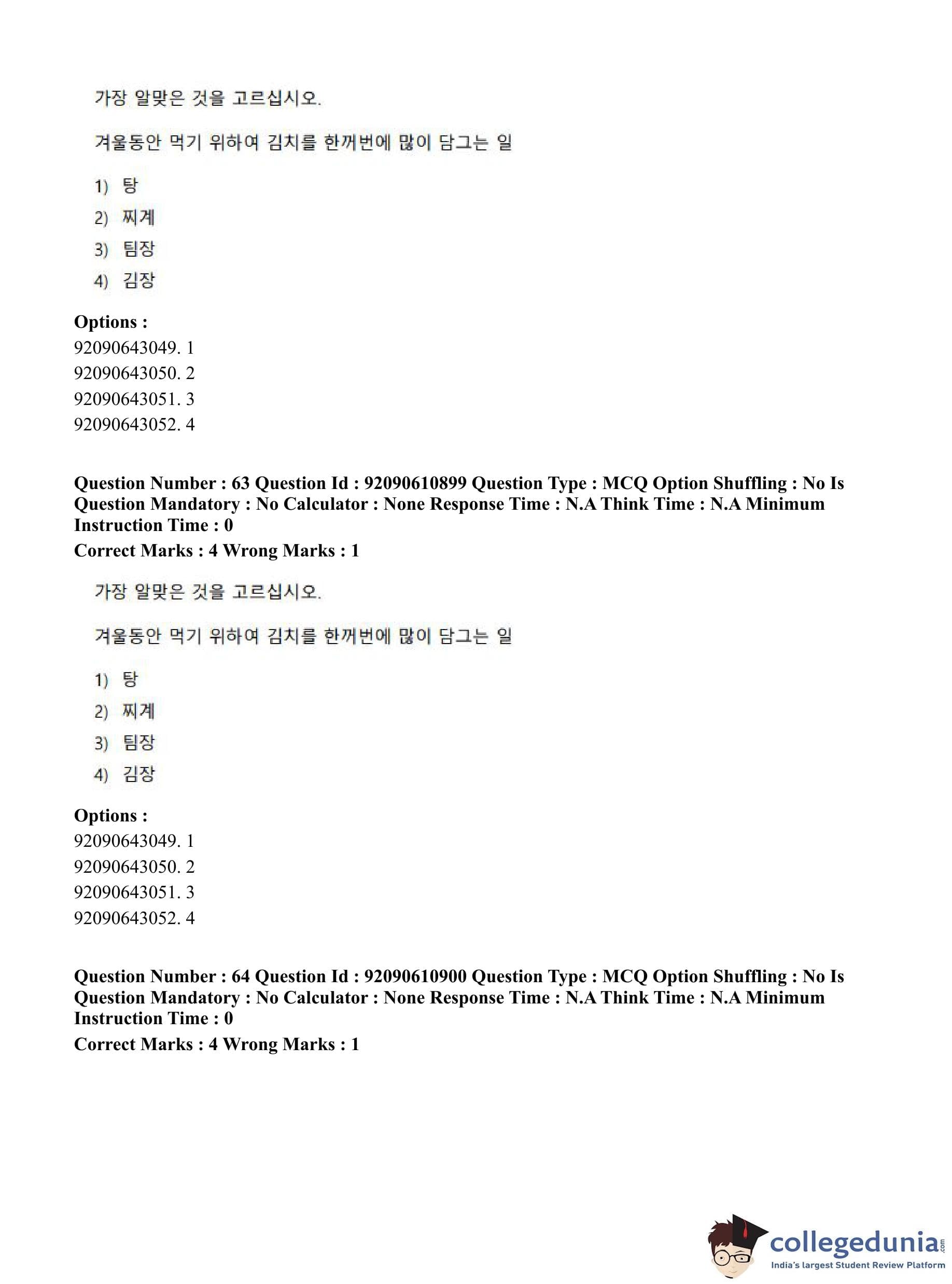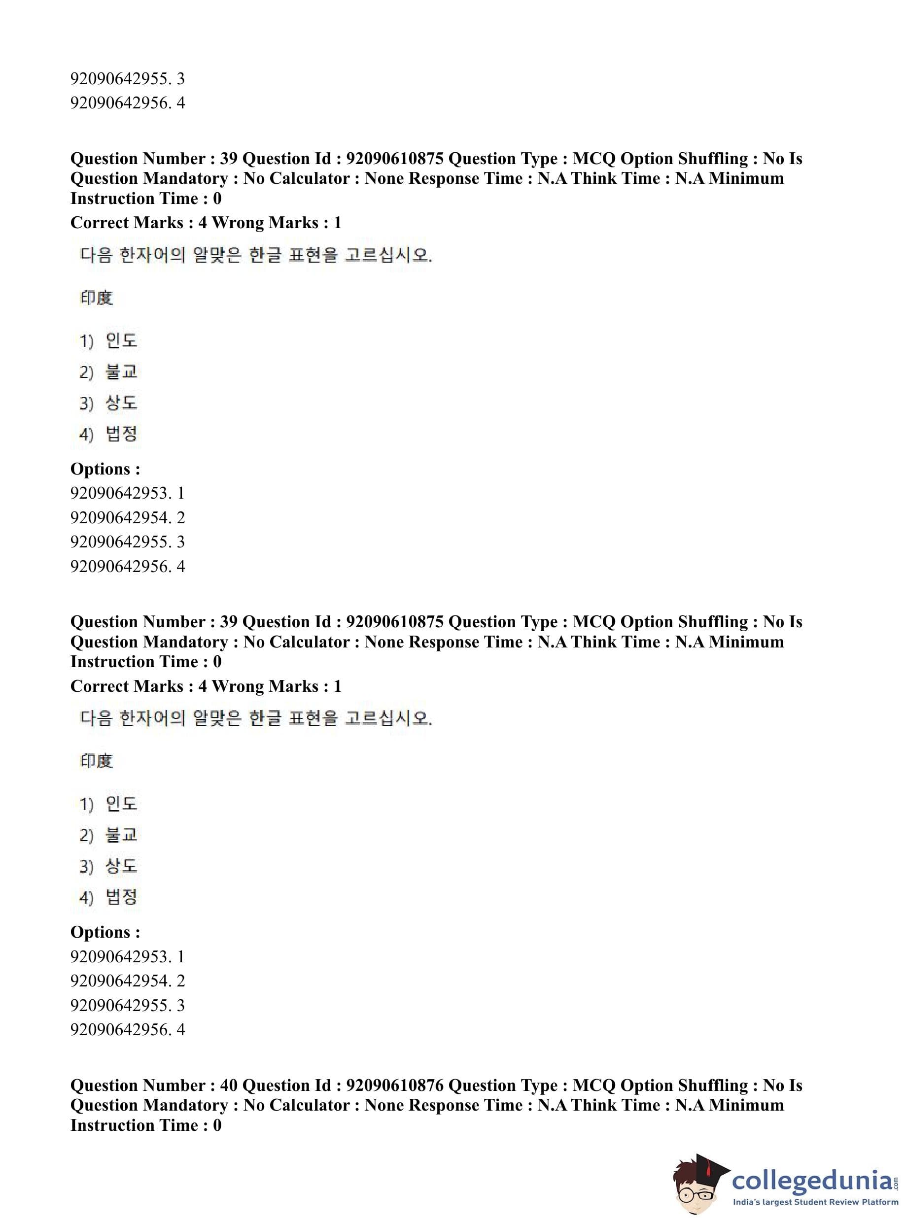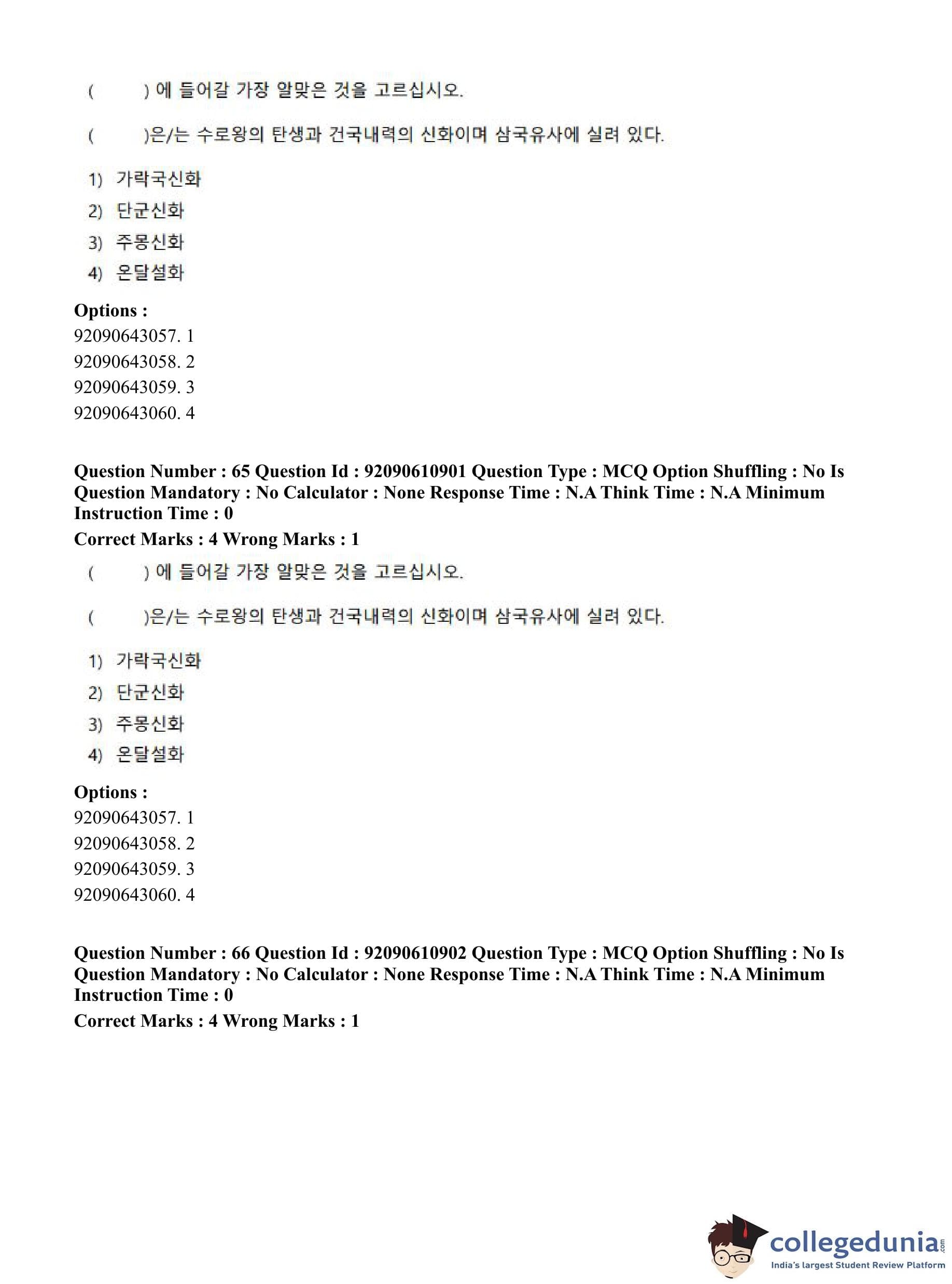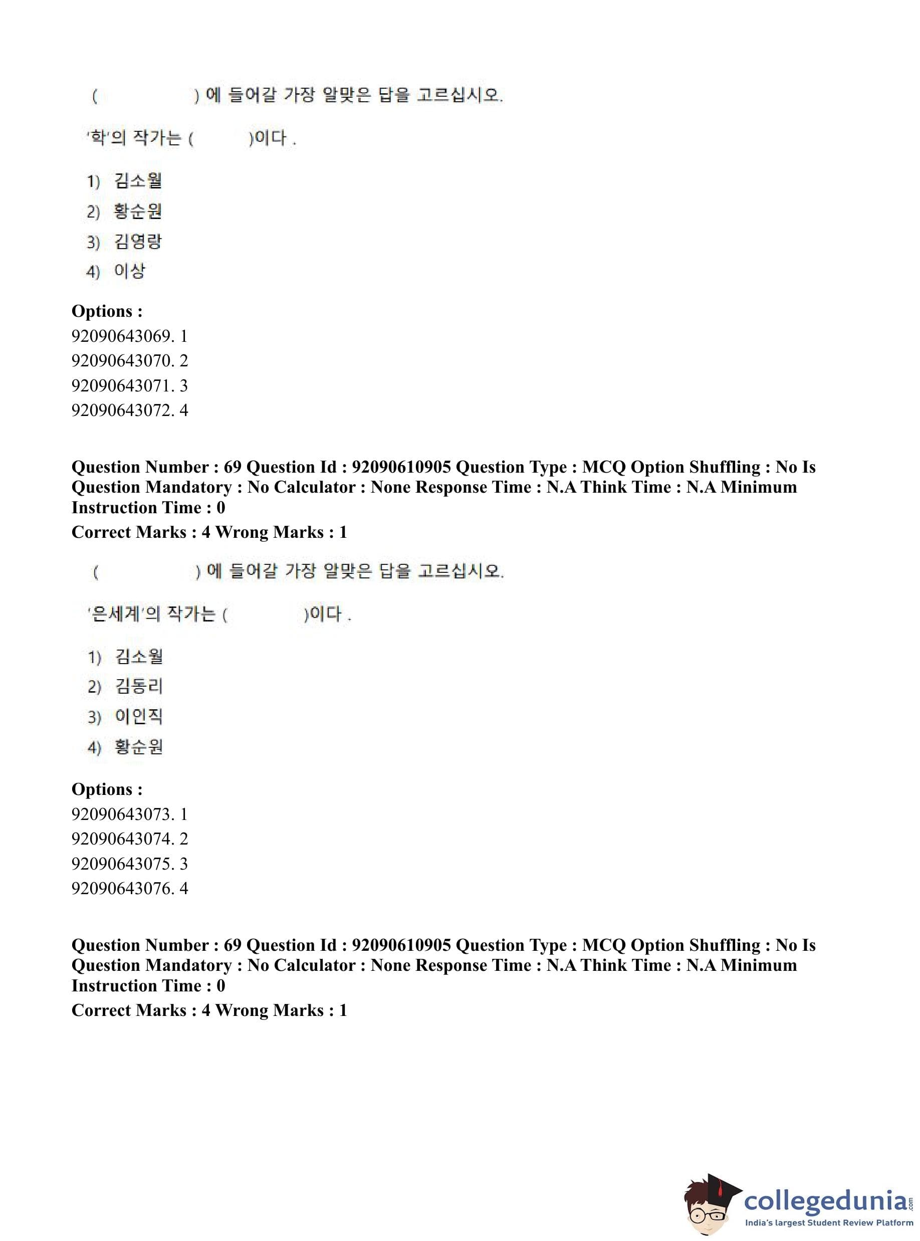 CUET PG 2023 Korean Question Paper in Hindi (June 10 - Shift 2)